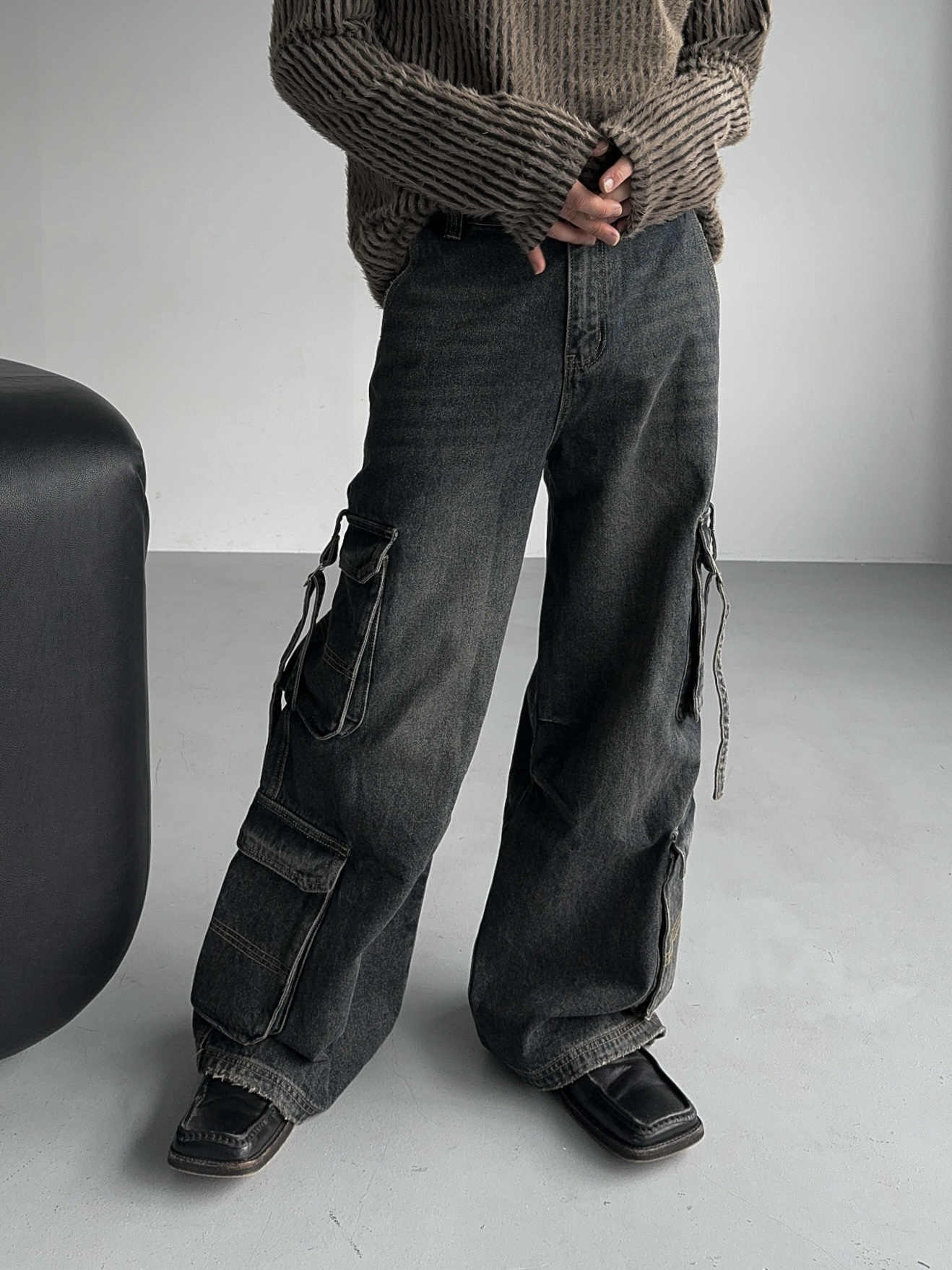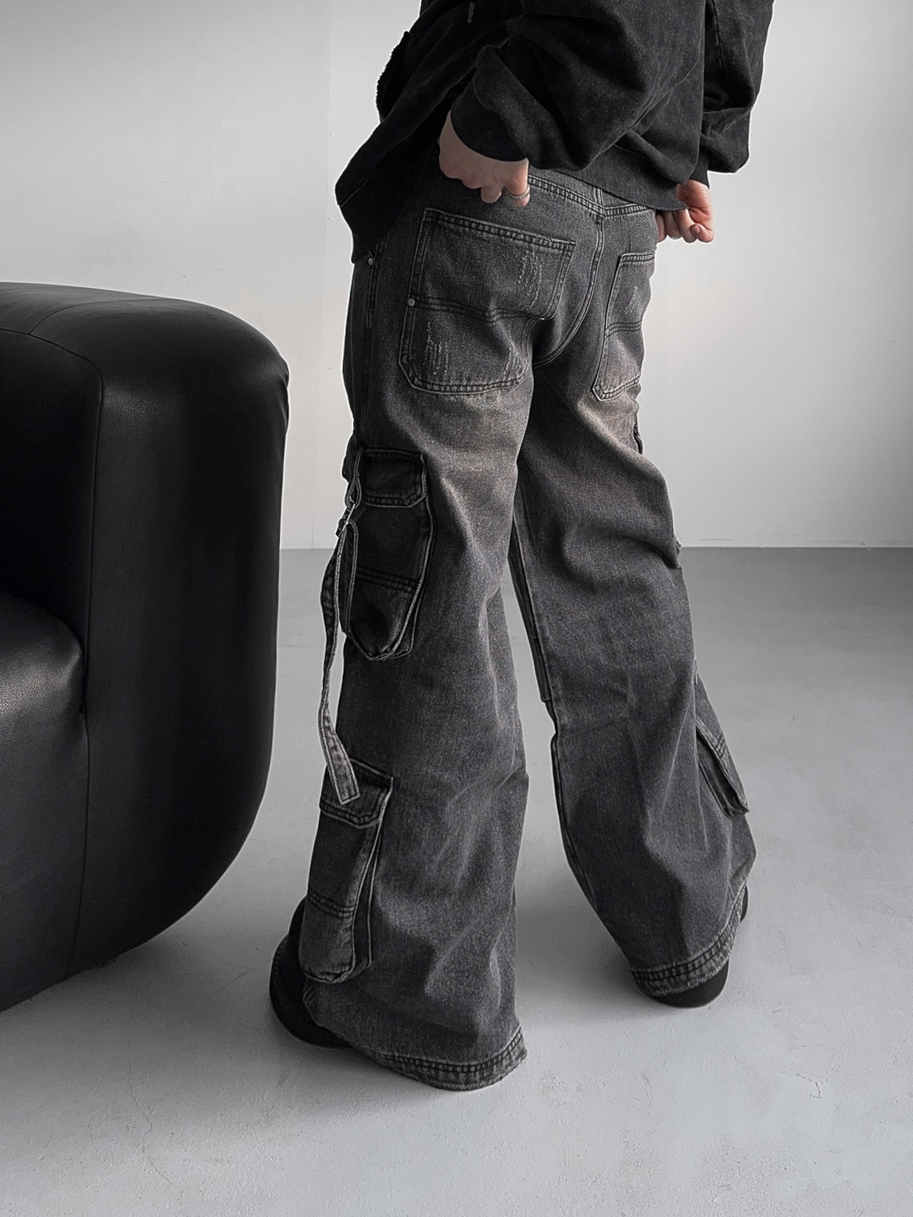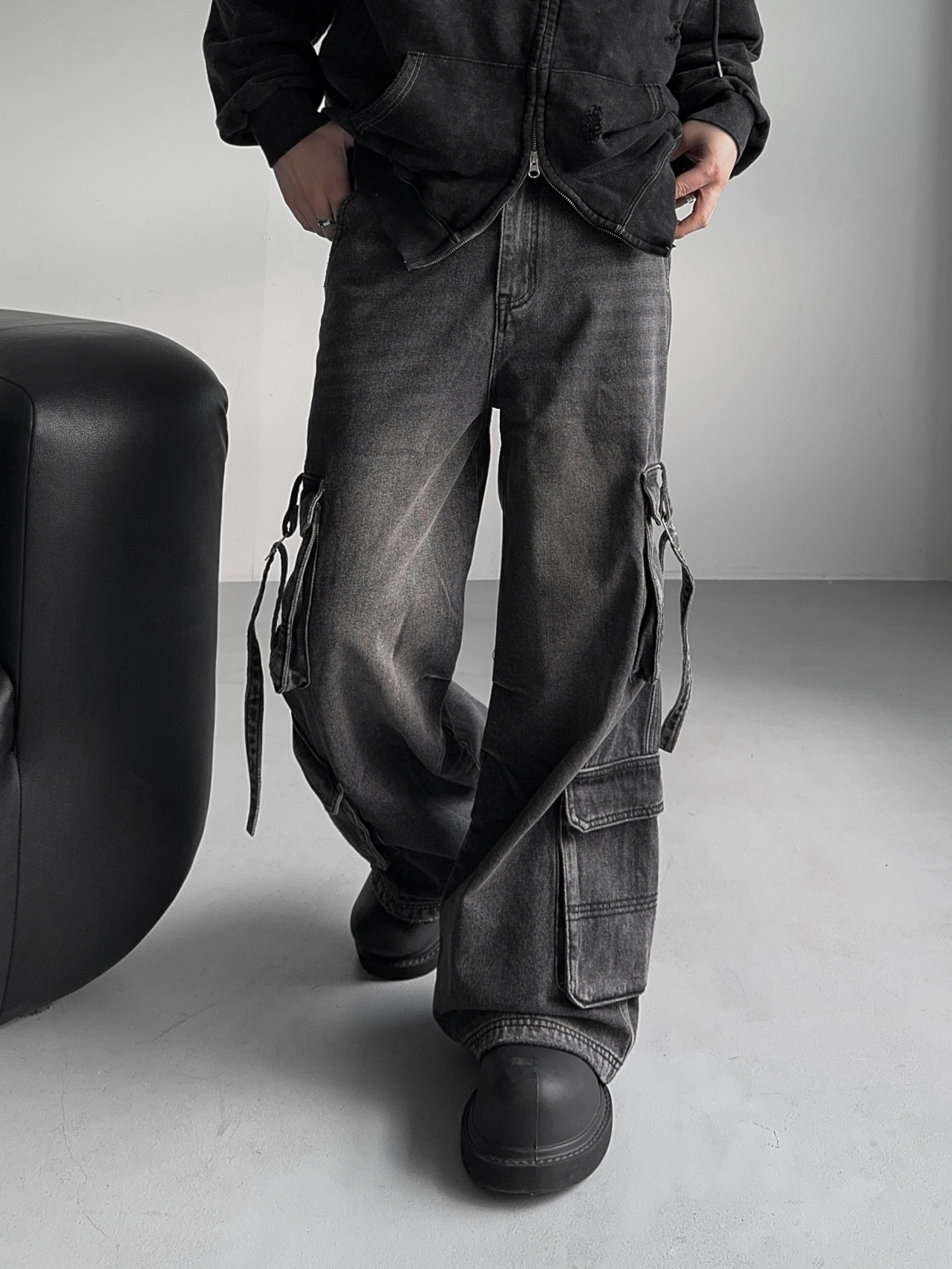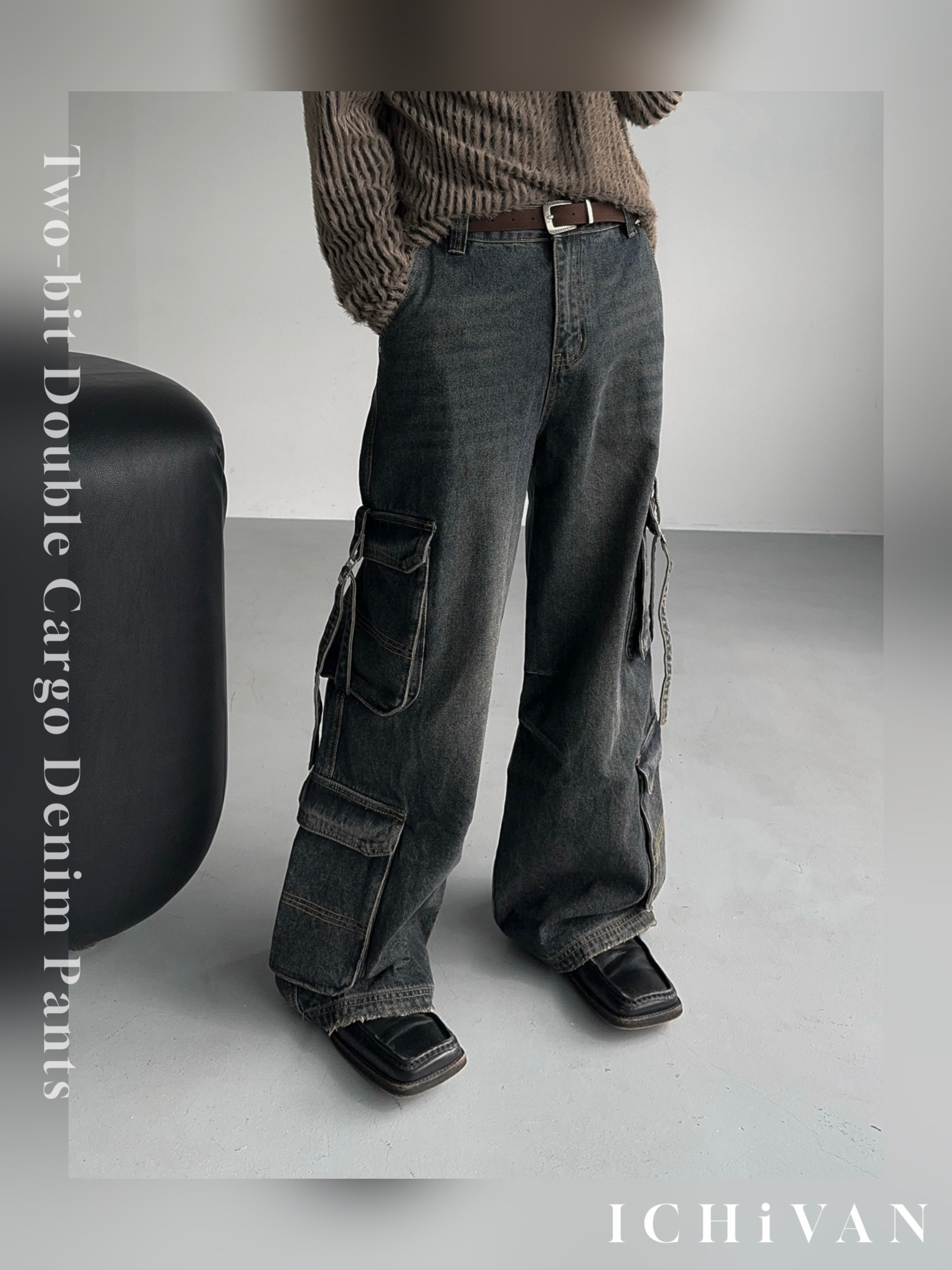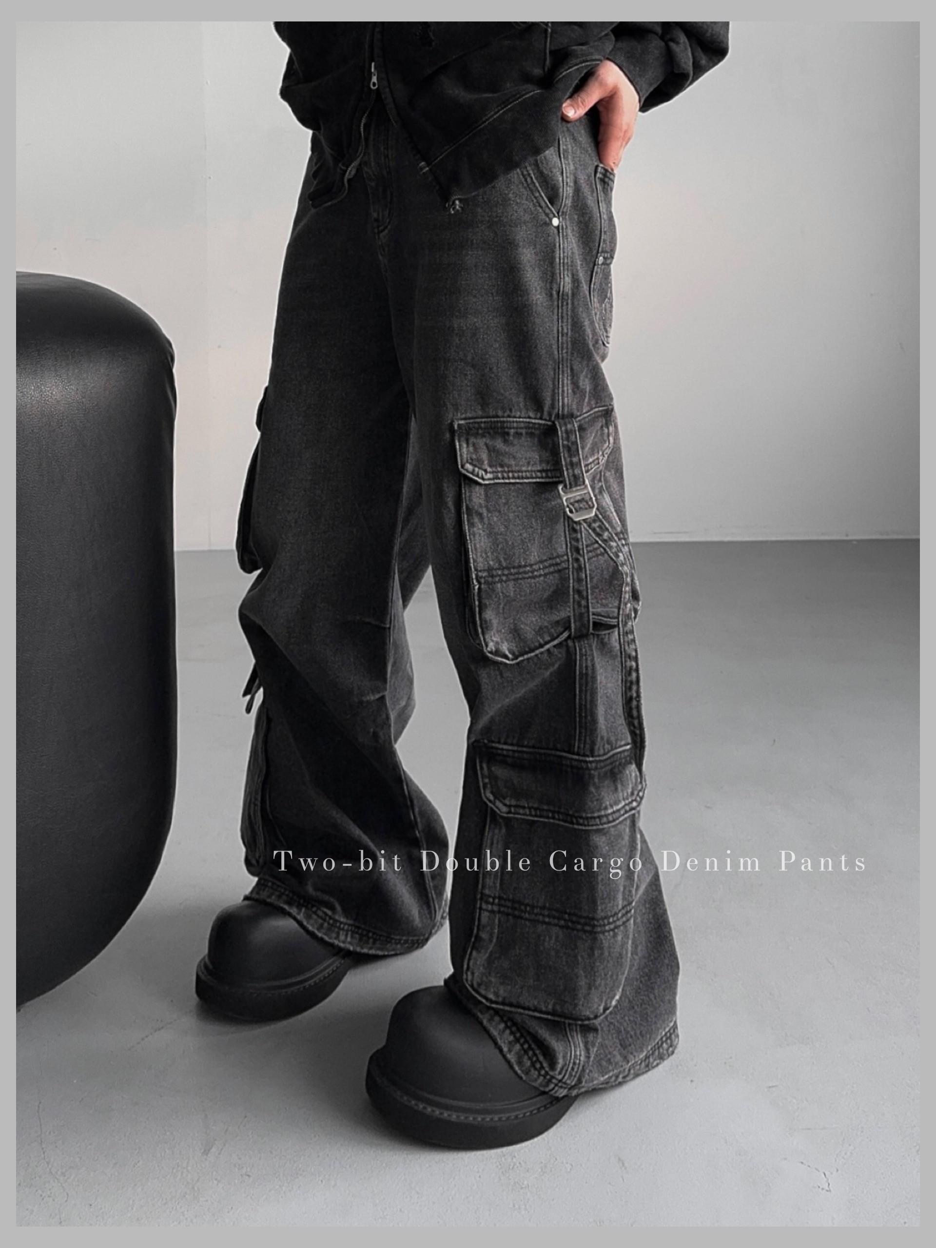 -탄탄한 데님 원단의 카고 디자인 팬츠
