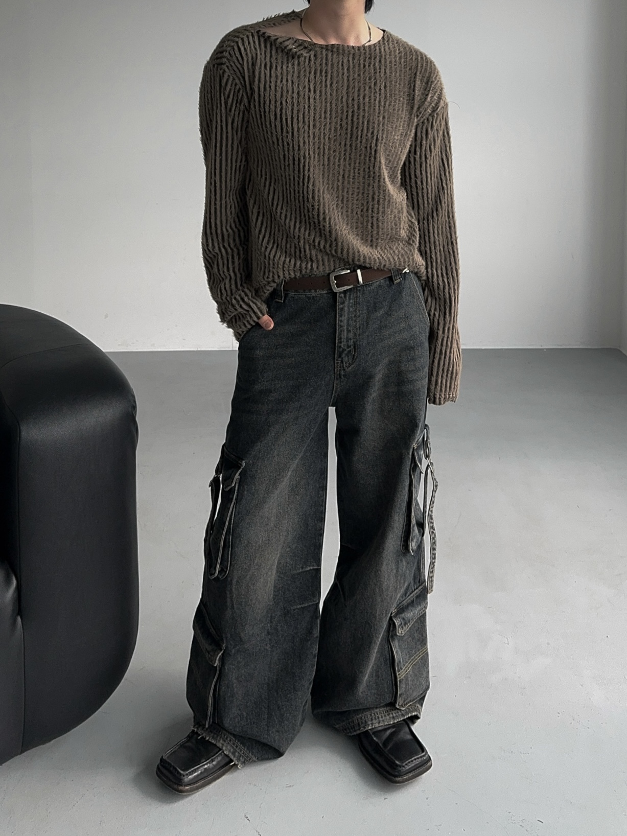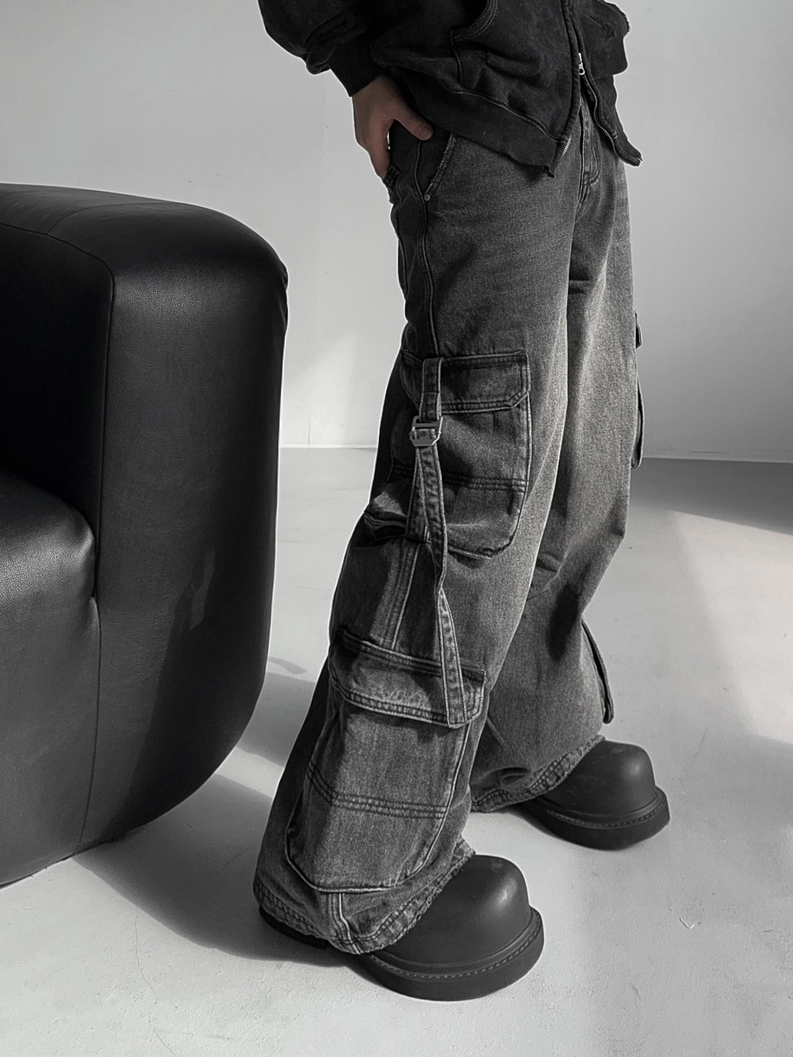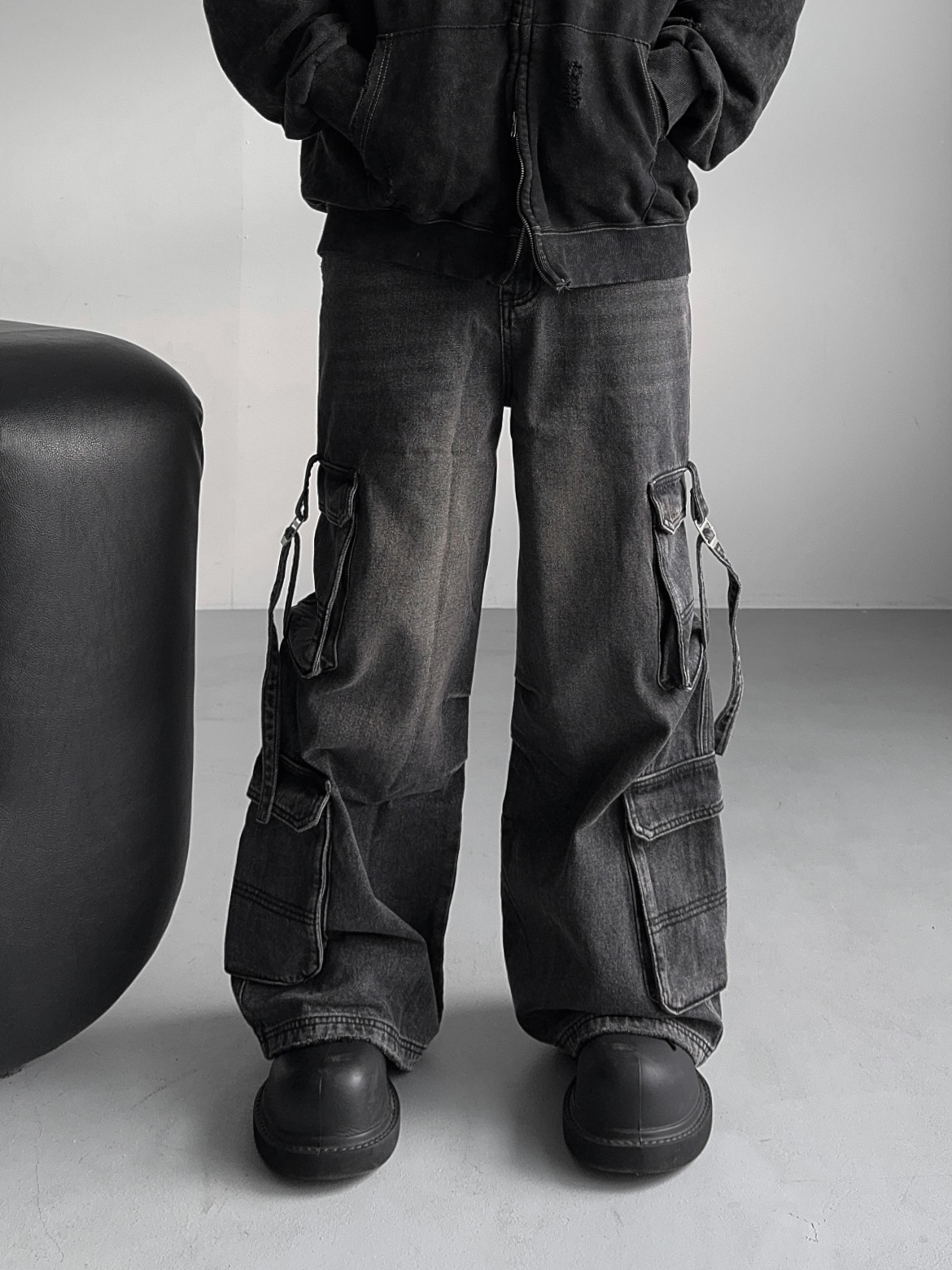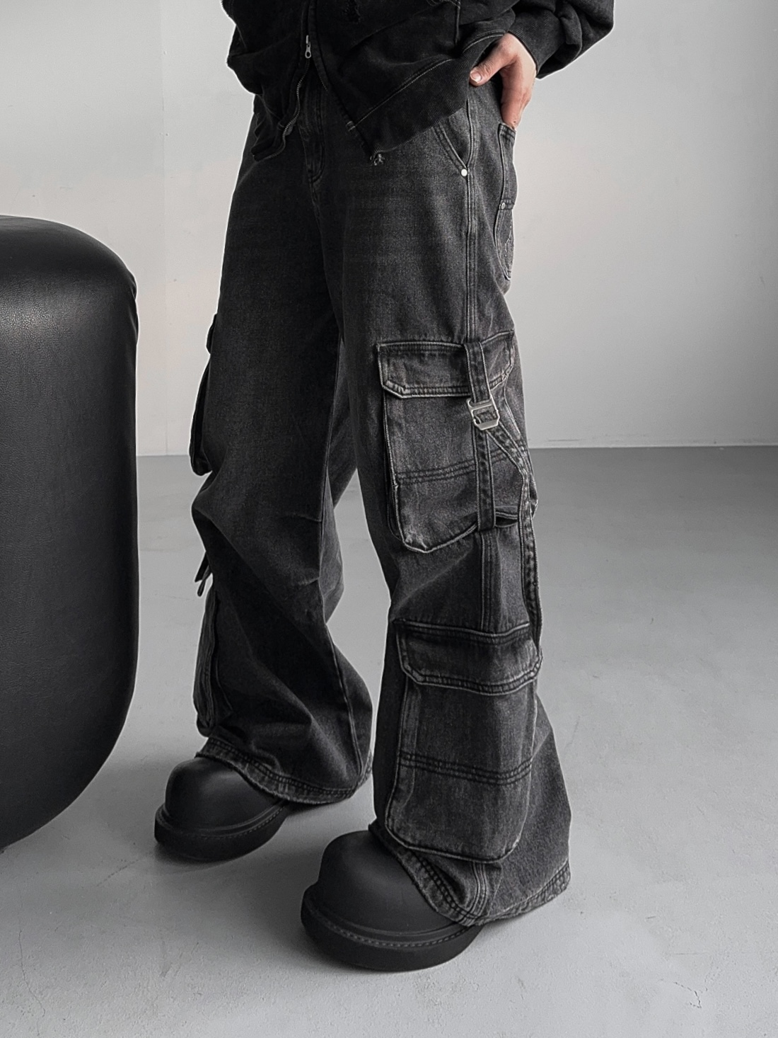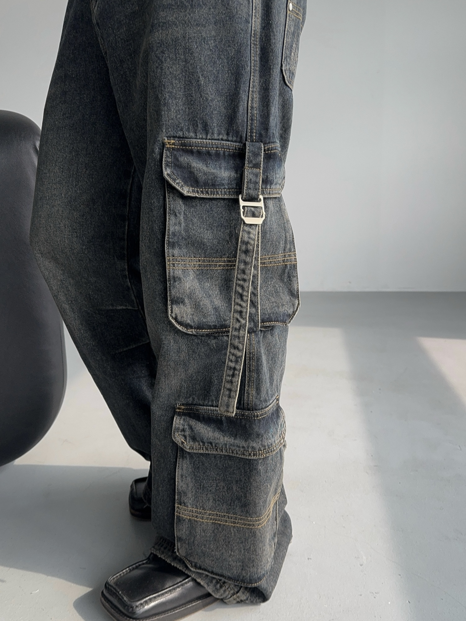 -탄탄한 데님 원단의 카고 디자인 팬츠