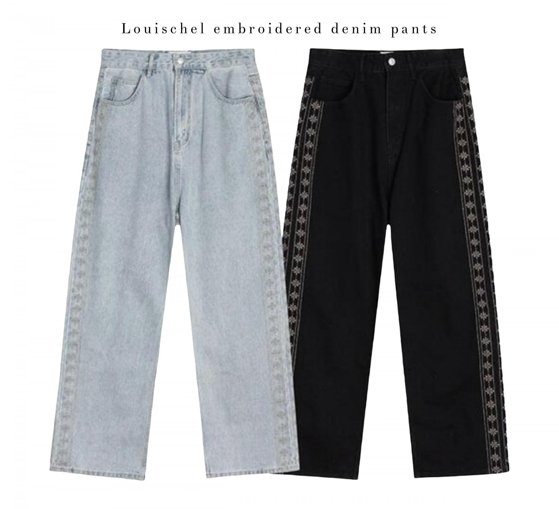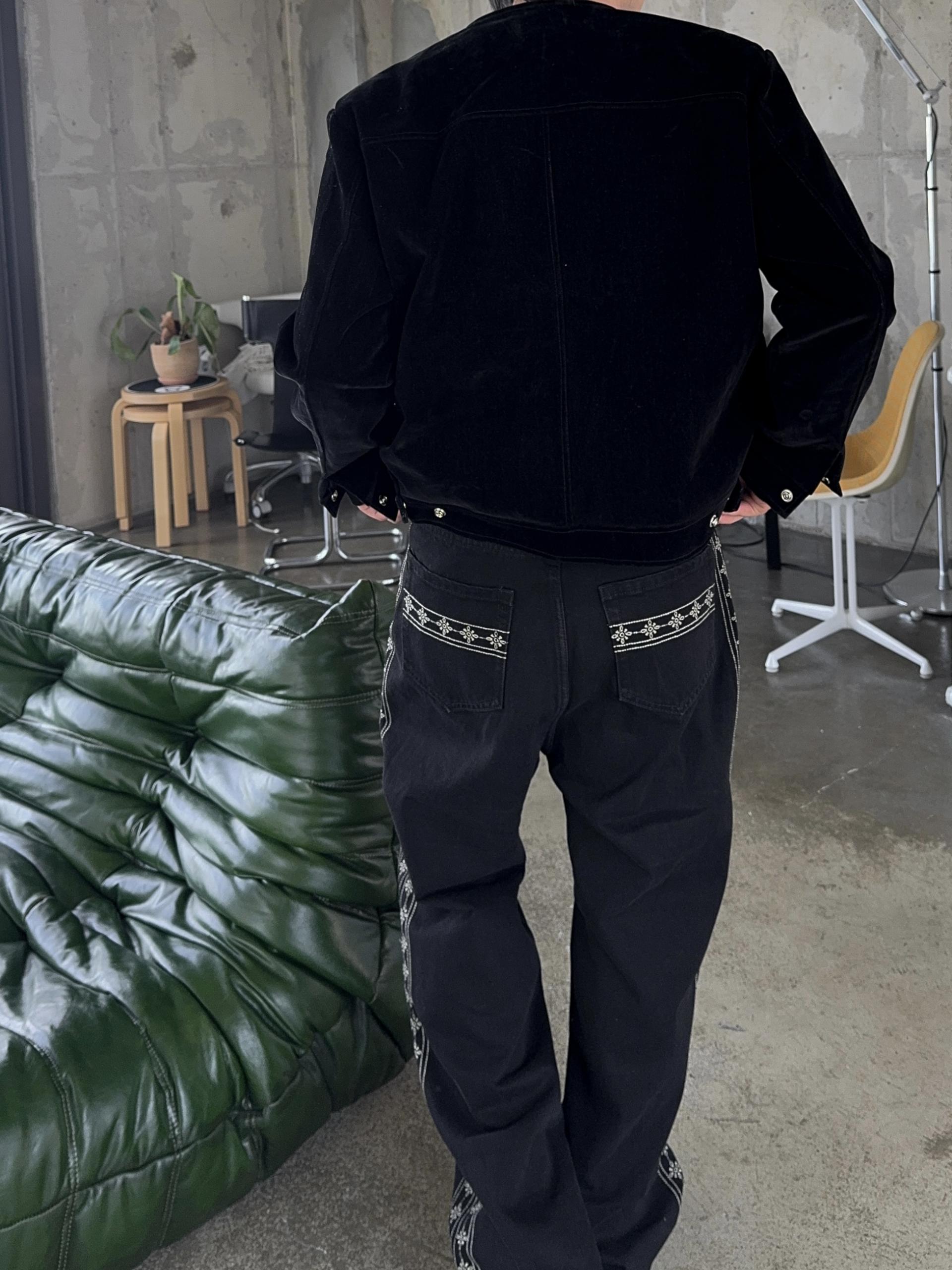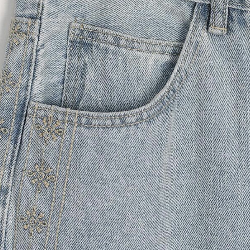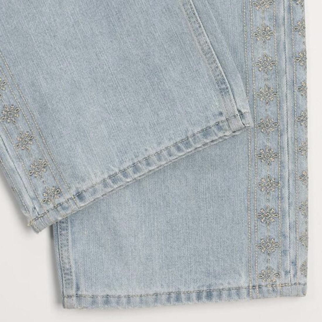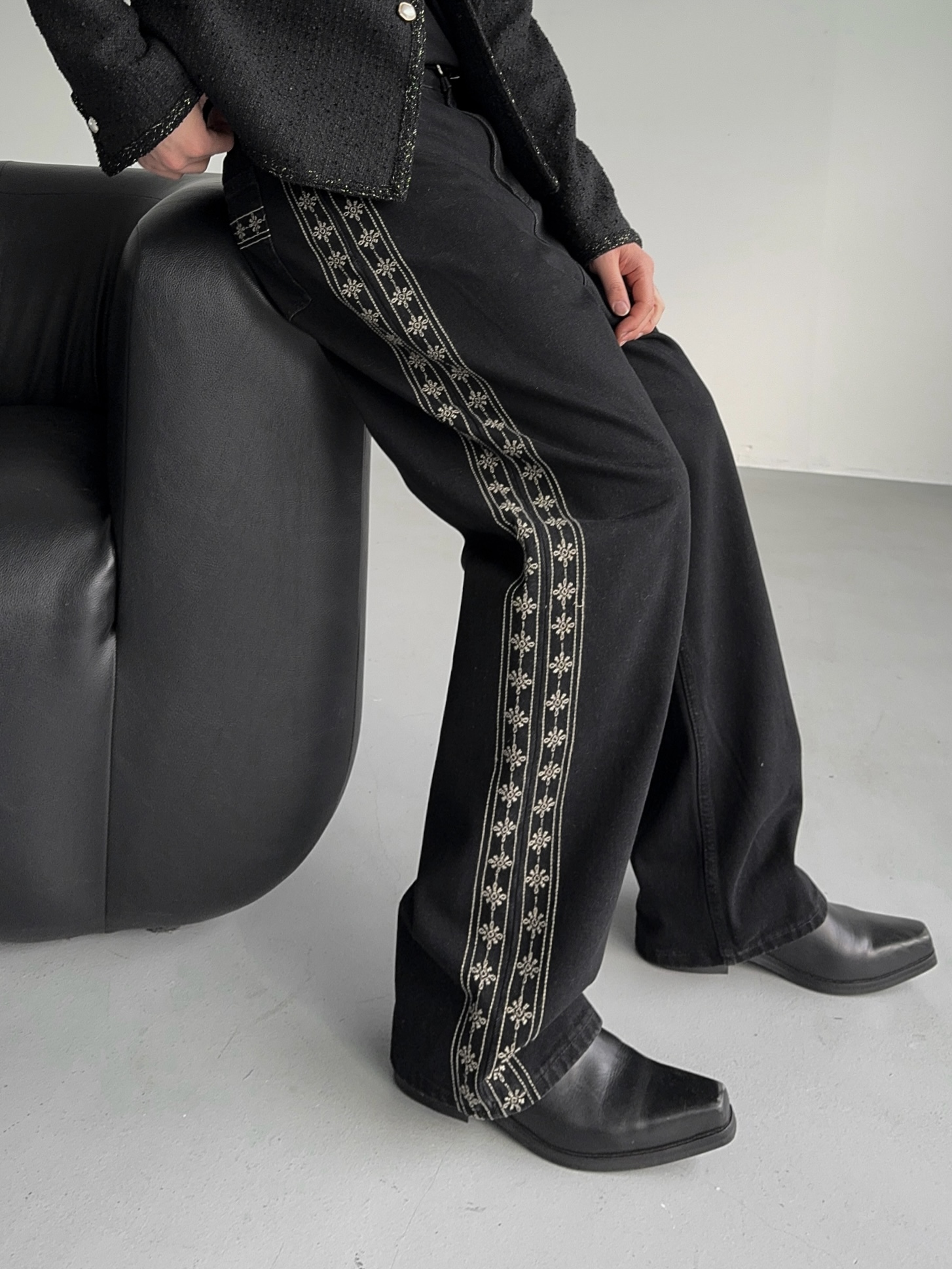 -핸드메이드 스티치 자수 포인트 디자인으로 제작된 데님 팬츠
