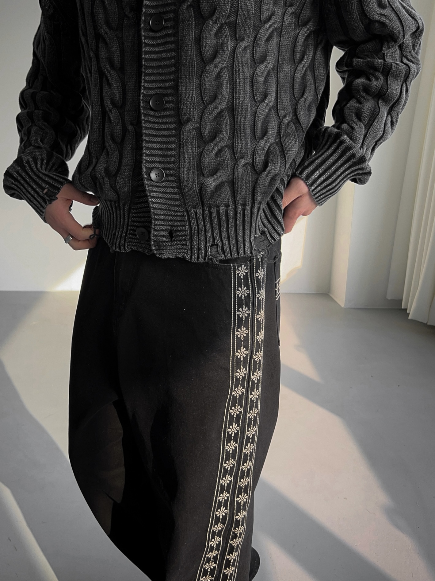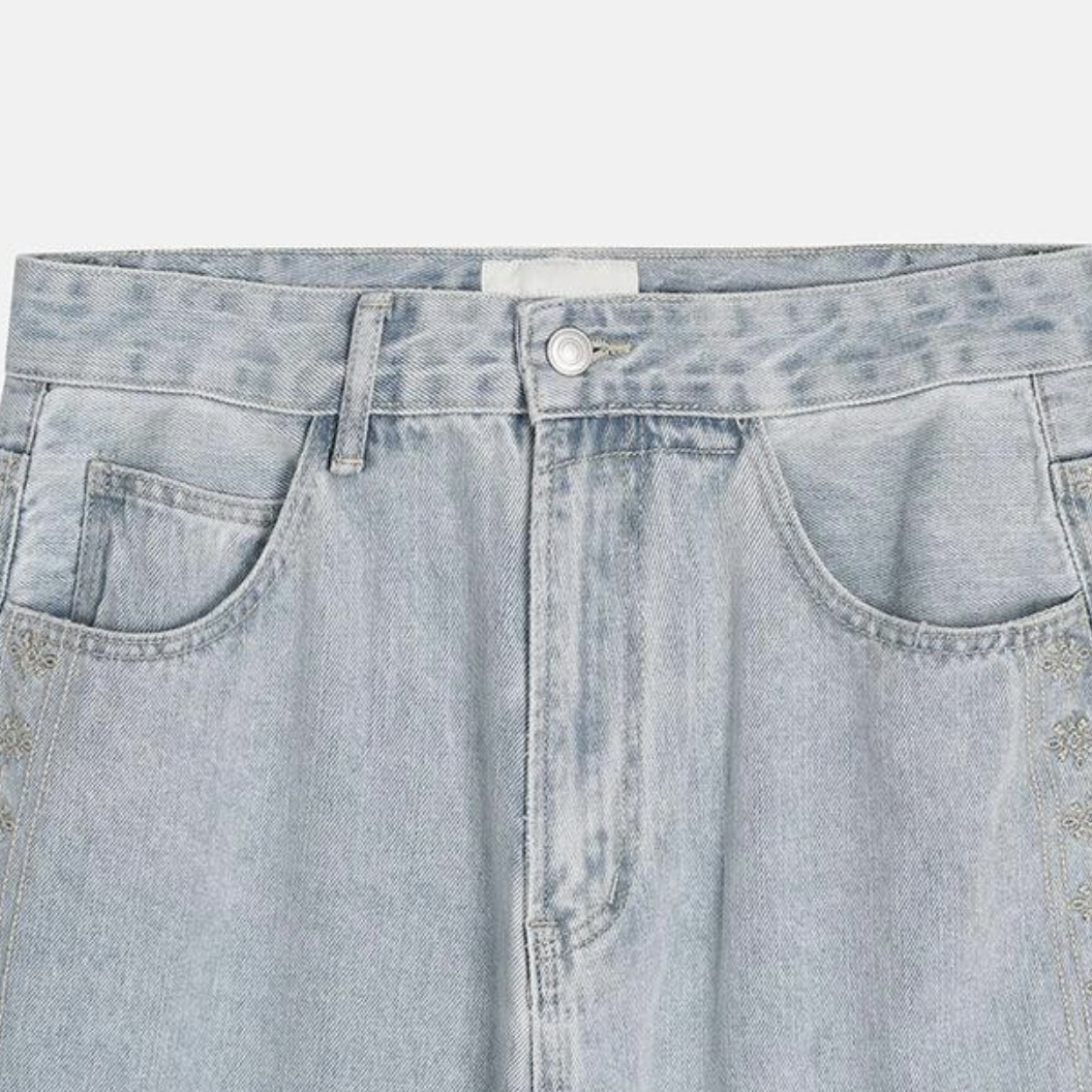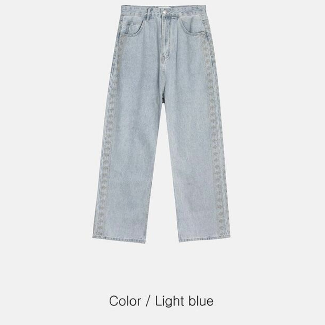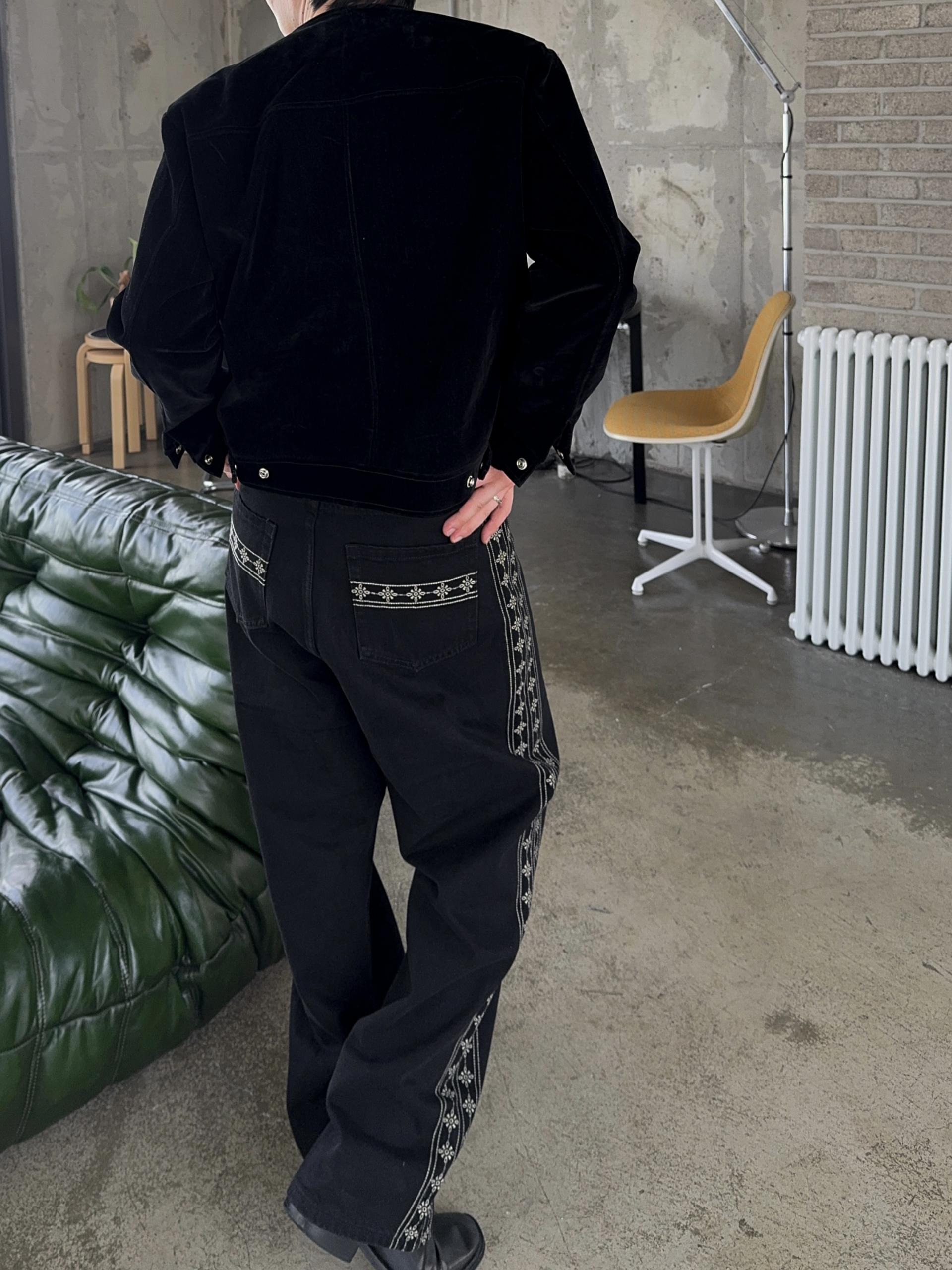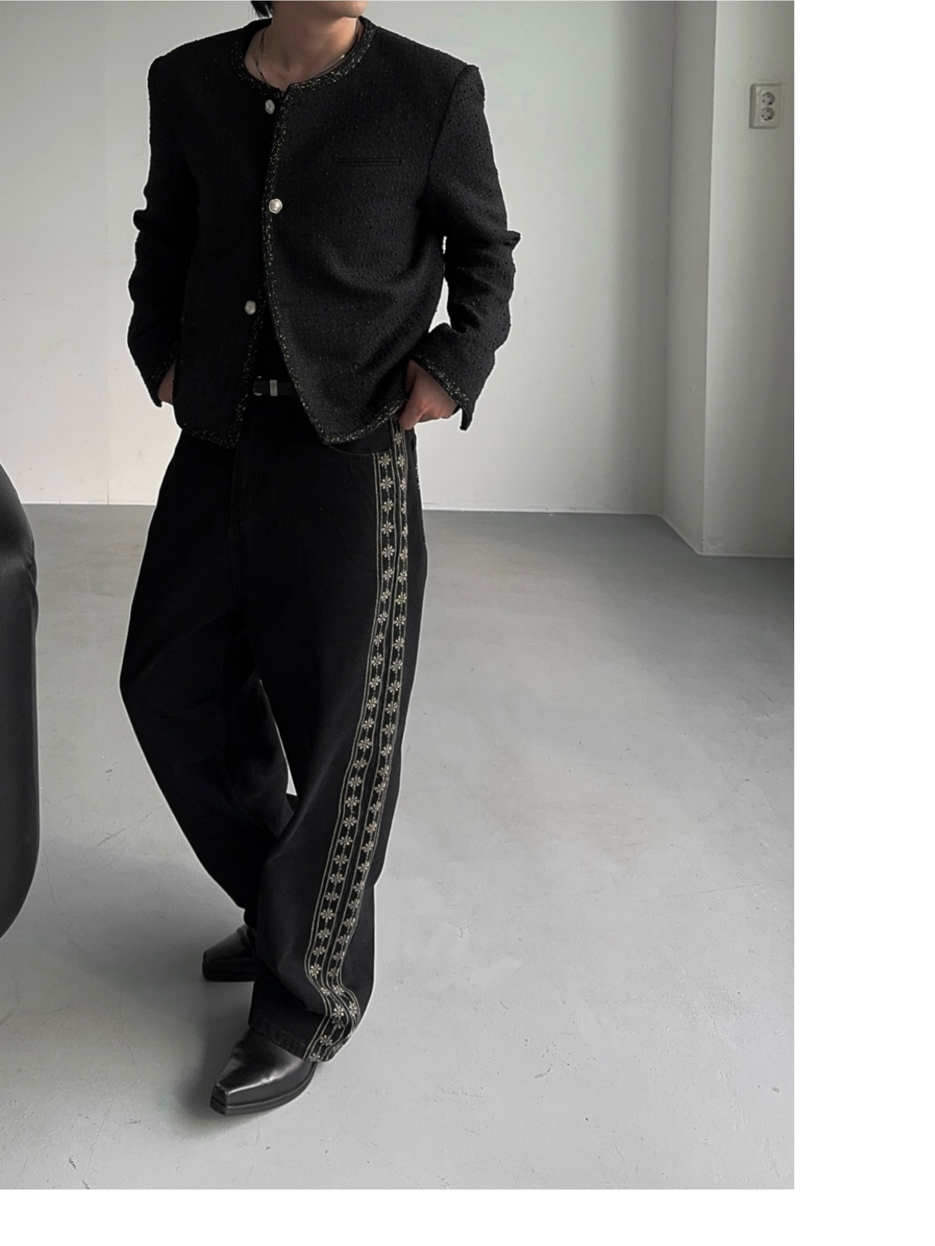-핸드메이드 스티치 자수 포인트 디자인으로 제작된 데님 팬츠