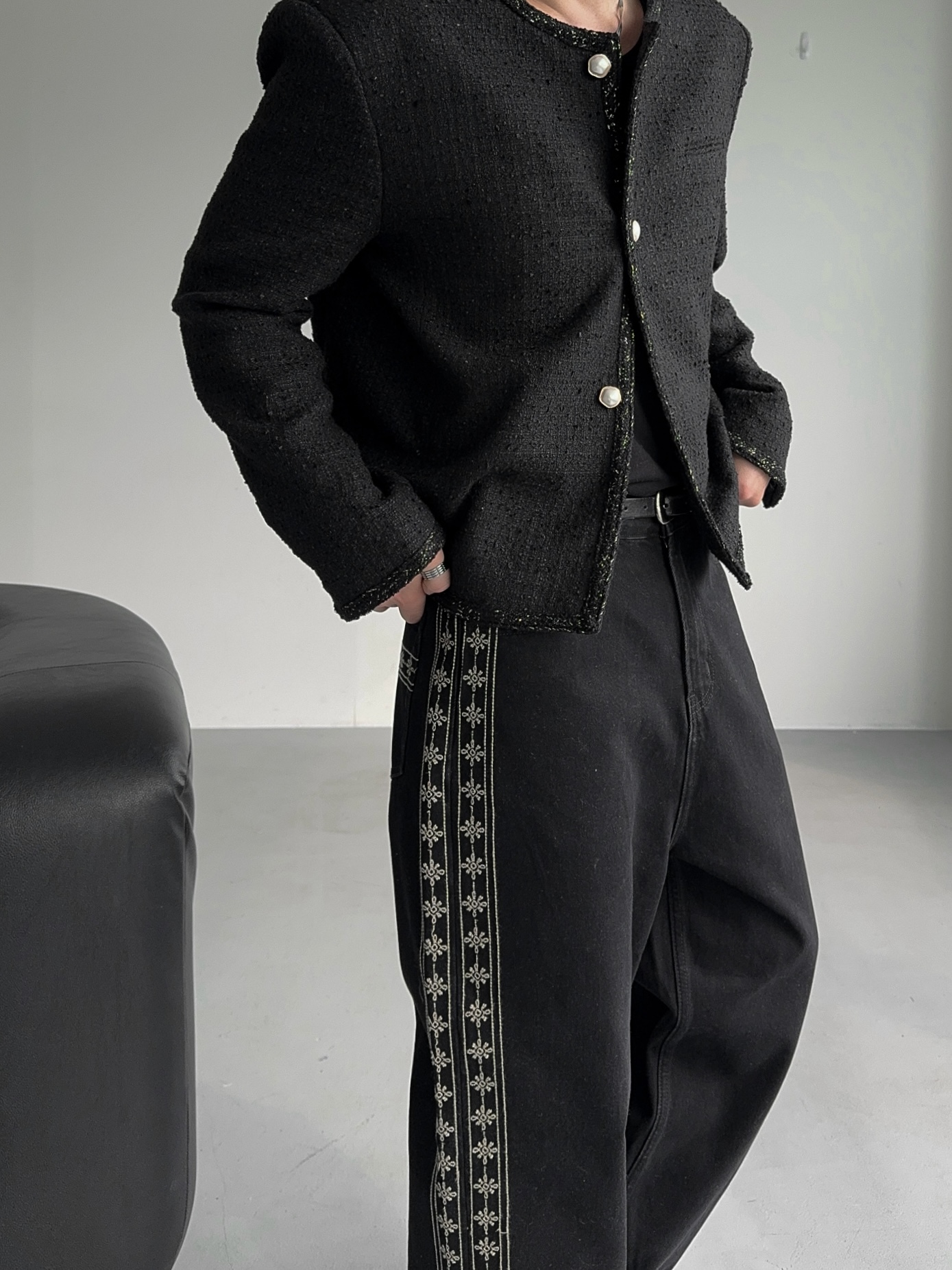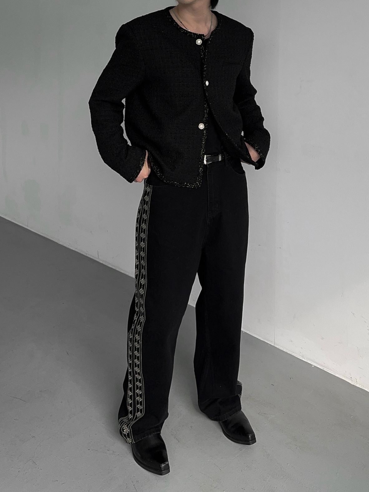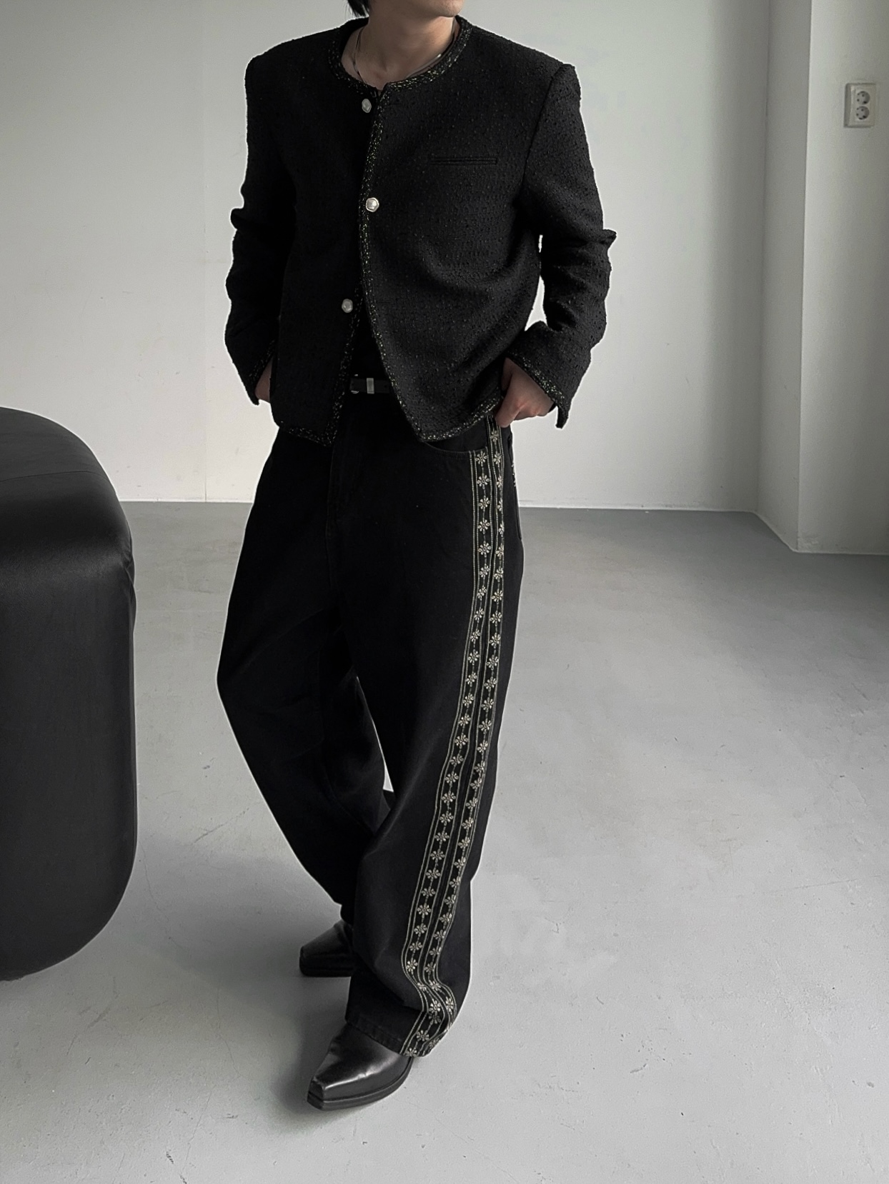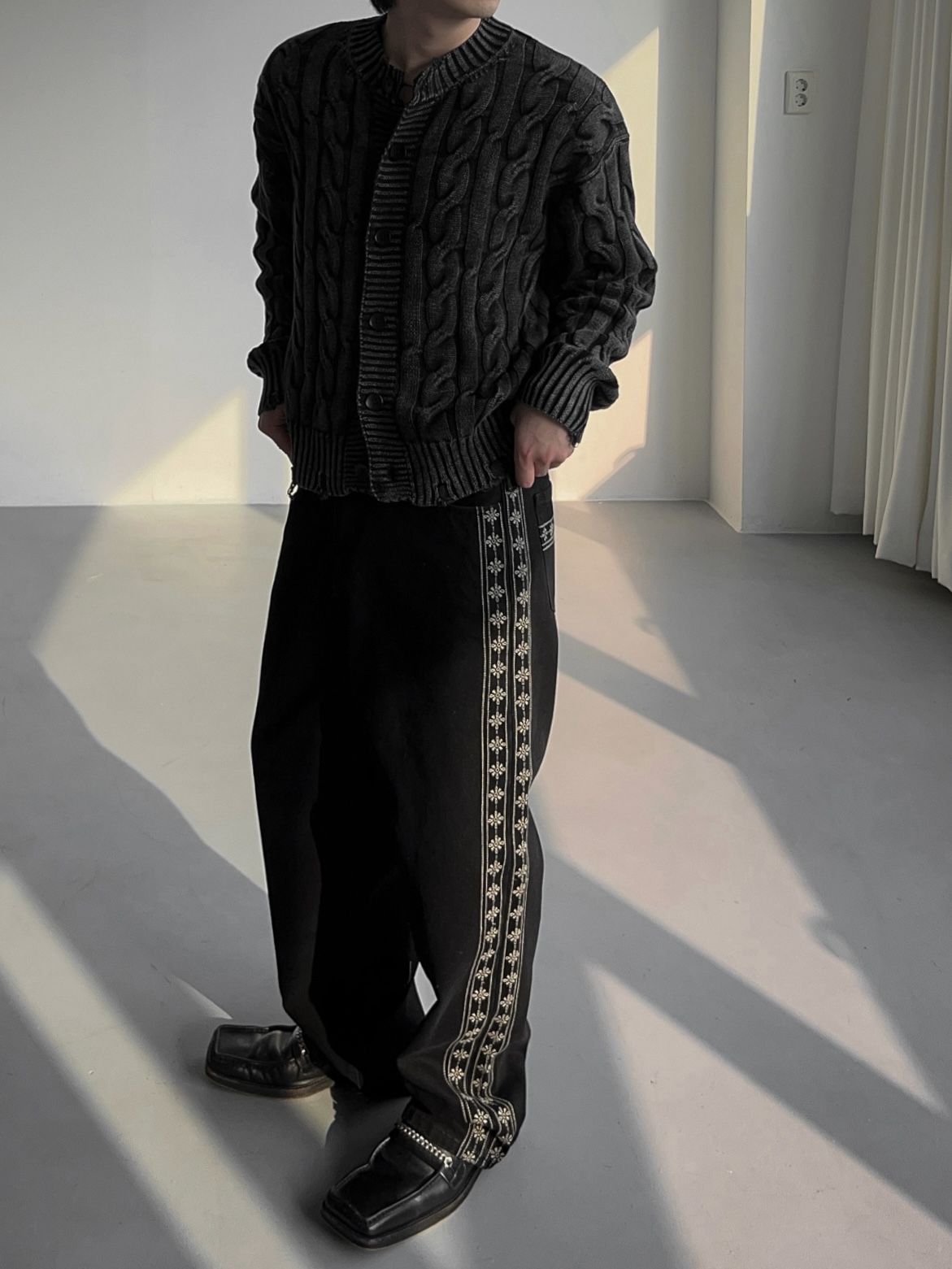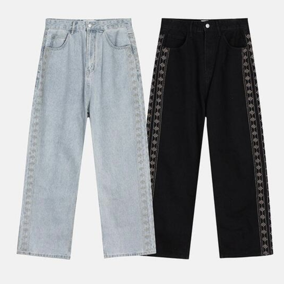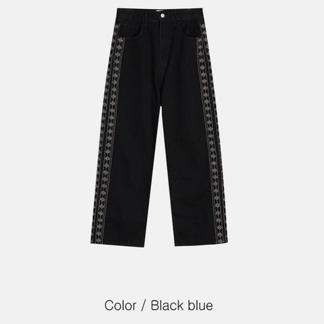 -핸드메이드 스티치 자수 포인트 디자인으로 제작된 데님 팬츠