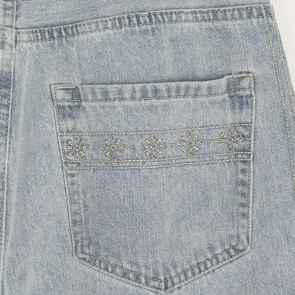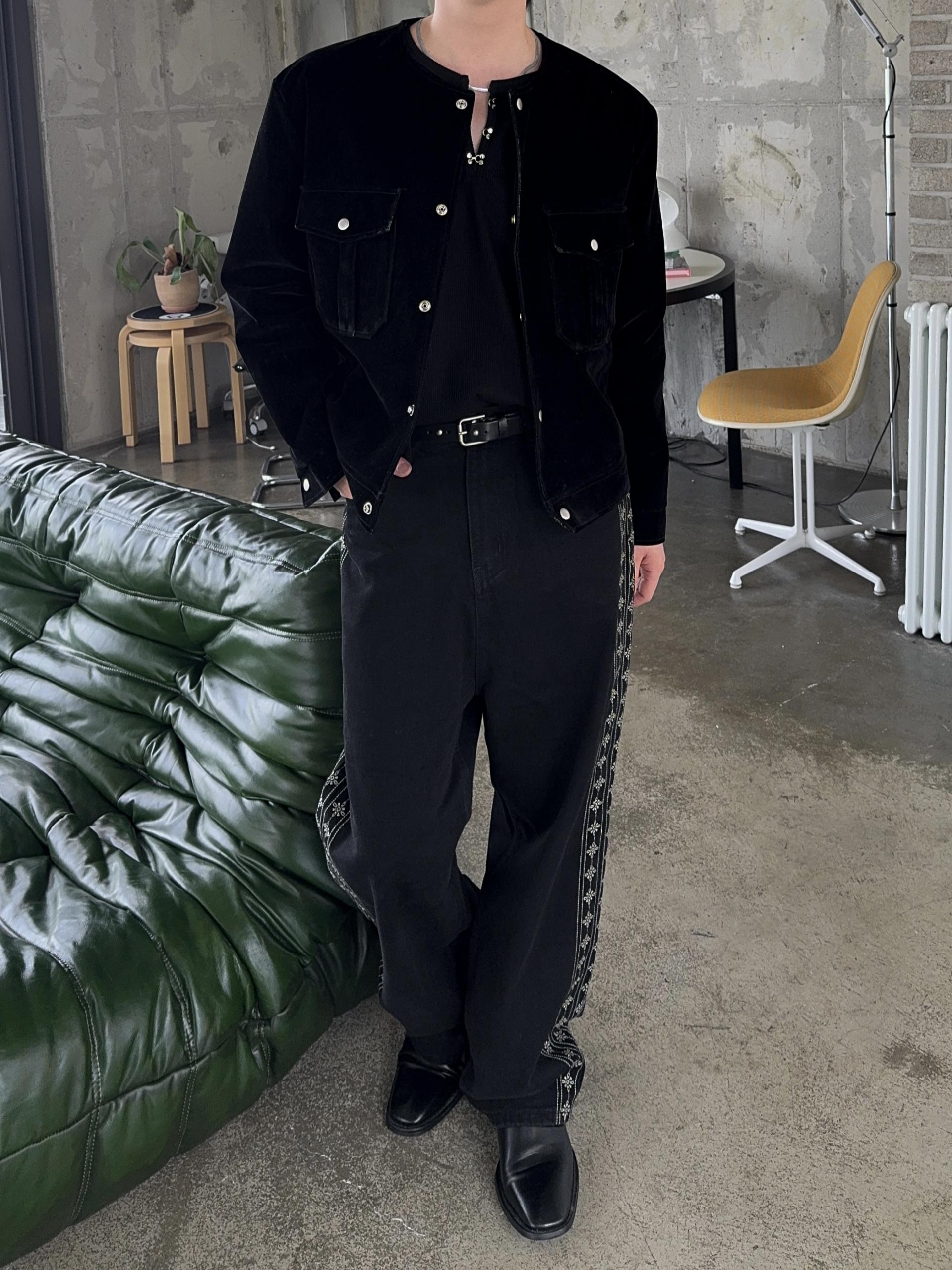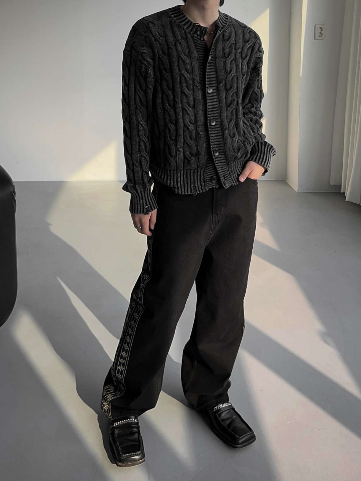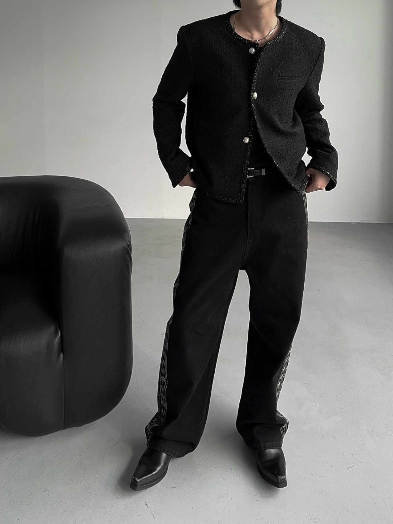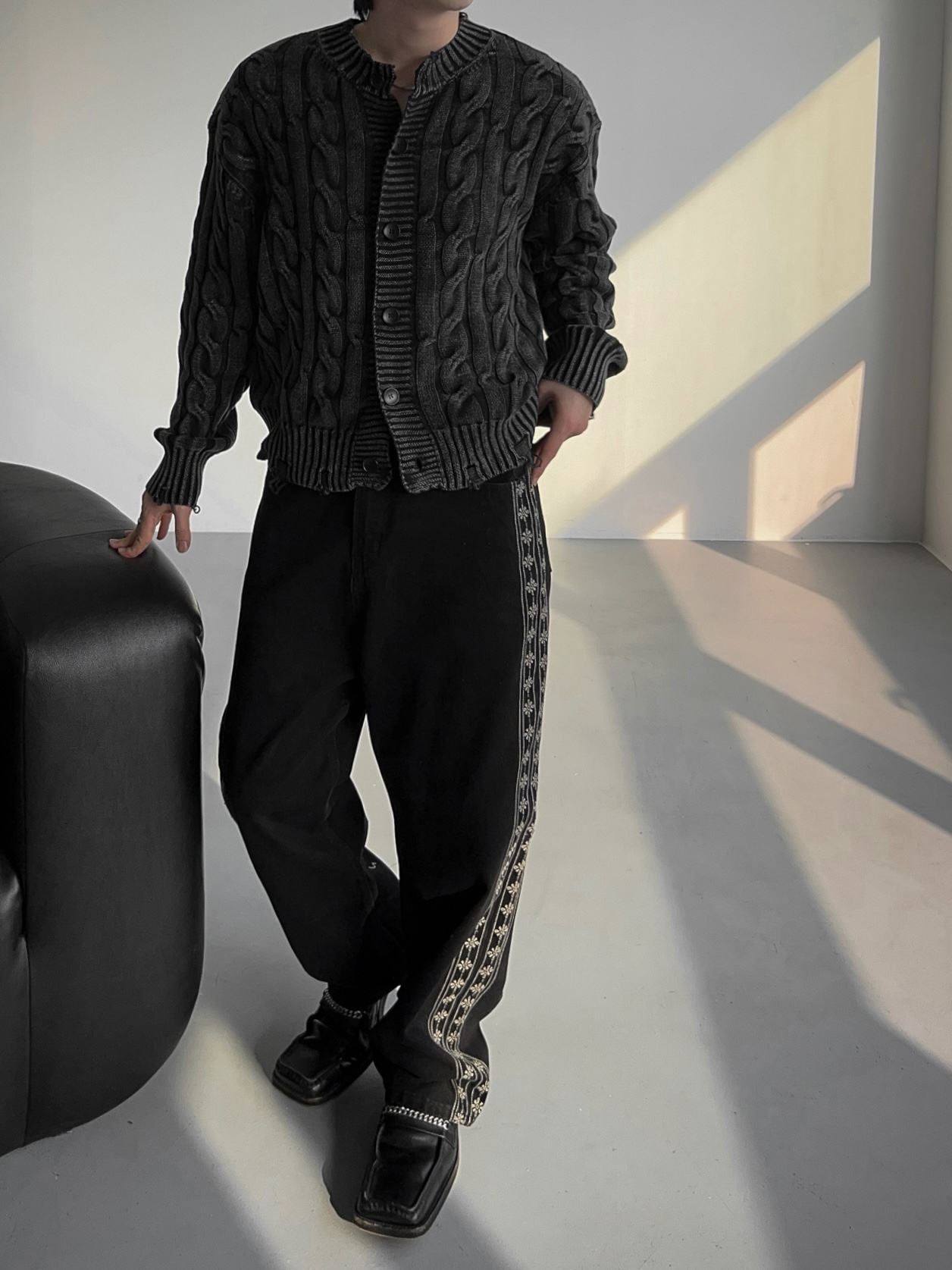 -핸드메이드 스티치 자수 포인트 디자인으로 제작된 데님 팬츠