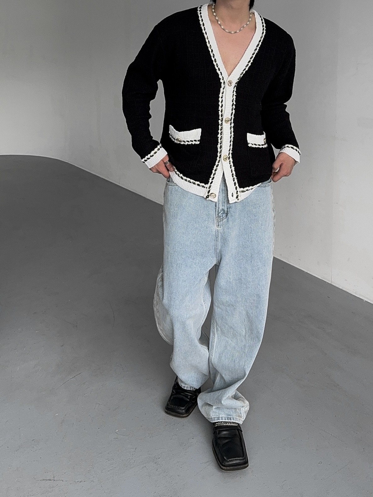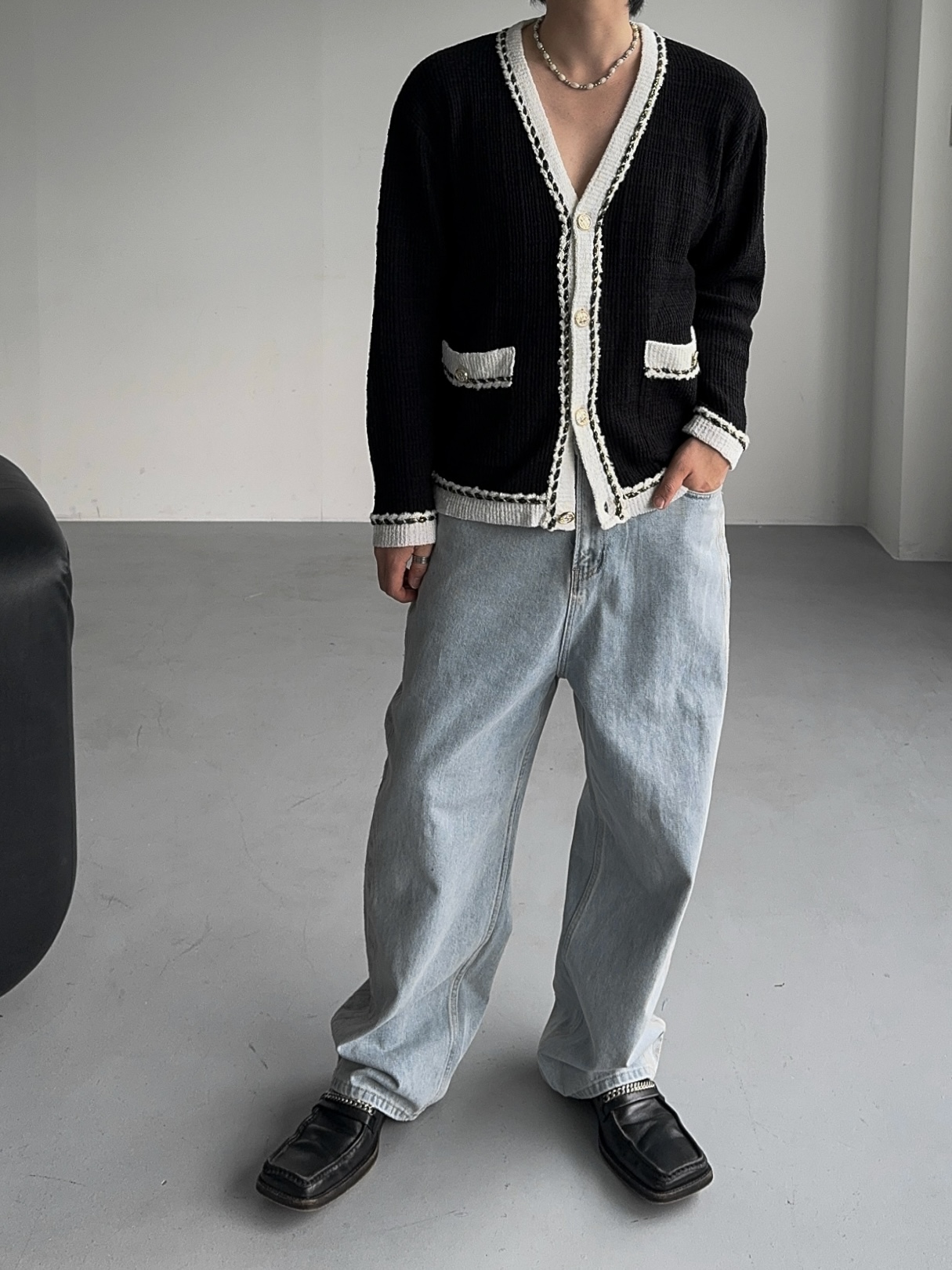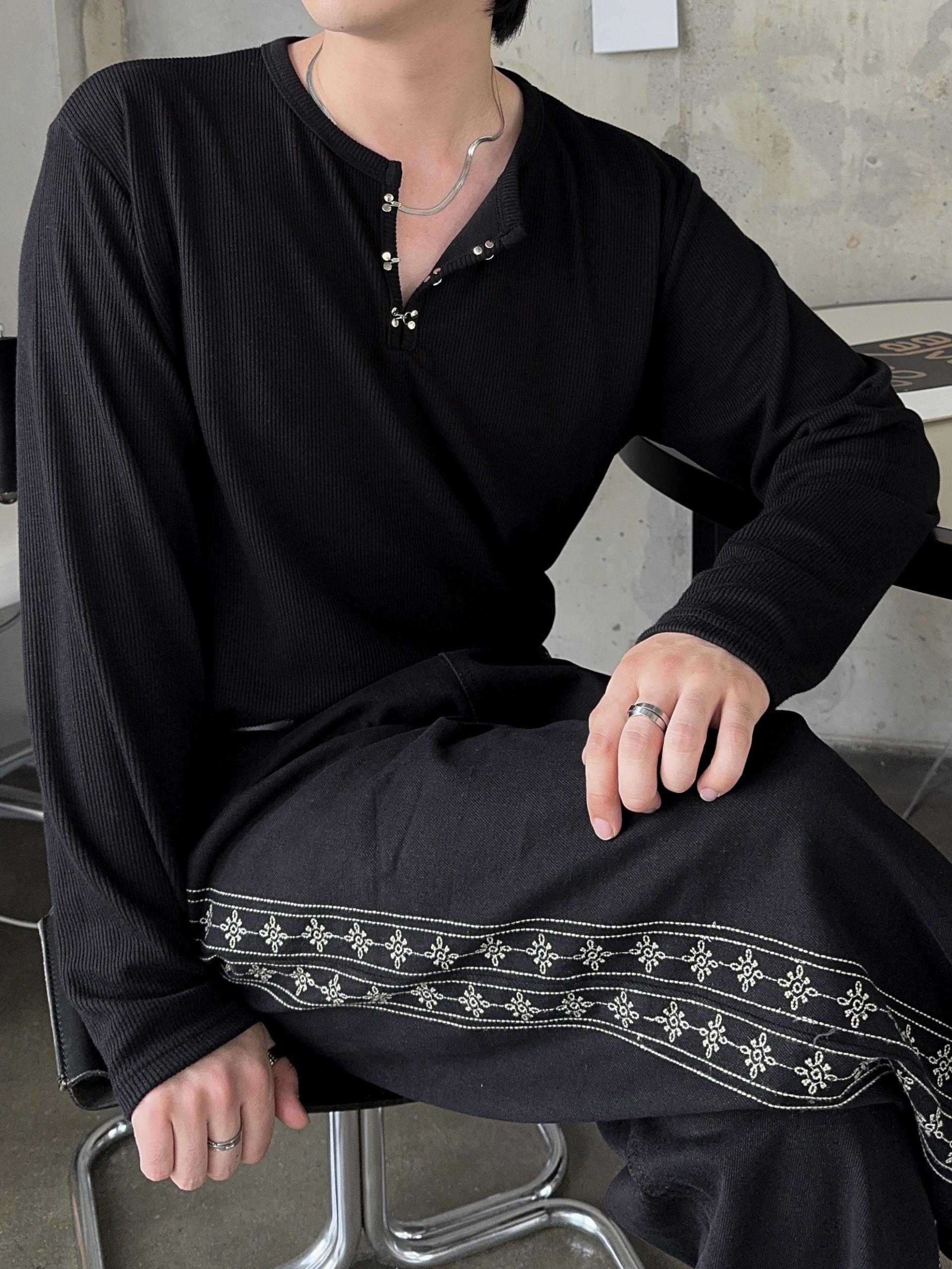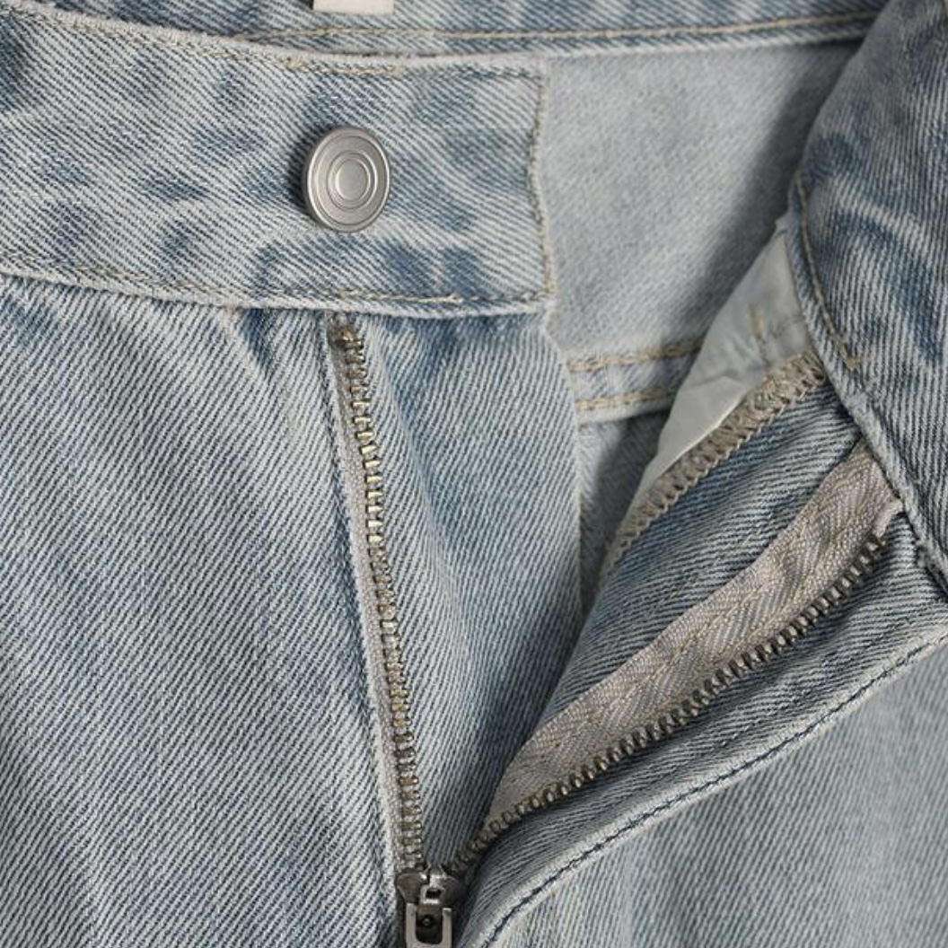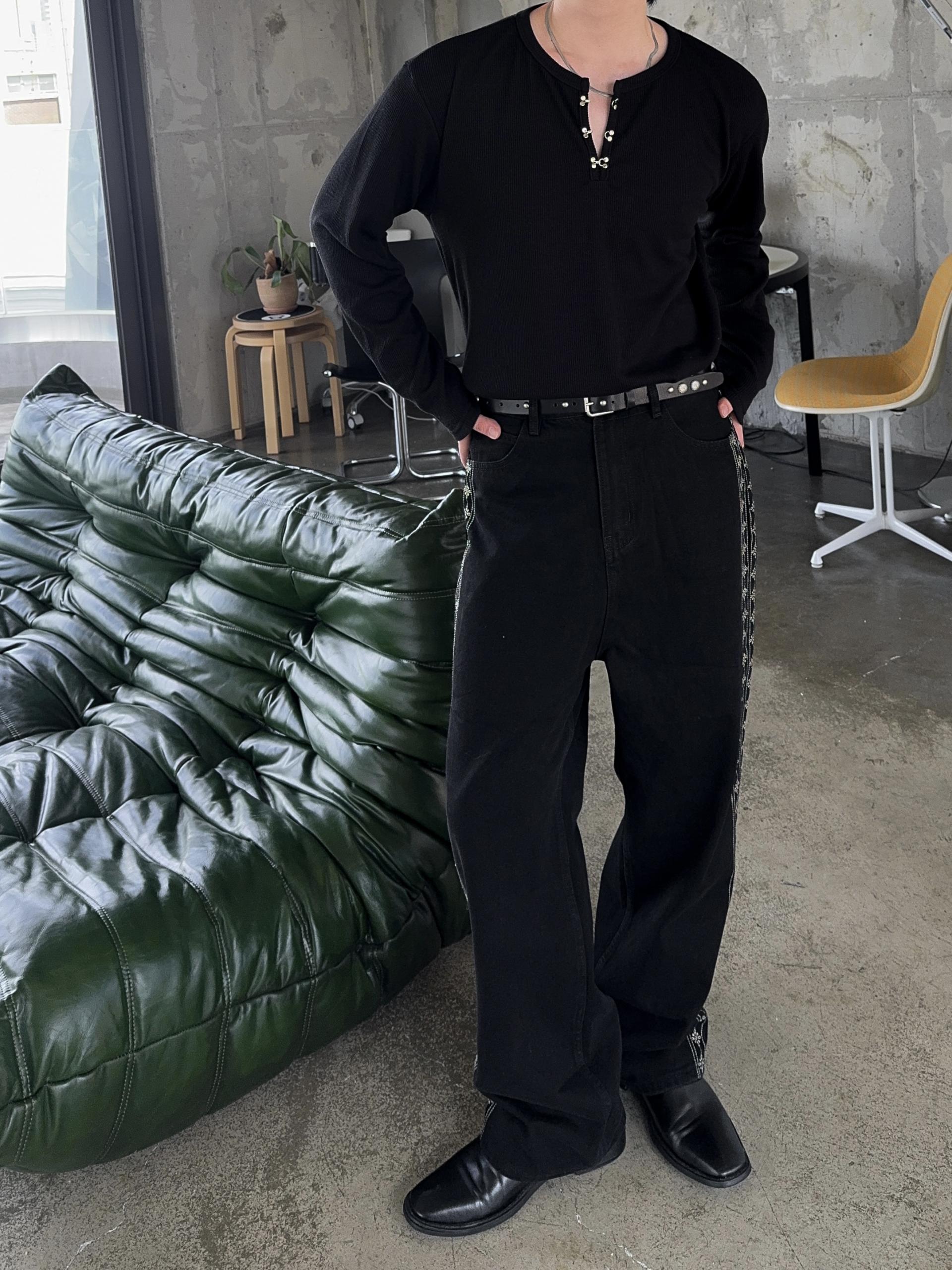 -핸드메이드 스티치 자수 포인트 디자인으로 제작된 데님 팬츠