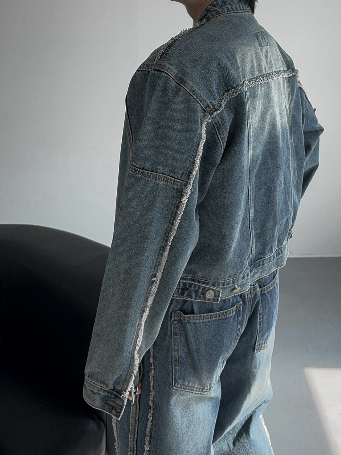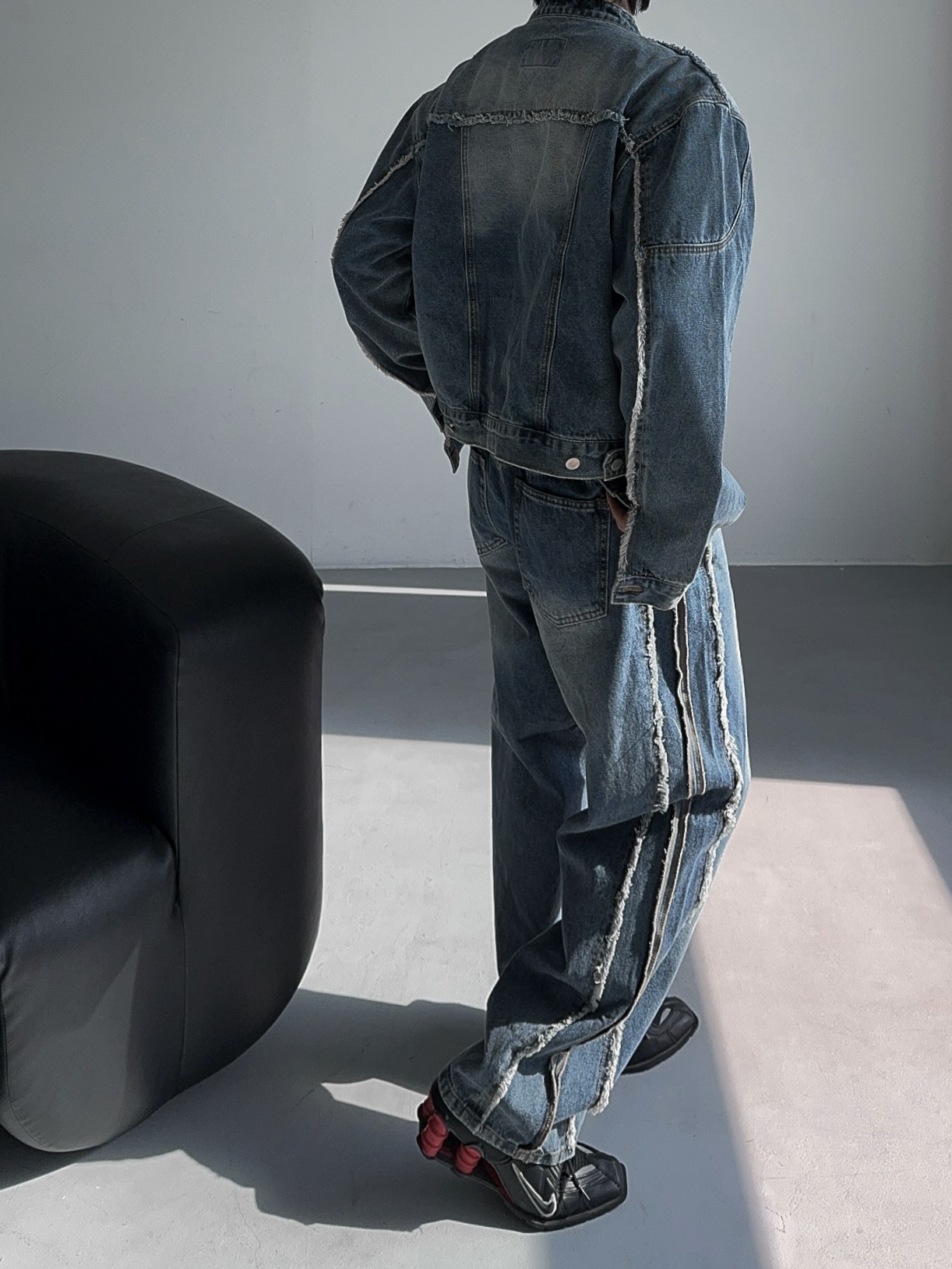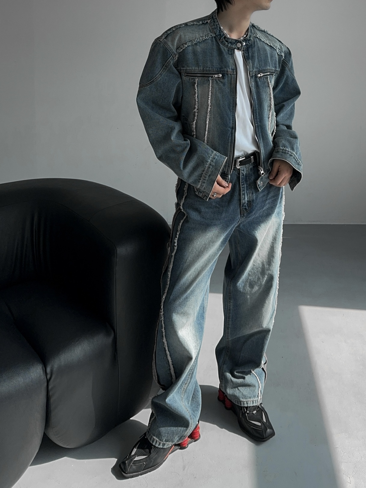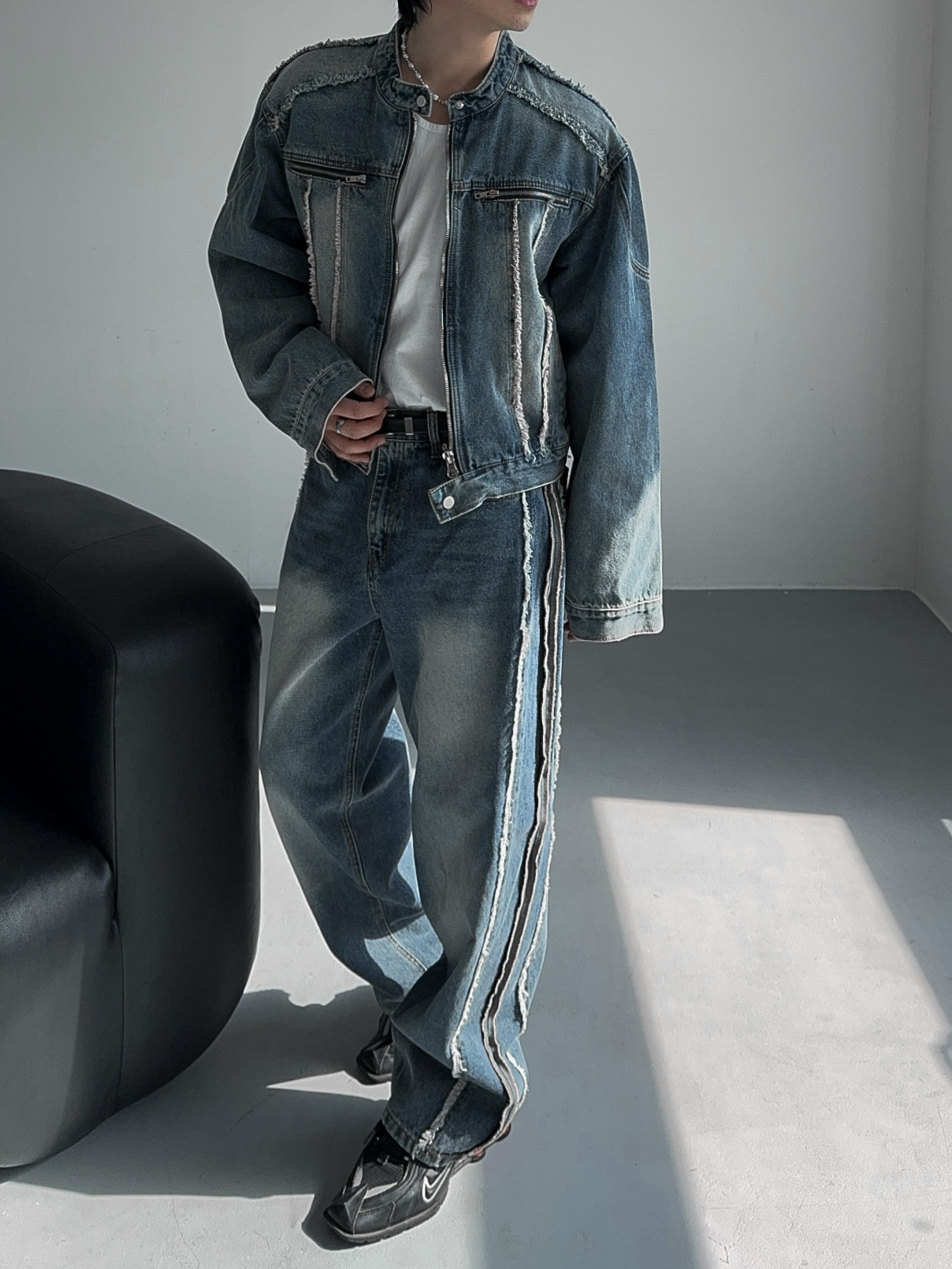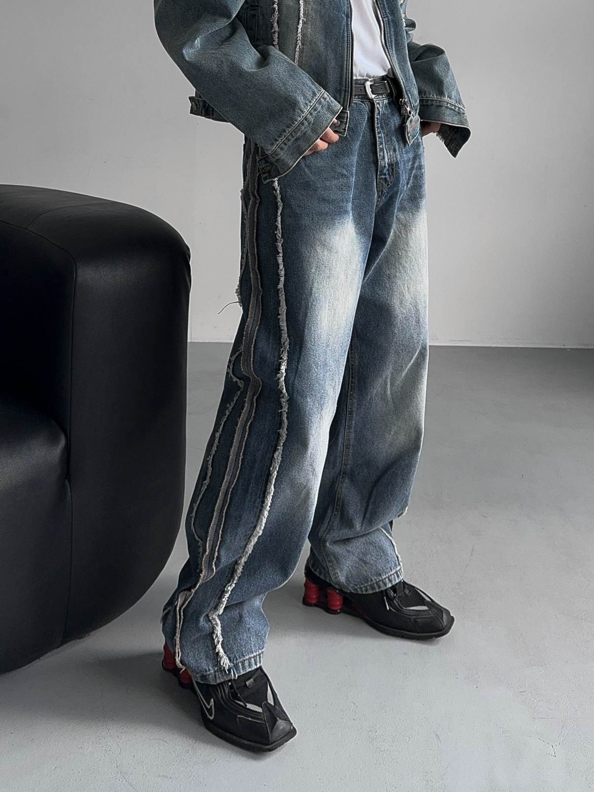 -전체적으로 절개라인 데끼 디테일과 빈티지한 워싱감으로 유니크한 디자인