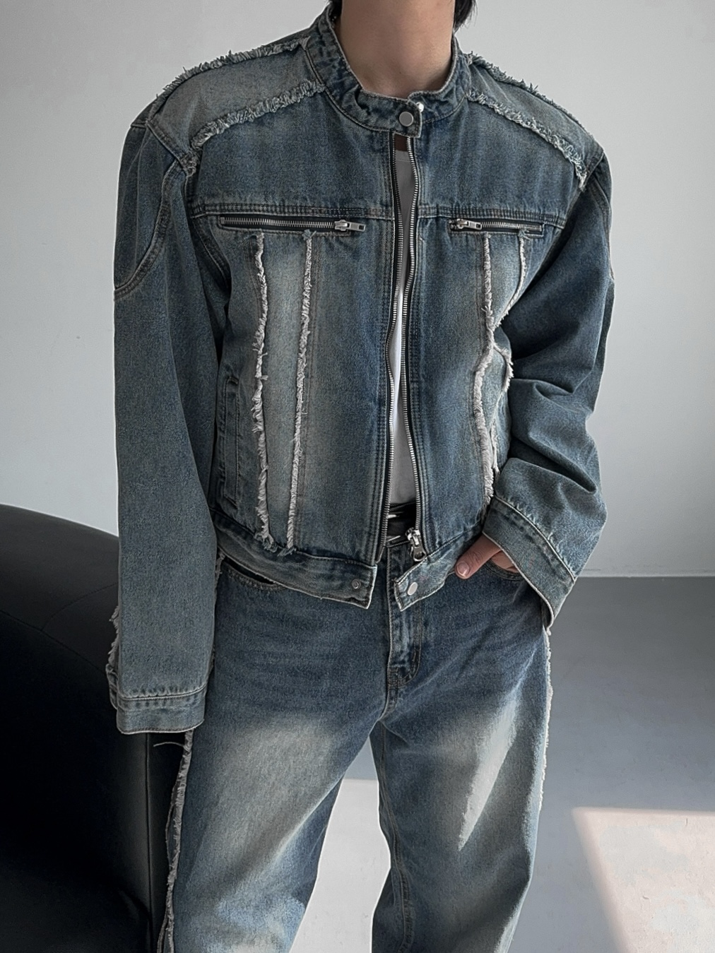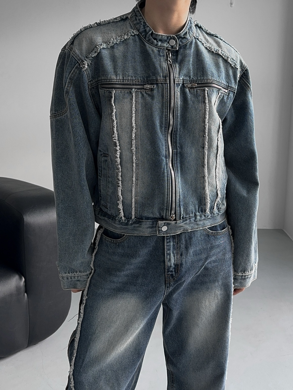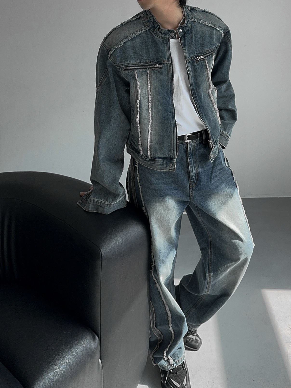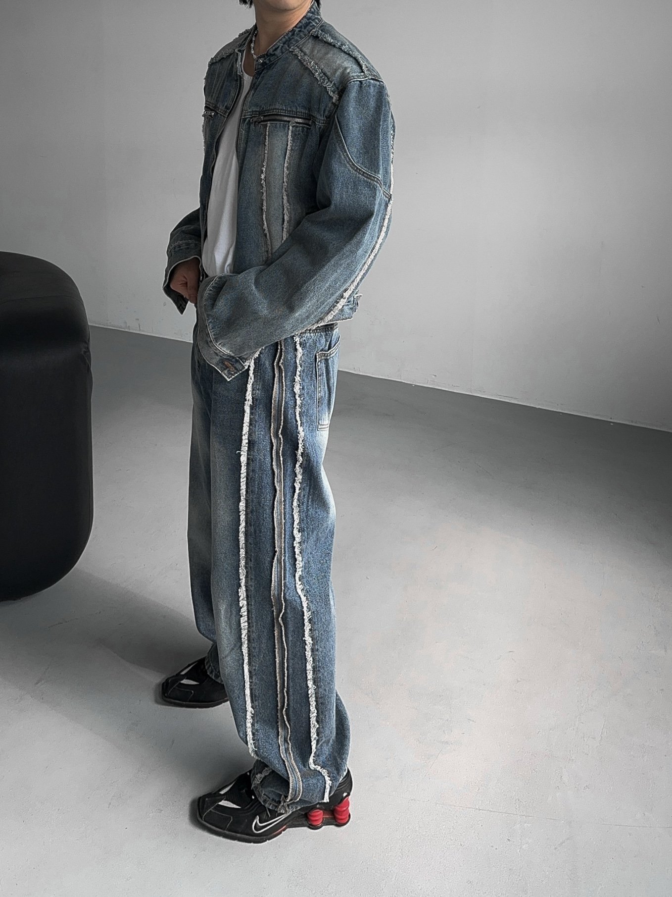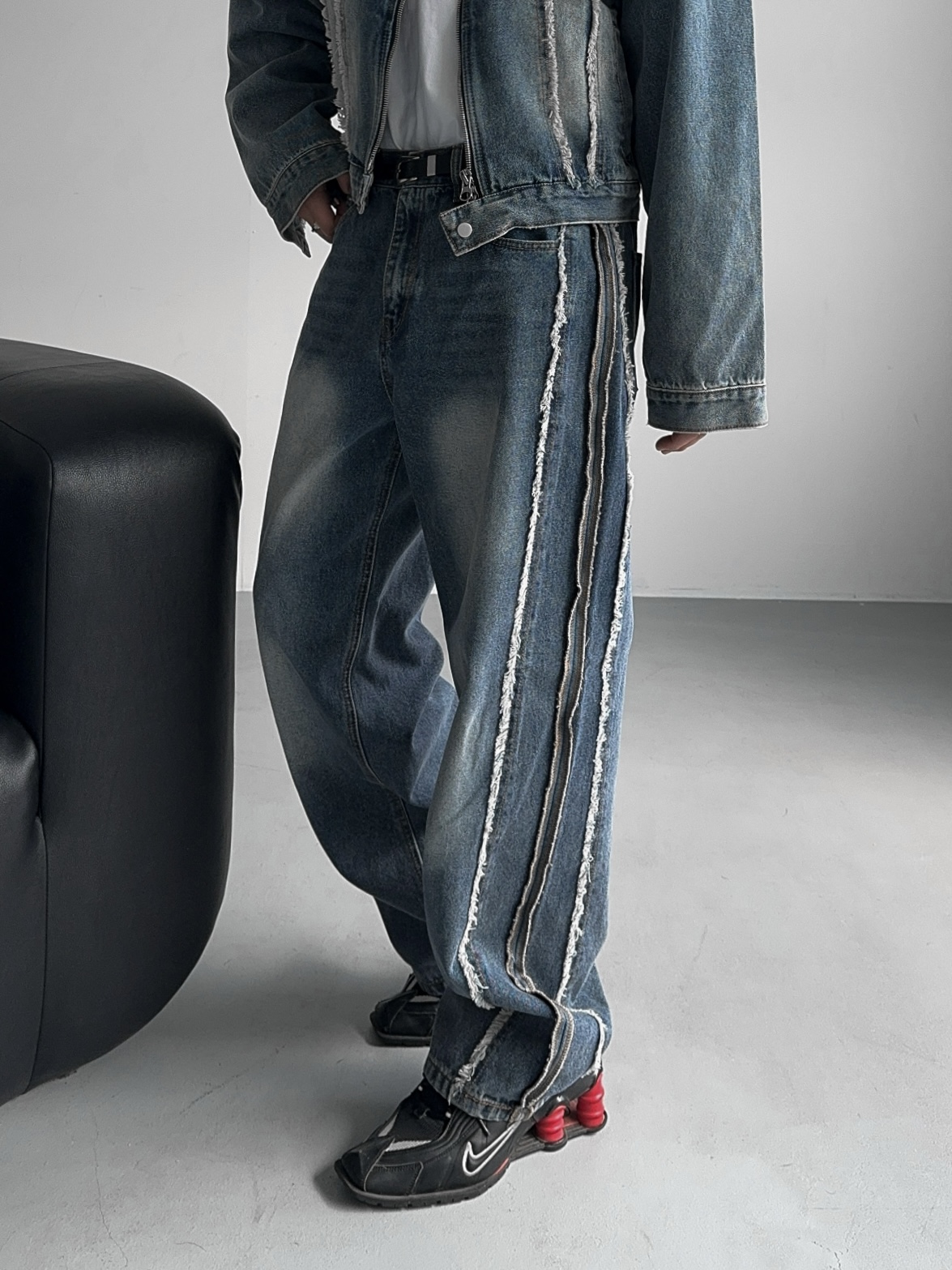 -전체적으로 절개라인 데끼 디테일과 빈티지한 워싱감으로 유니크한 디자인