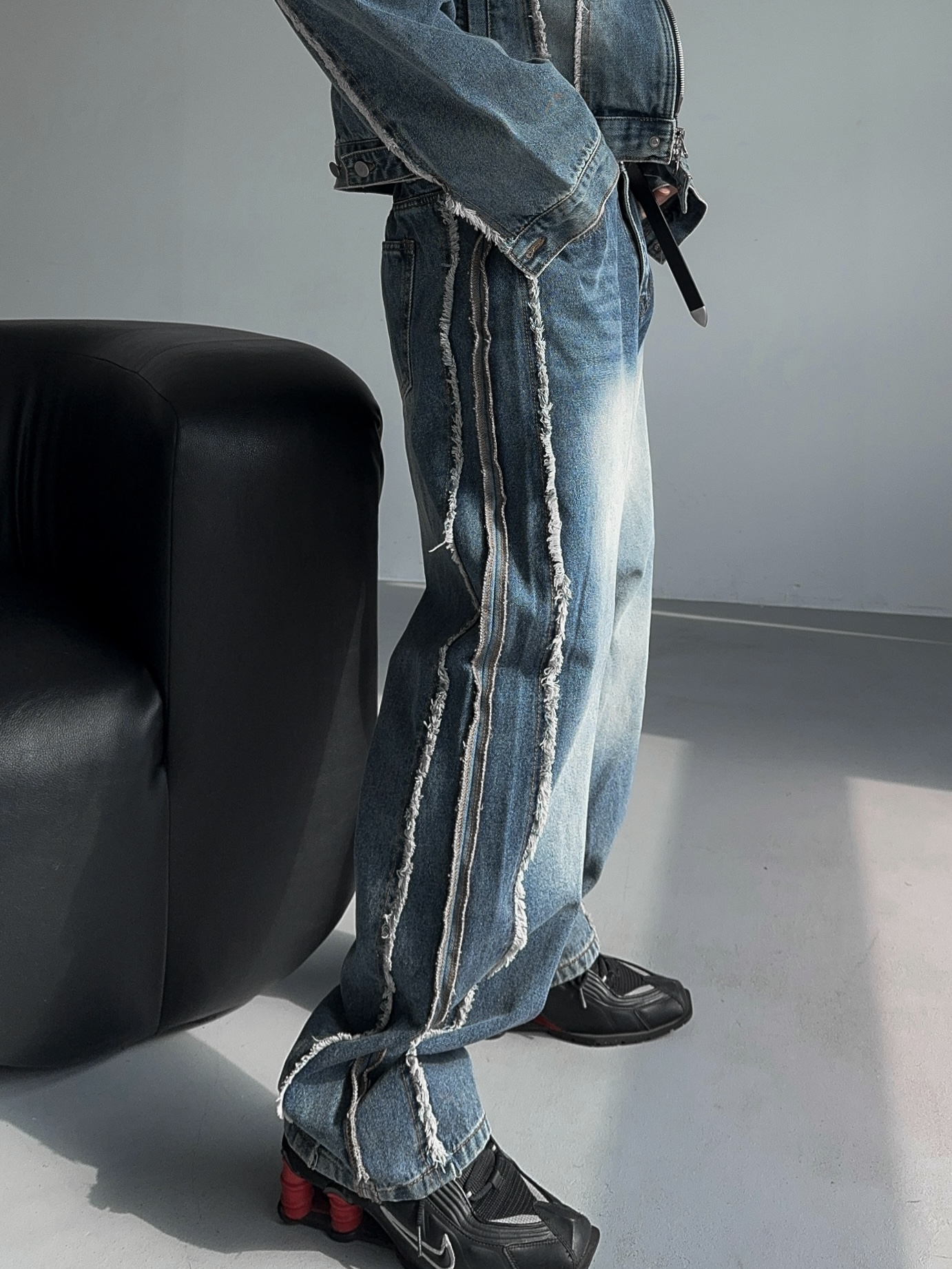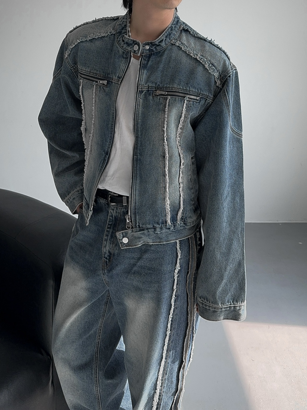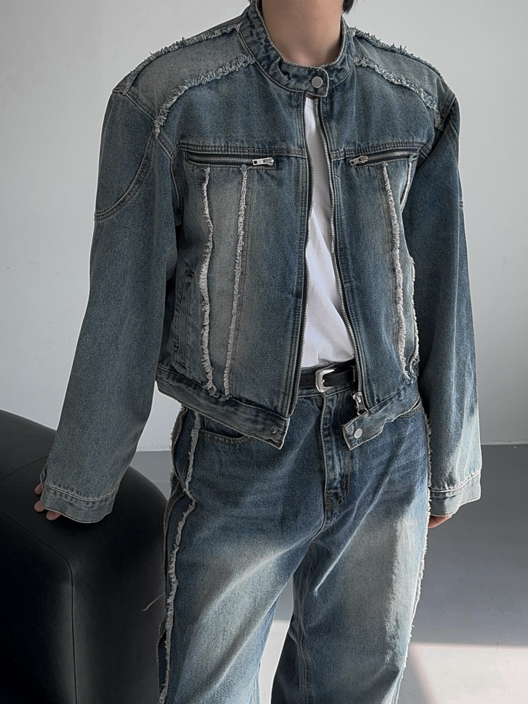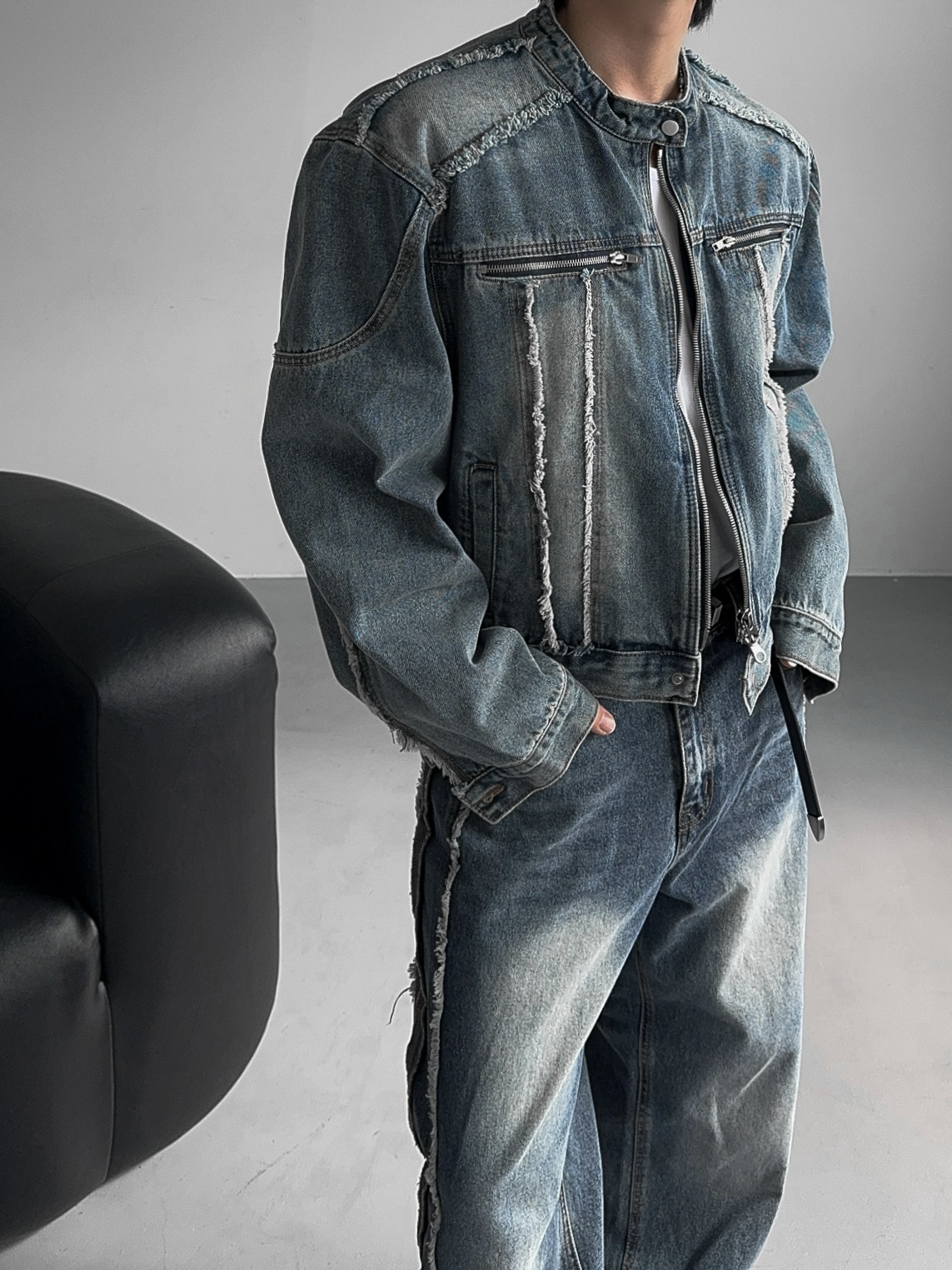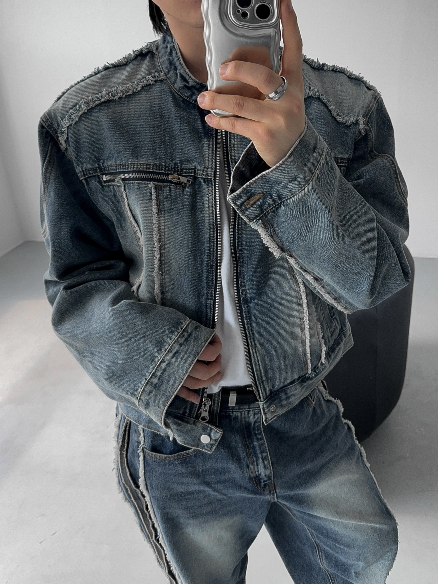 -전체적으로 절개라인 데끼 디테일과 빈티지한 워싱감으로 유니크한 디자인