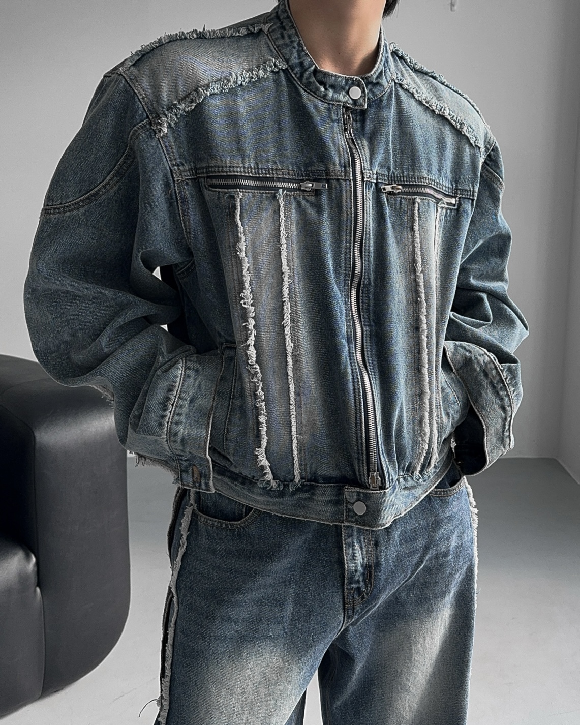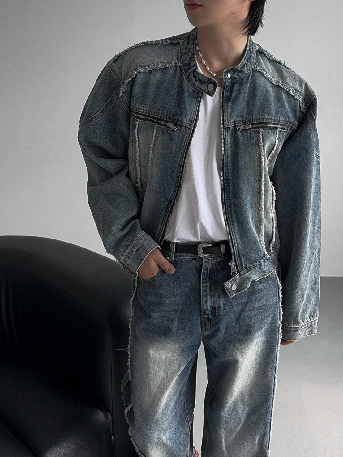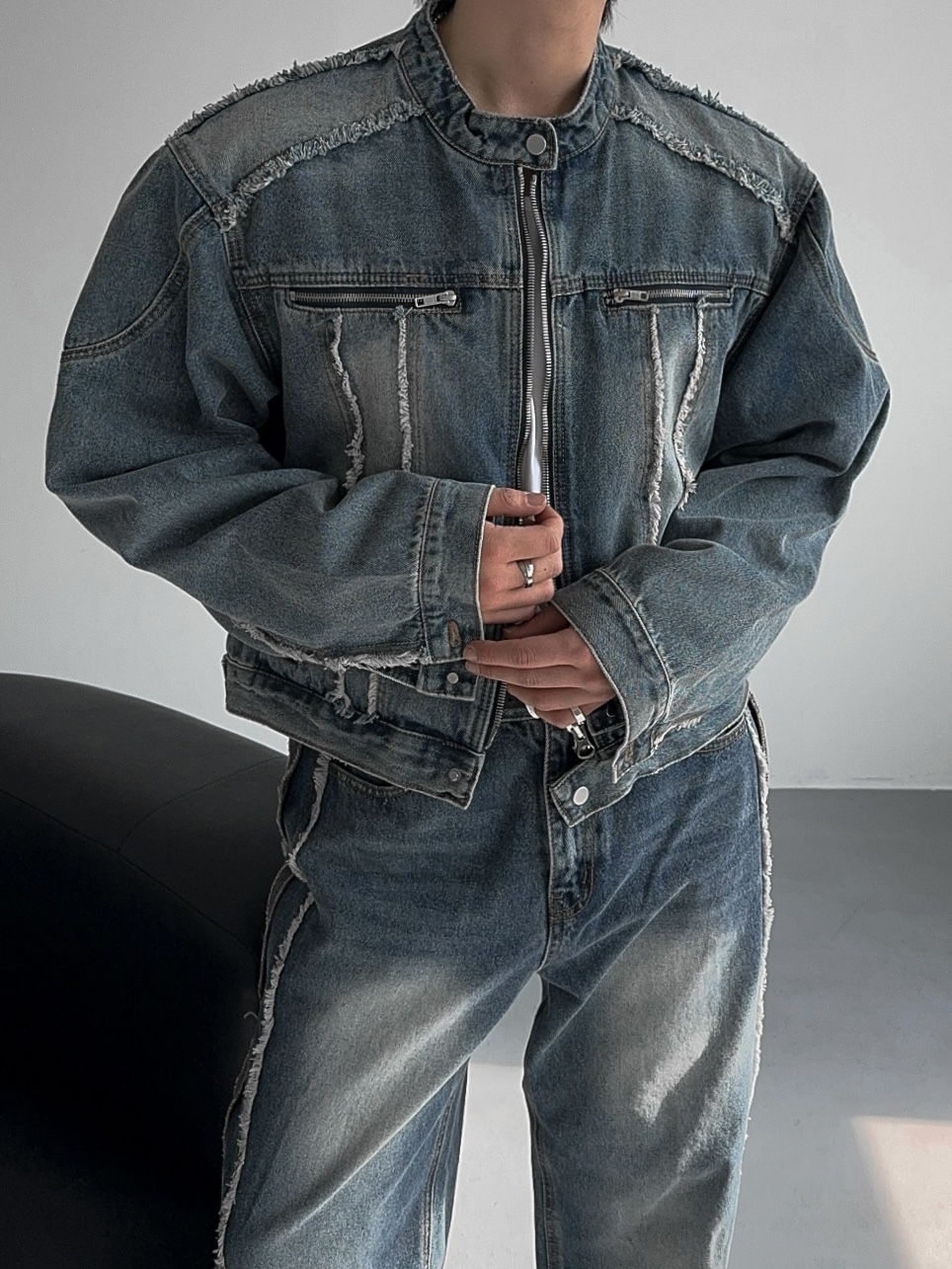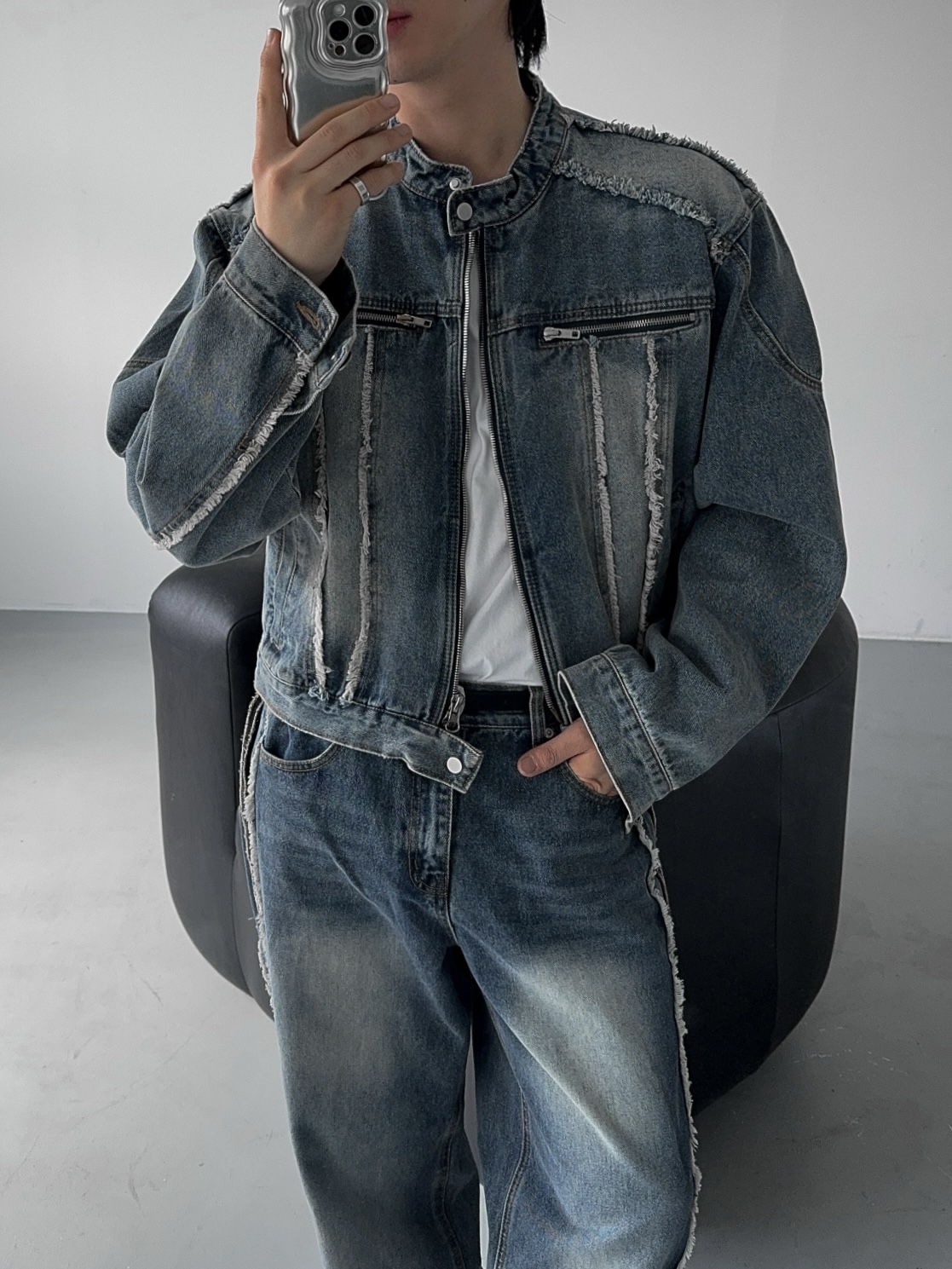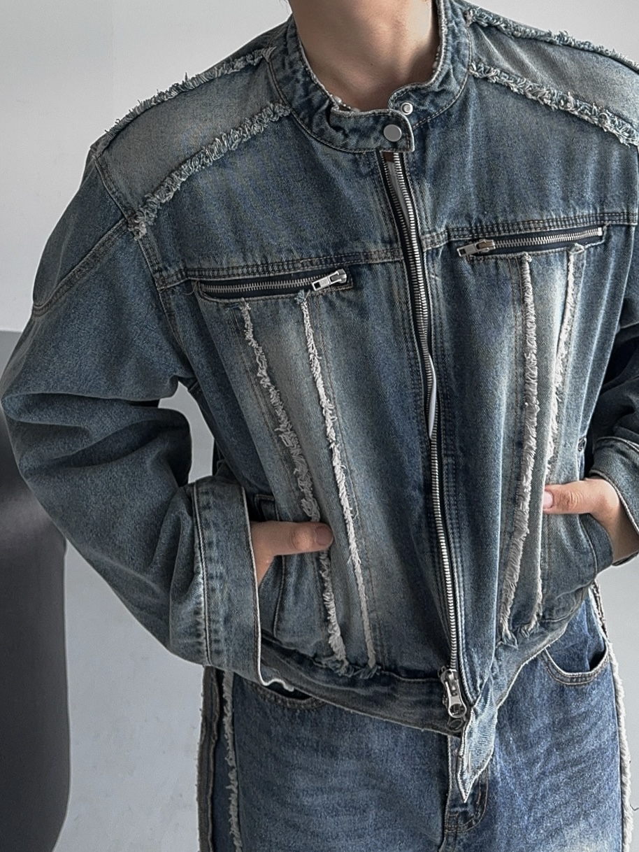 -전체적으로 절개라인 데끼 디테일과 빈티지한 워싱감으로 유니크한 디자인