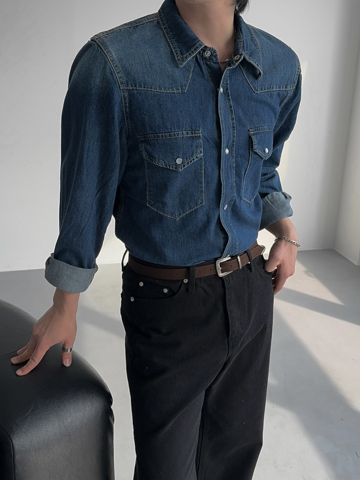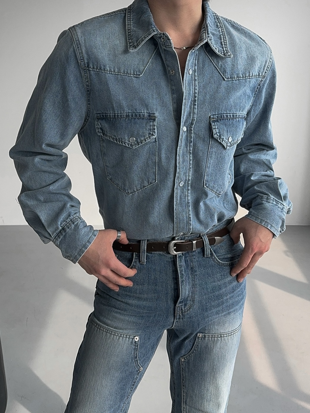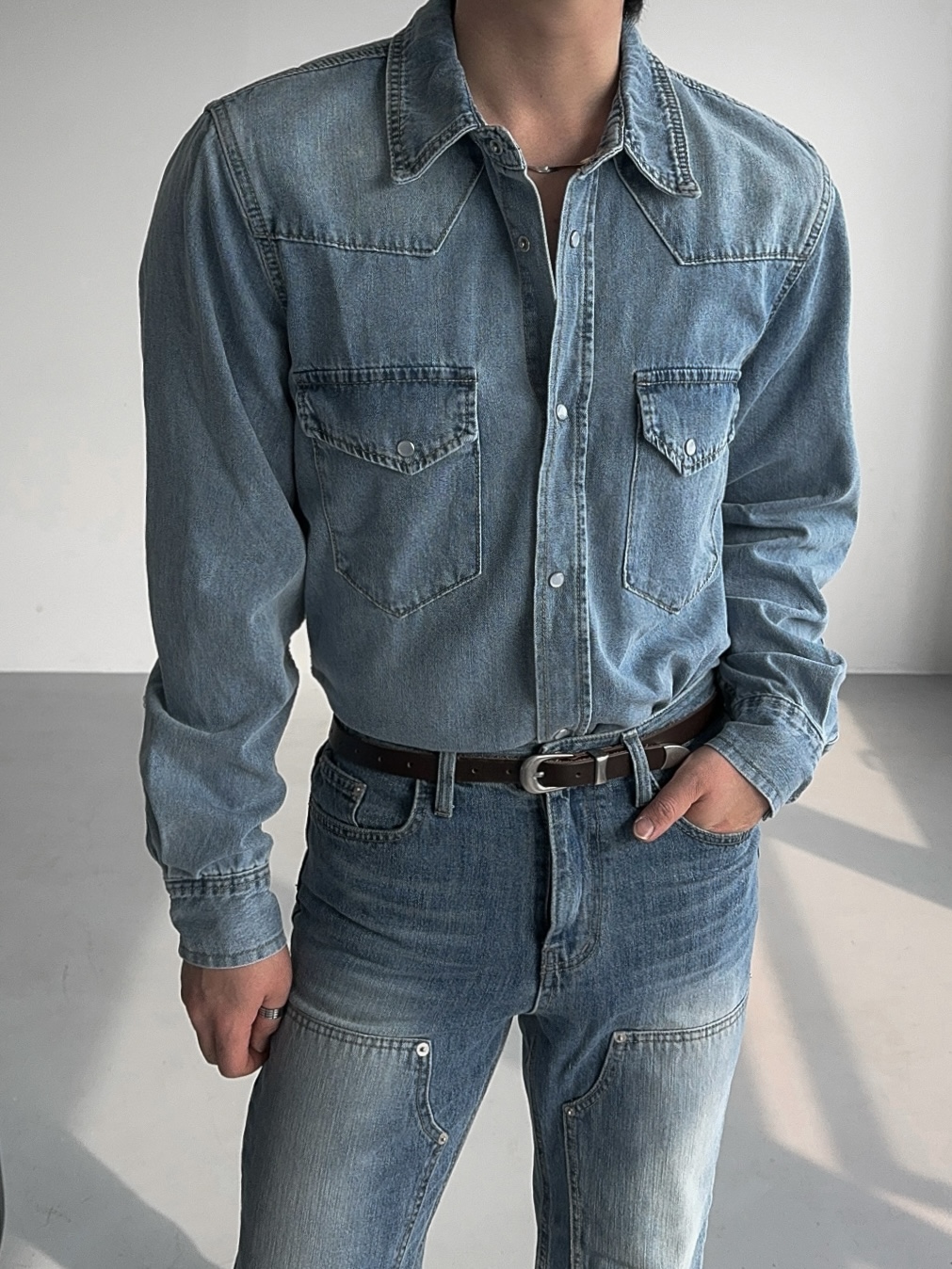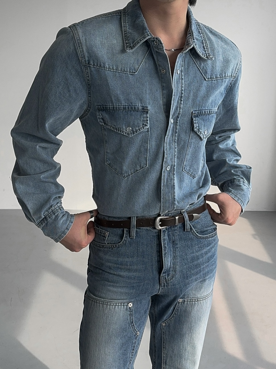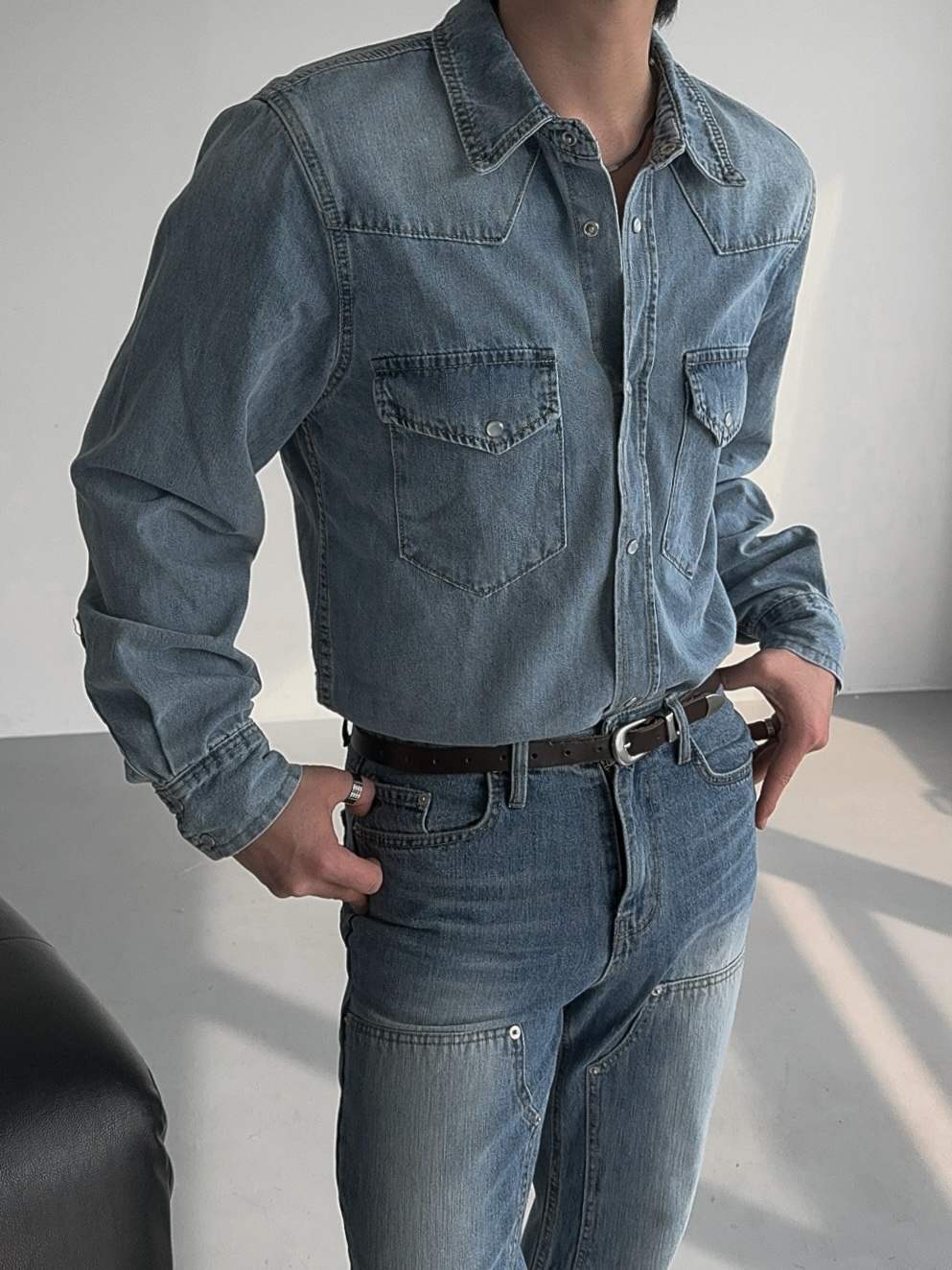 -탄탄한 데님 원단으로 제작된 셔츠