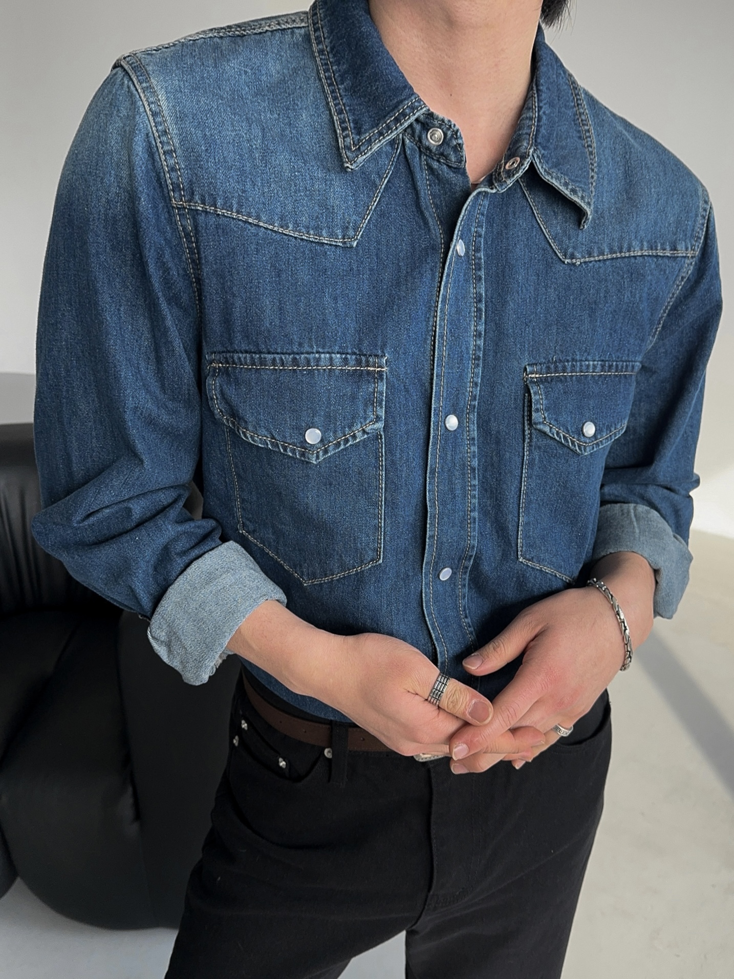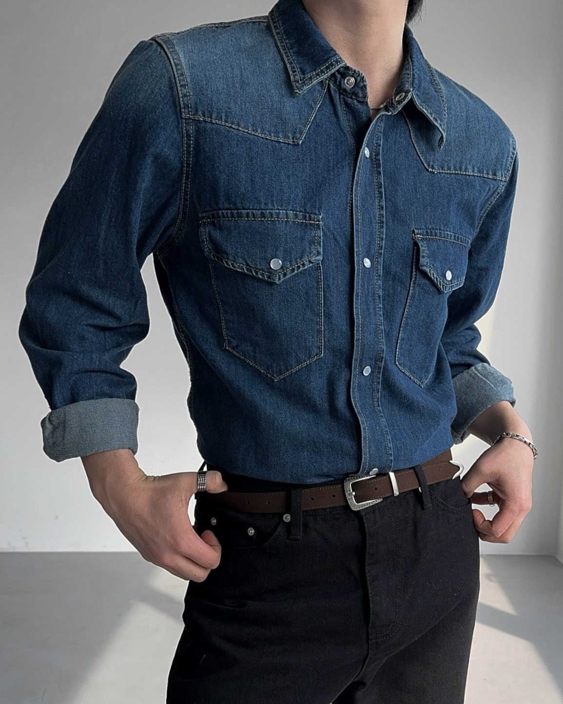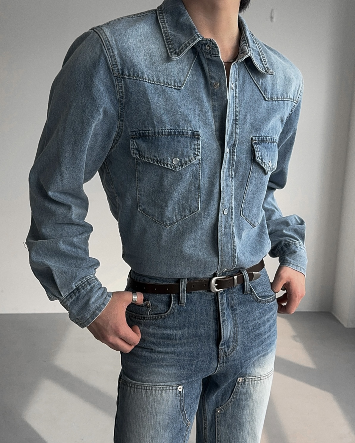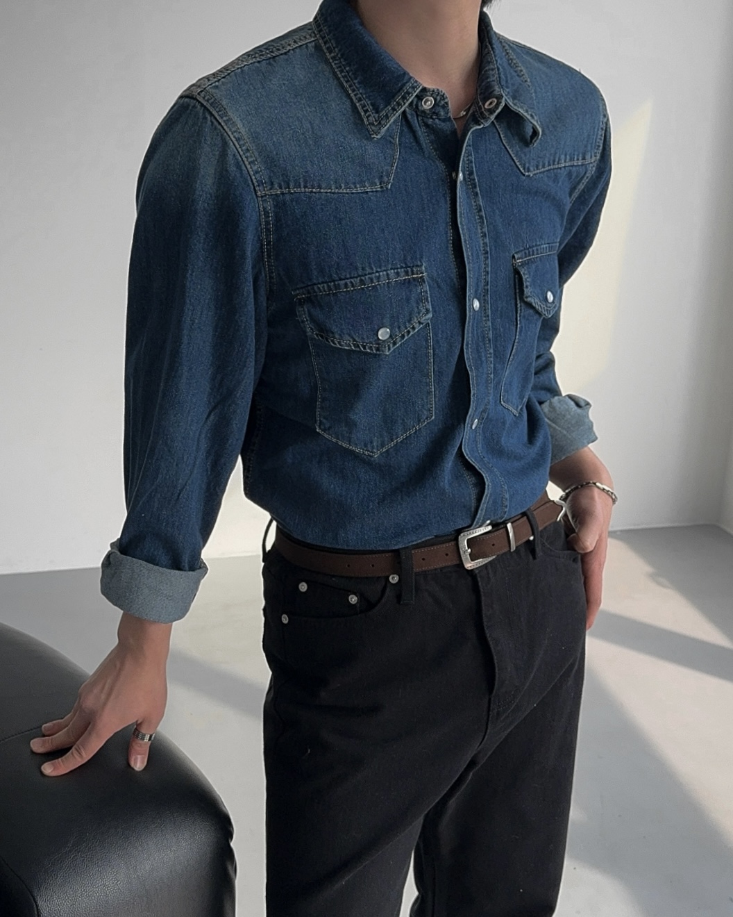 -탄탄한 데님 원단으로 제작된 셔츠