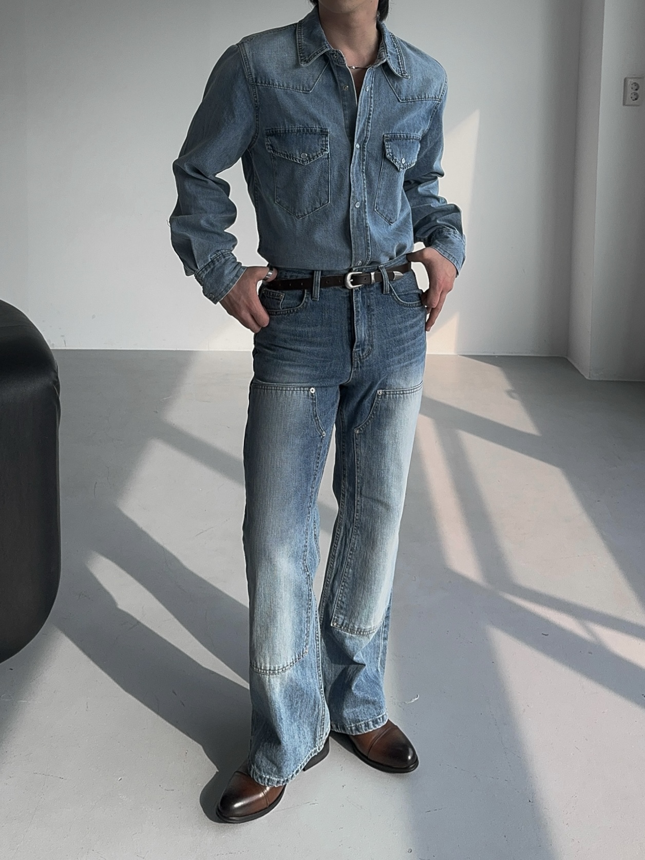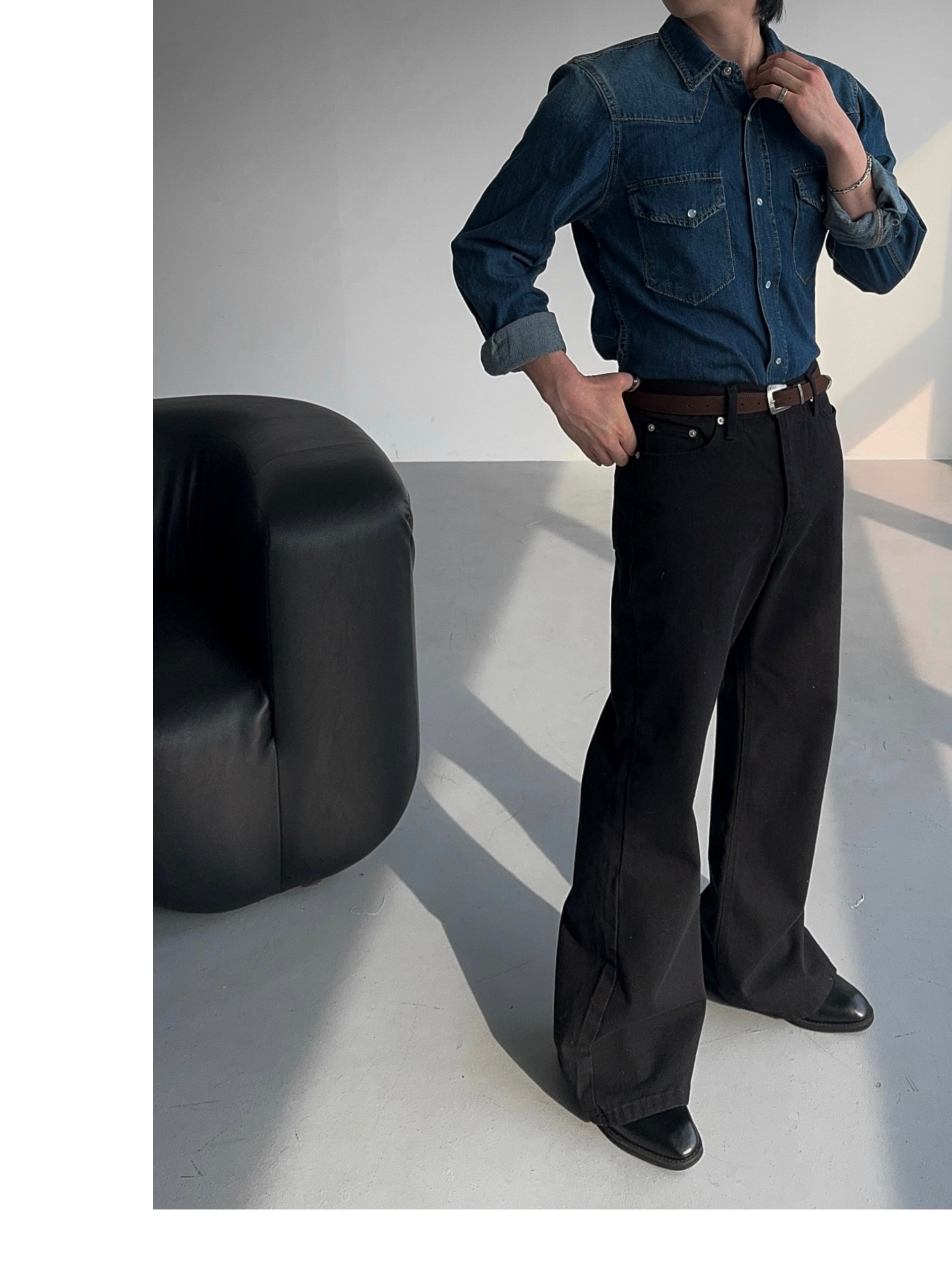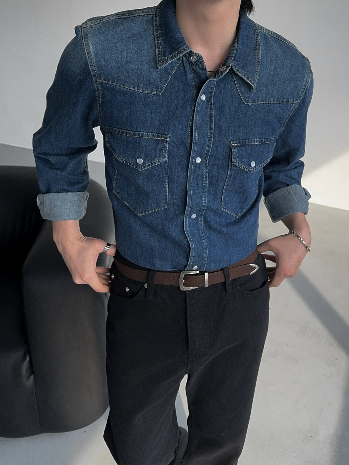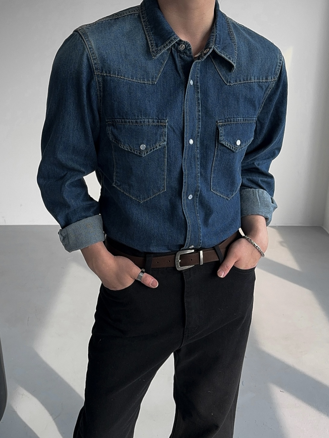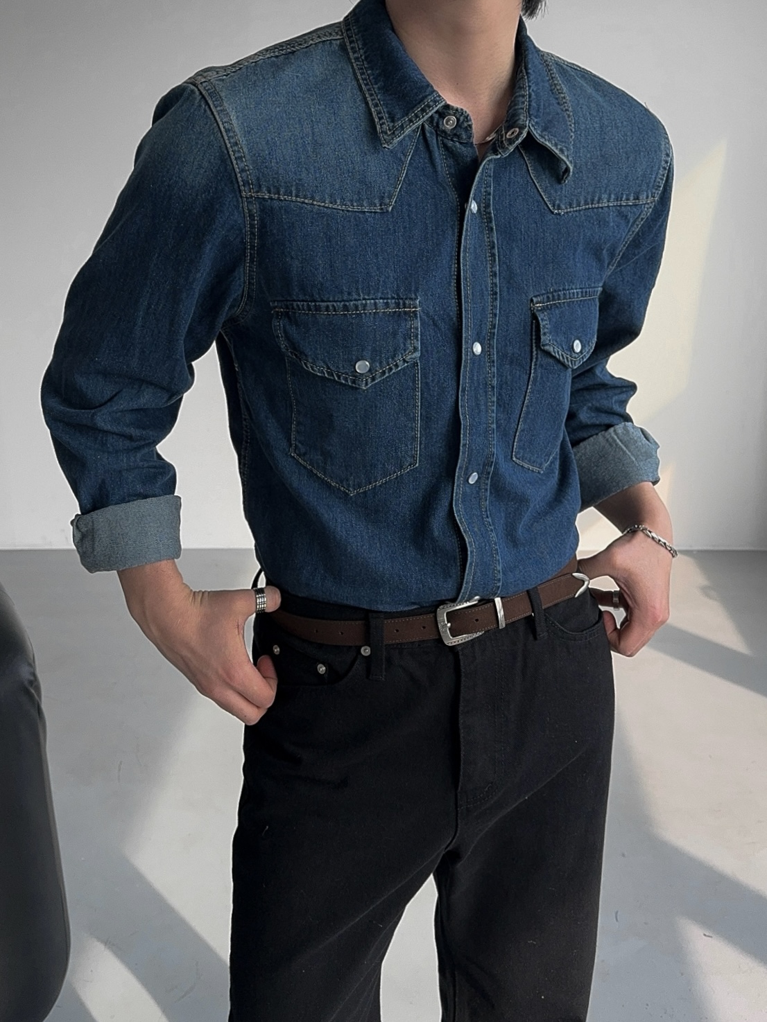 -탄탄한 데님 원단으로 제작된 셔츠