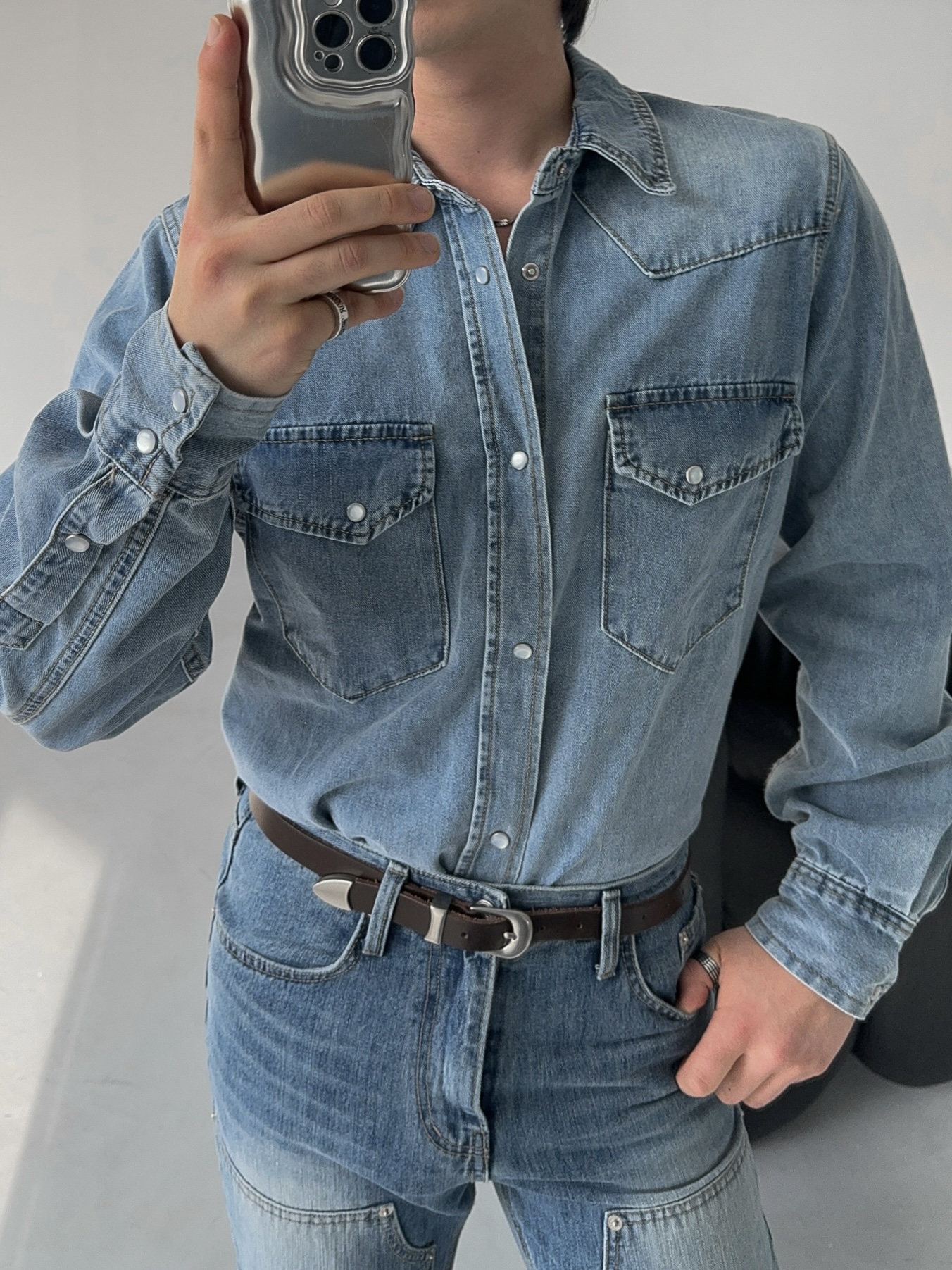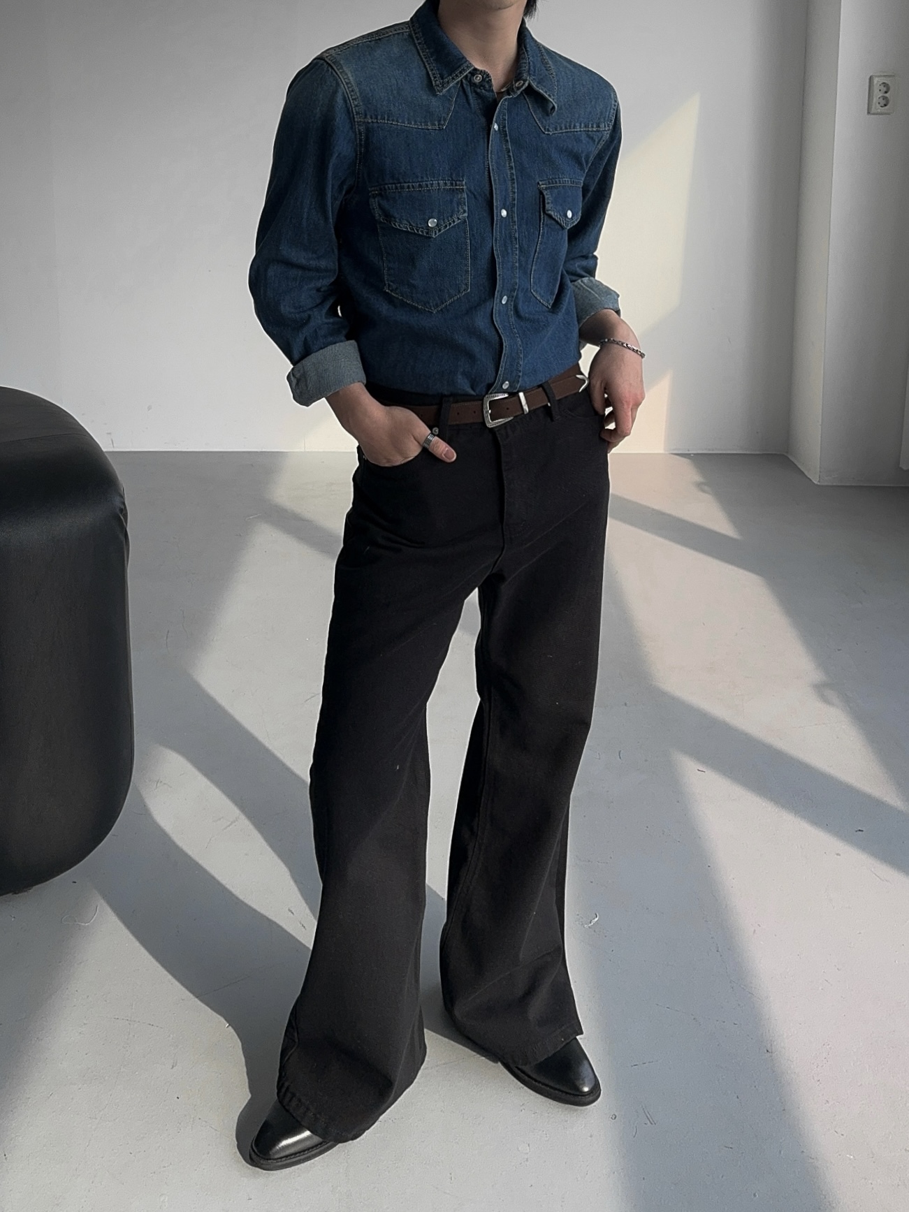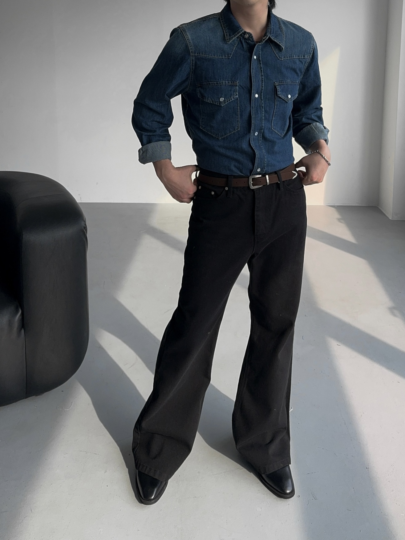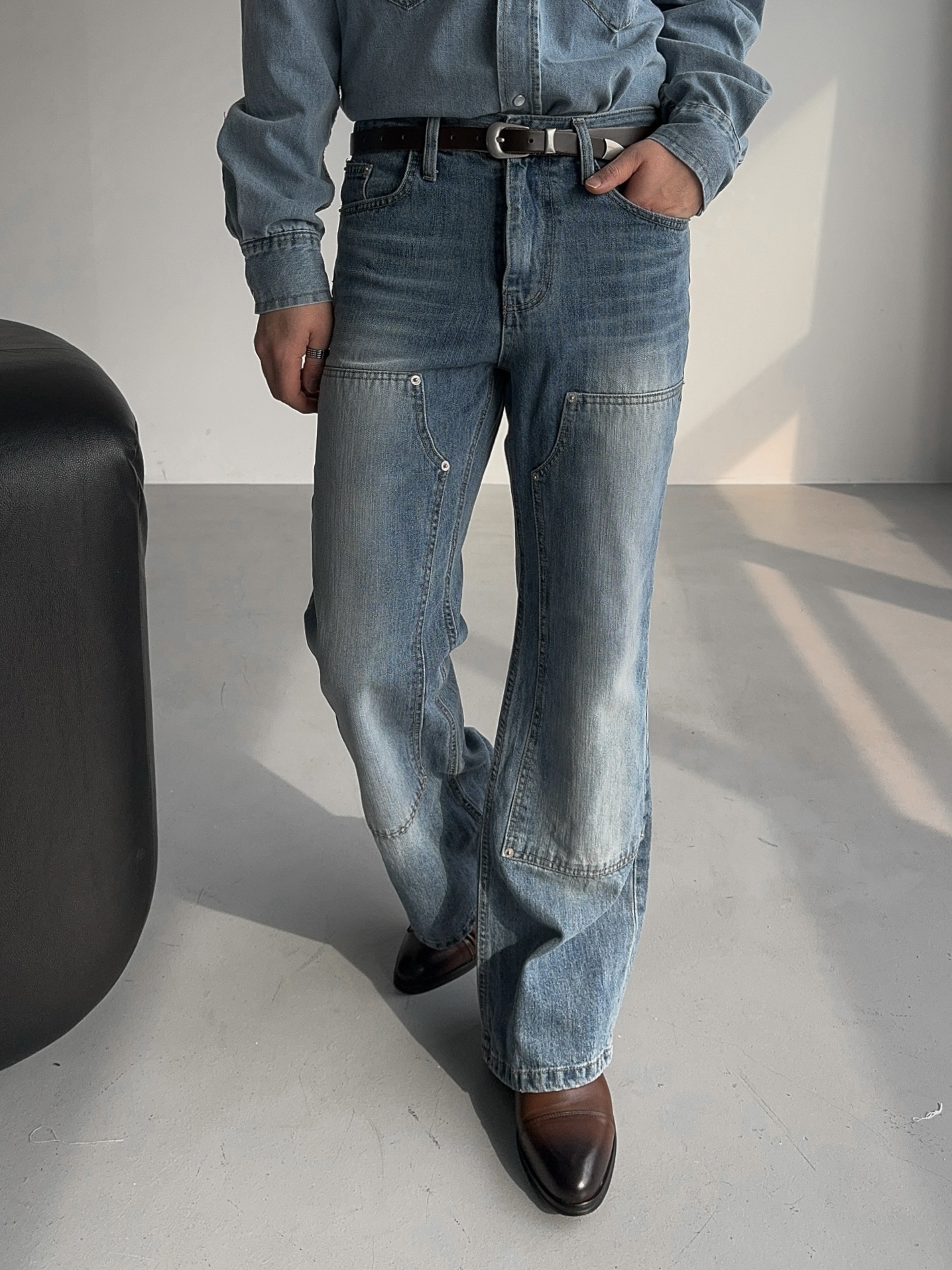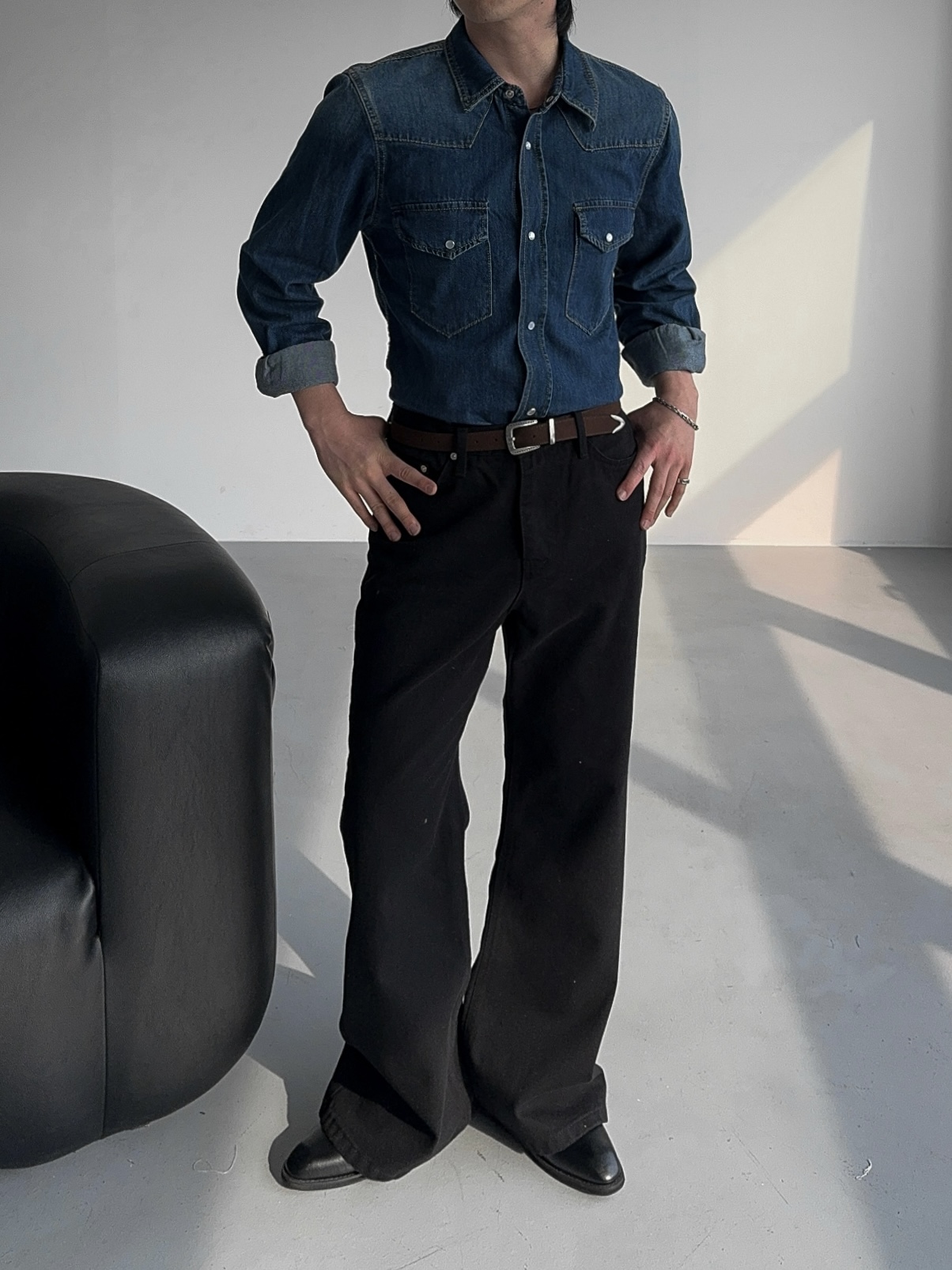 -탄탄한 데님 원단으로 제작된 셔츠