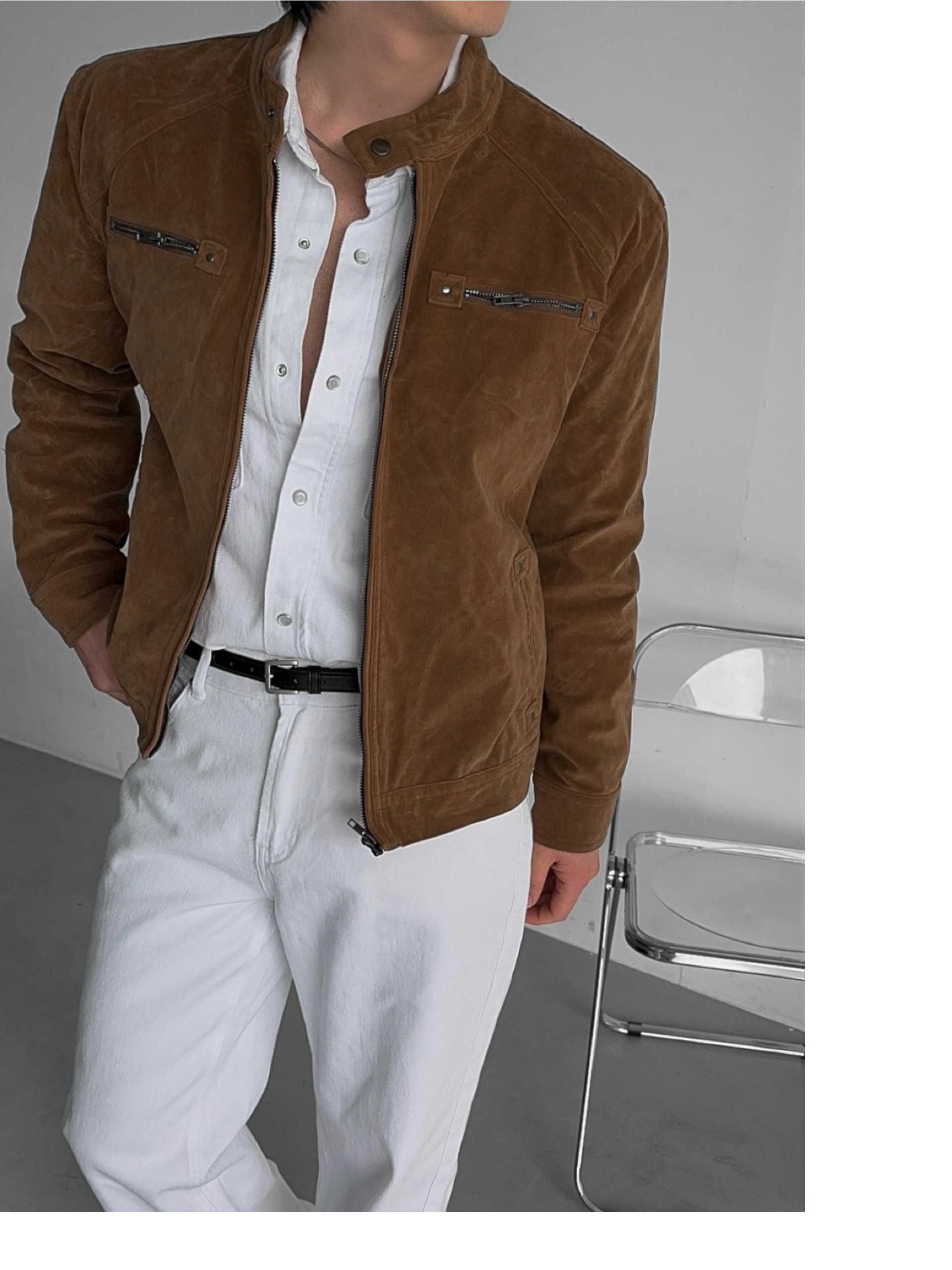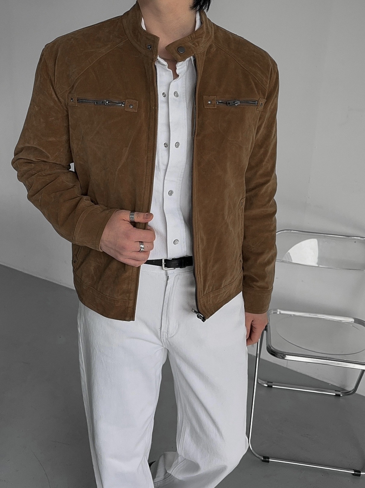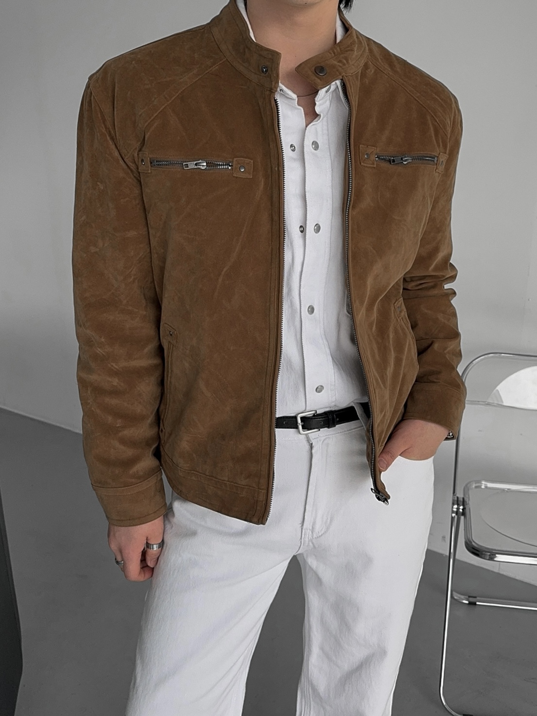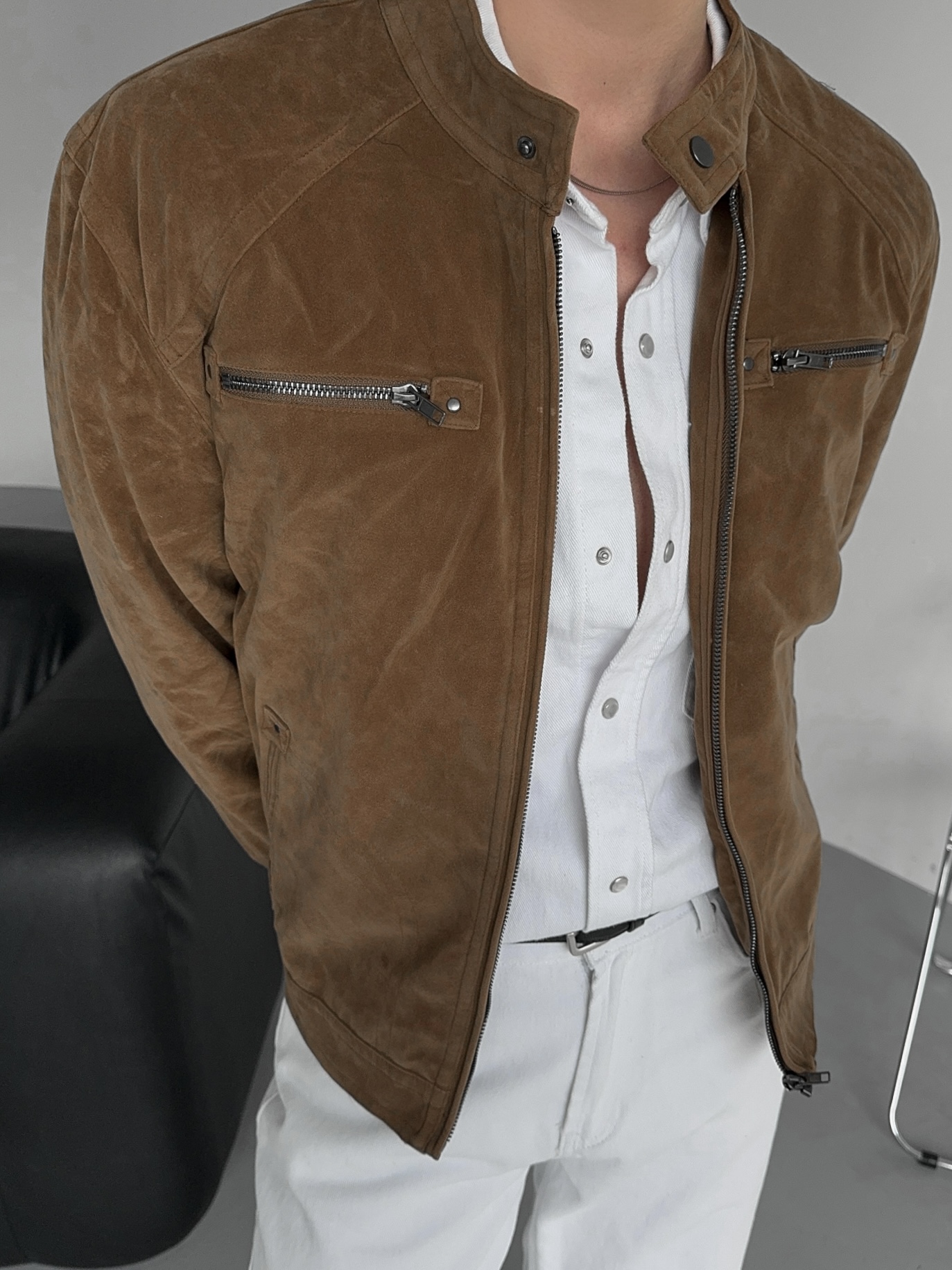 -부드러운 스웨이드 재질로 제작된 바이커 자켓