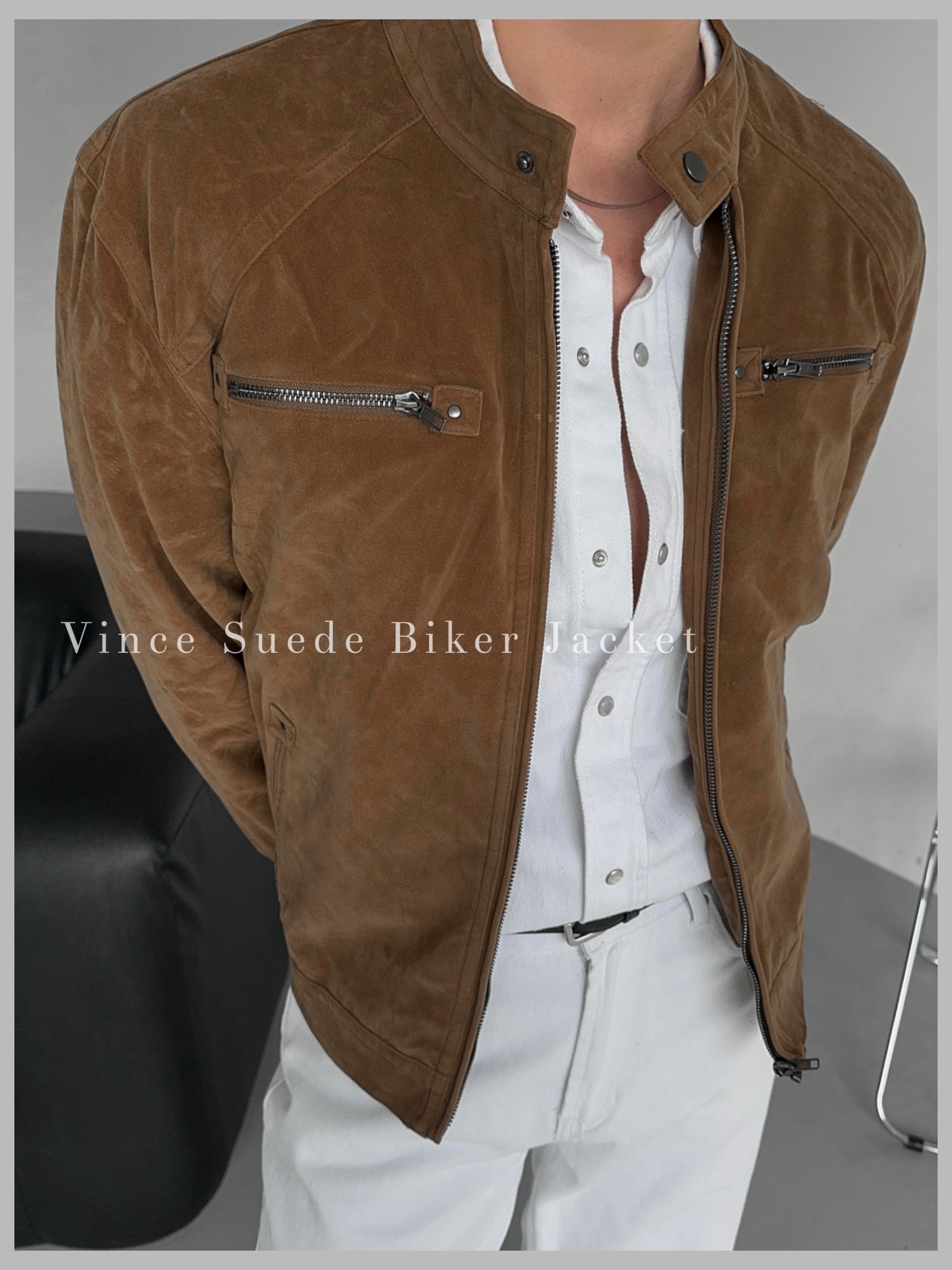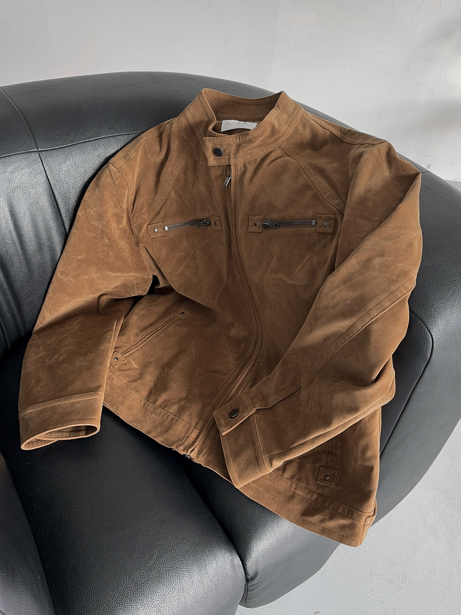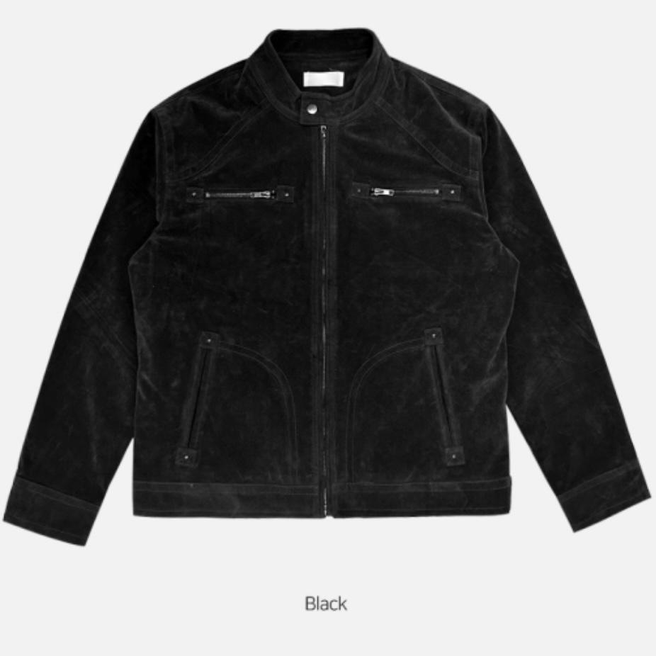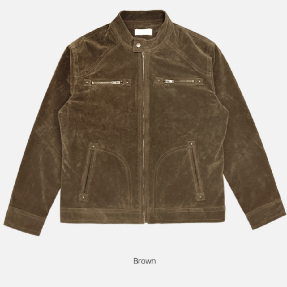-부드러운 스웨이드 재질로 제작된 바이커 자켓