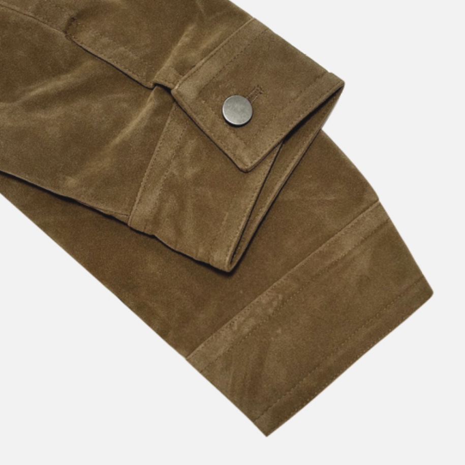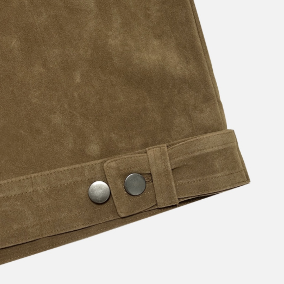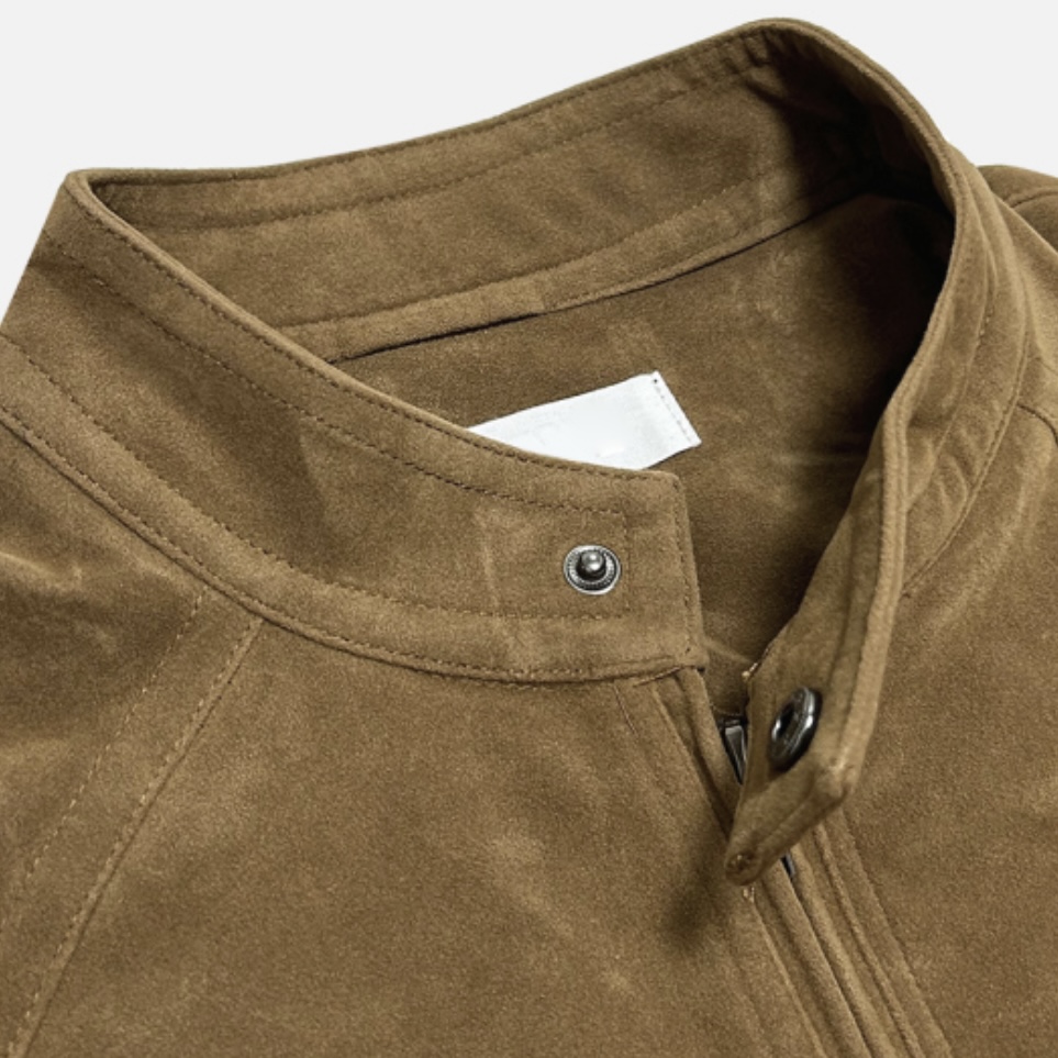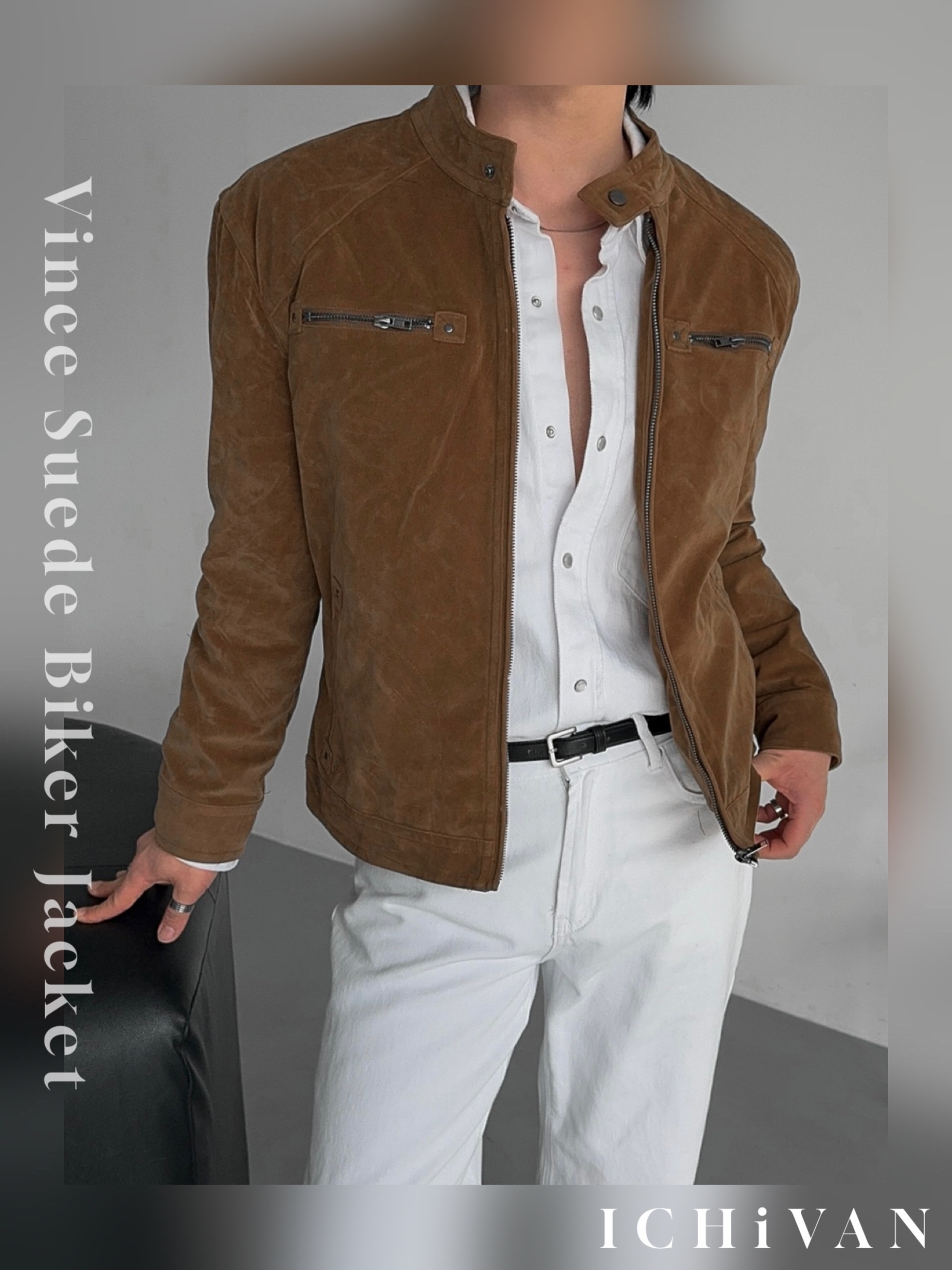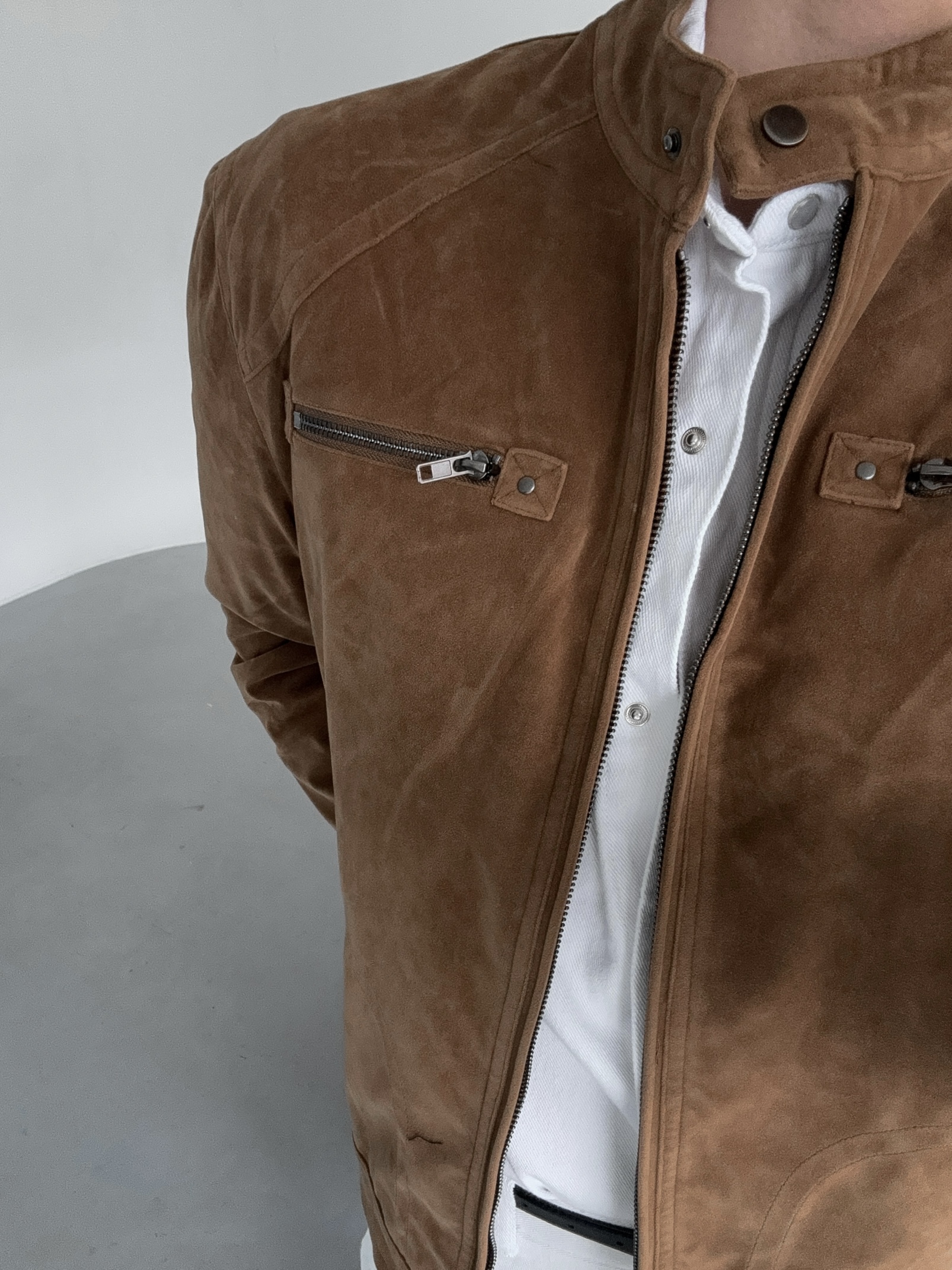 -부드러운 스웨이드 재질로 제작된 바이커 자켓