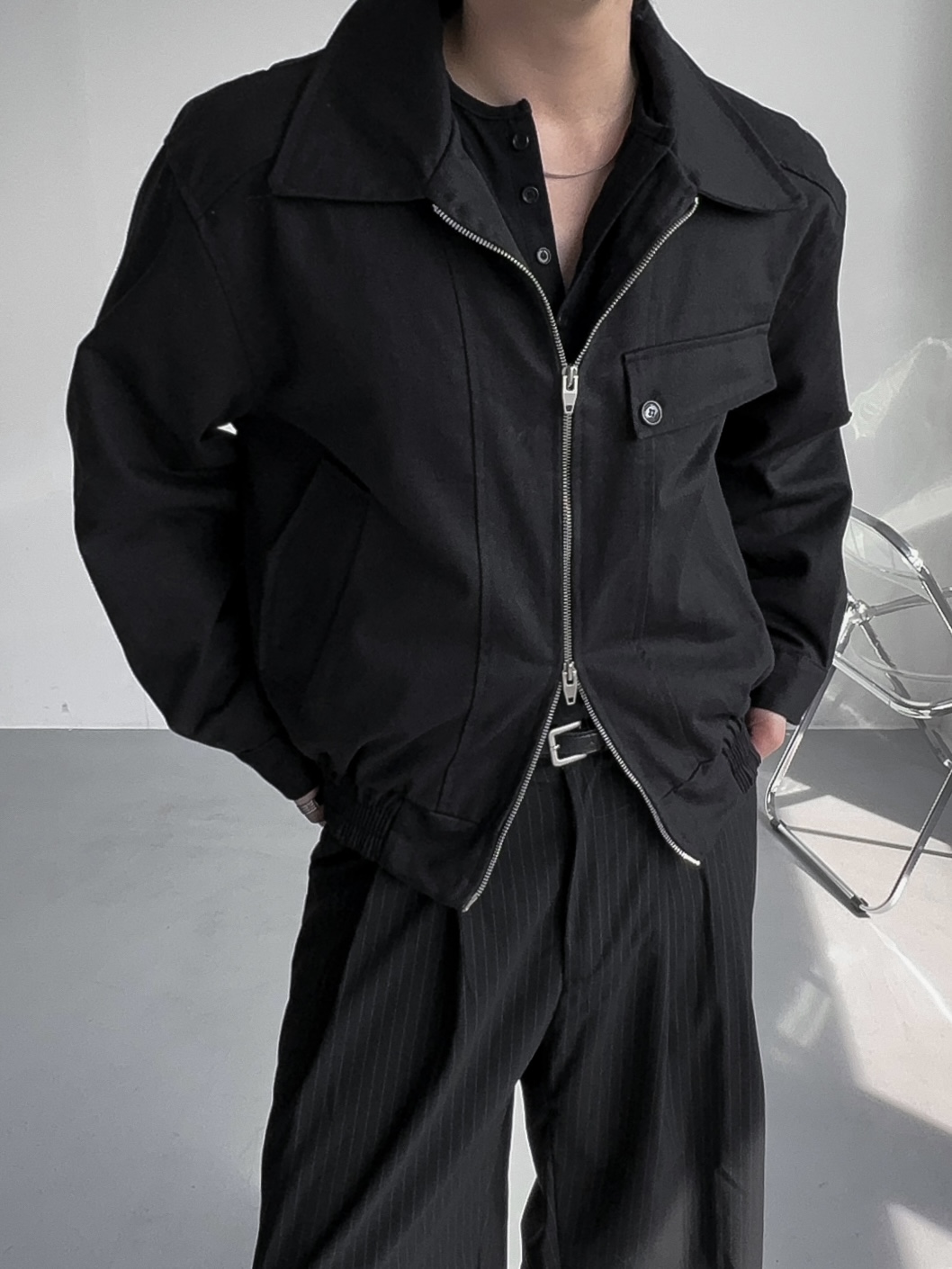 -탄탄한 트윌 조직의 코튼 원단으로 제작된 자켓