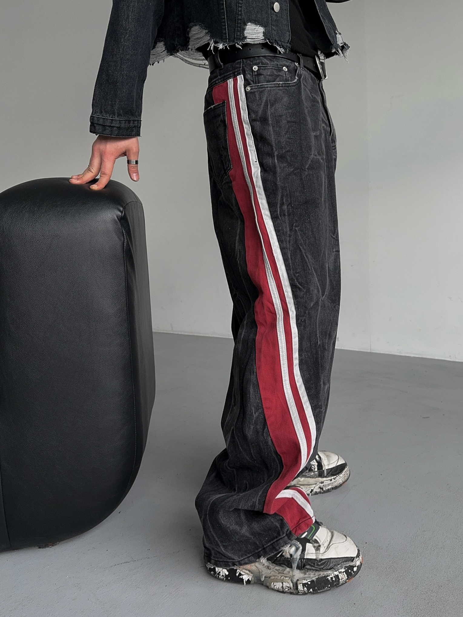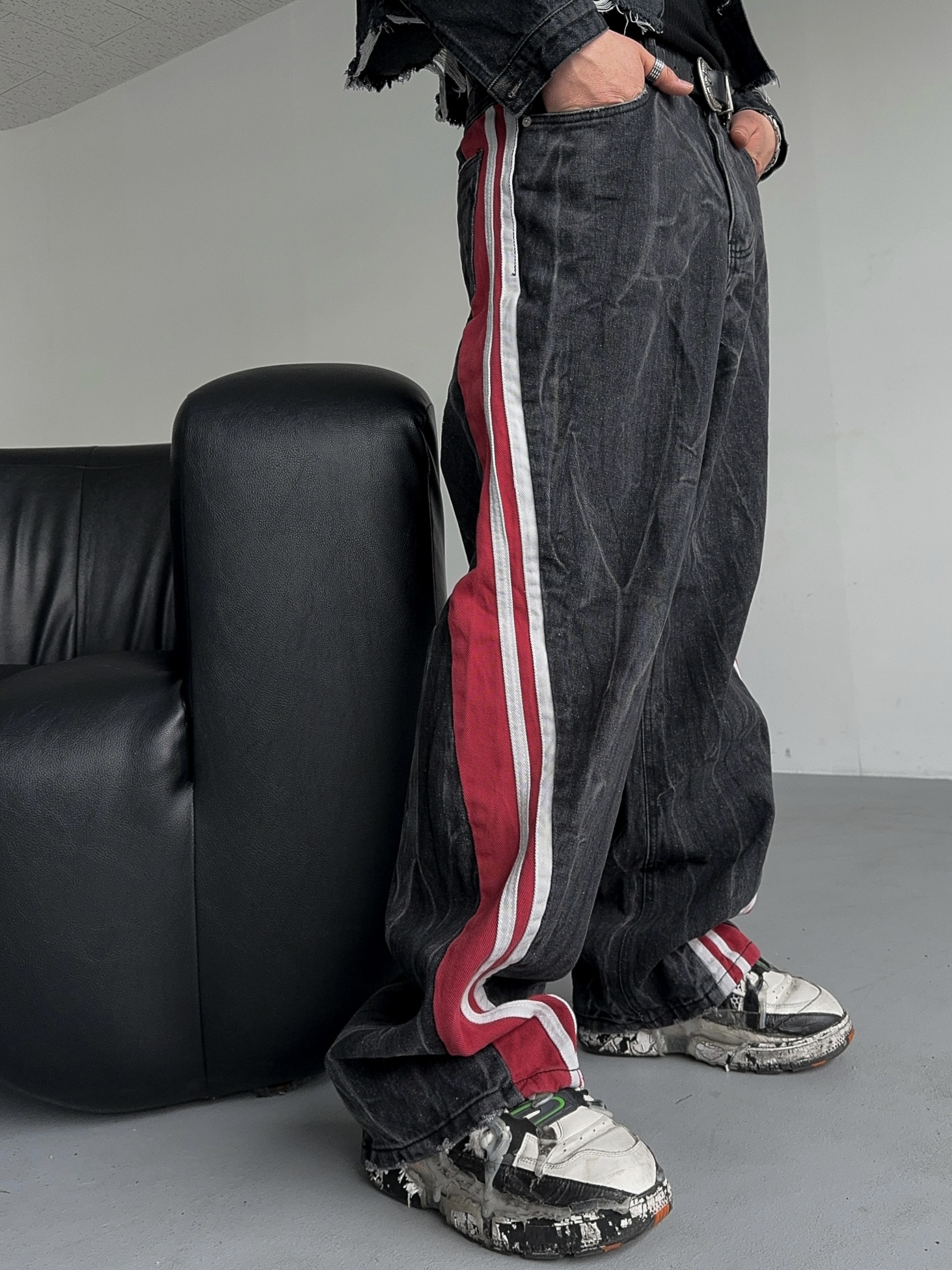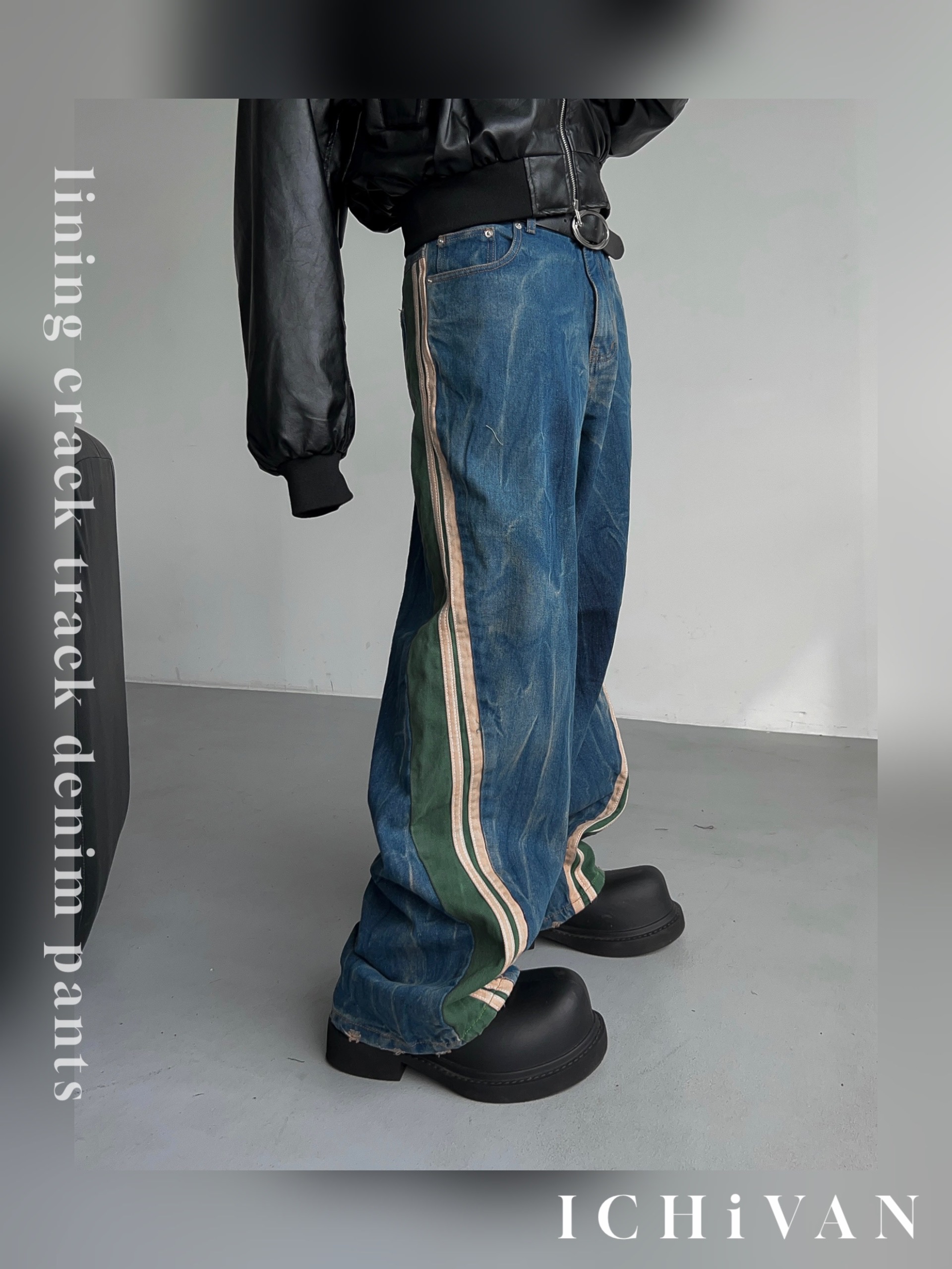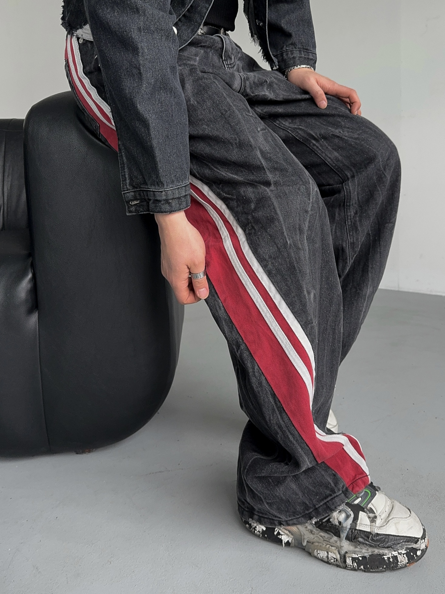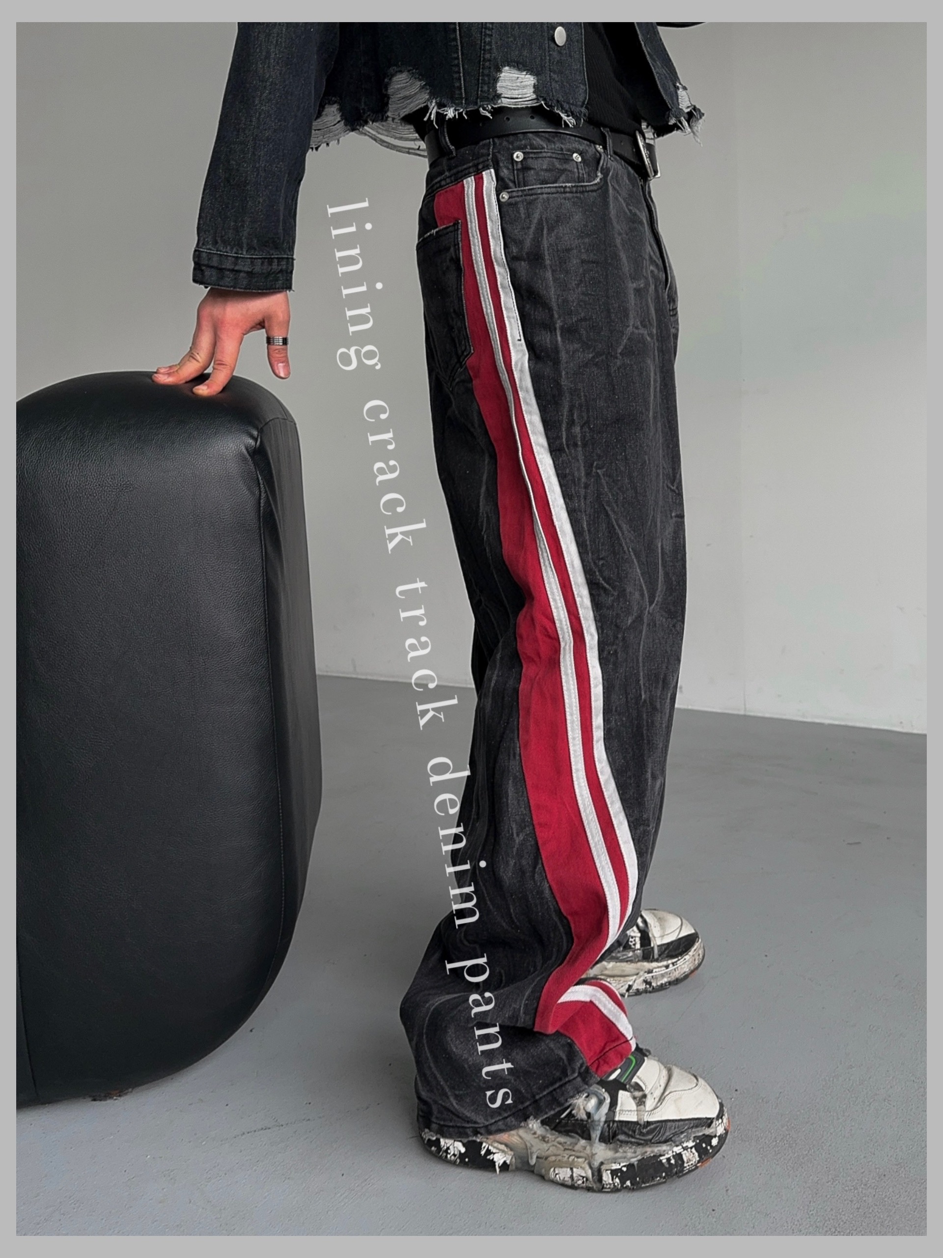 -탄탄한 데님 소재의 트랙 팬츠