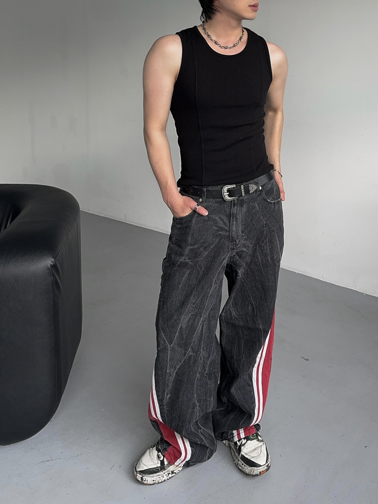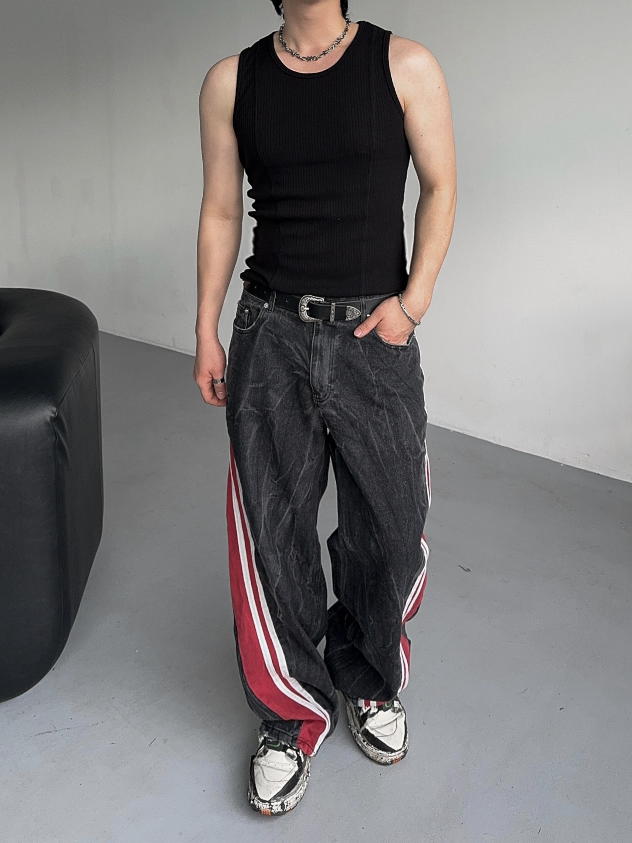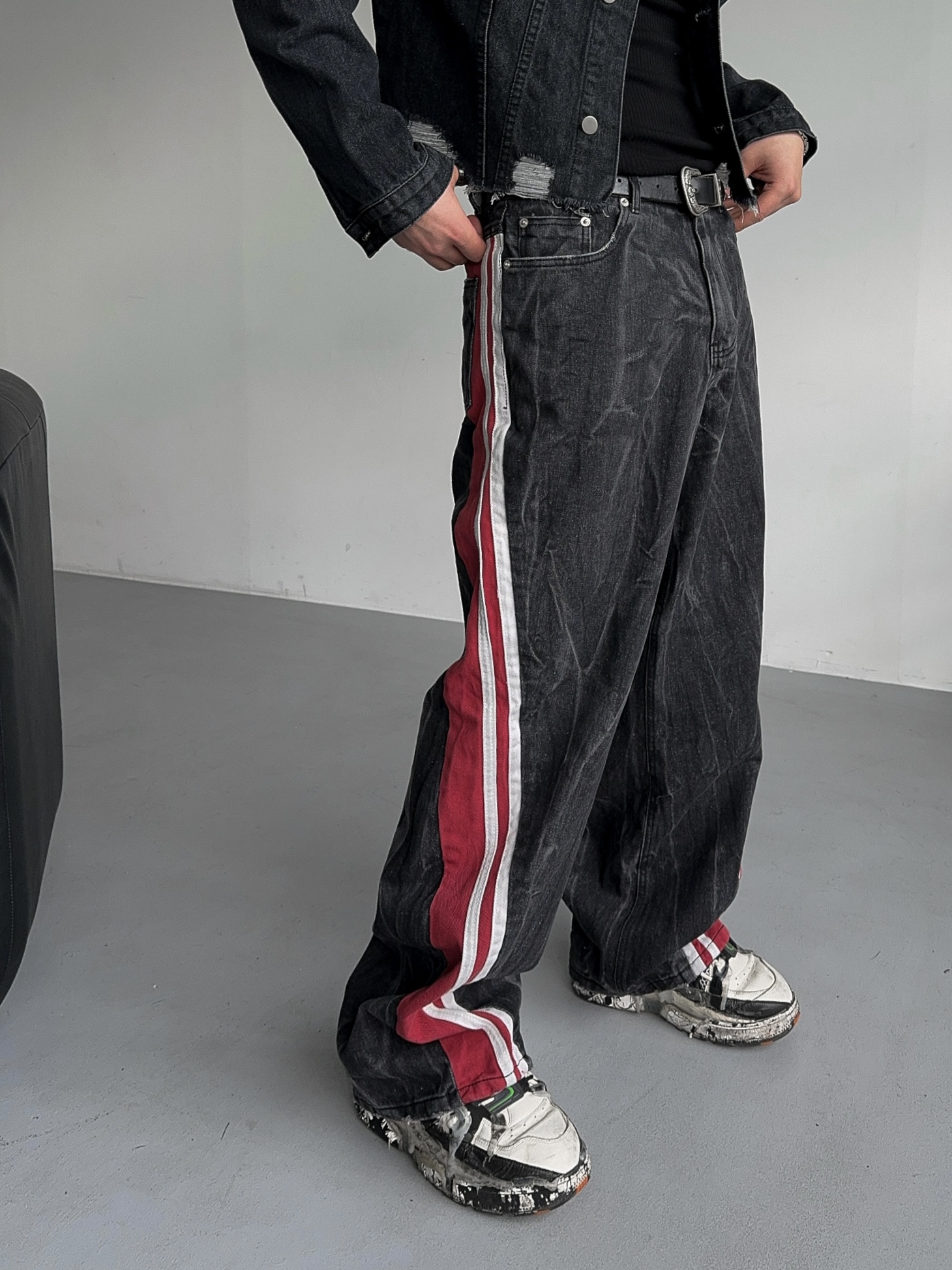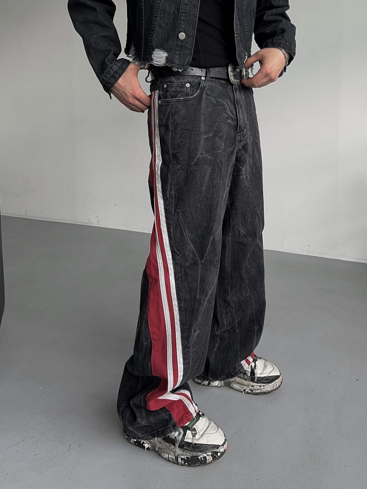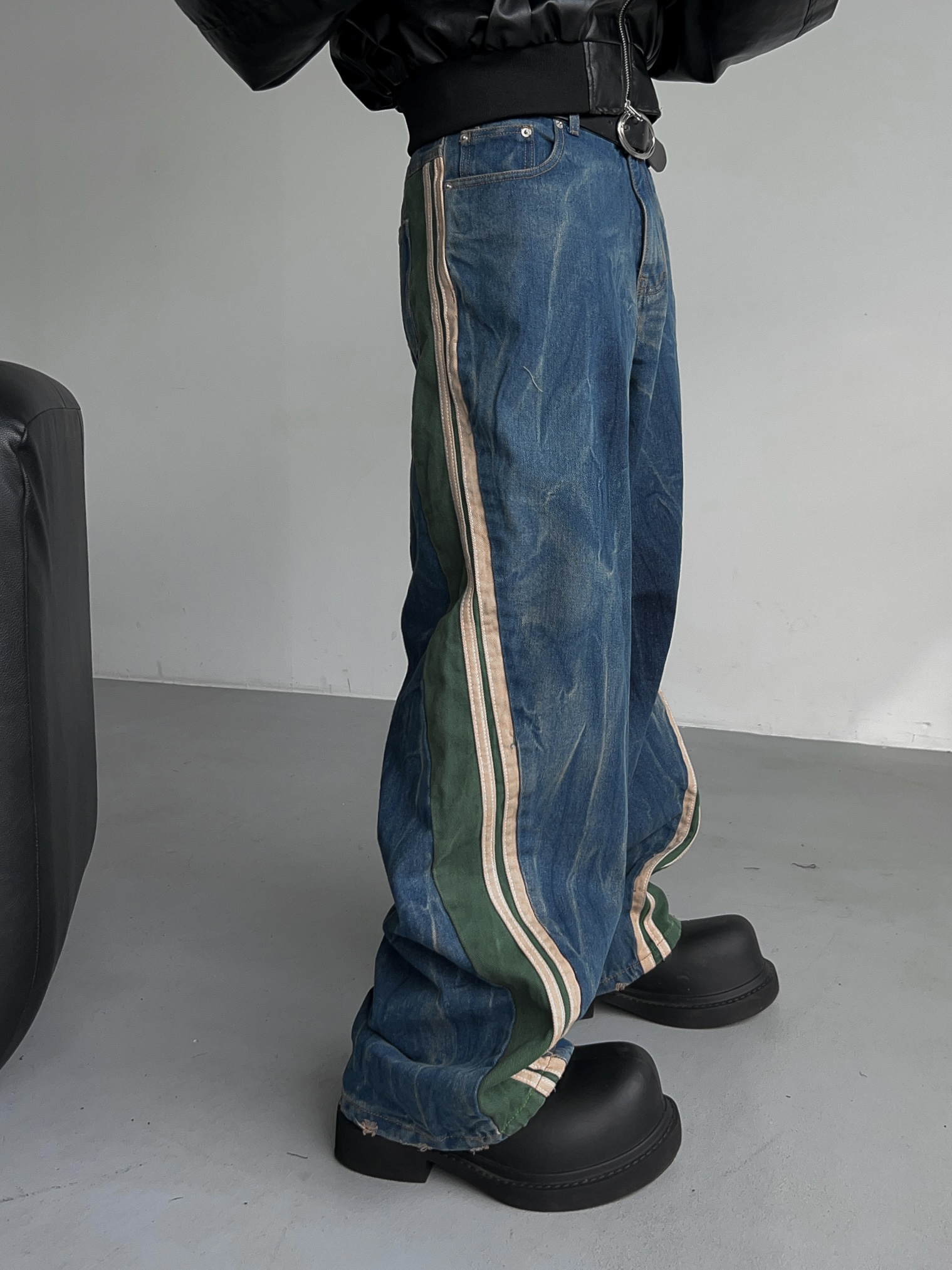 -탄탄한 데님 소재의 트랙 팬츠