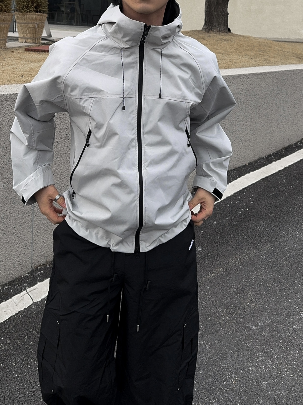 -투웨이 지퍼 , 밑단 스트링으로 다양한 핏 연출