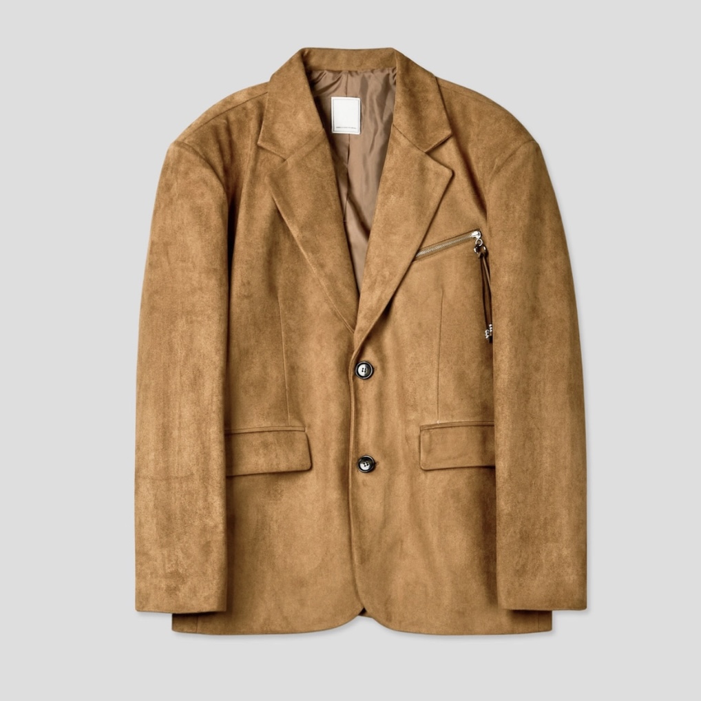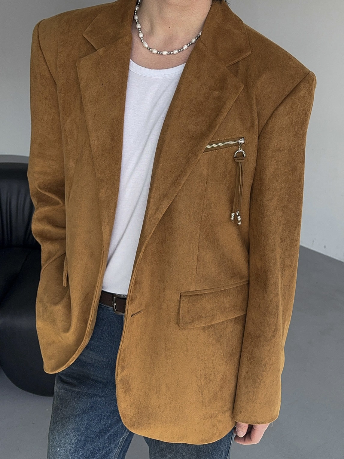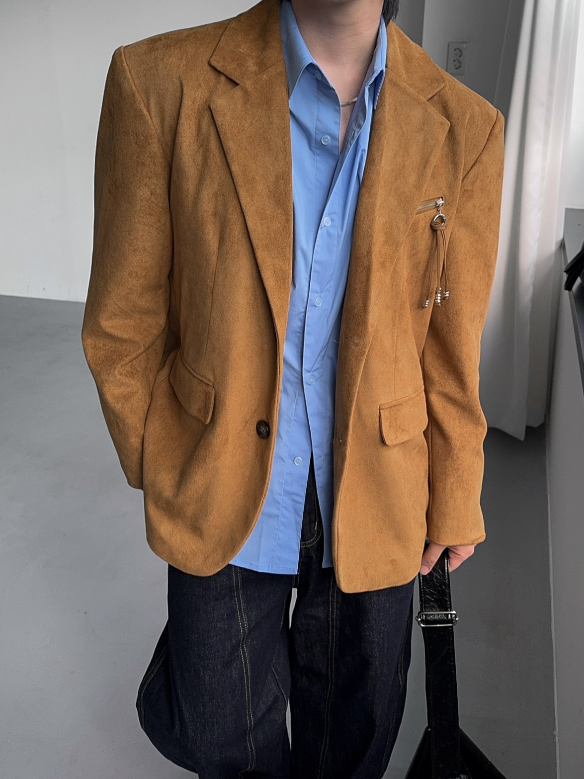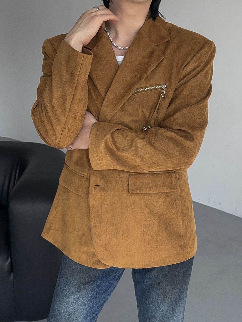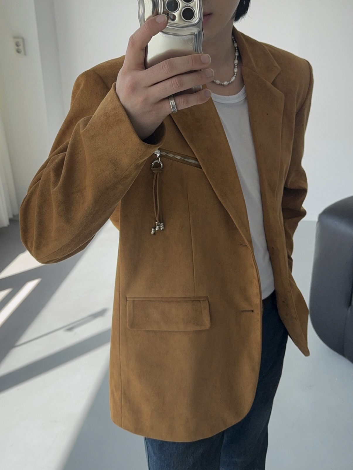 -부드러운 스웨이드 재질로 제작된 블레이저 자켓