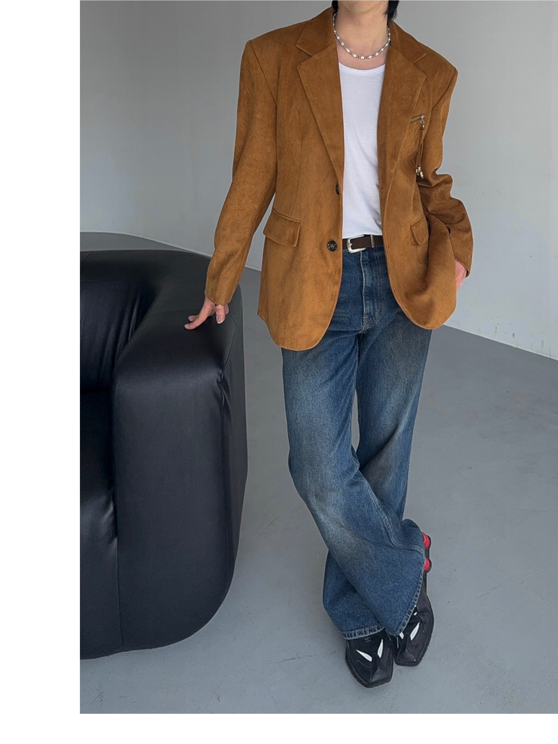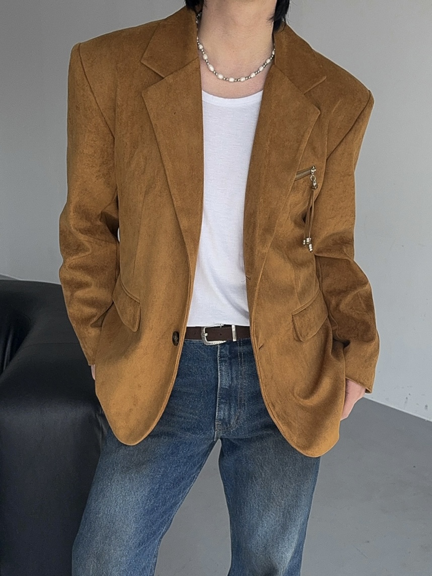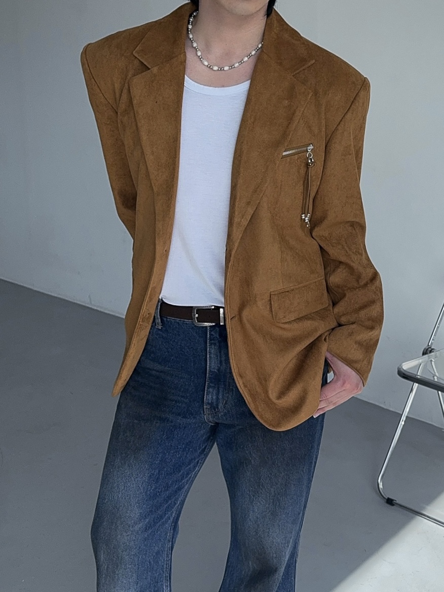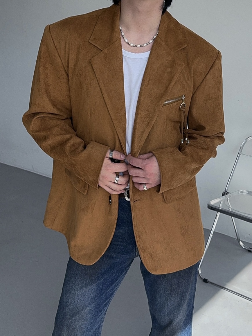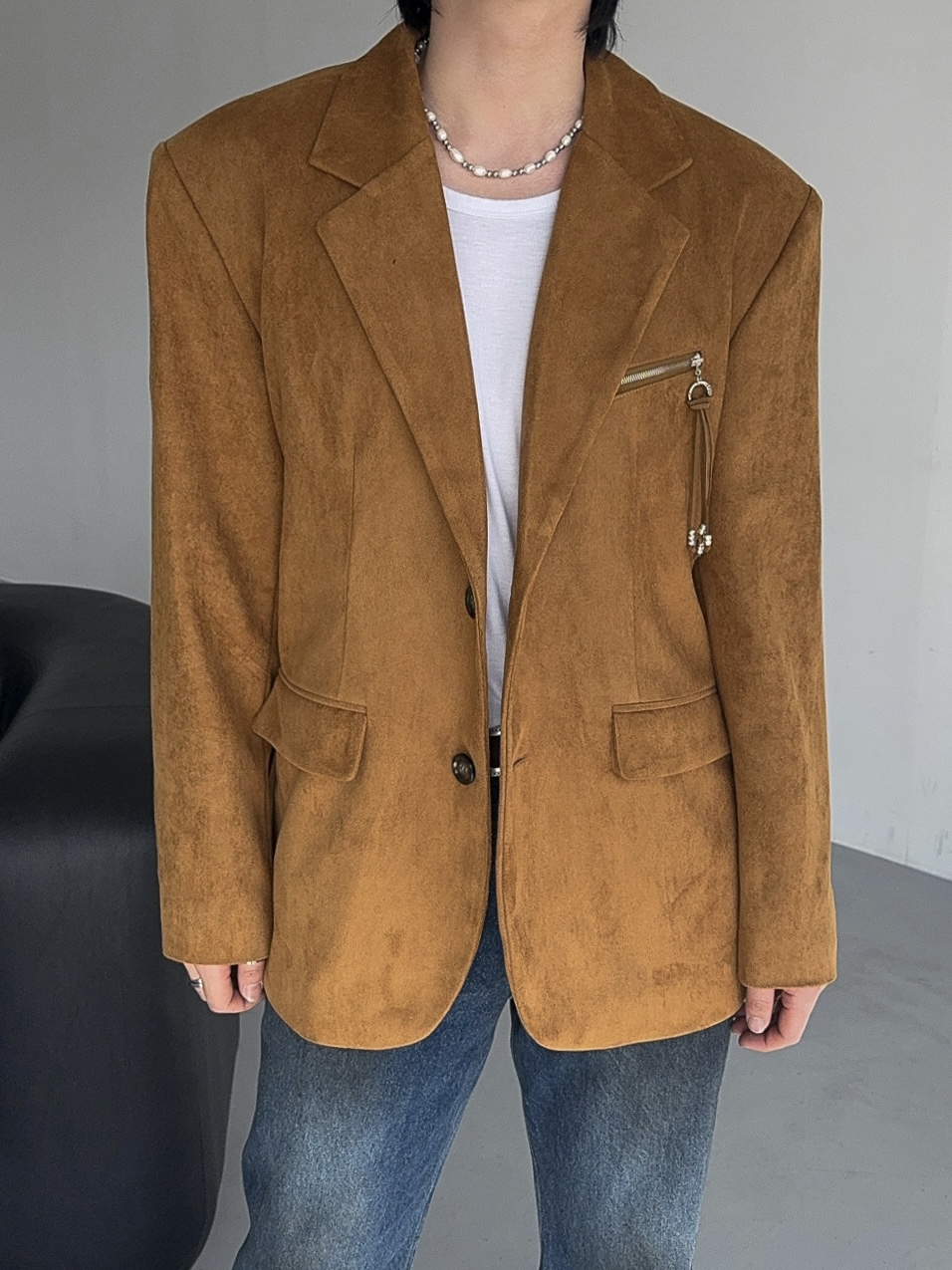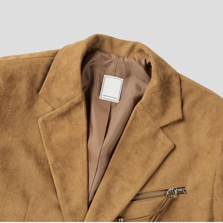 -부드러운 스웨이드 재질로 제작된 블레이저 자켓