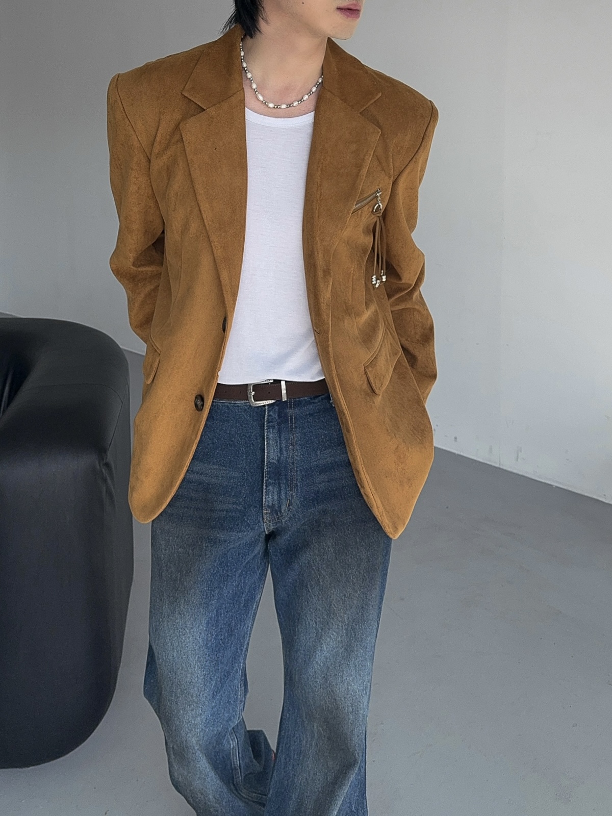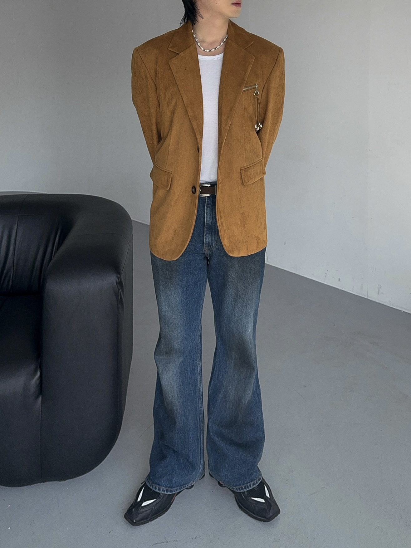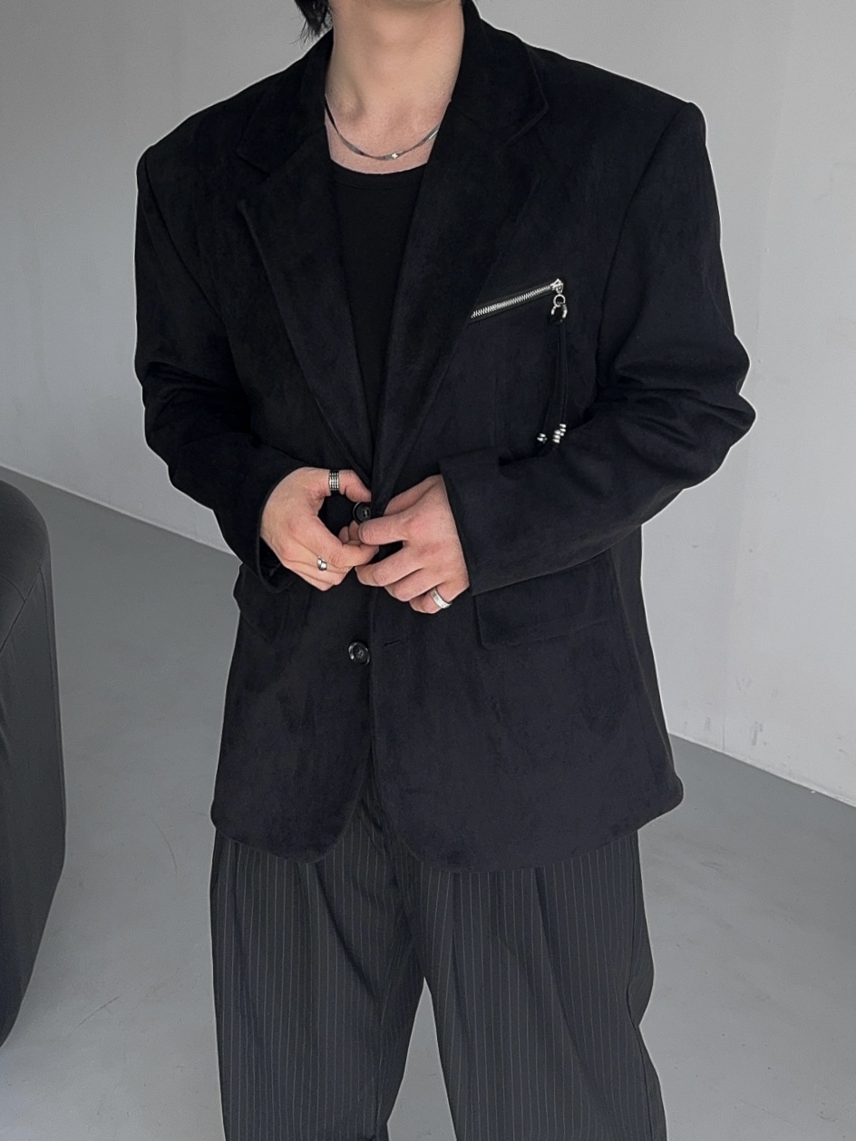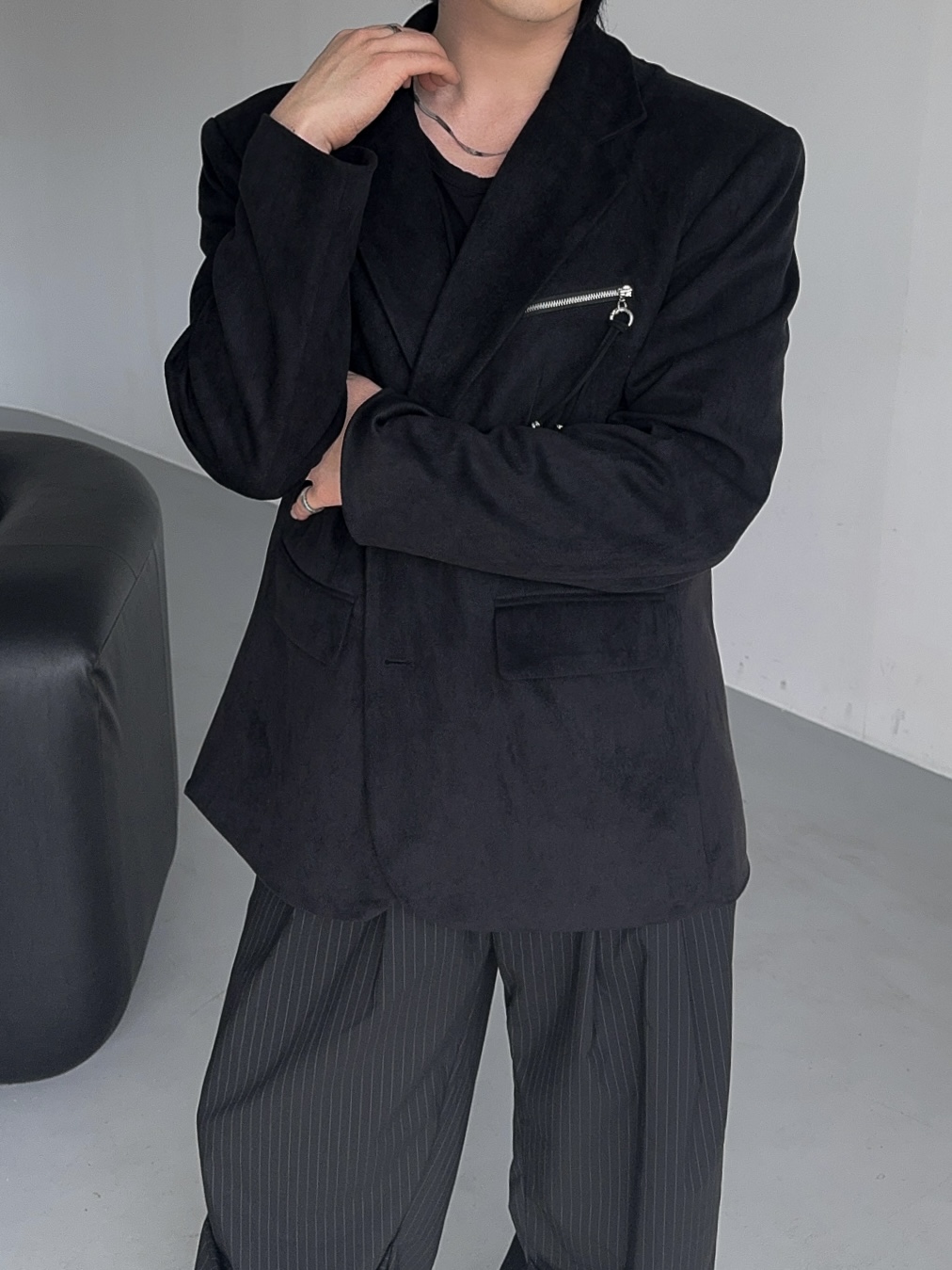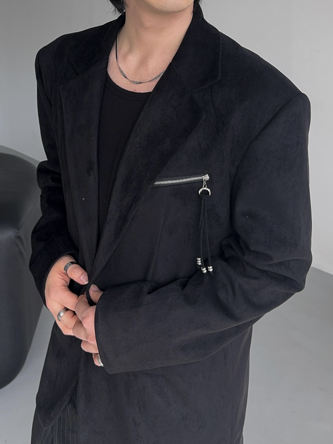 -부드러운 스웨이드 재질로 제작된 블레이저 자켓