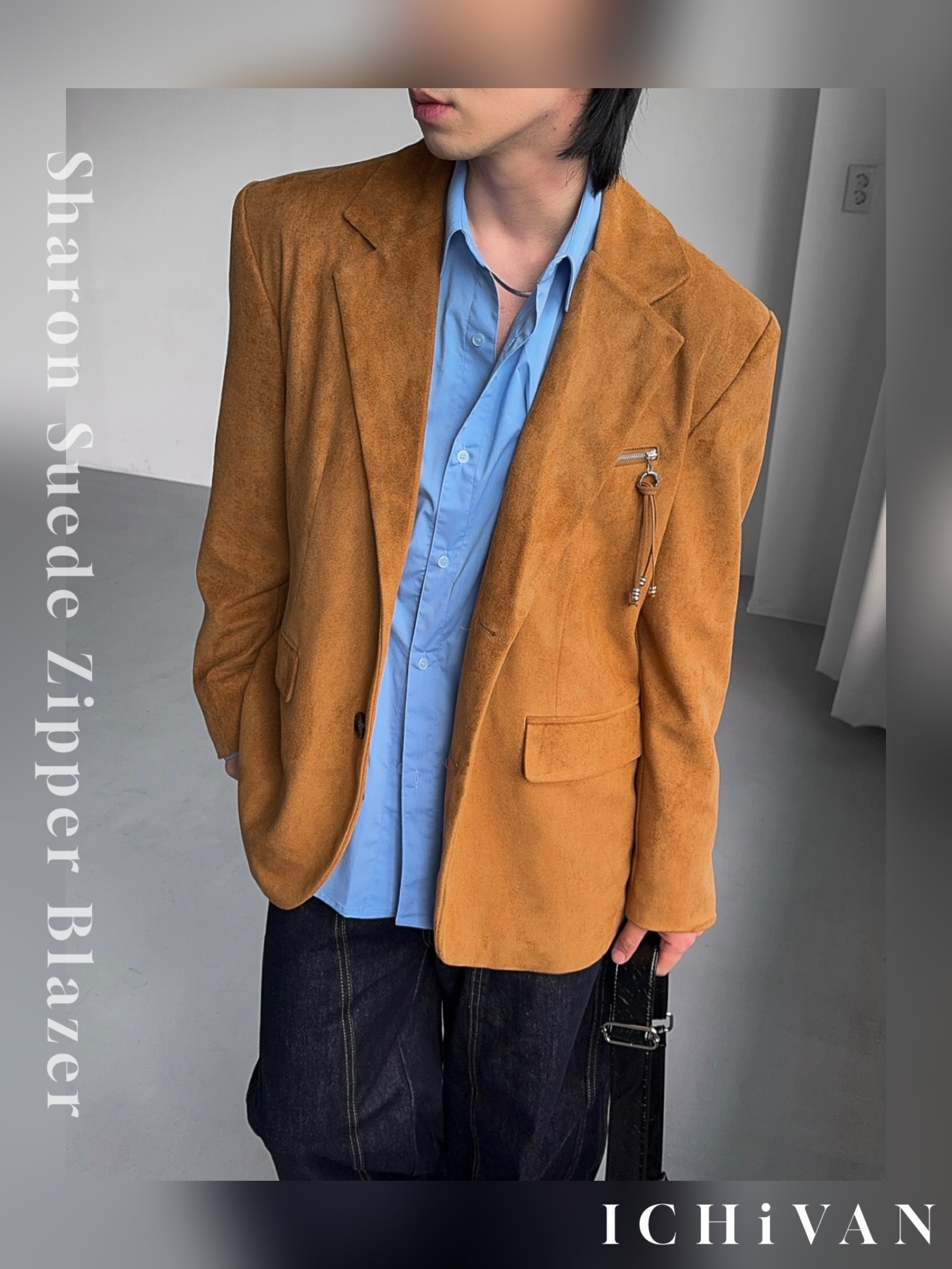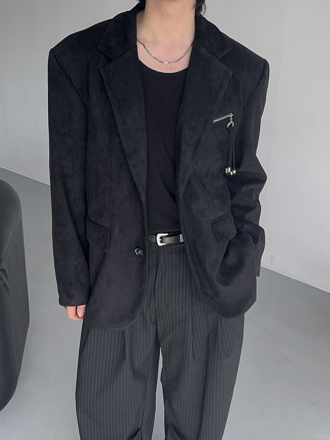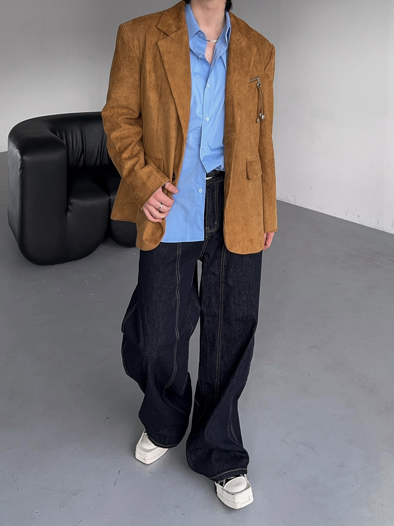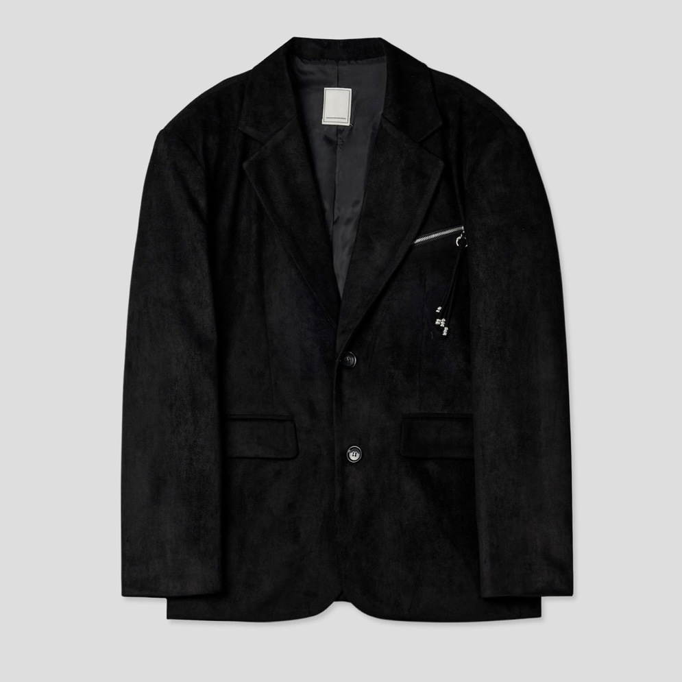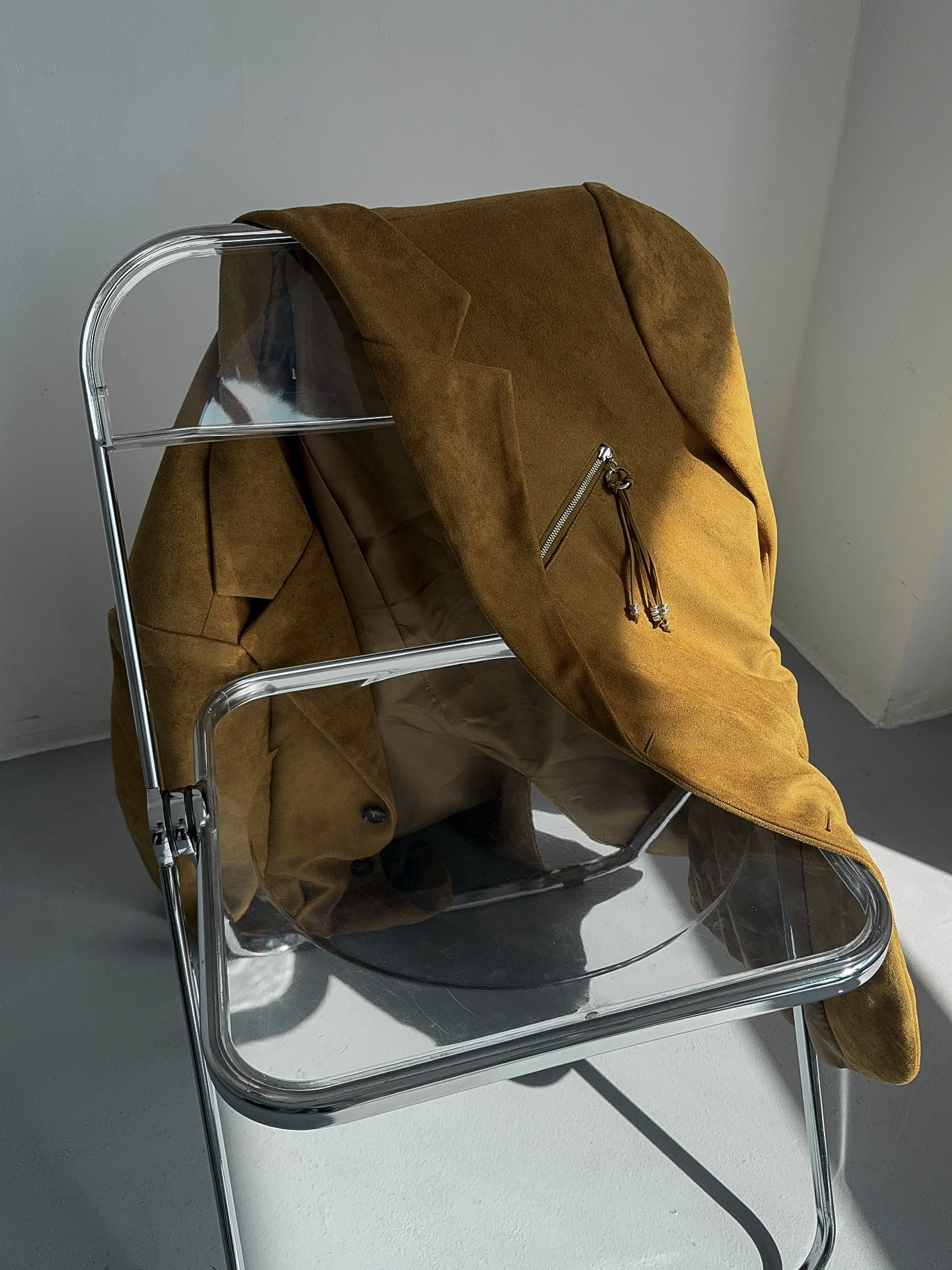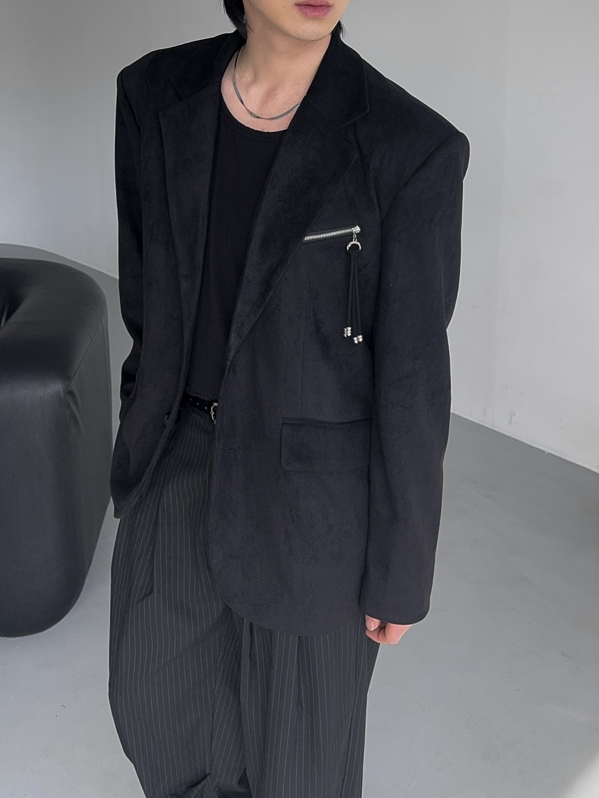 -부드러운 스웨이드 재질로 제작된 블레이저 자켓