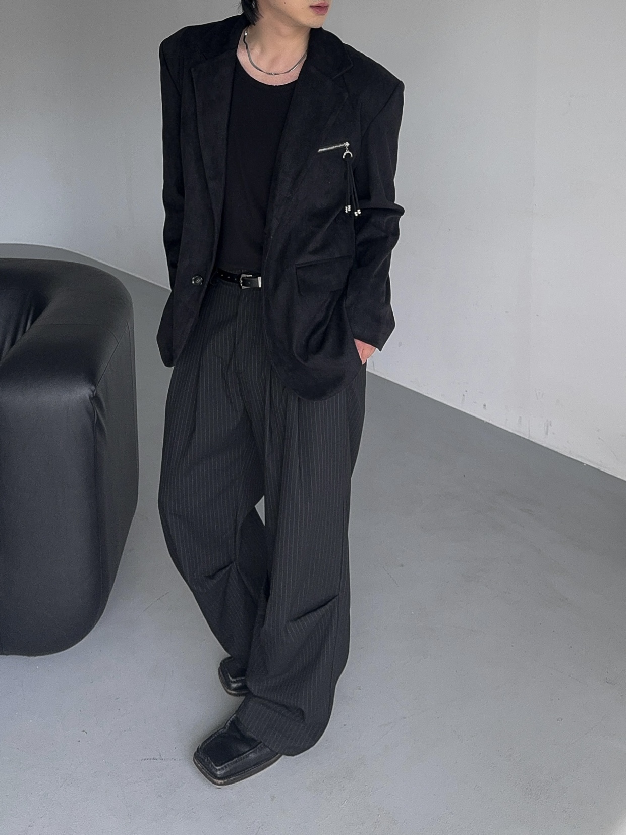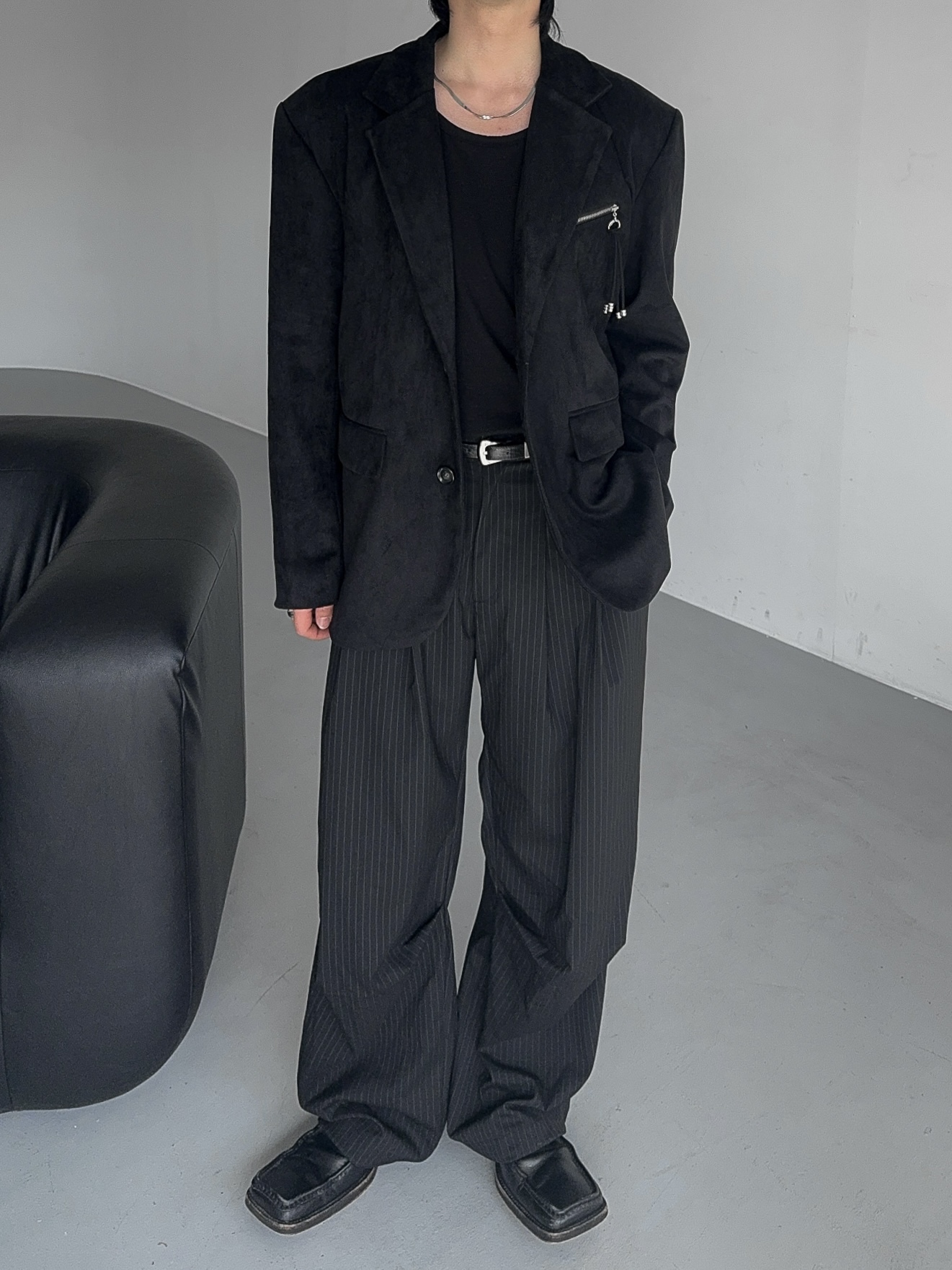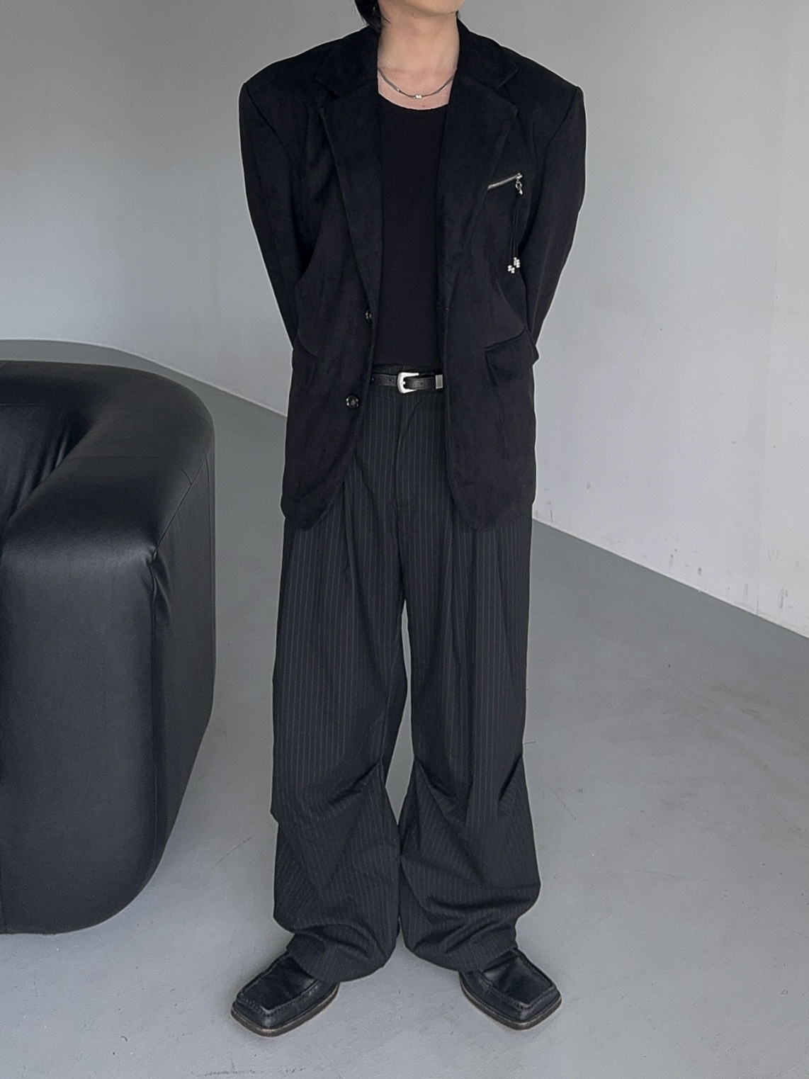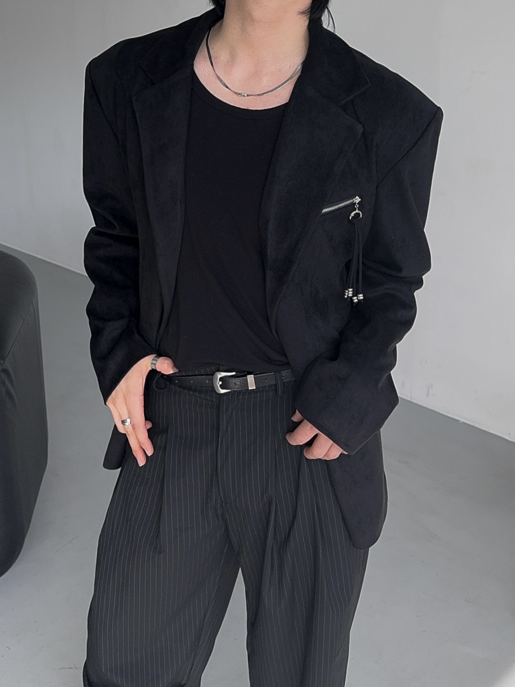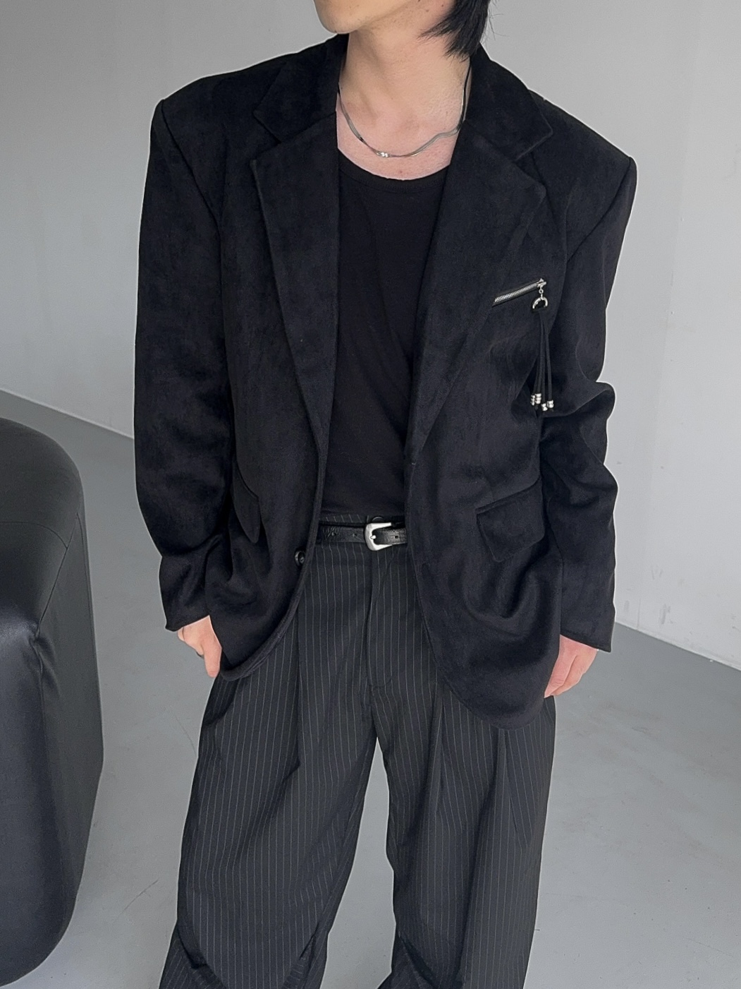 -부드러운 스웨이드 재질로 제작된 블레이저 자켓