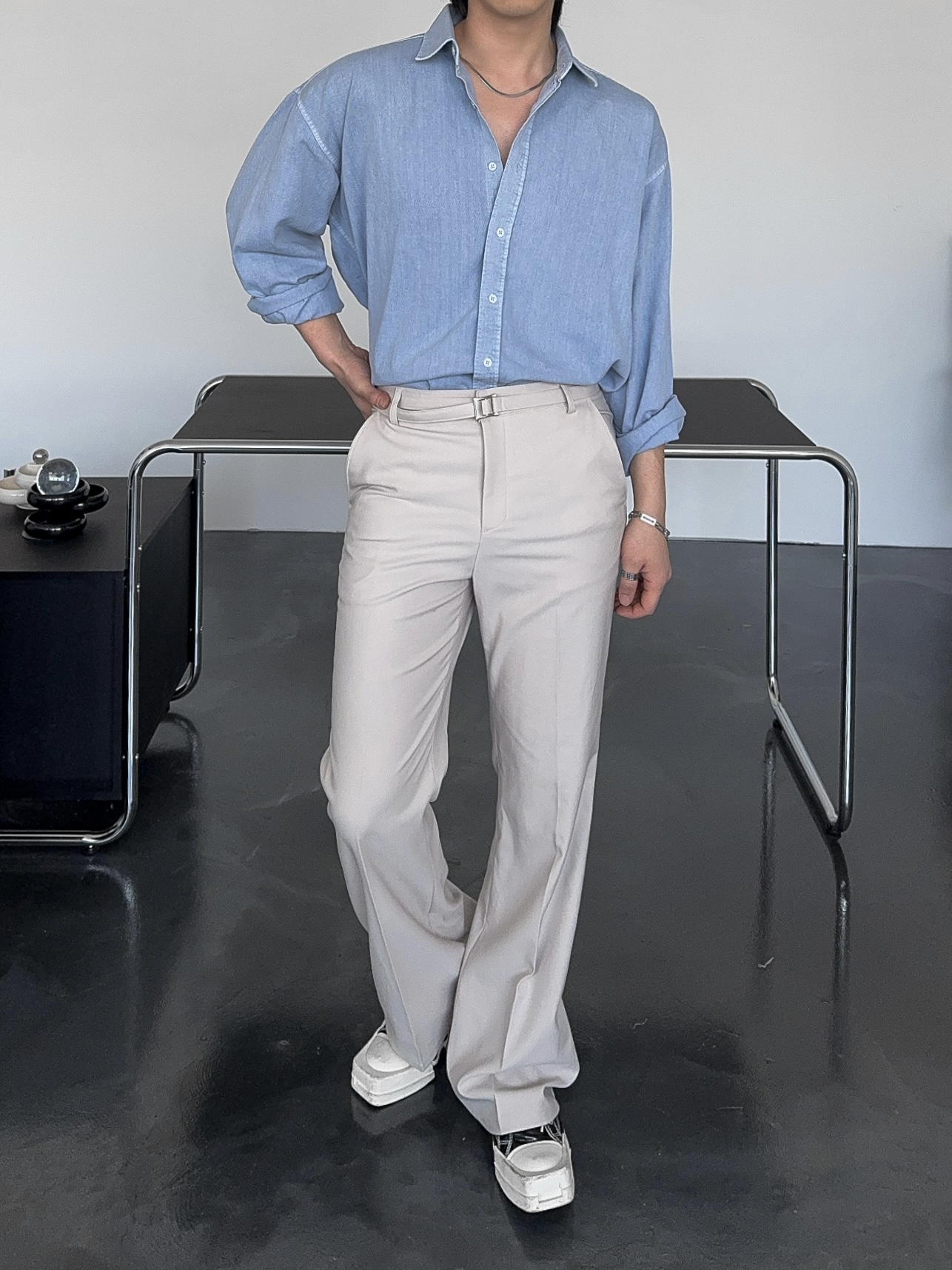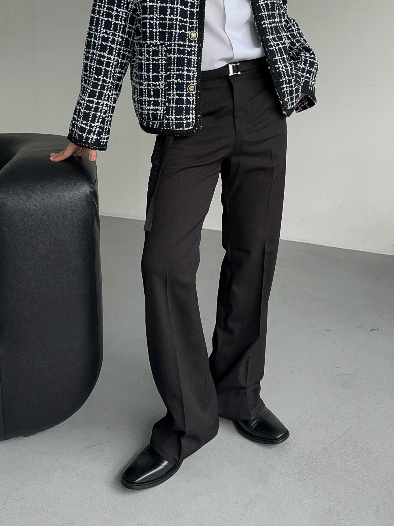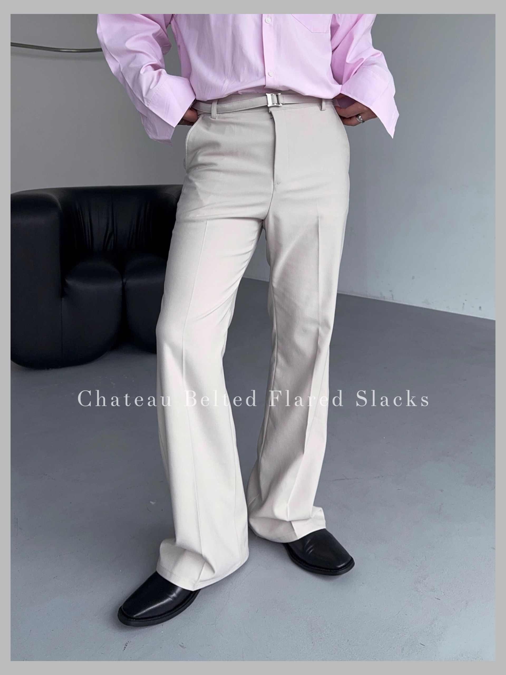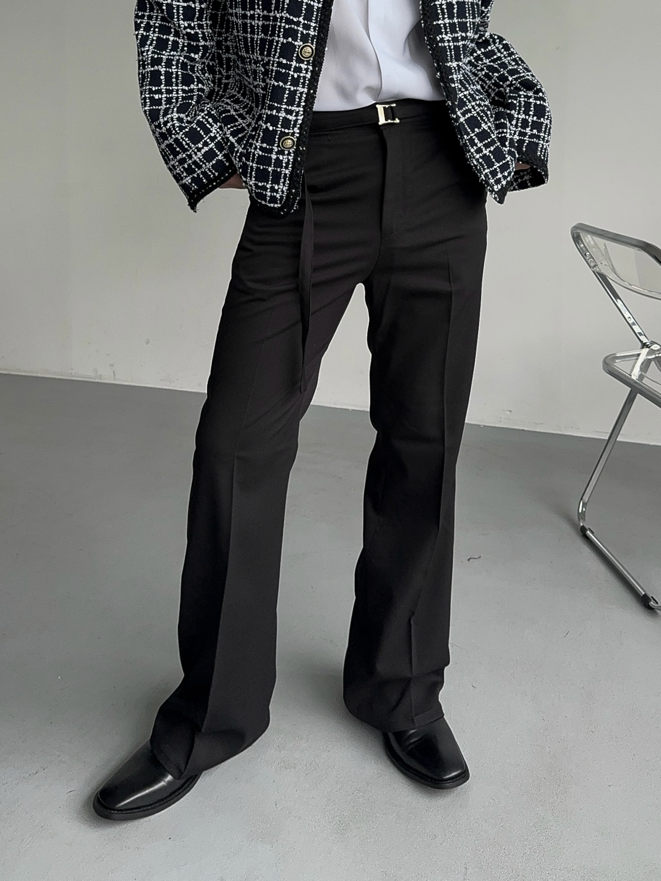 -텐션이 좋은 원단감으로 제작된 플레어 슬랙스