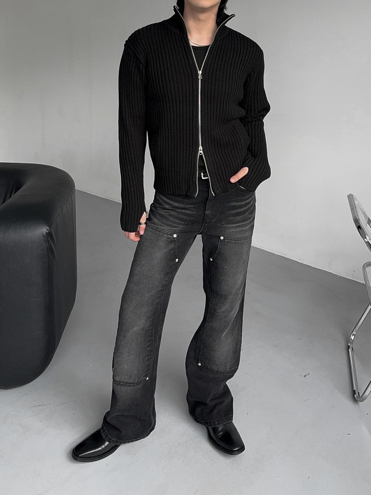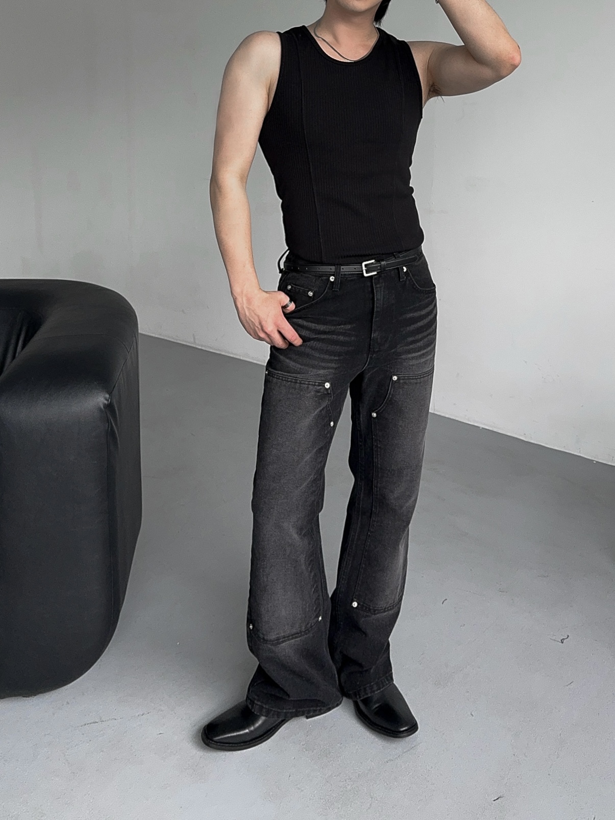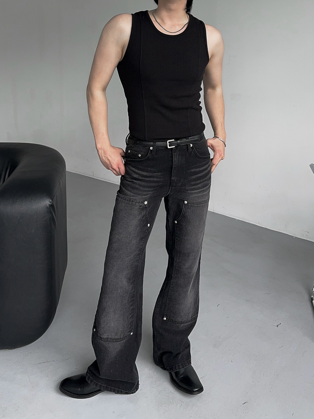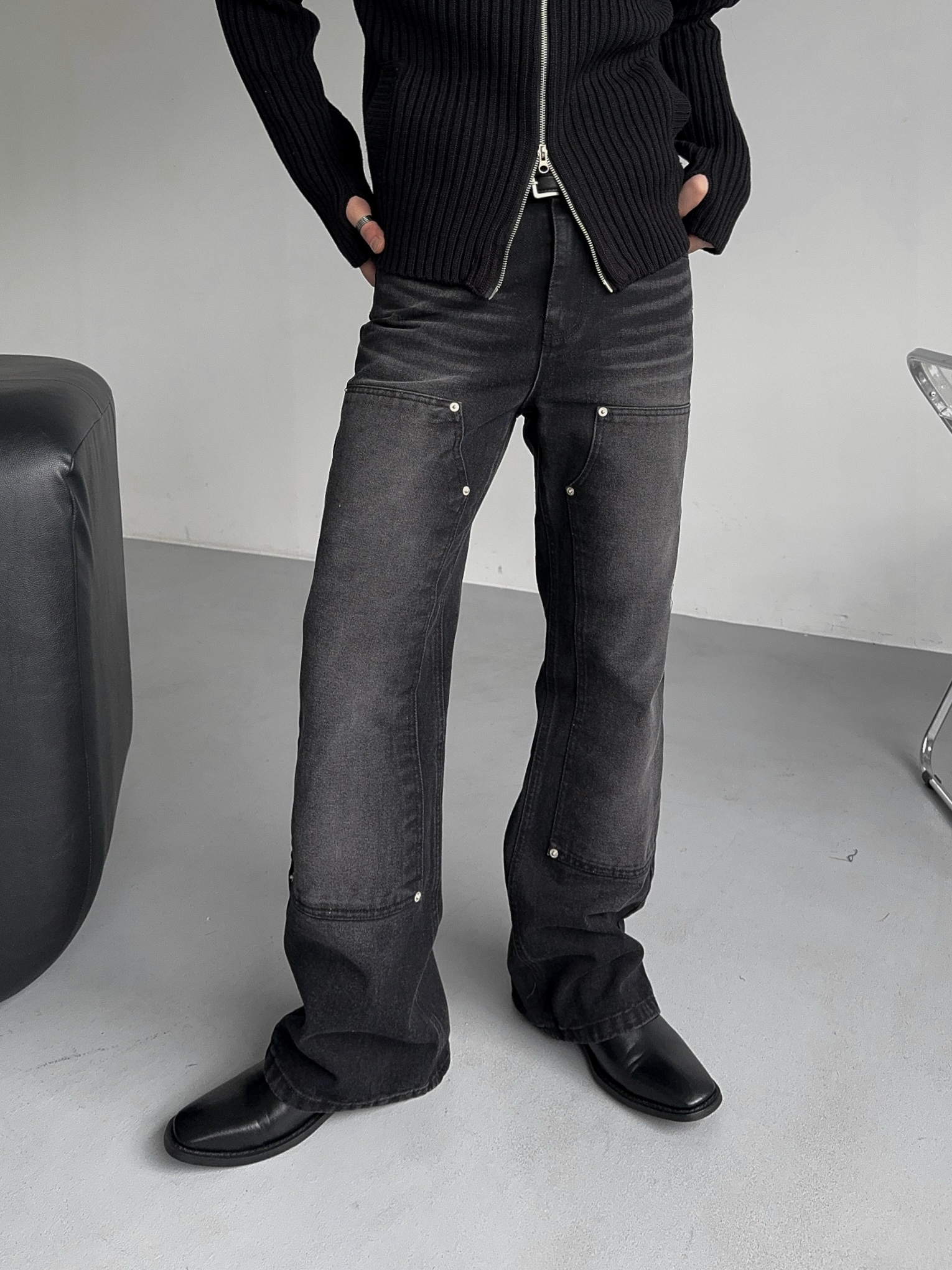 -전면부 리벳 , 더블니 디자인 포인트