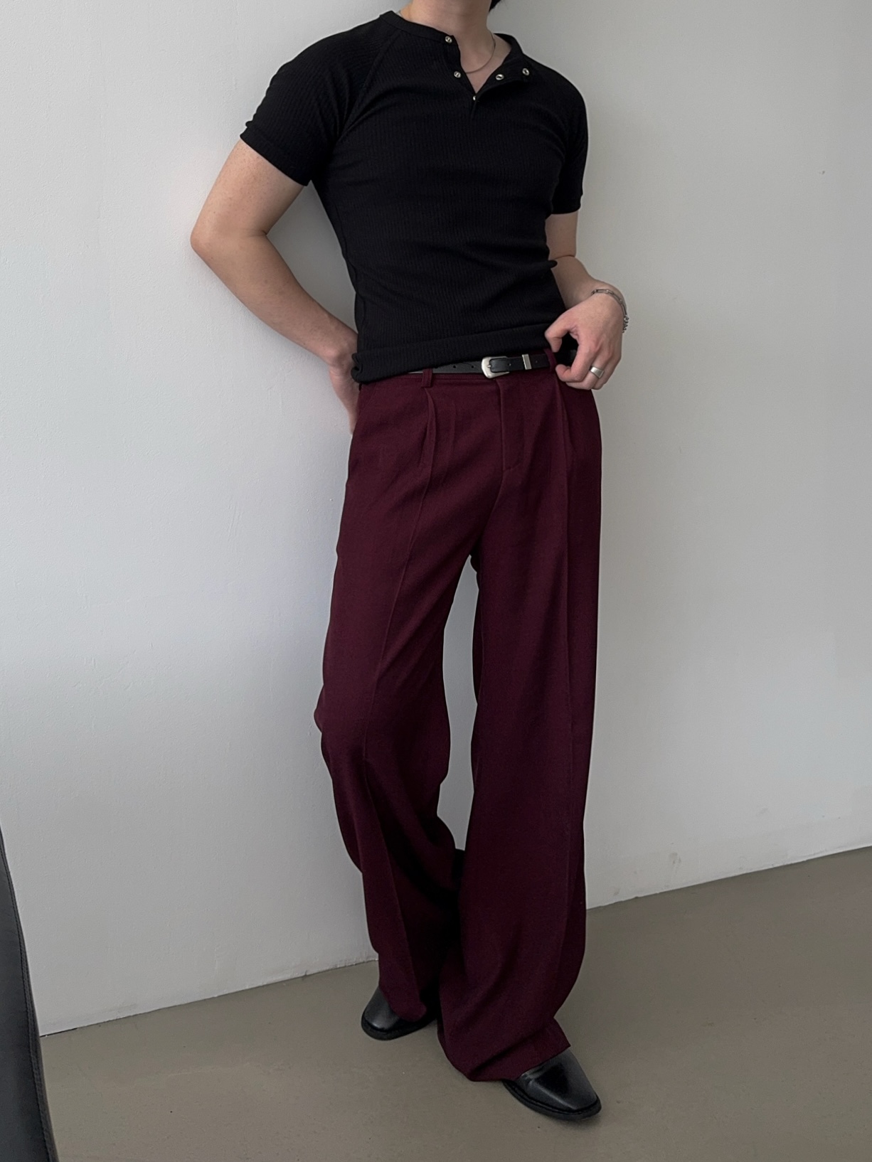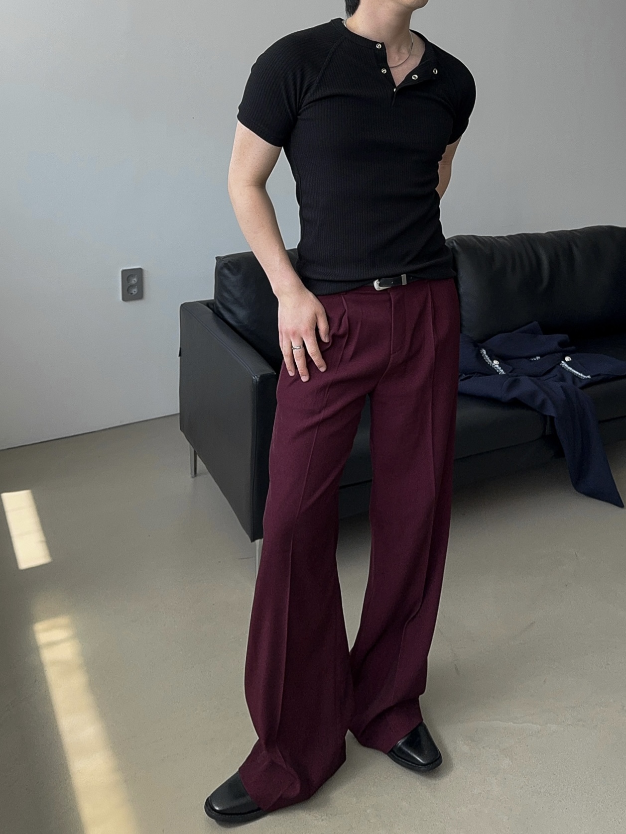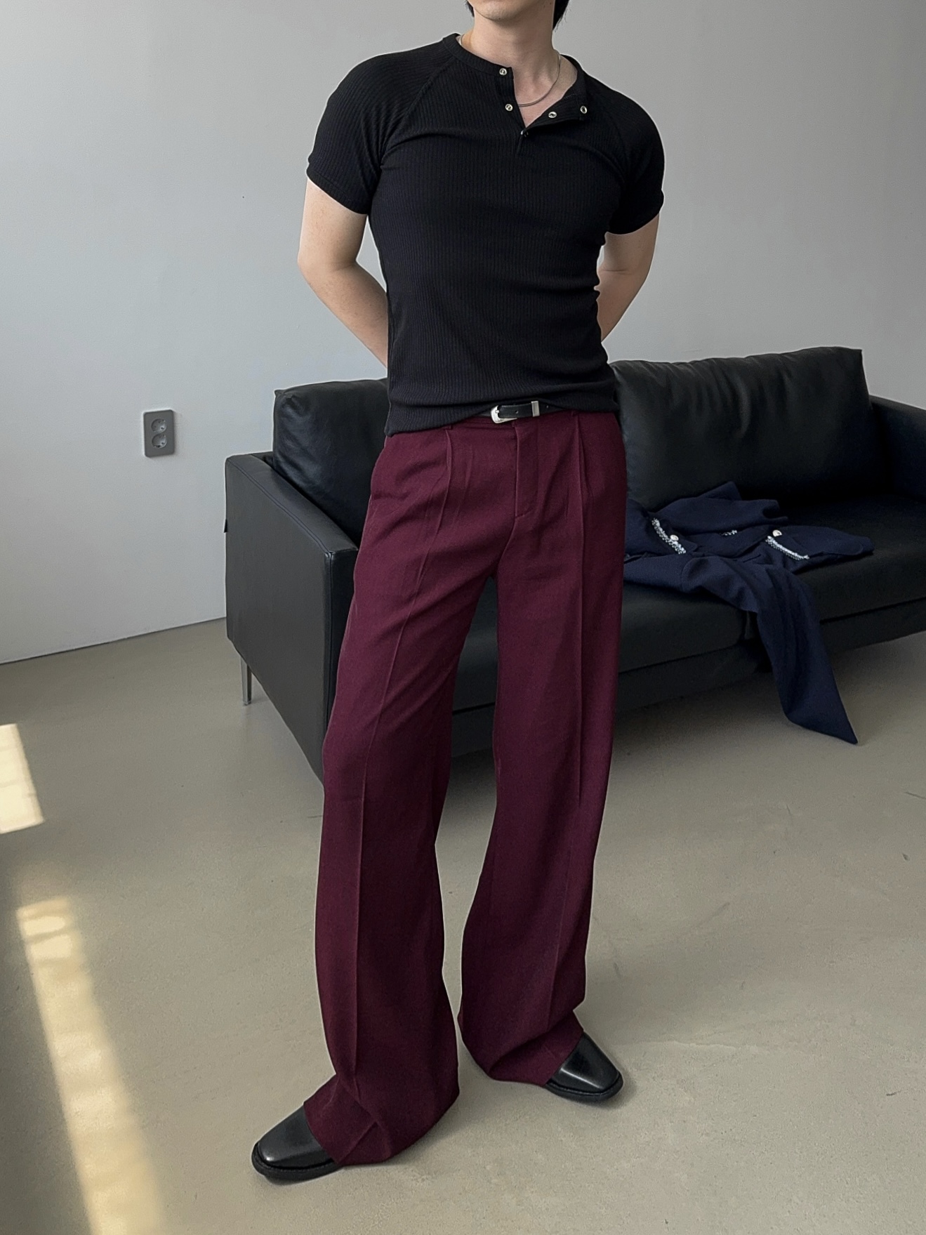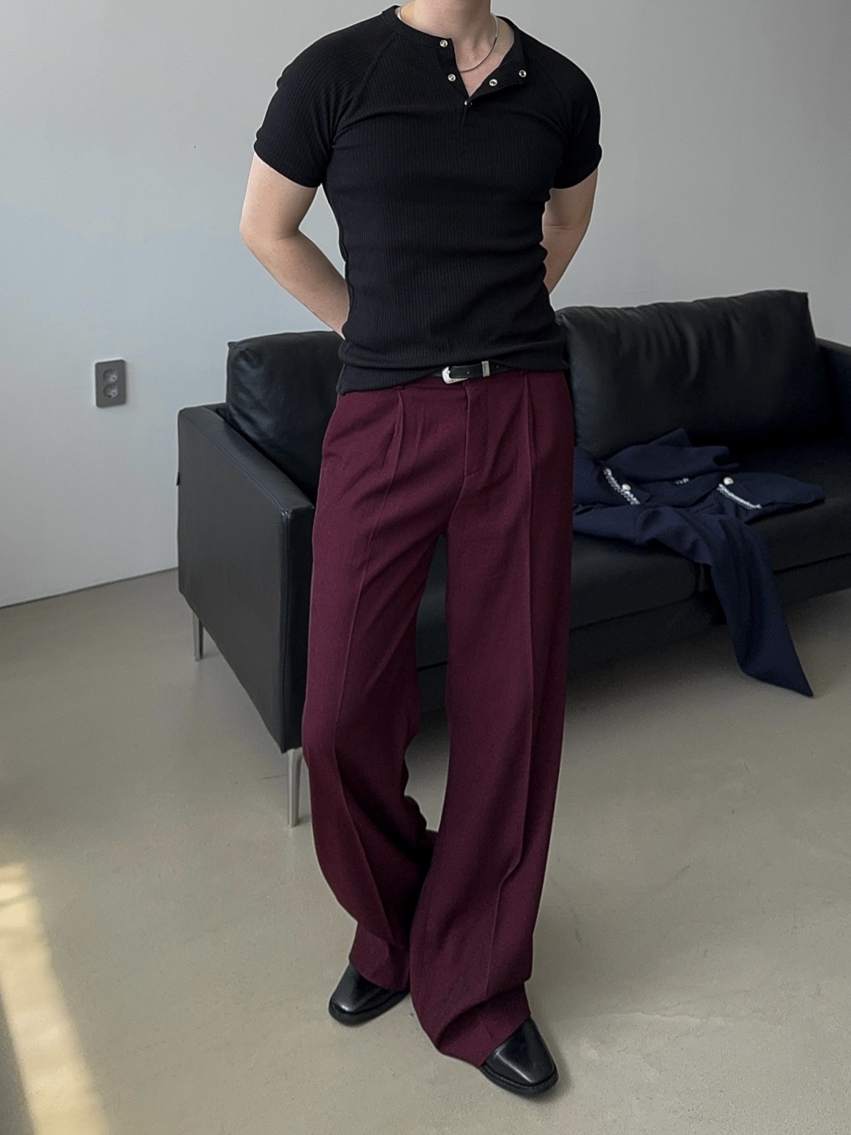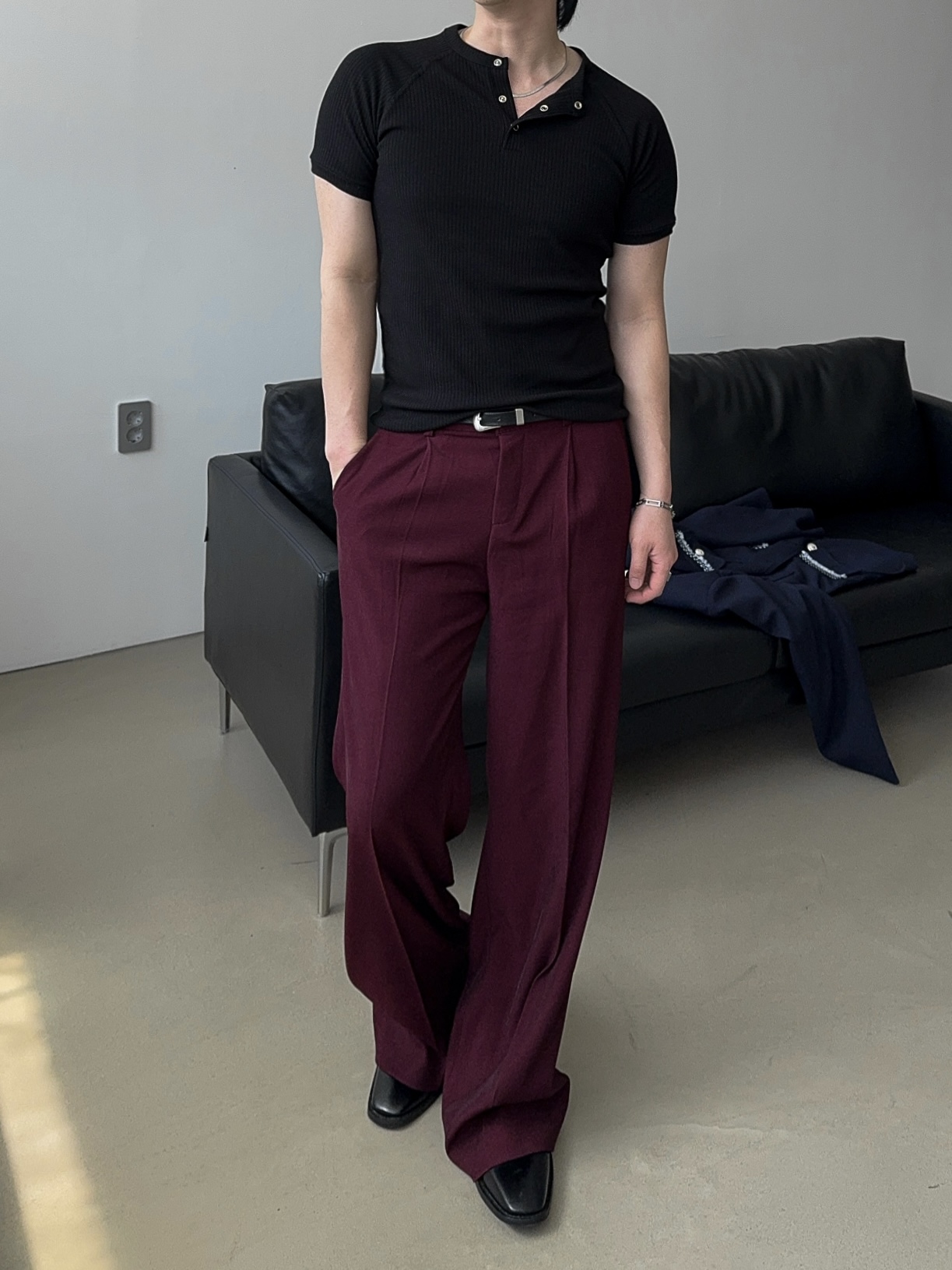 -쫀쫀한 골지 소재로 제작된 슬림 헨리넥 티셔츠