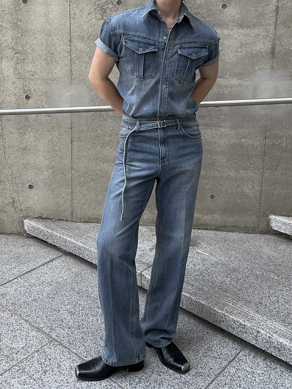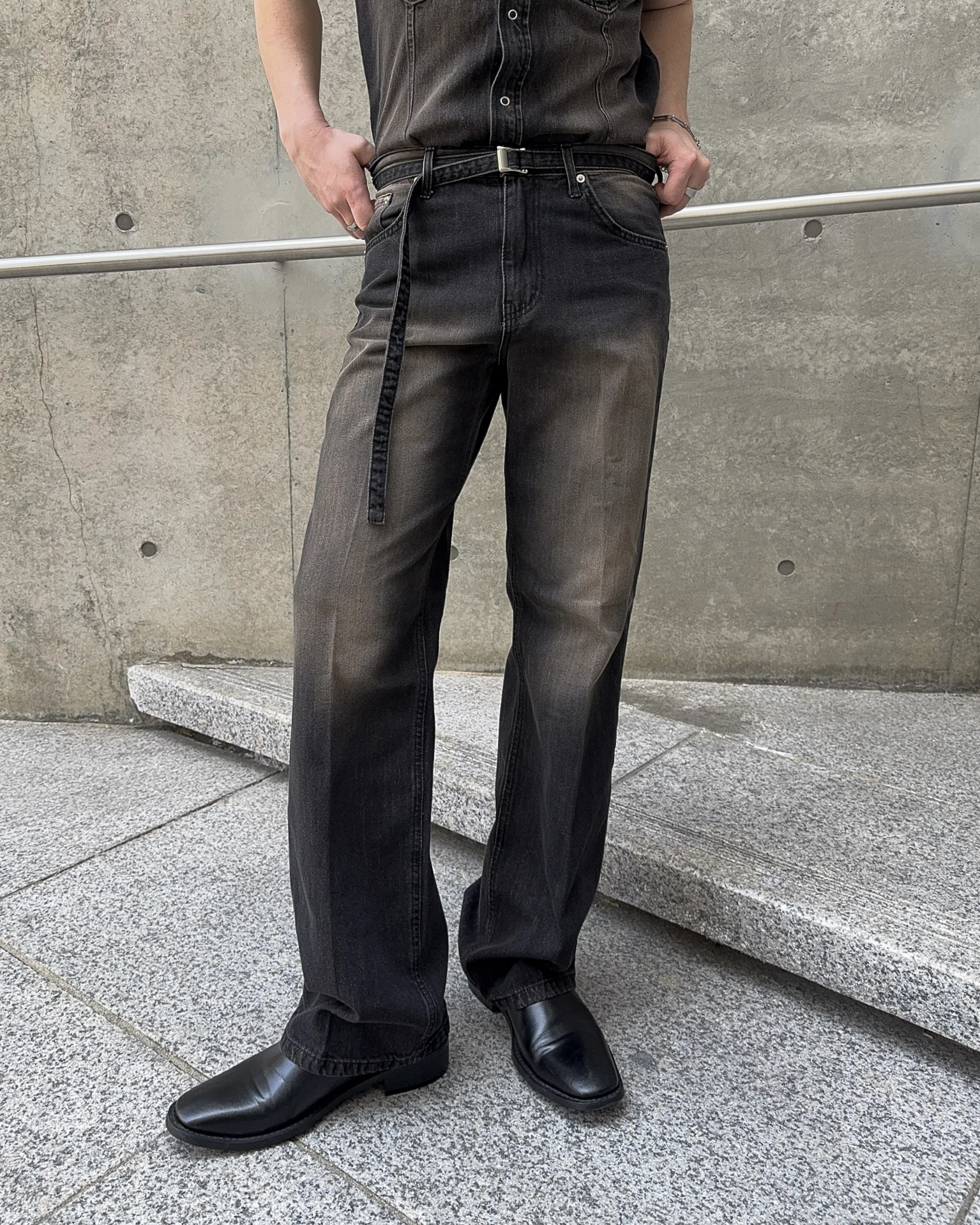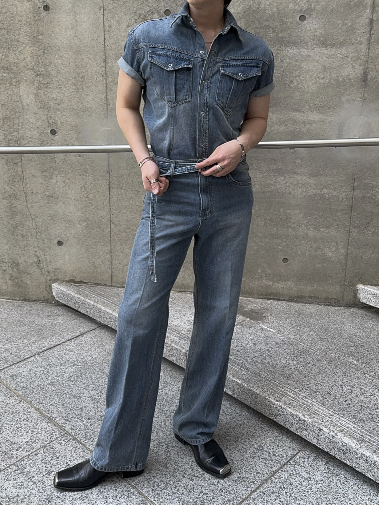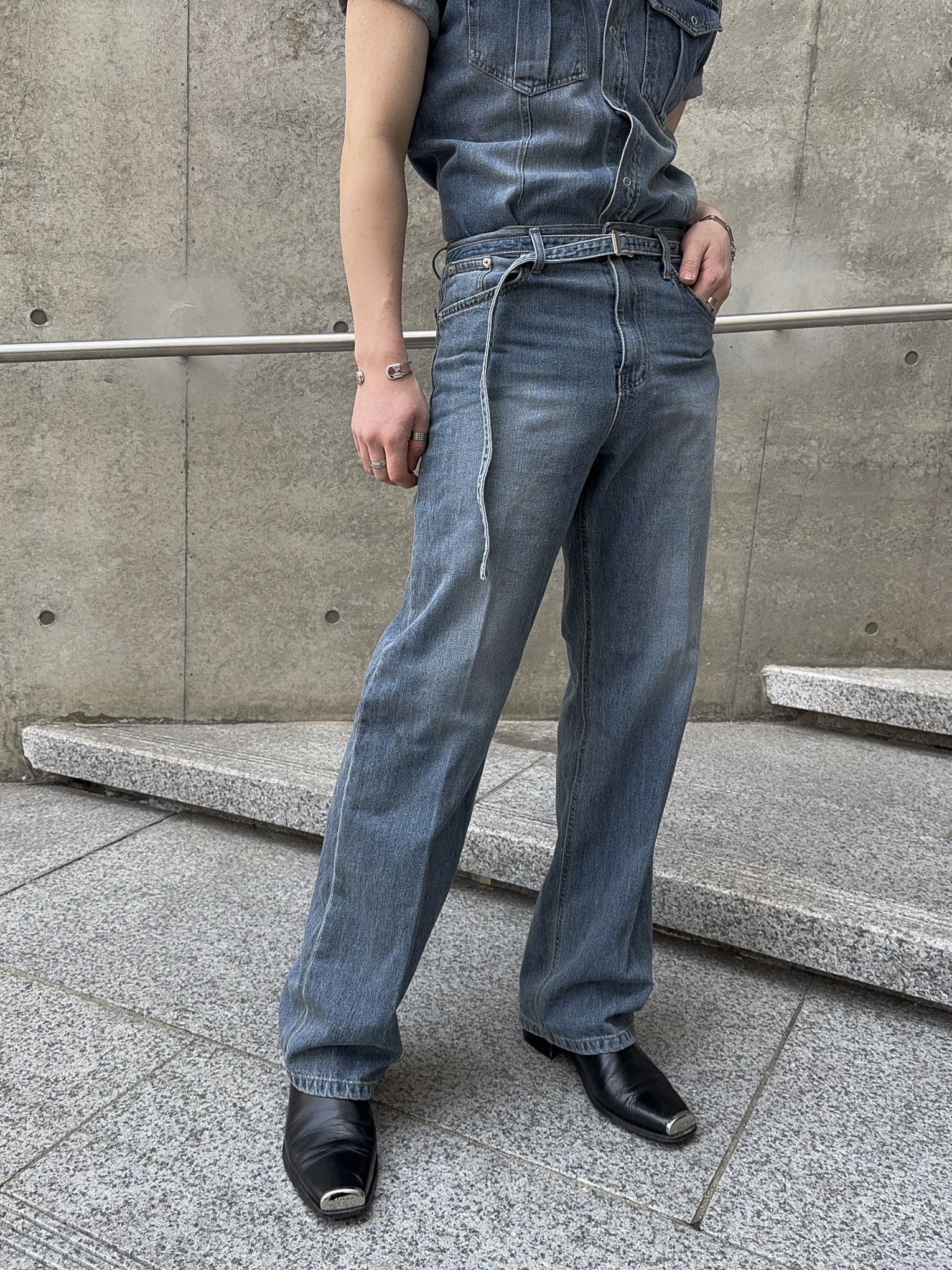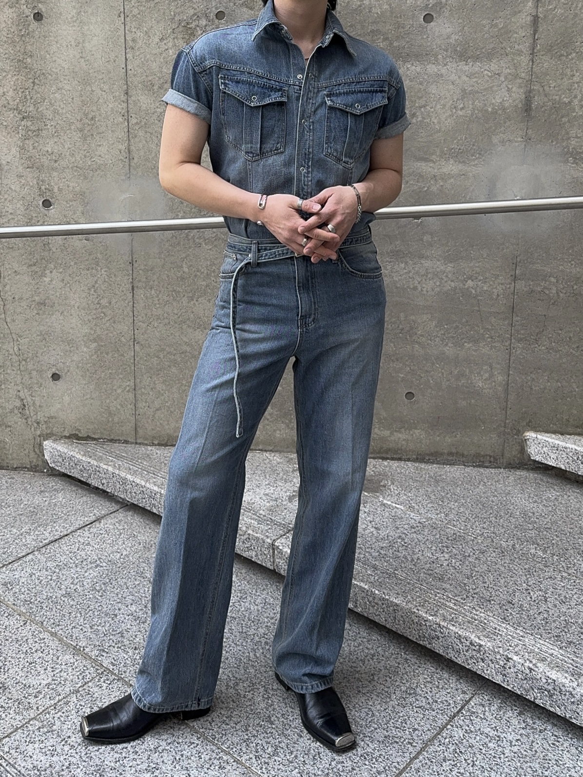 -쿨에버 데님 원단으로 제작된 세미와이드 데님 팬츠