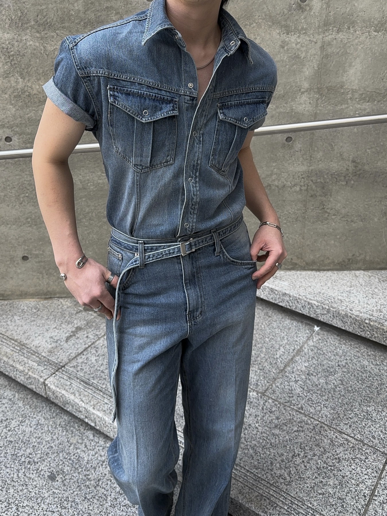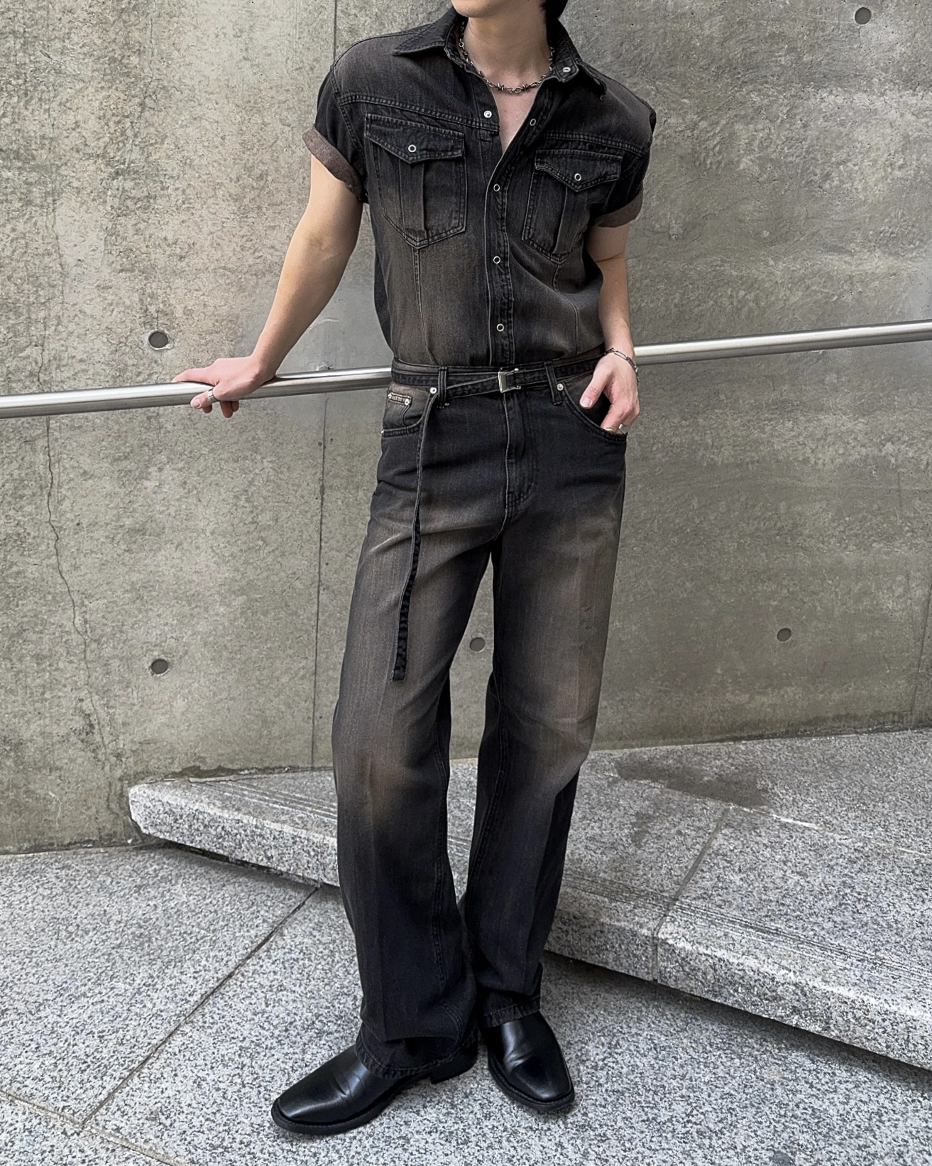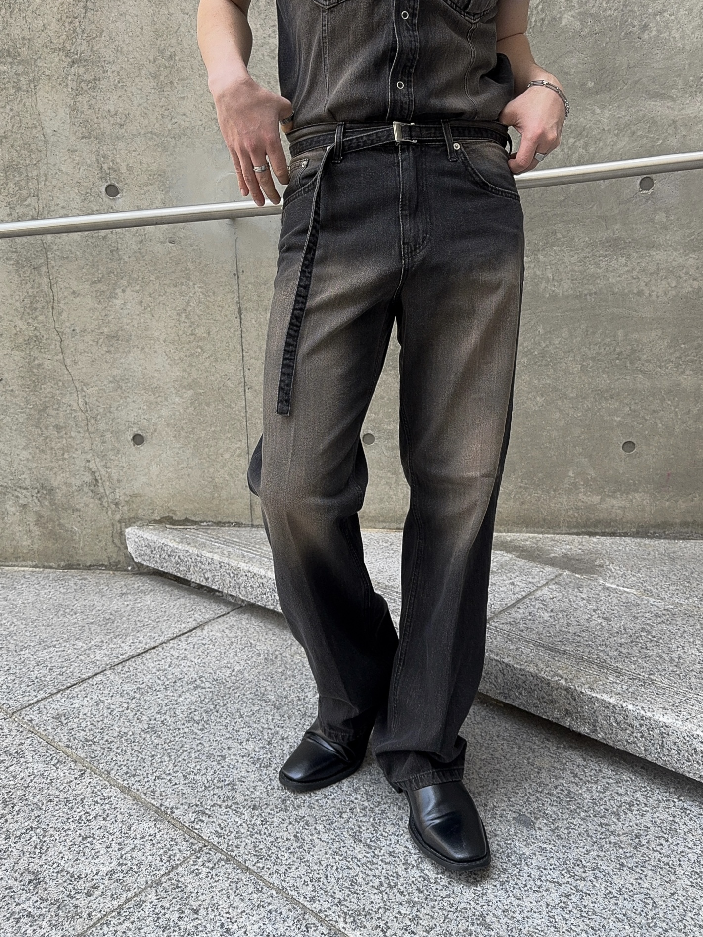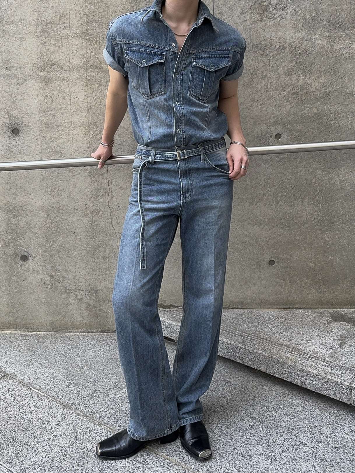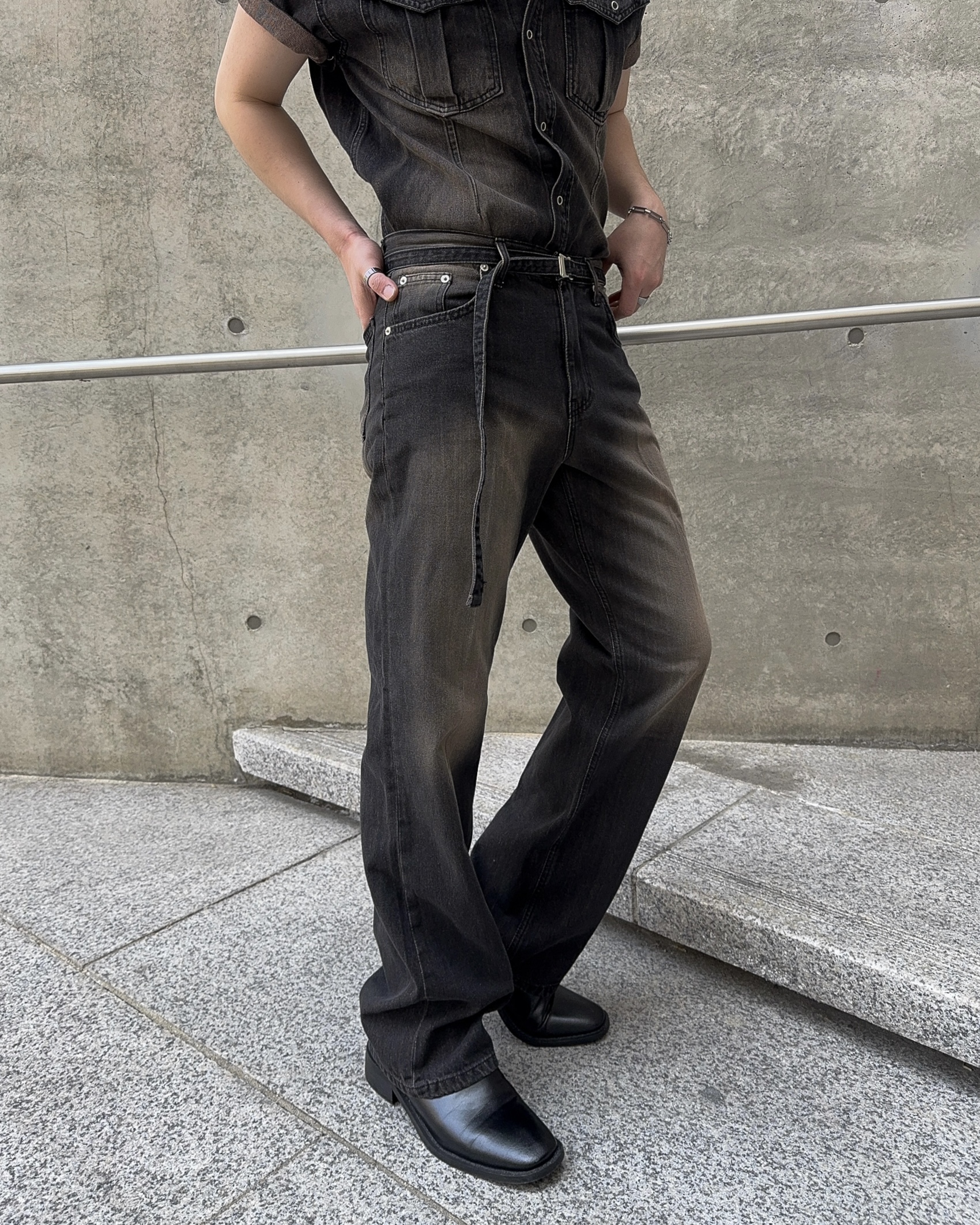 -쿨에버 데님 원단으로 제작된 세미와이드 데님 팬츠