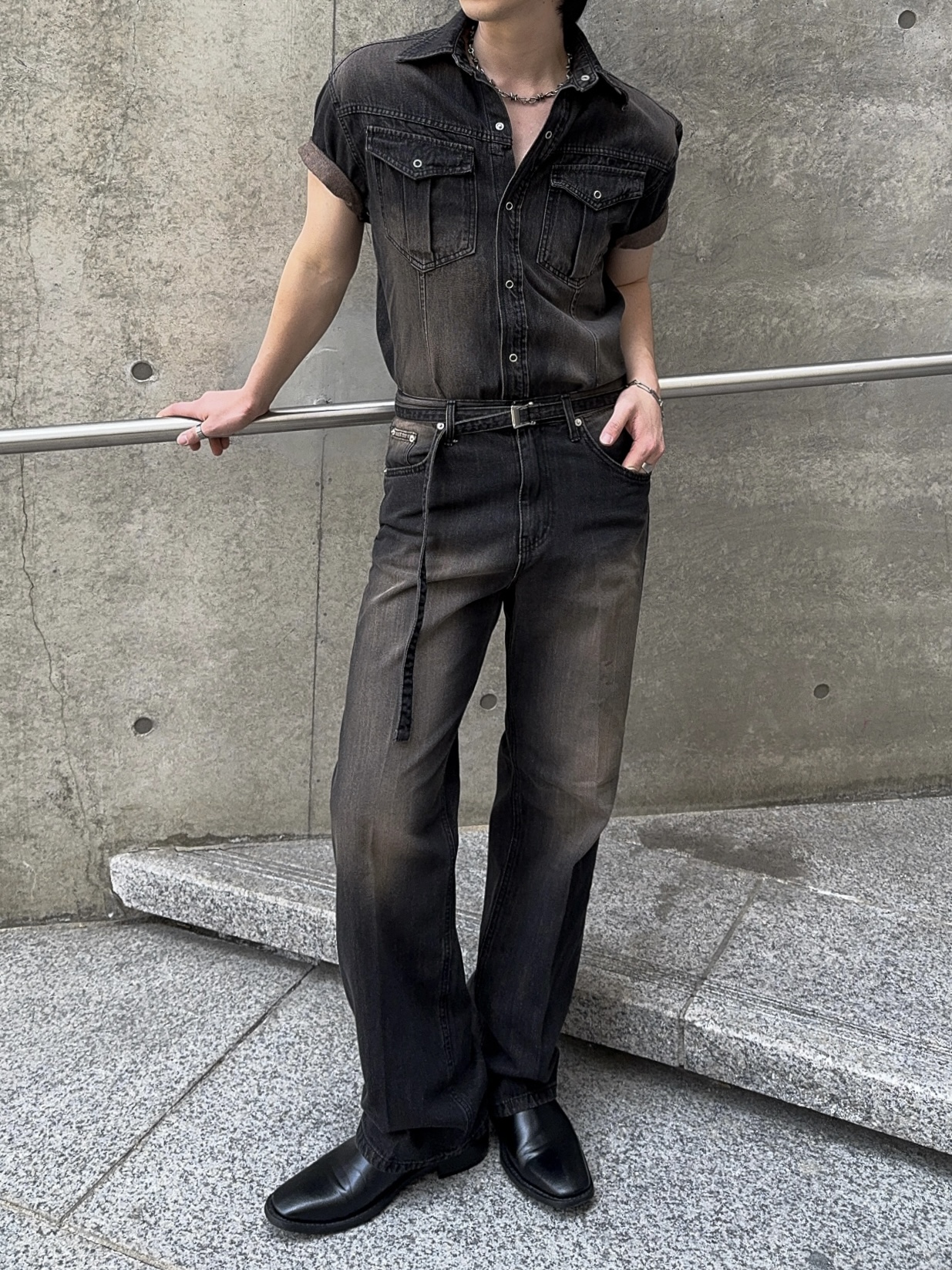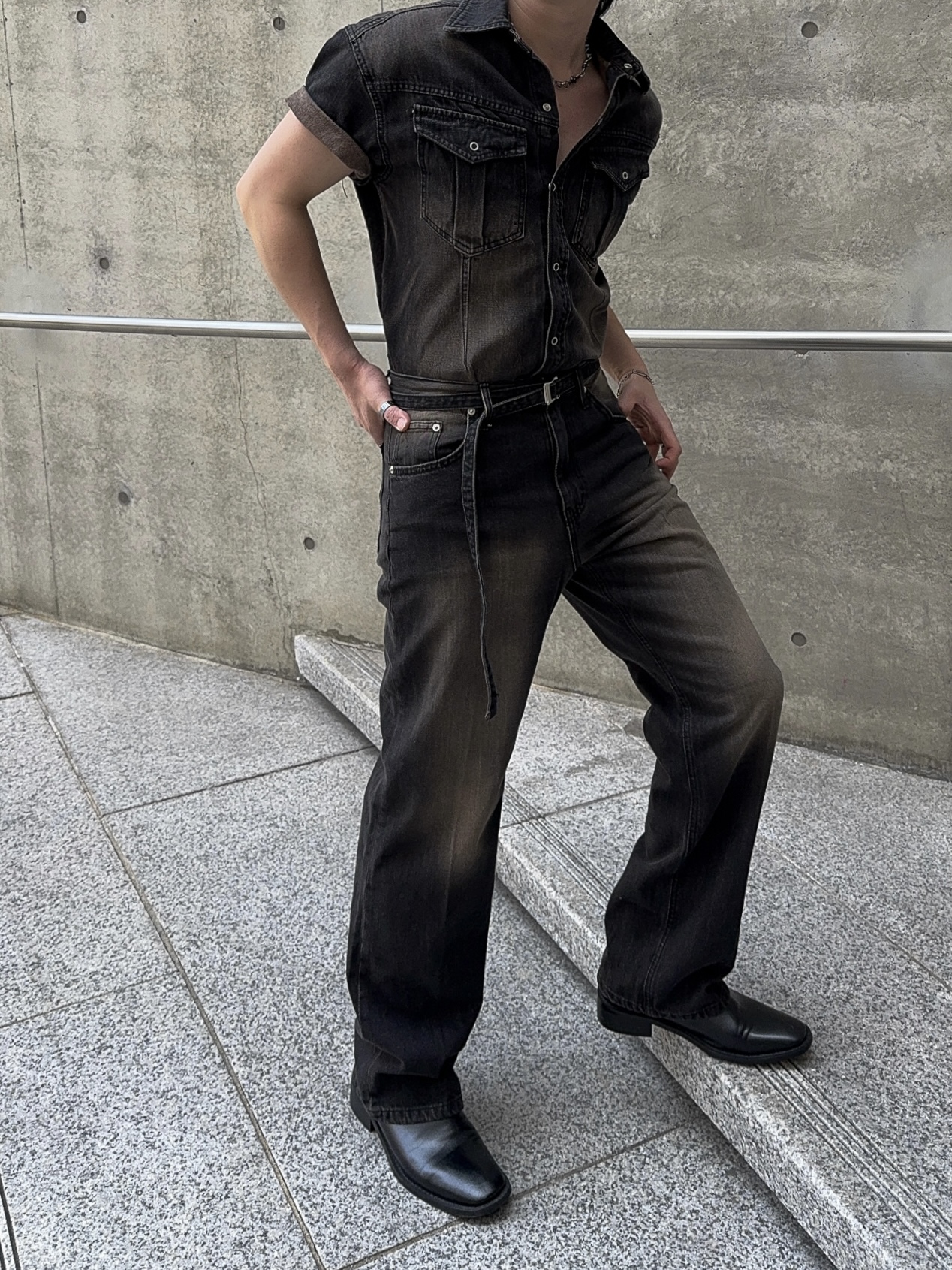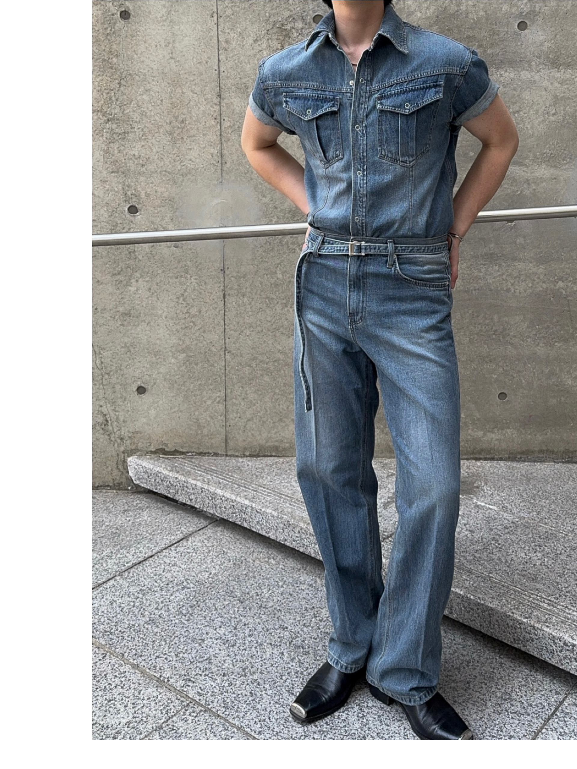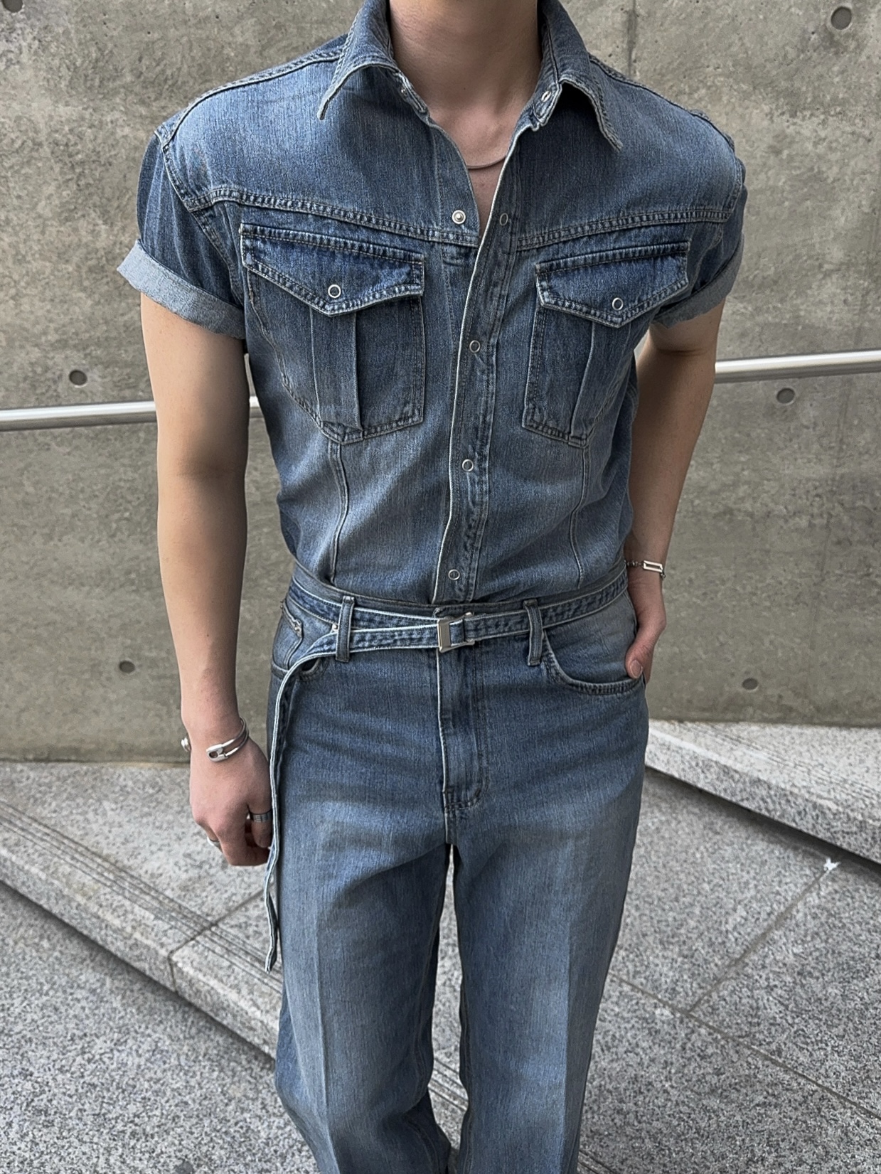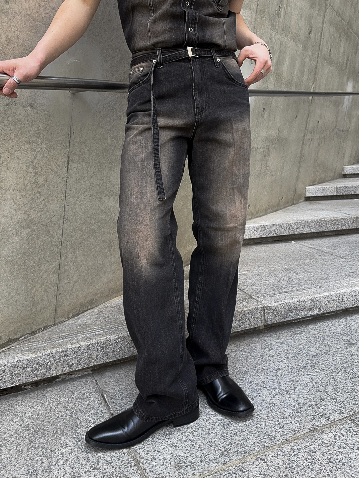 -쿨에버 데님 원단으로 제작된 세미와이드 데님 팬츠