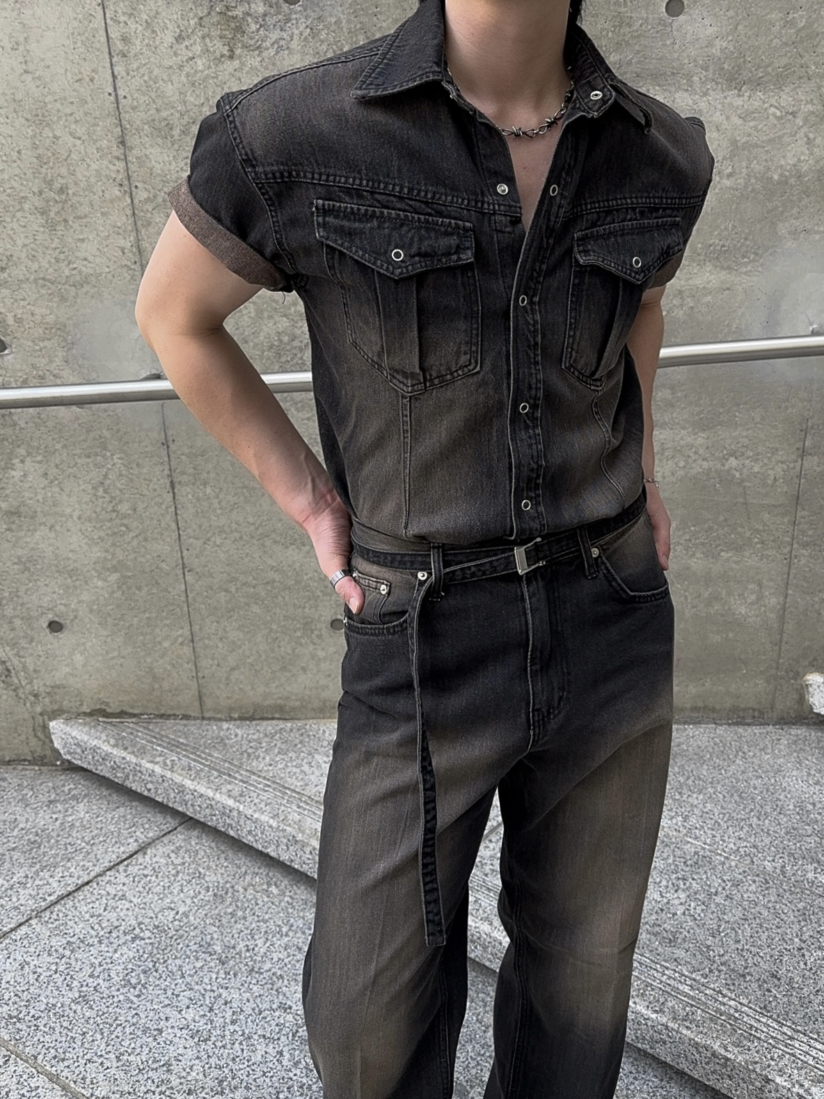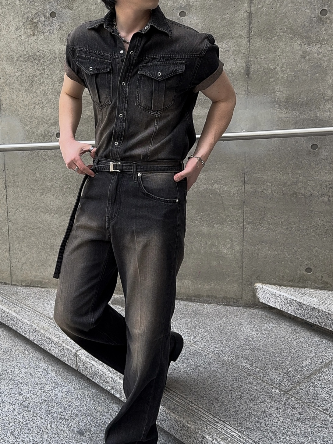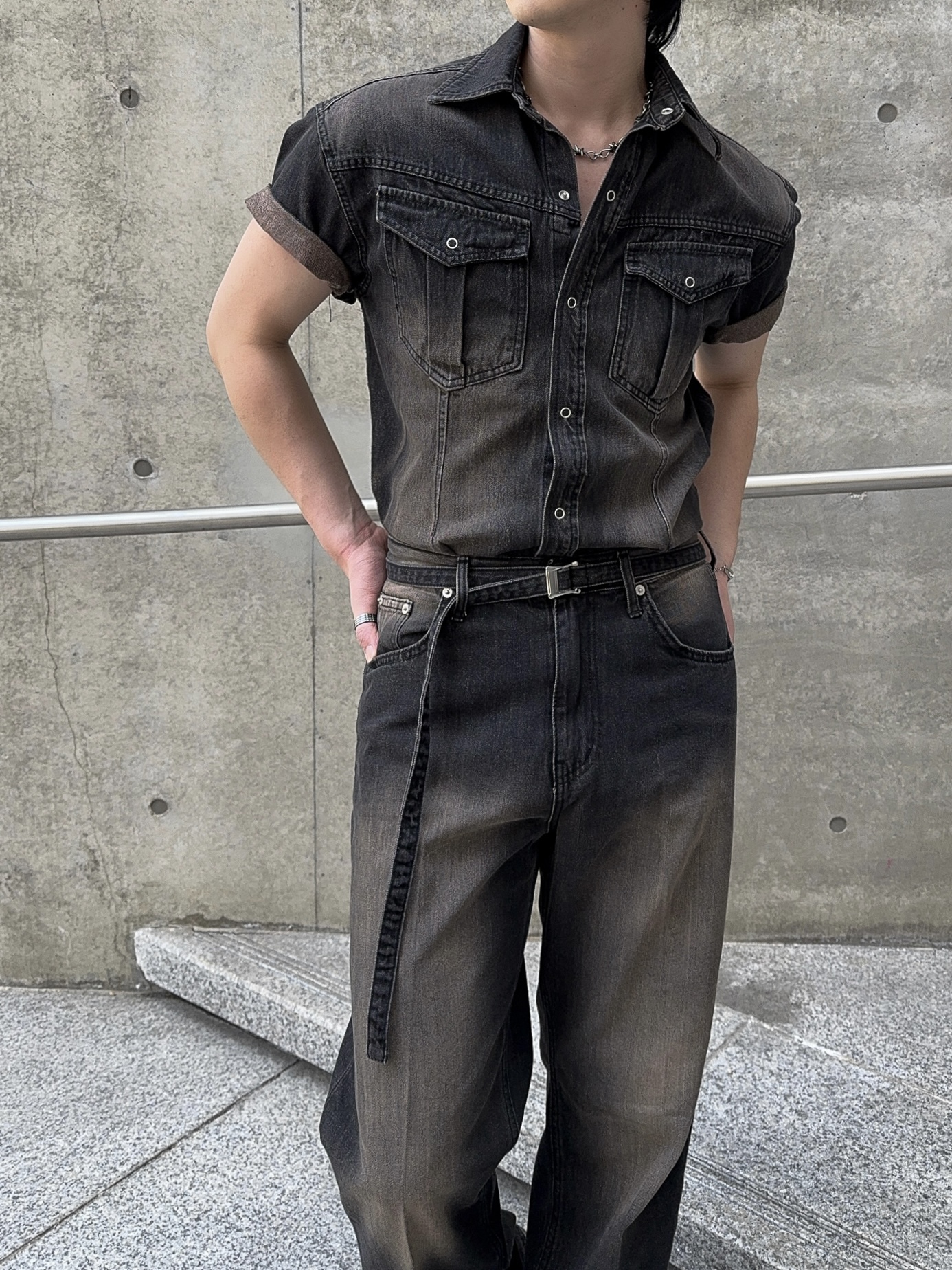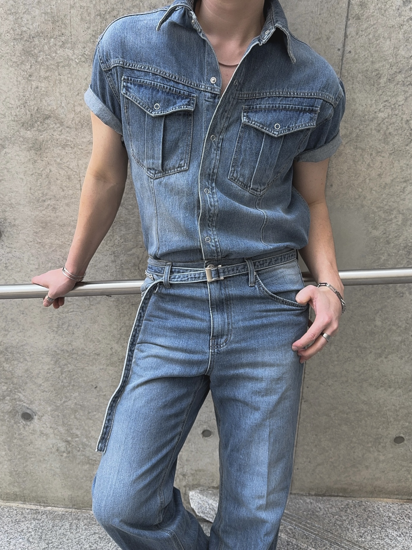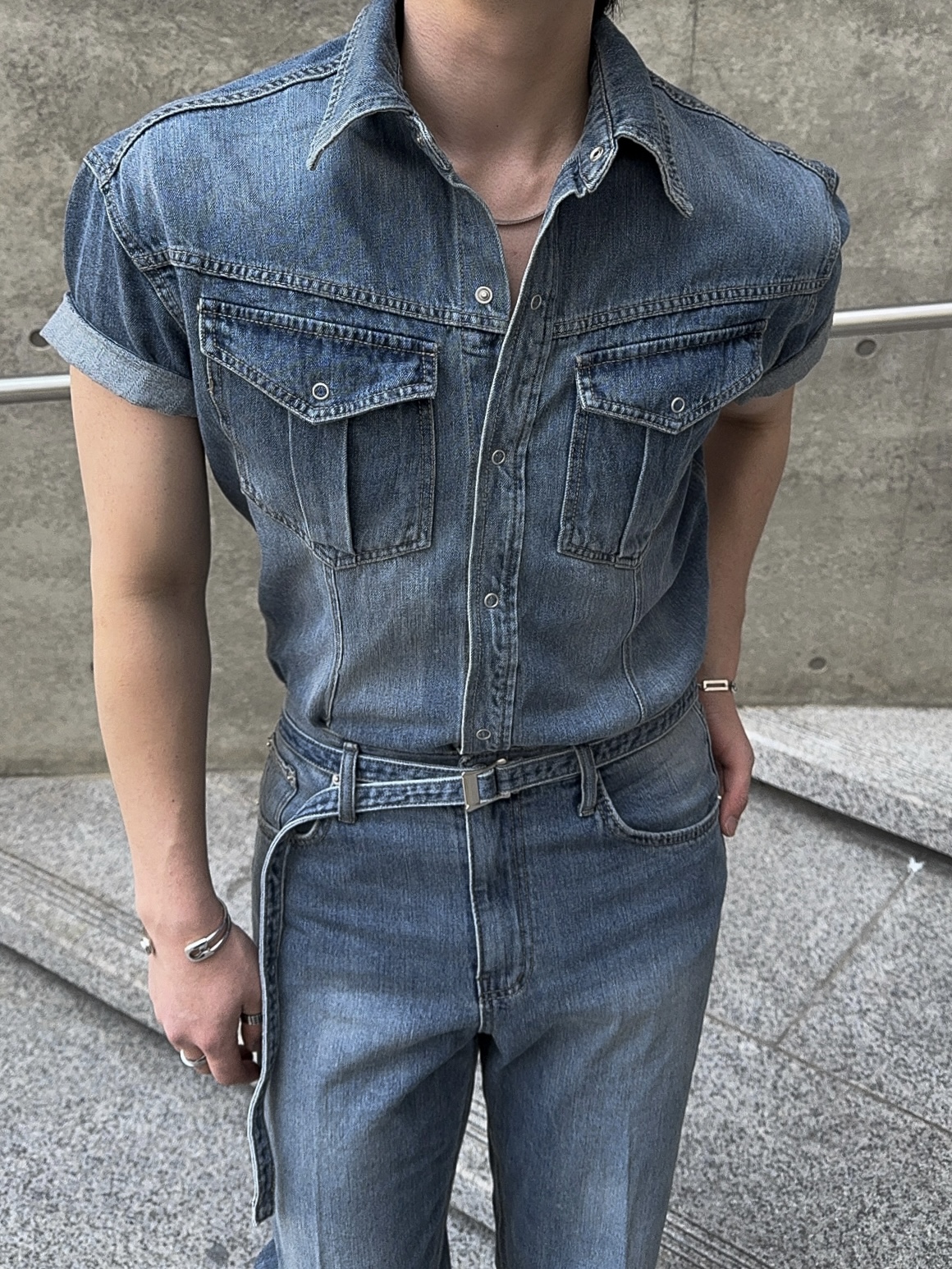 -쿨에버 데님 원단으로 제작된 세미와이드 데님 팬츠