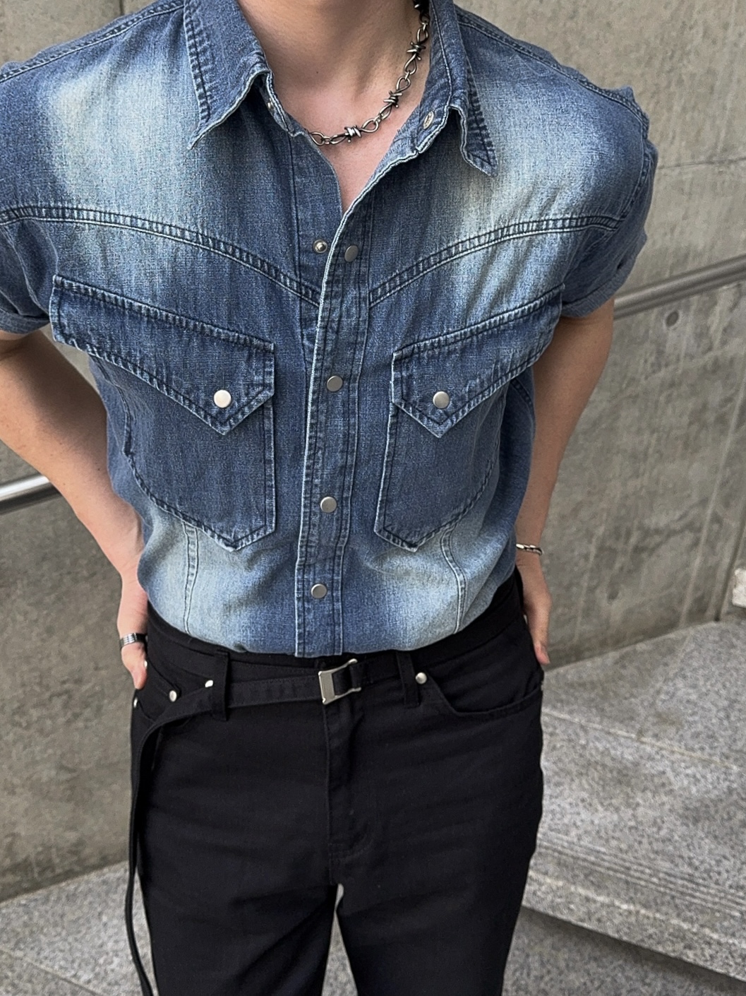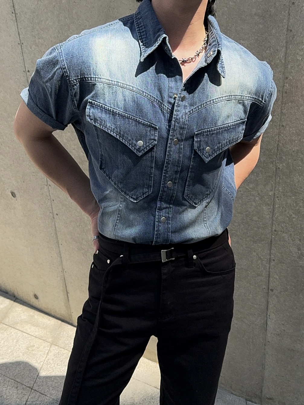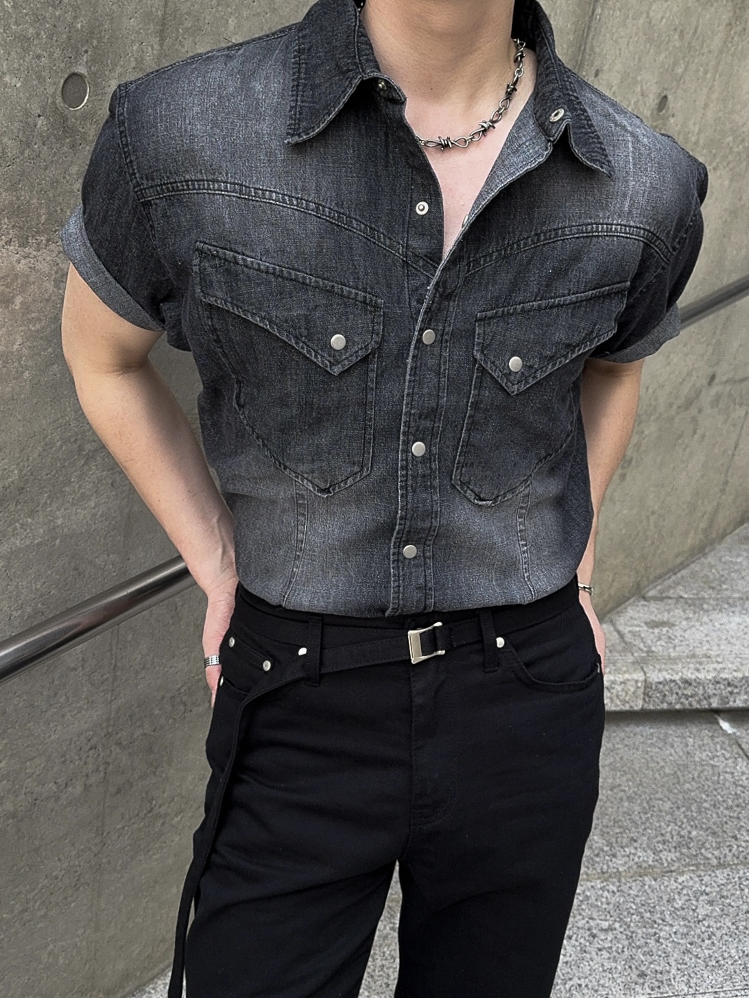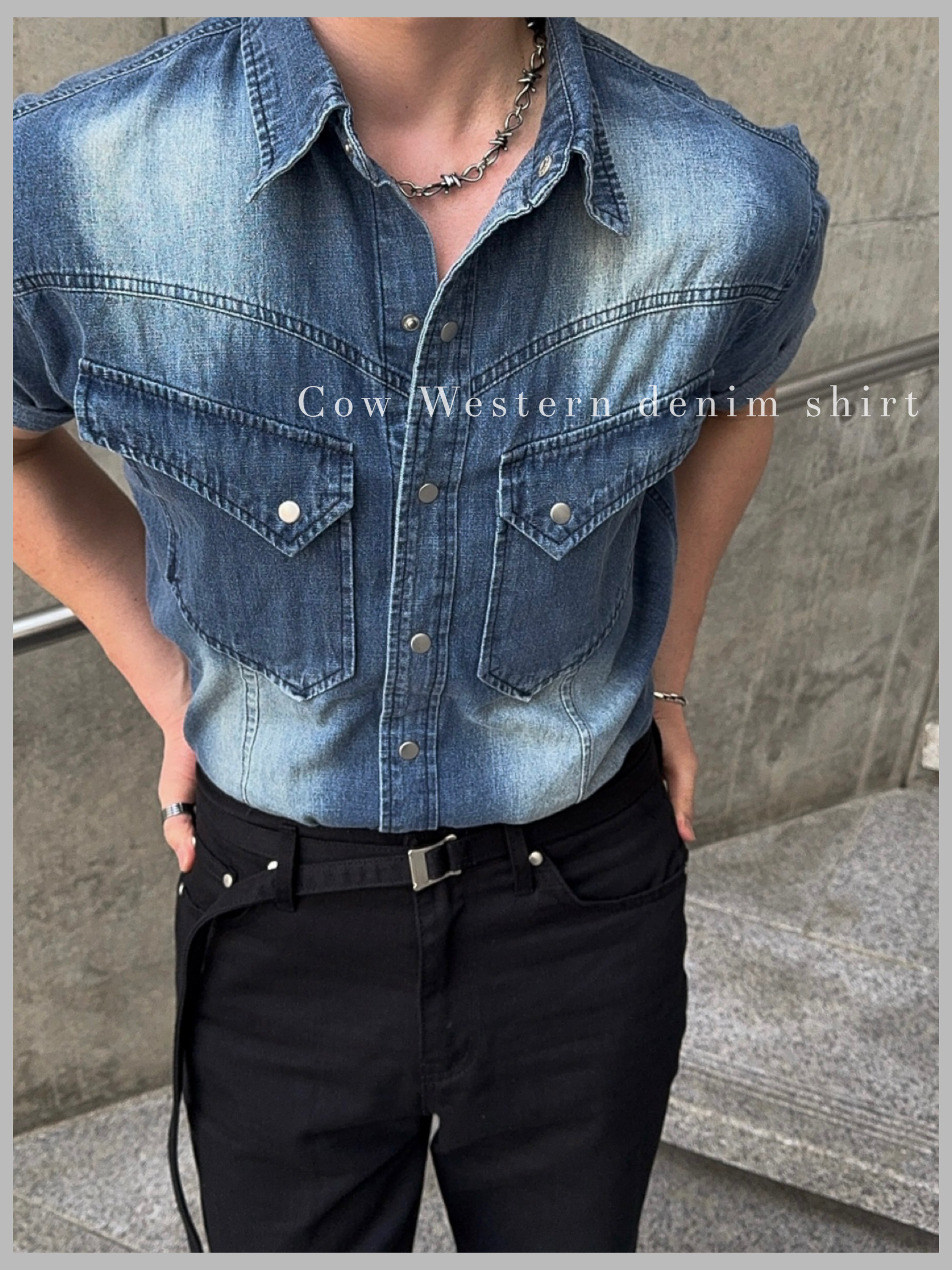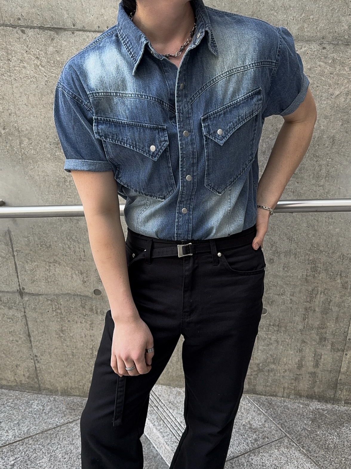 -착용시 섹시한 아웃핏이 돋보이는 웨스턴 데님 셔츠