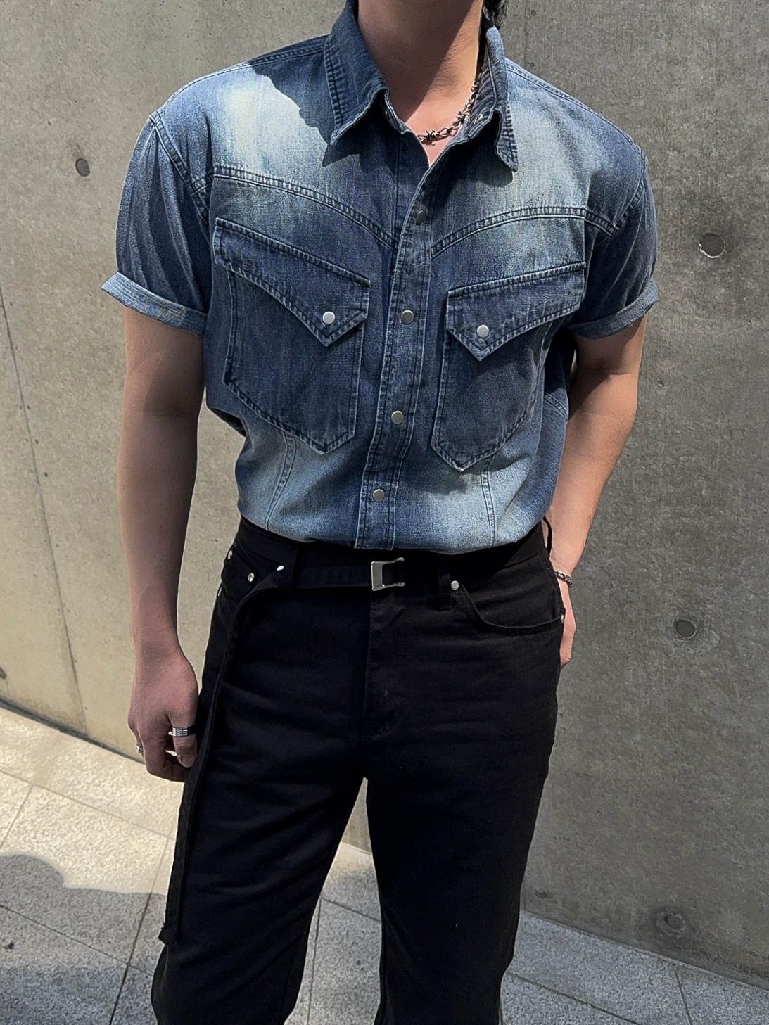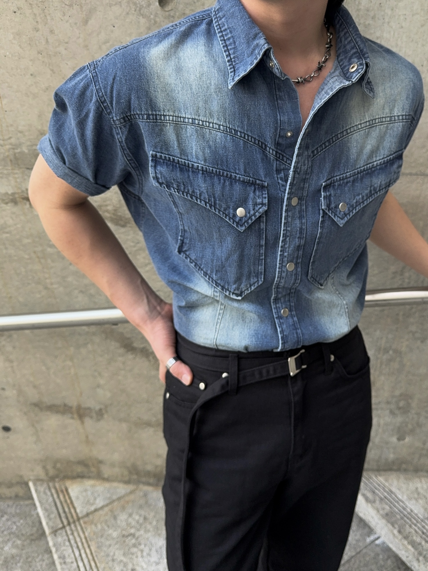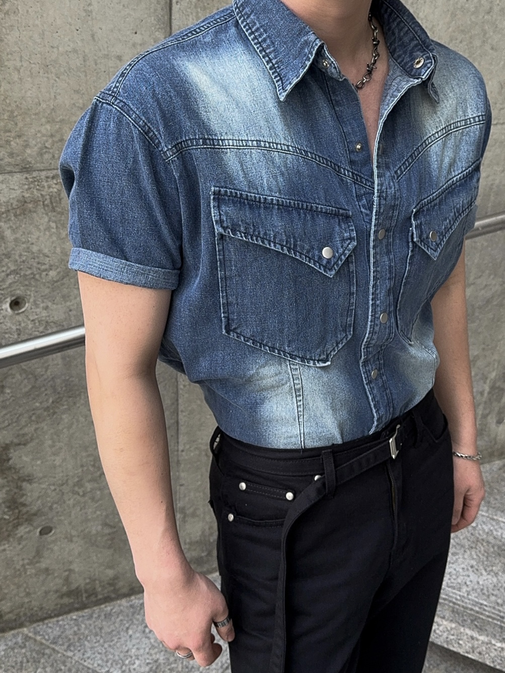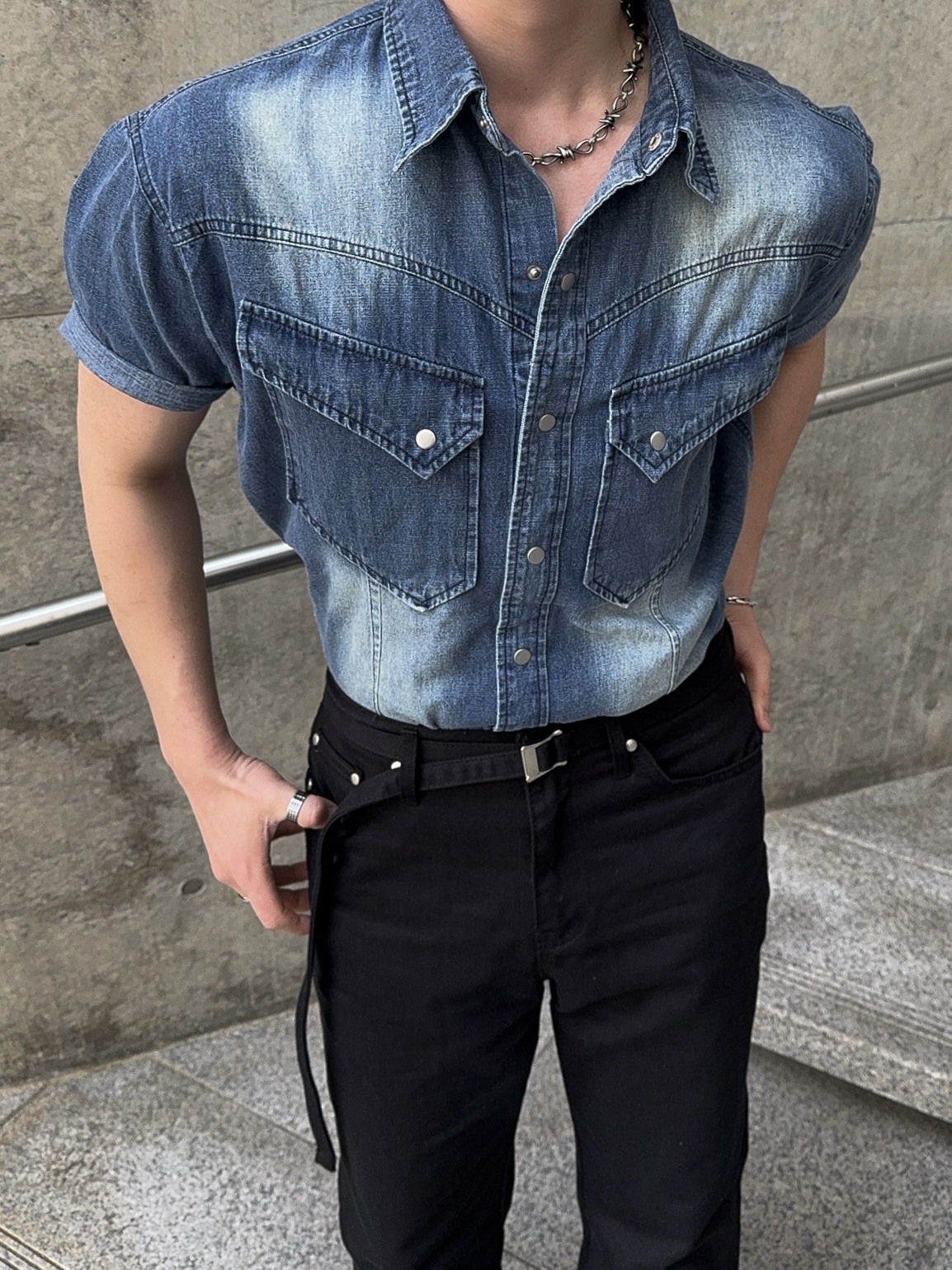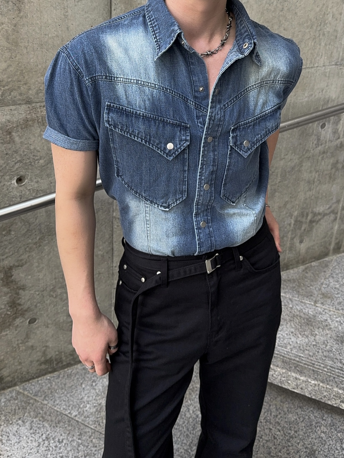 -착용시 섹시한 아웃핏이 돋보이는 웨스턴 데님 셔츠