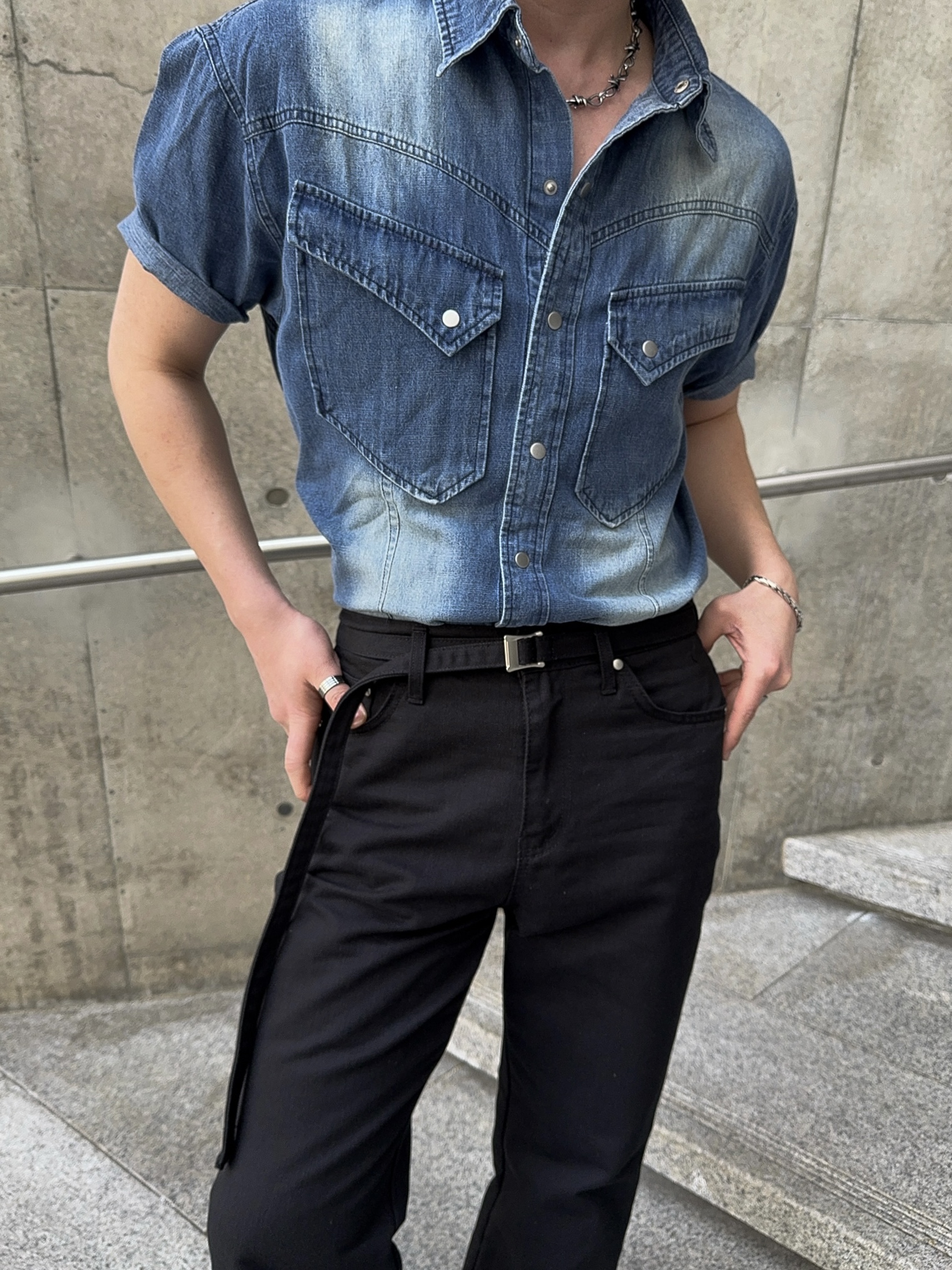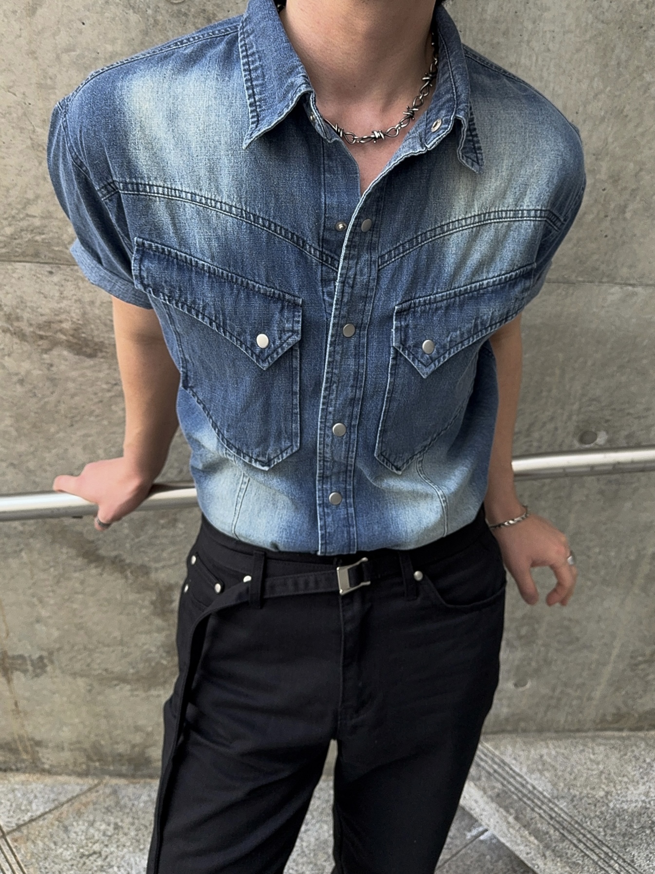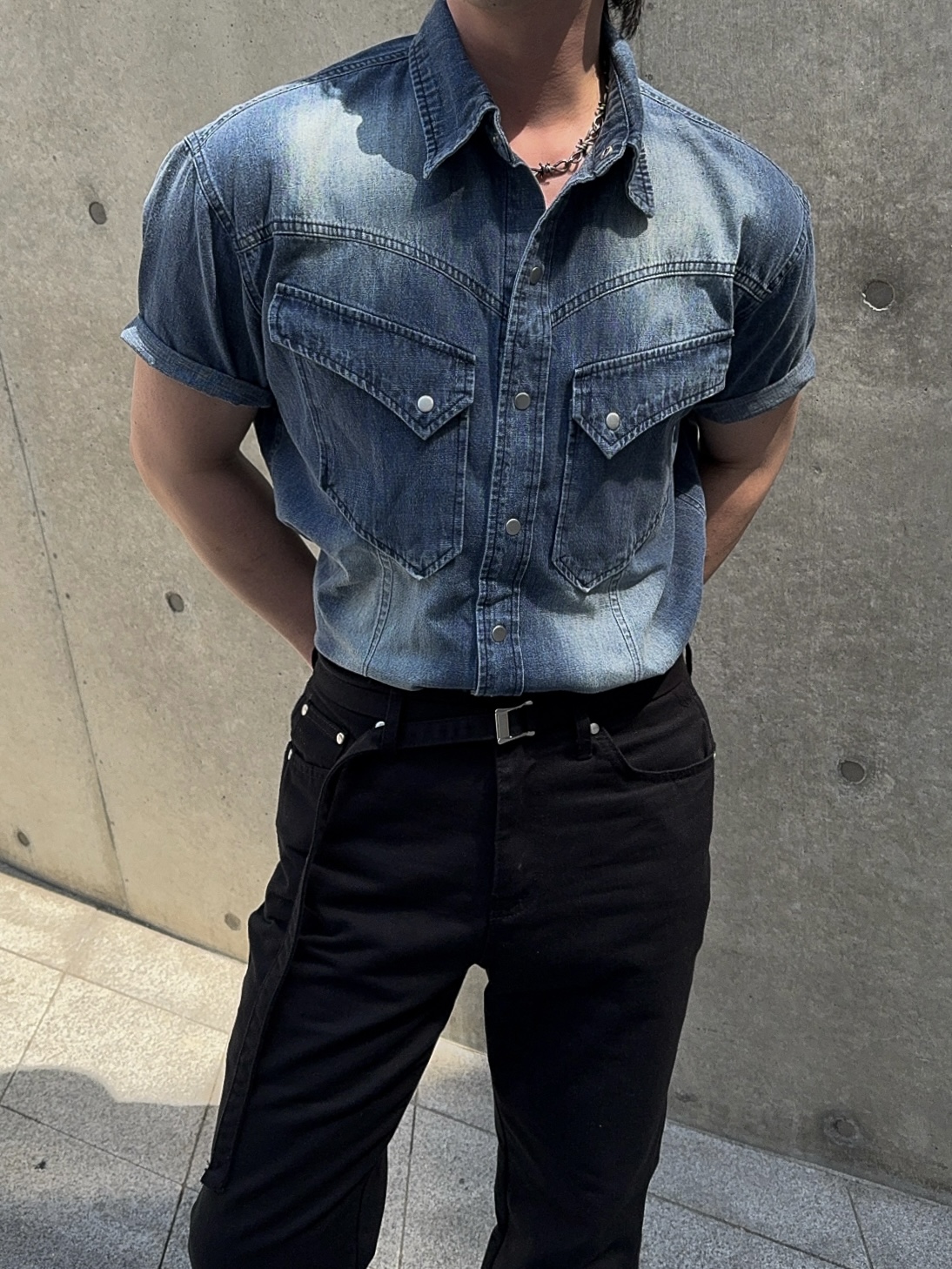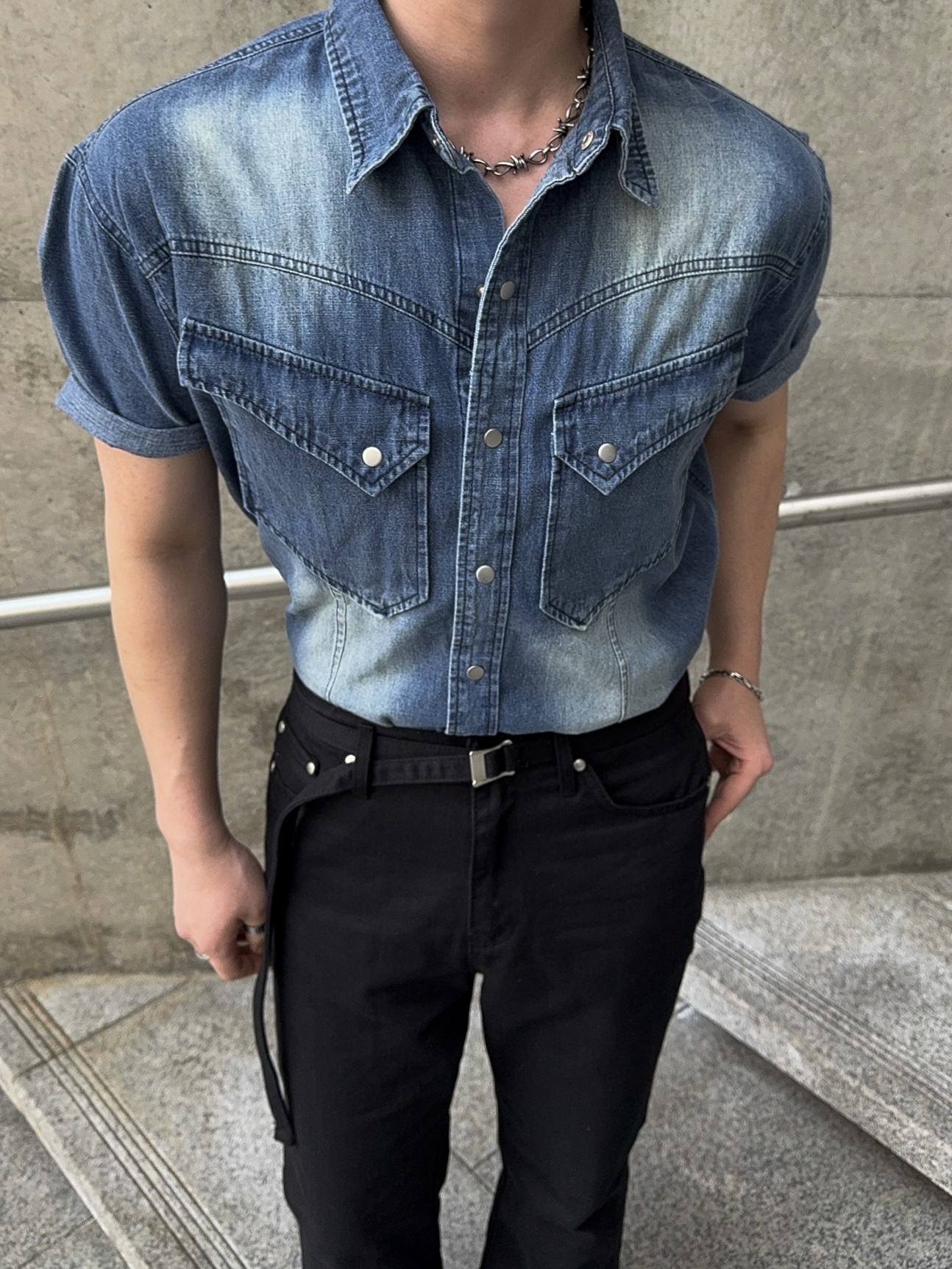 -착용시 섹시한 아웃핏이 돋보이는 웨스턴 데님 셔츠