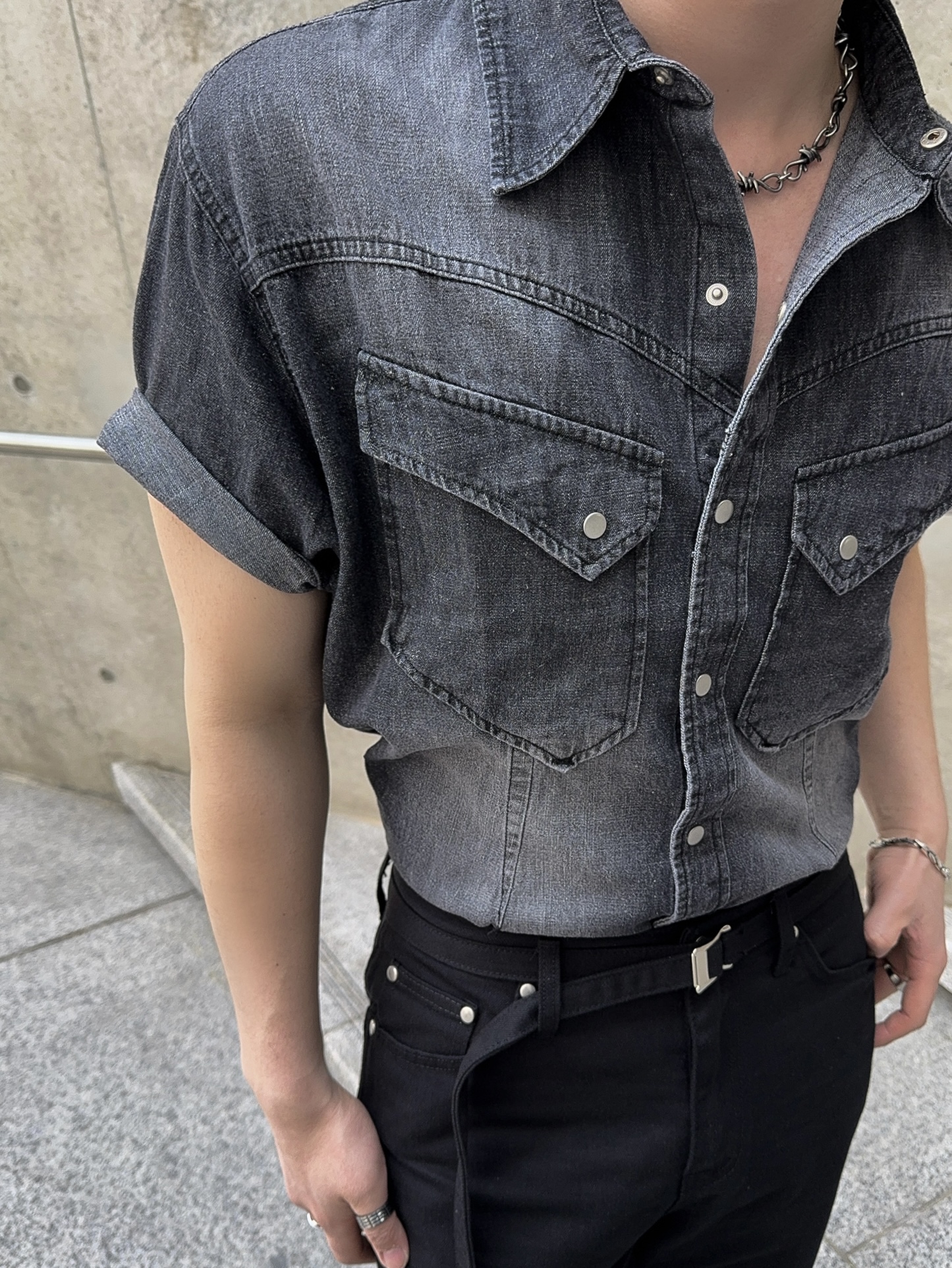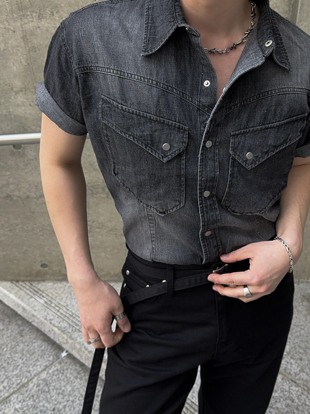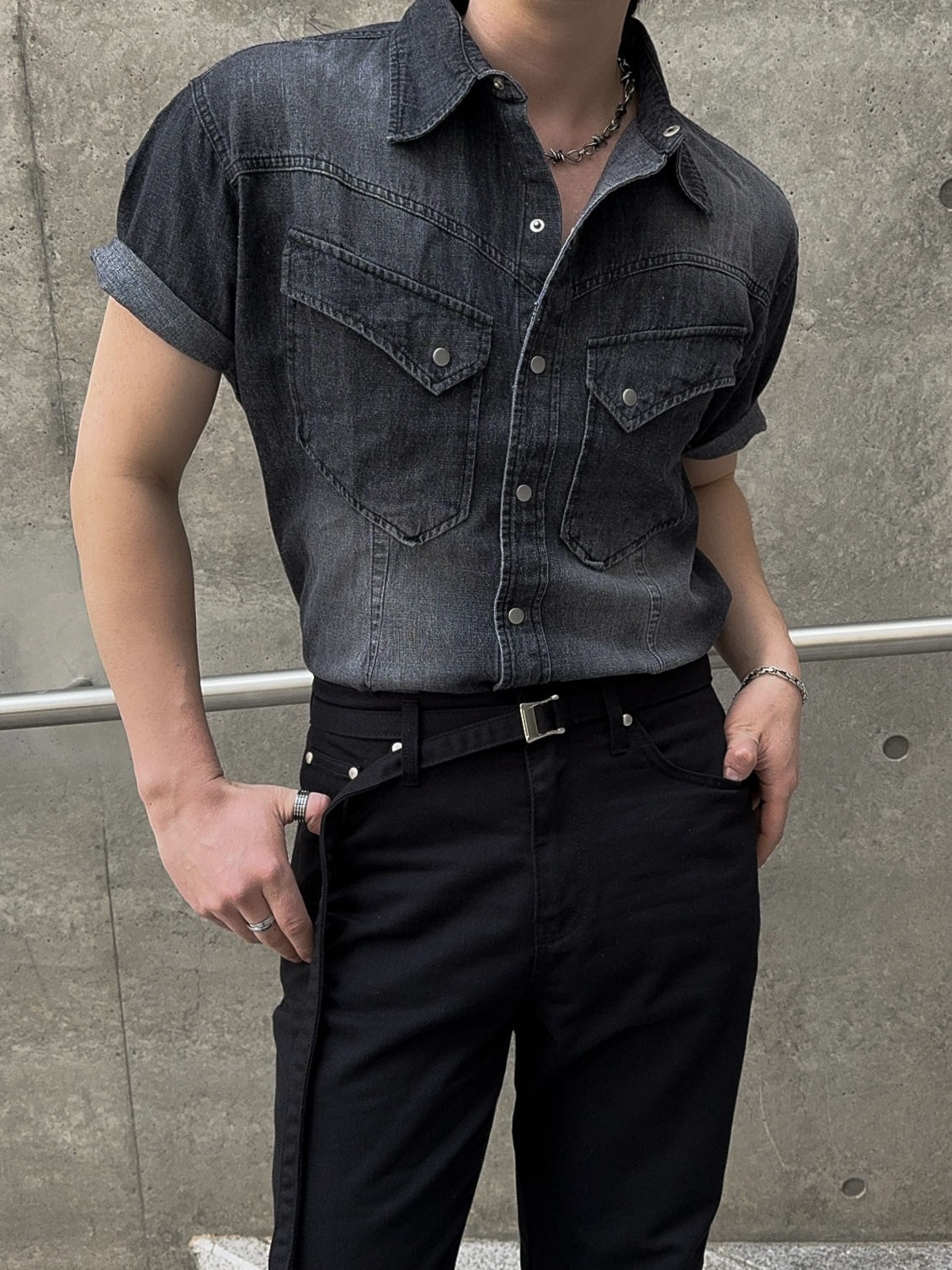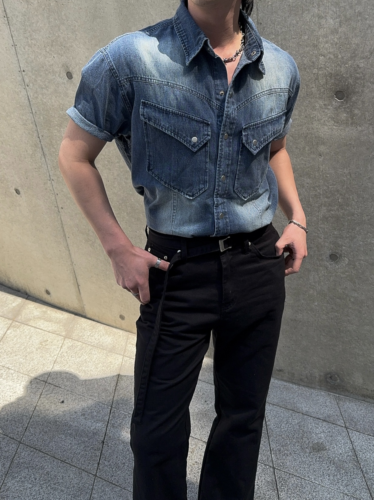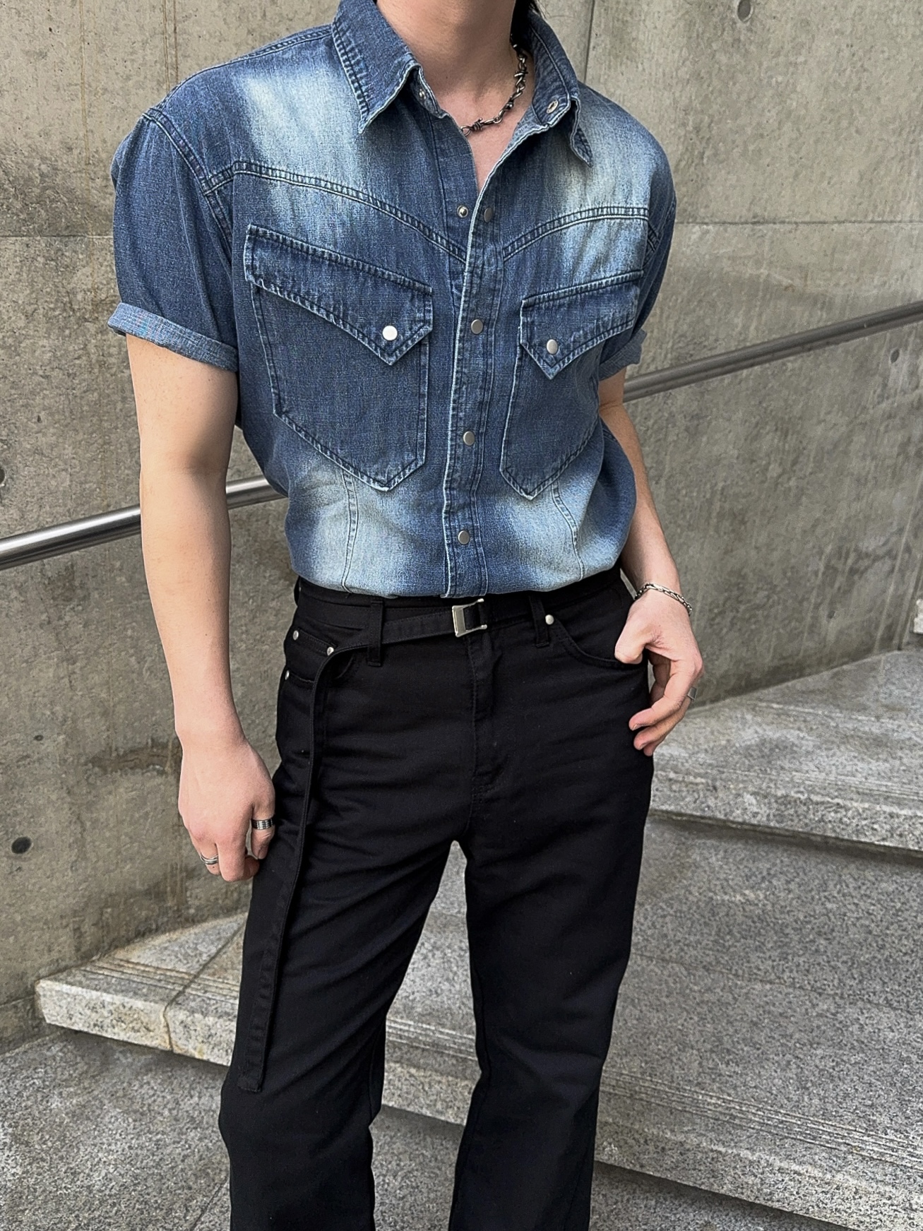 -착용시 섹시한 아웃핏이 돋보이는 웨스턴 데님 셔츠