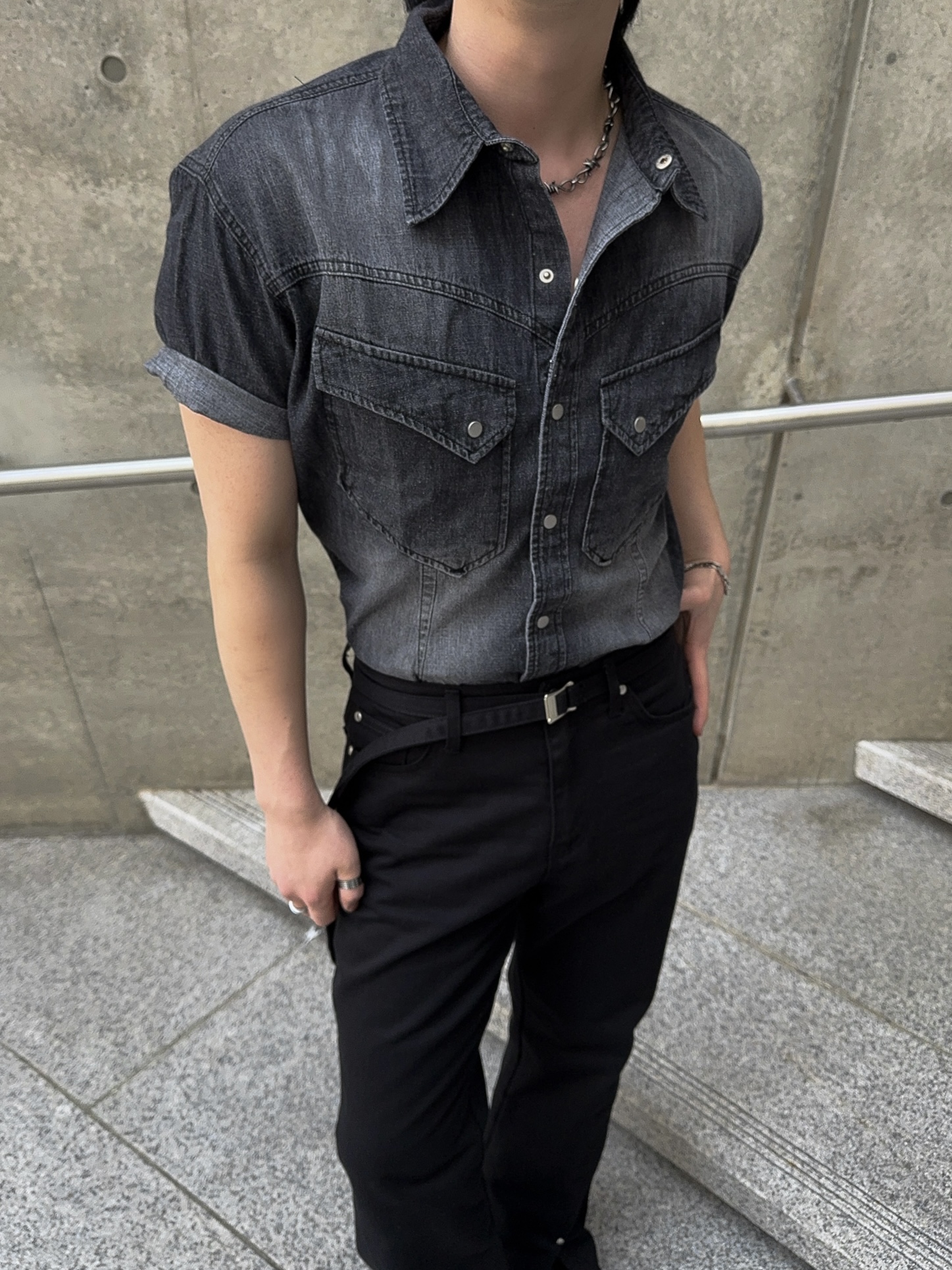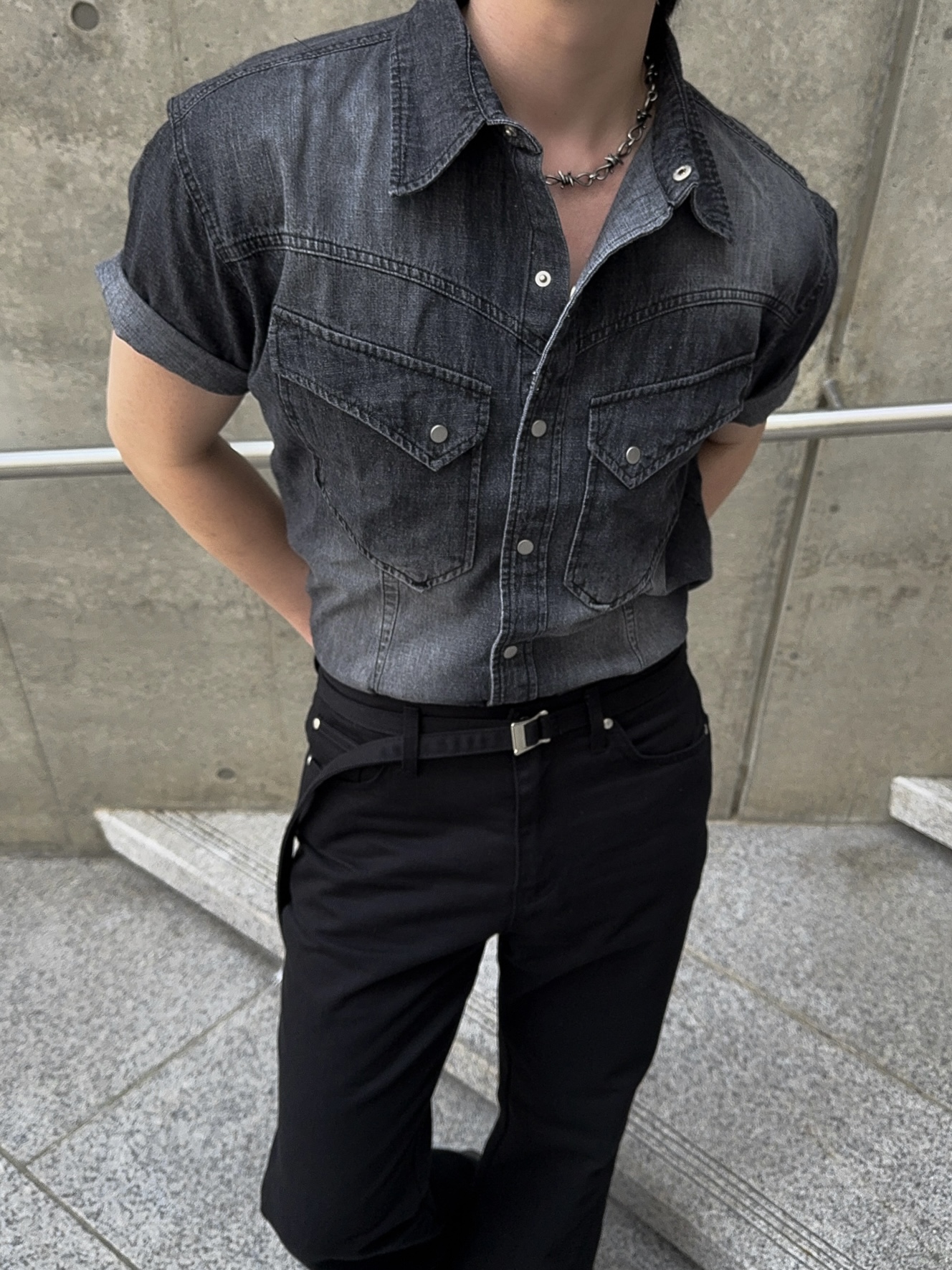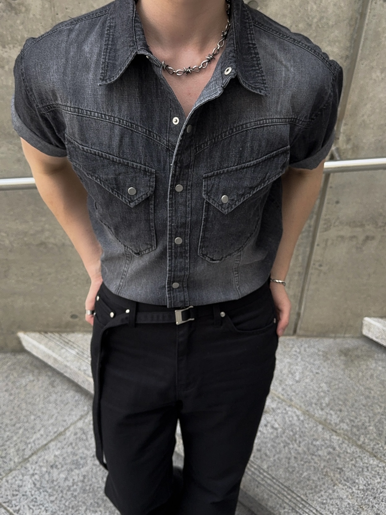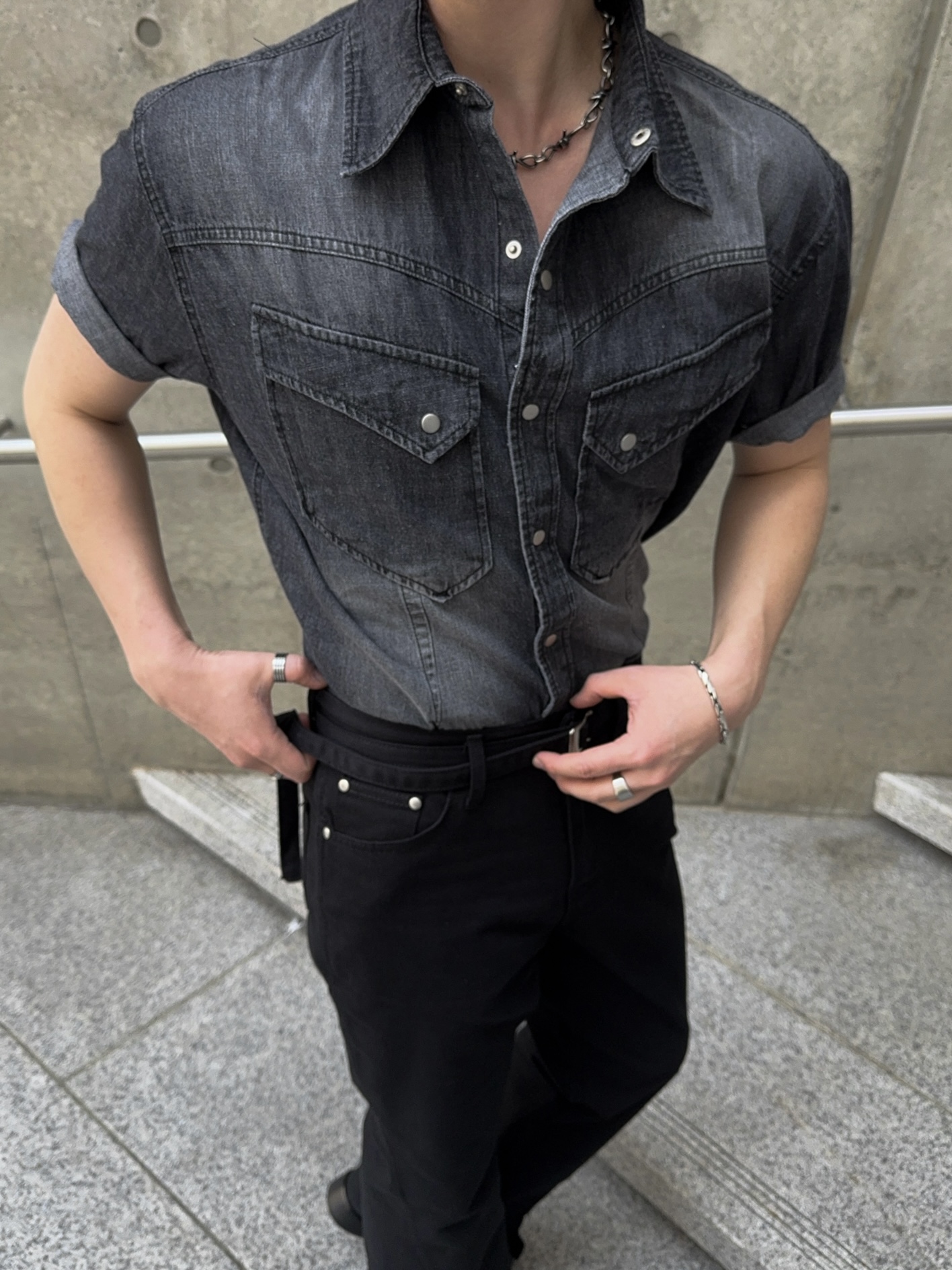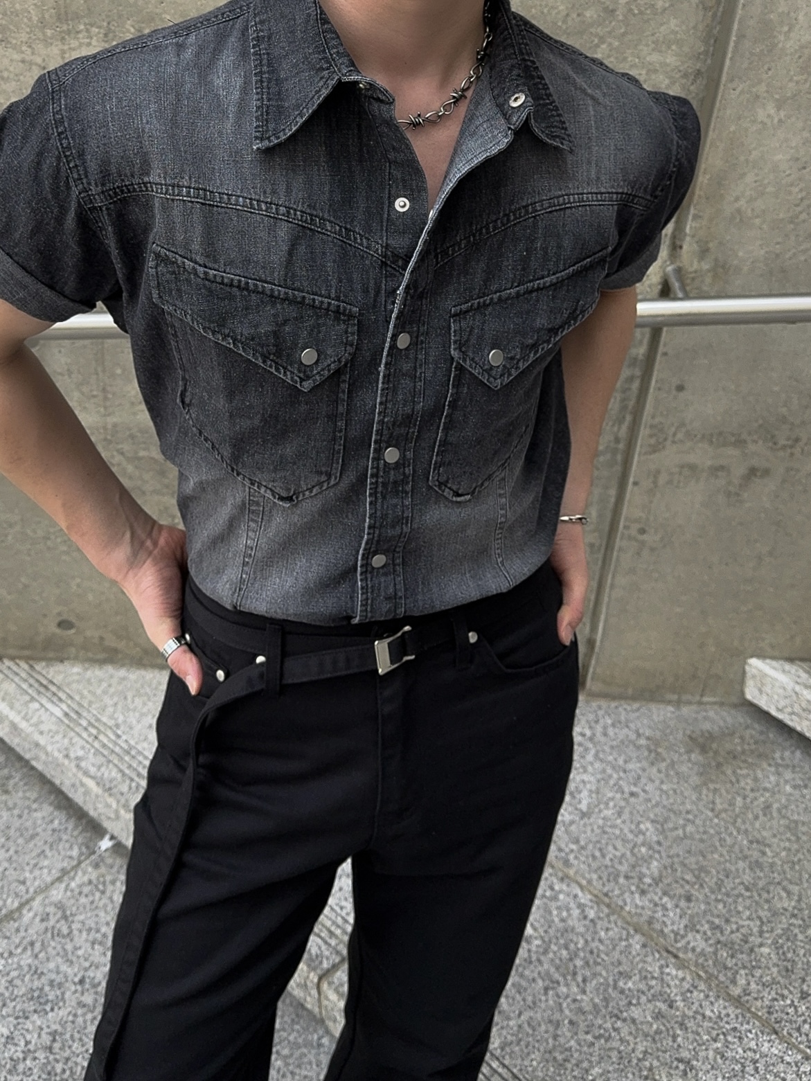 -착용시 섹시한 아웃핏이 돋보이는 웨스턴 데님 셔츠