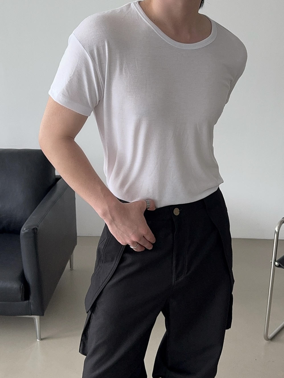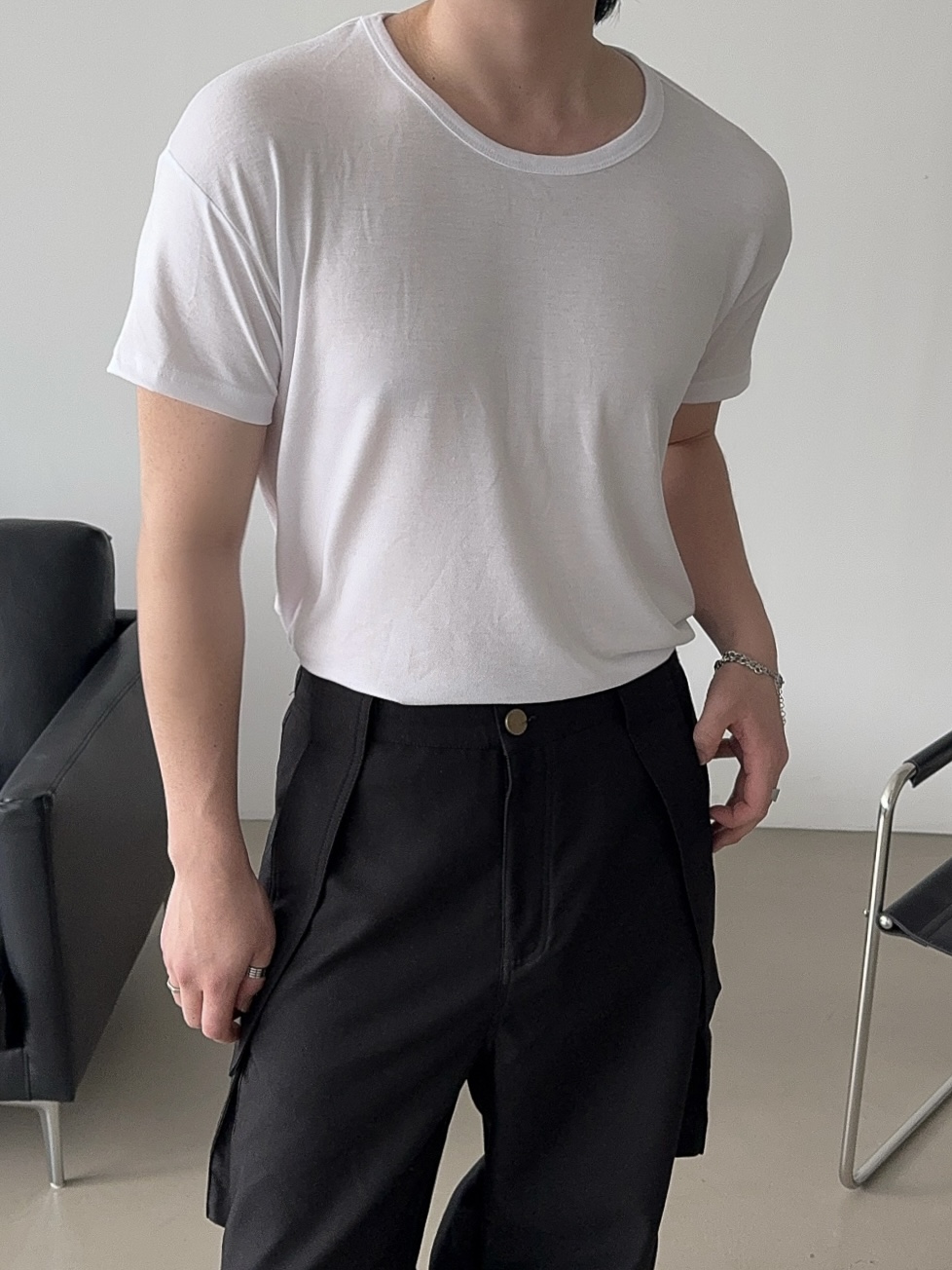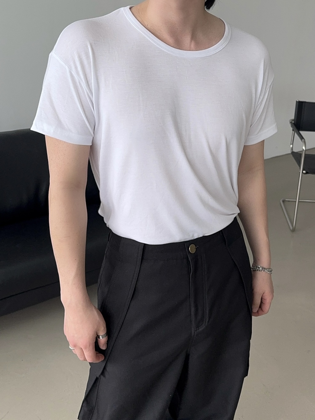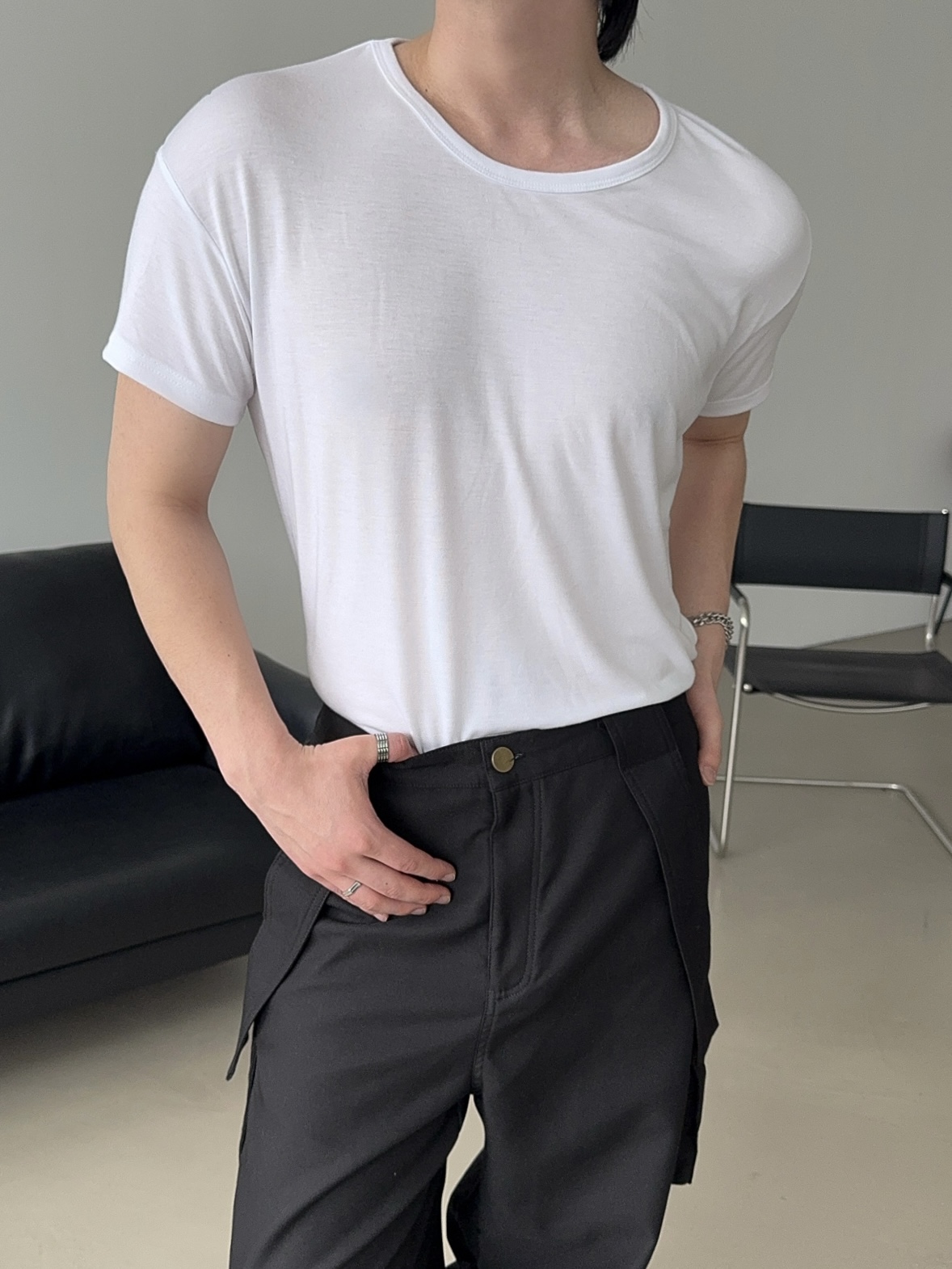 -부드러운 면 소재의 유넥 반팔 티셔츠