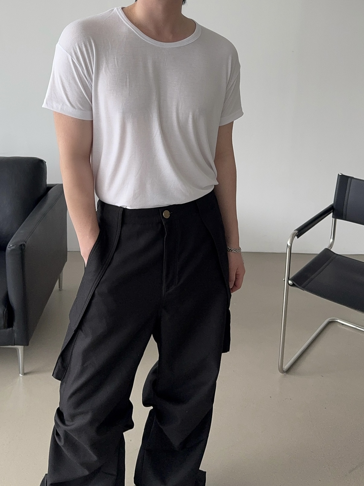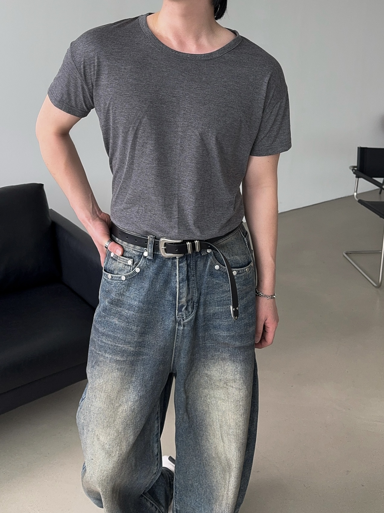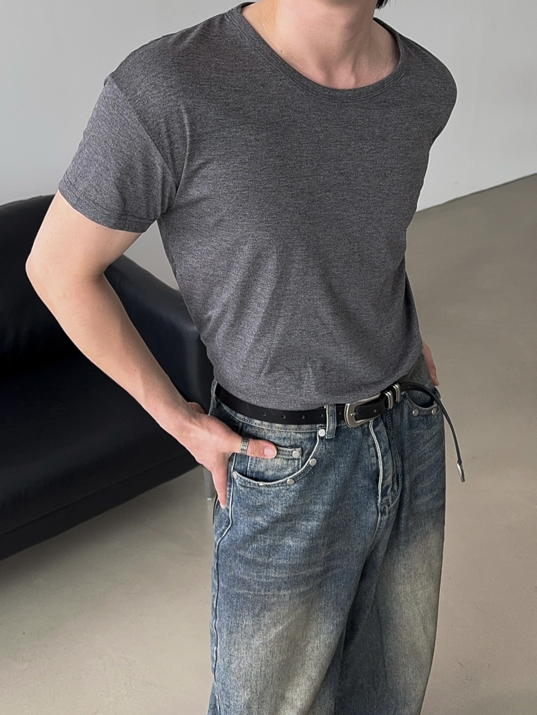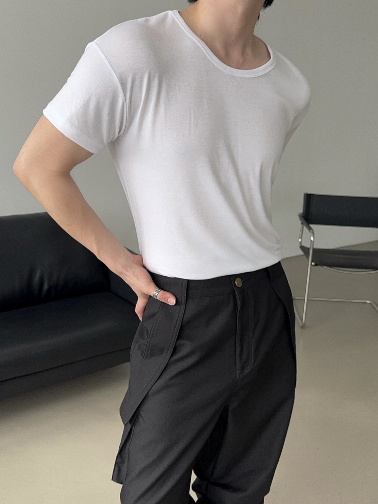-부드러운 면 소재의 유넥 반팔 티셔츠