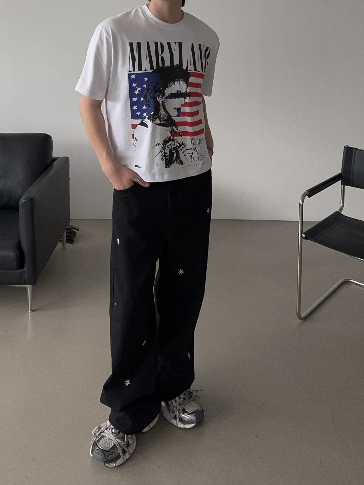 -L: 허리 40.5 / 허벅지 33.5 / 밑위 33 / 밑단 25 / 총장 106