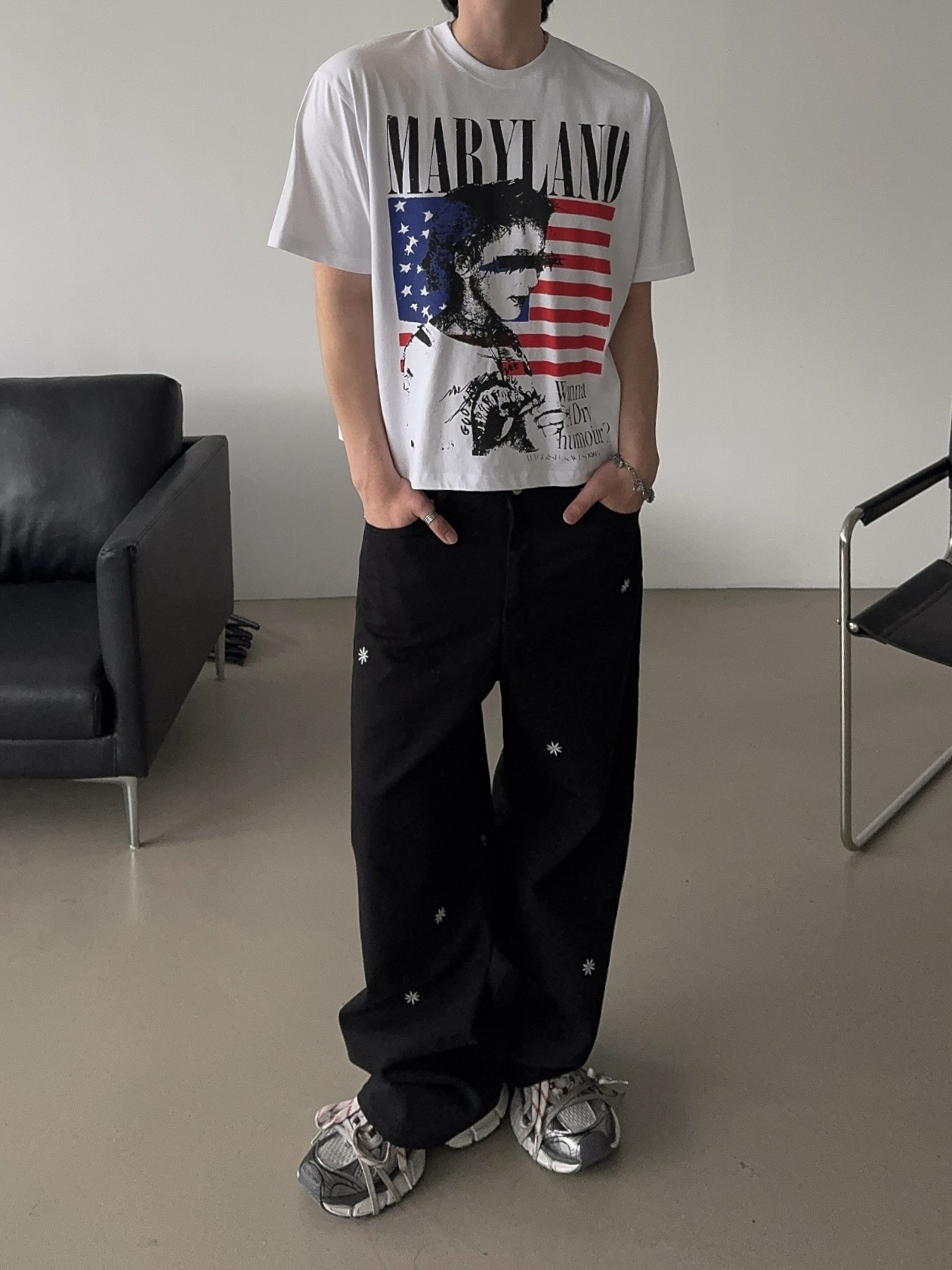 -M: 허리 39 / 허벅지 32 / 밑위 32 / 밑단 24 / 총장 104.5
