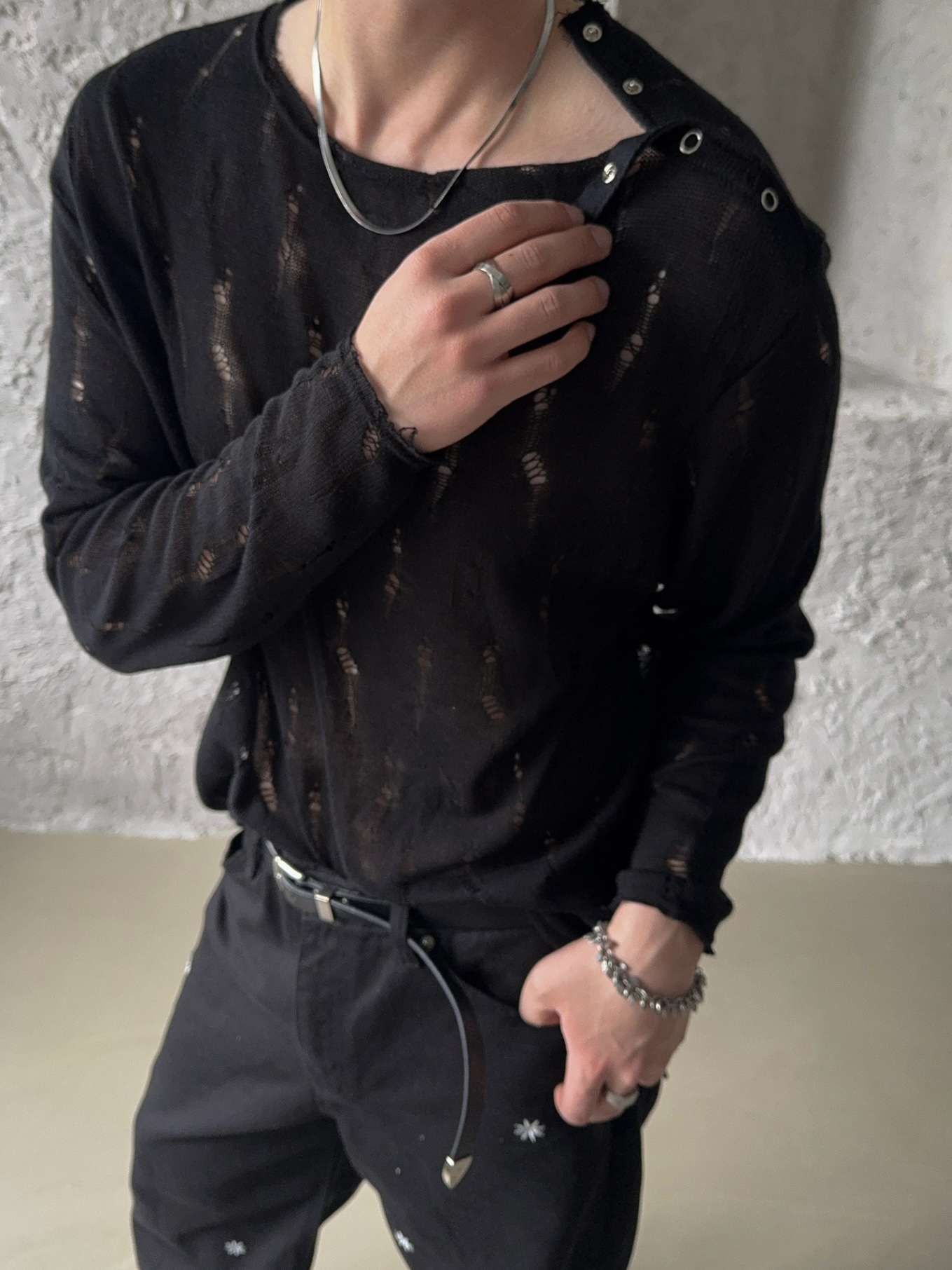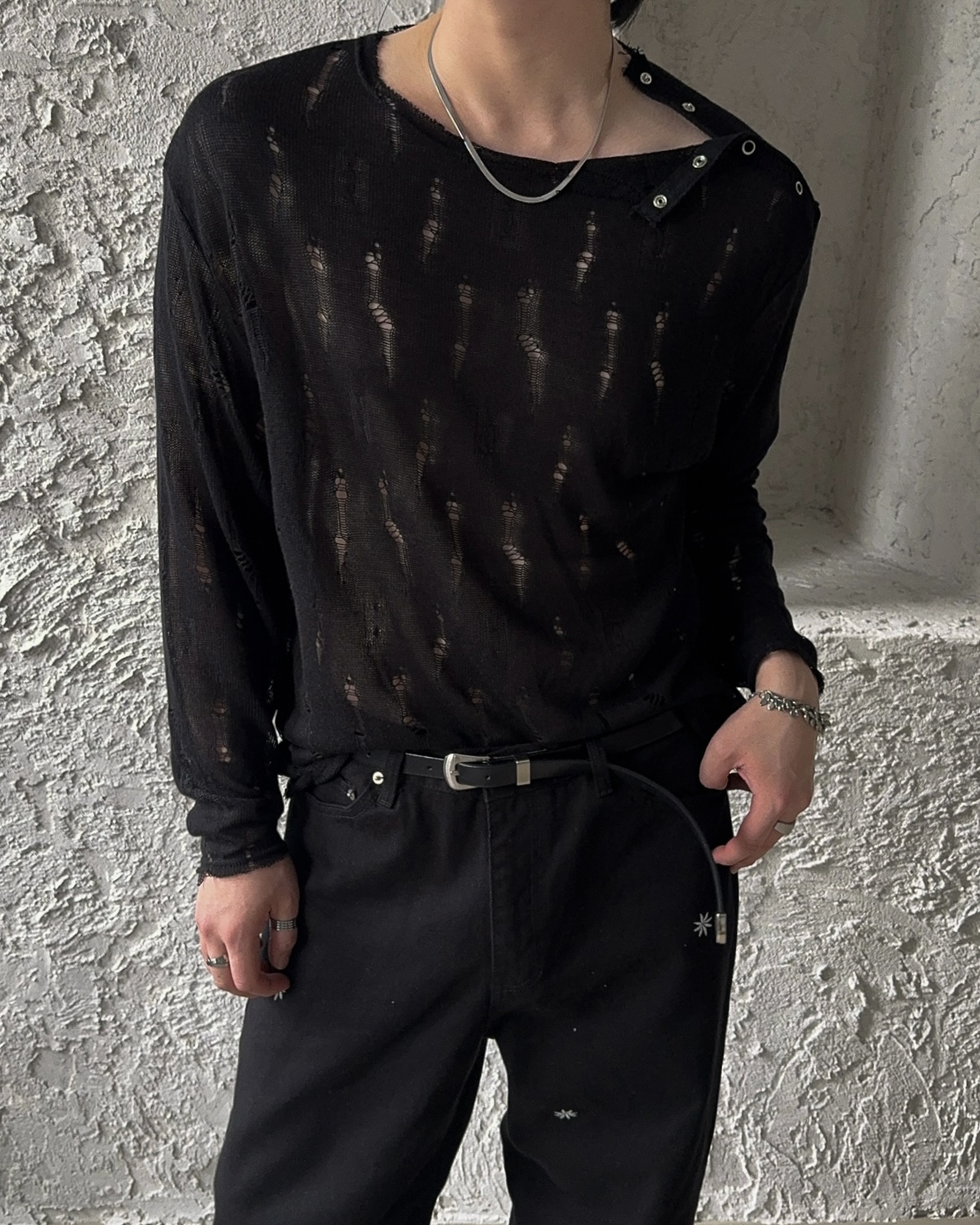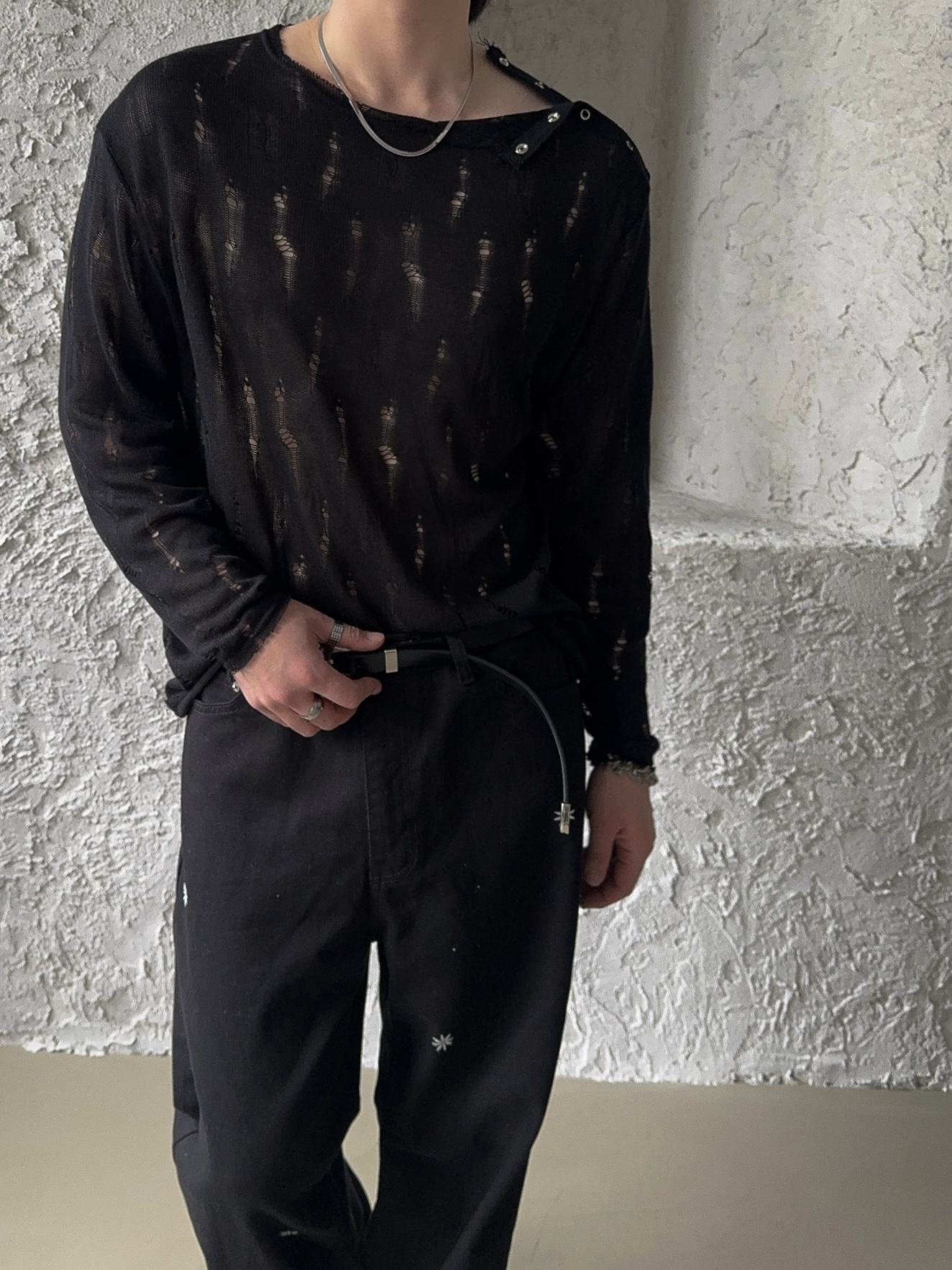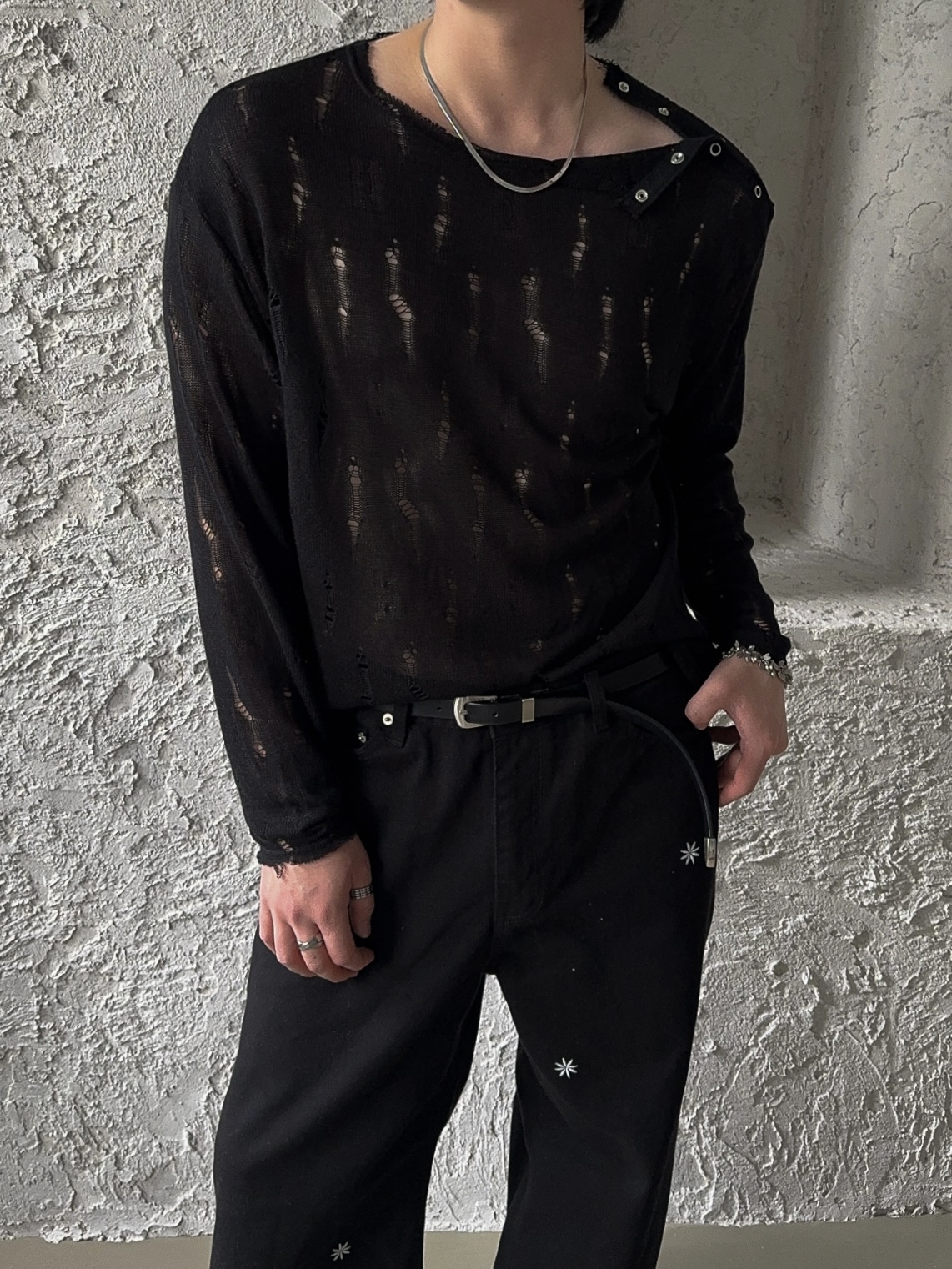 -전체적으로 데미지가 들어간 시스루 티셔츠