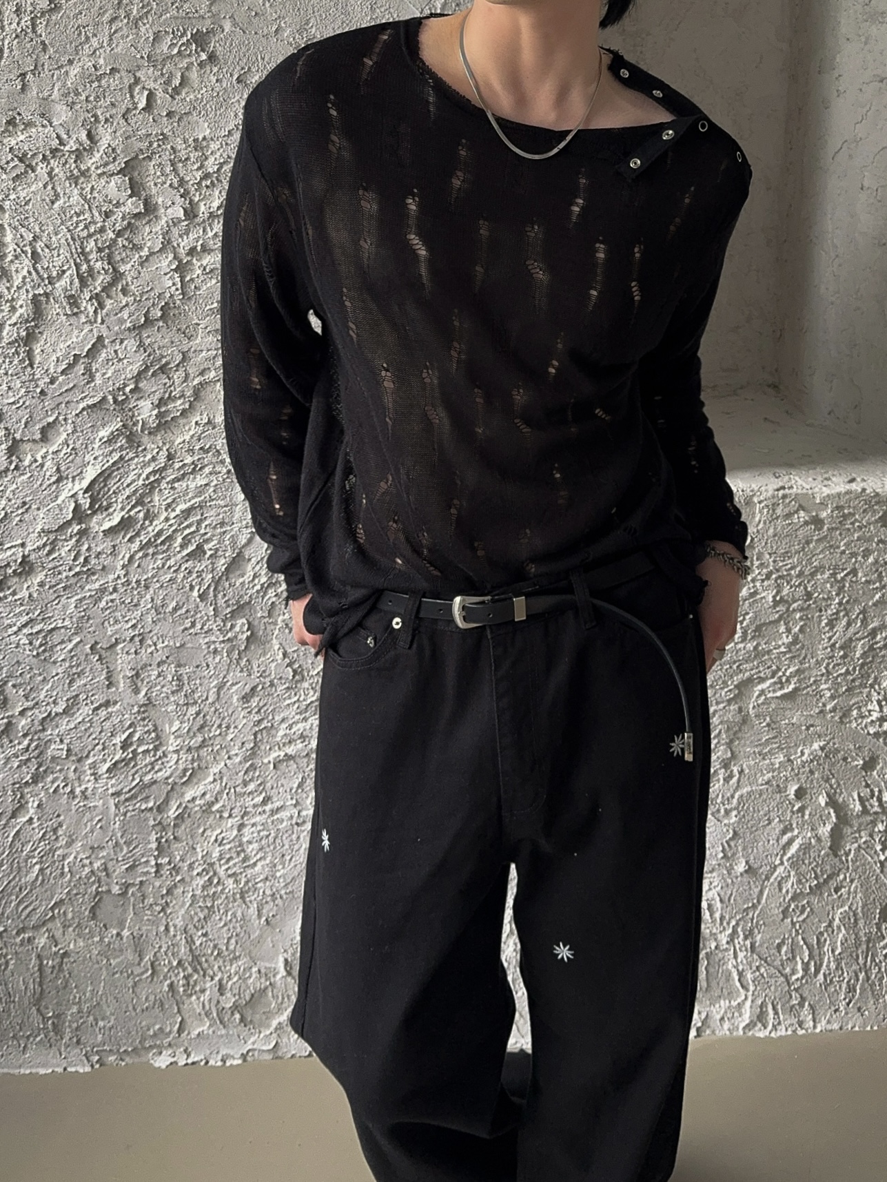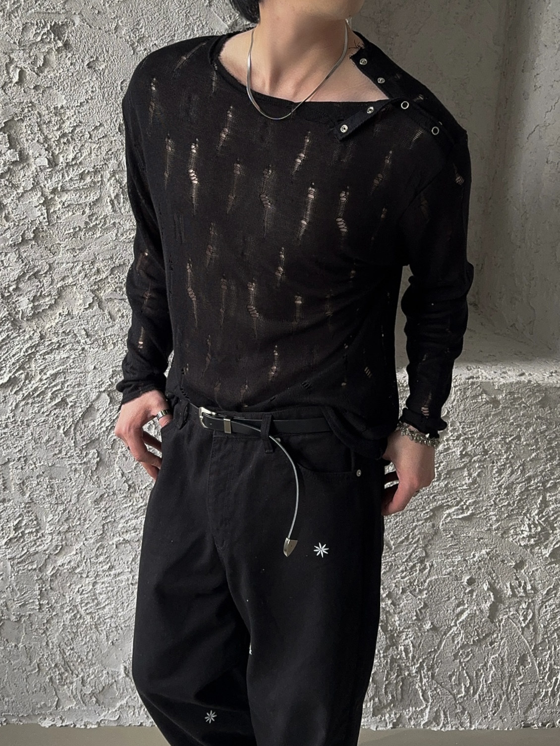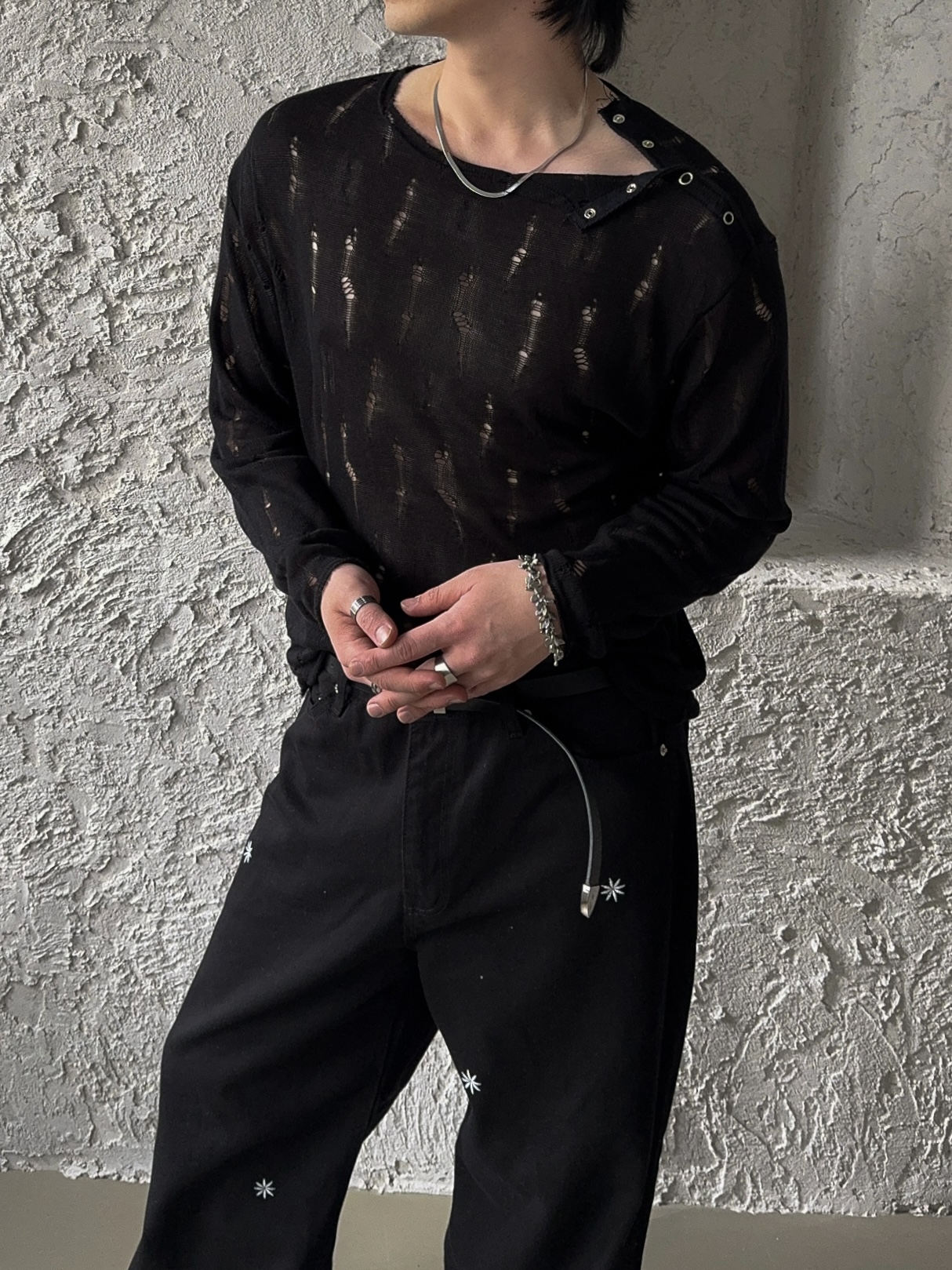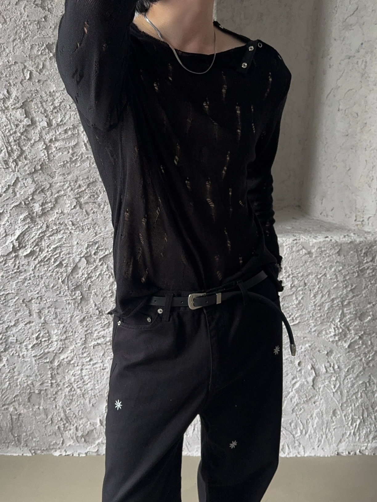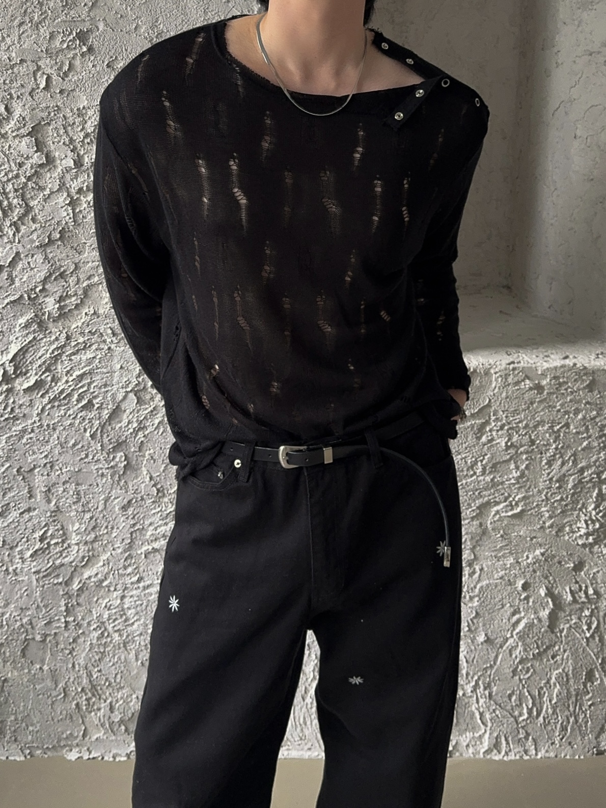 -전체적으로 데미지가 들어간 시스루 티셔츠