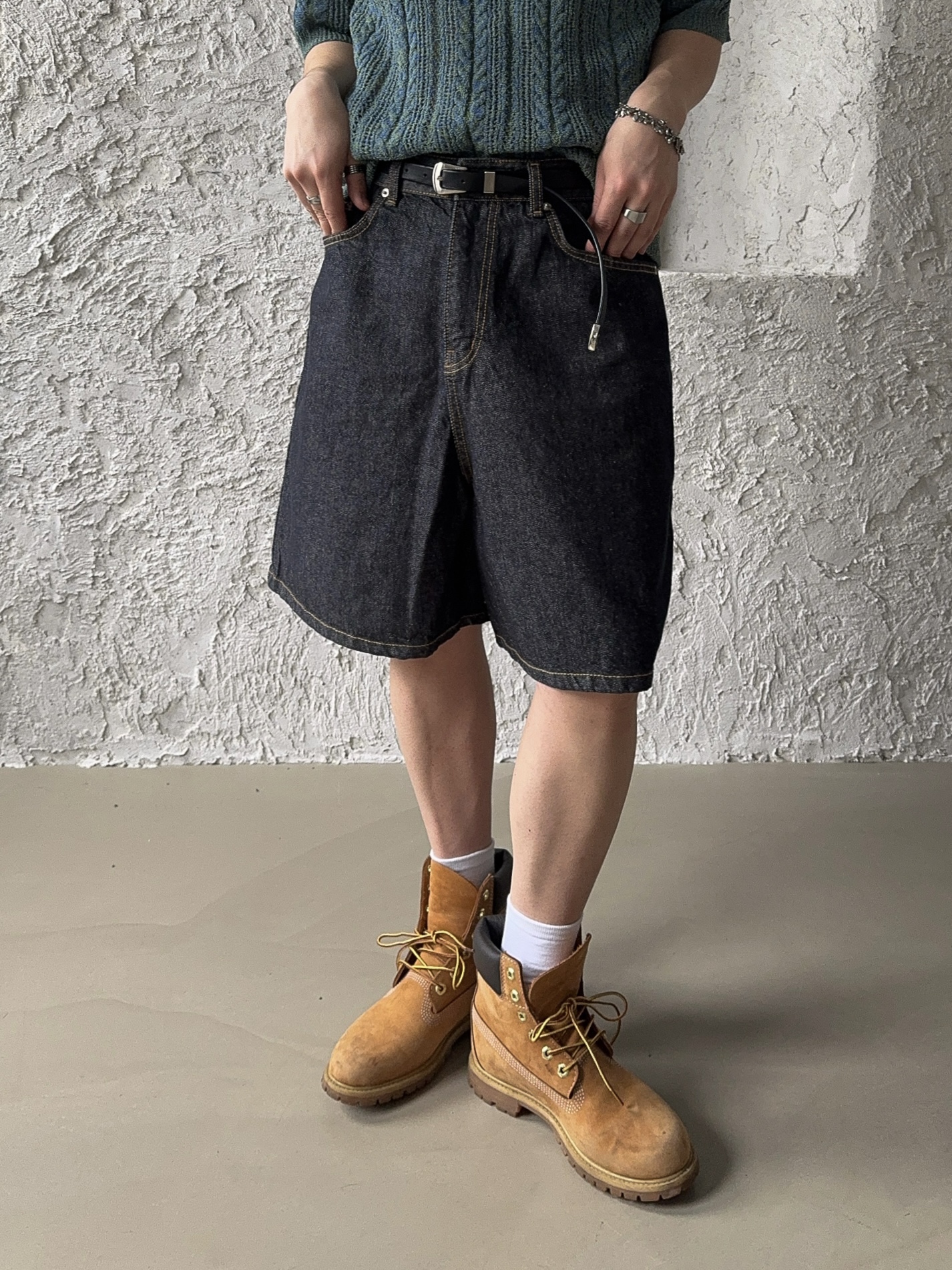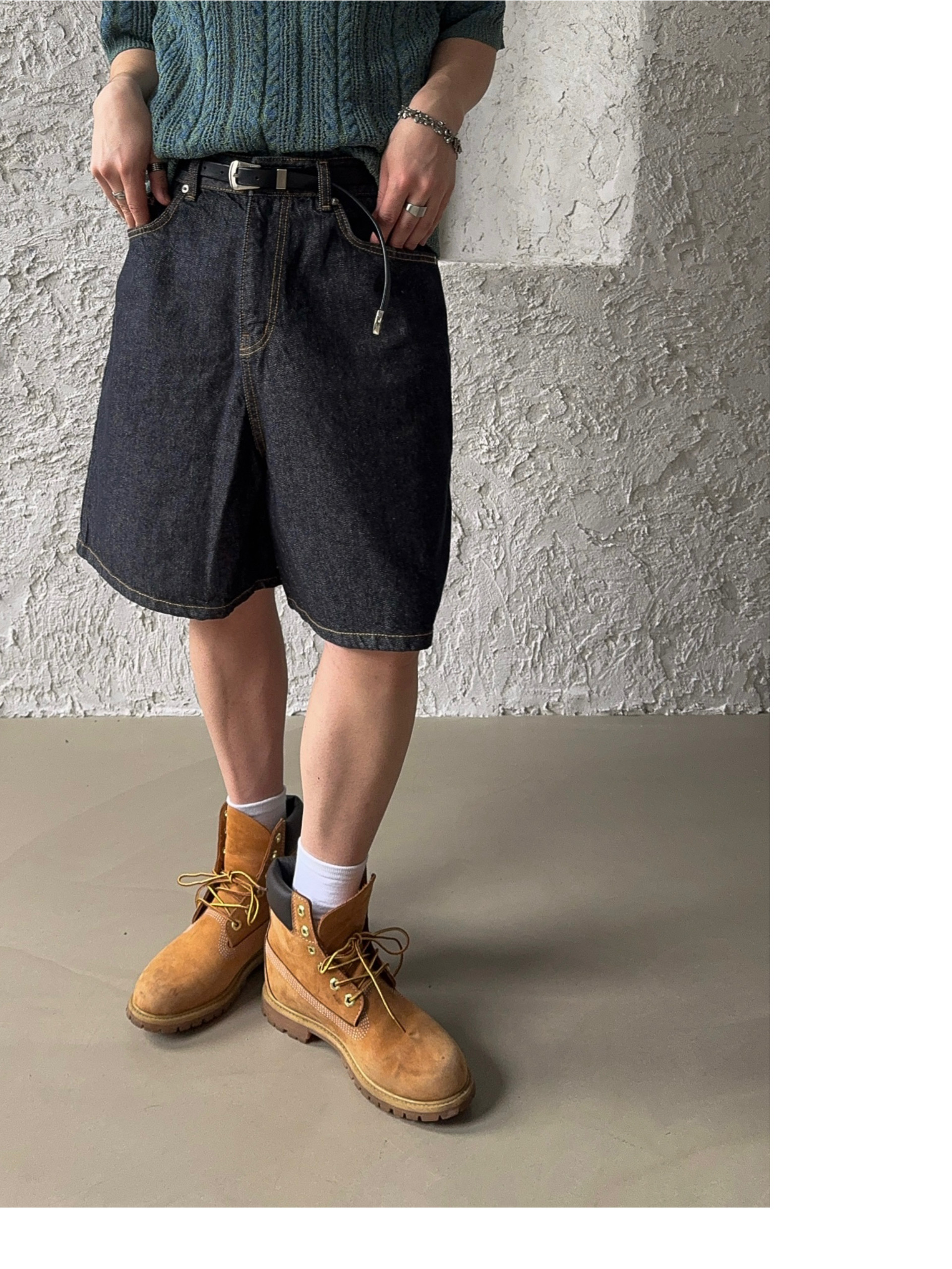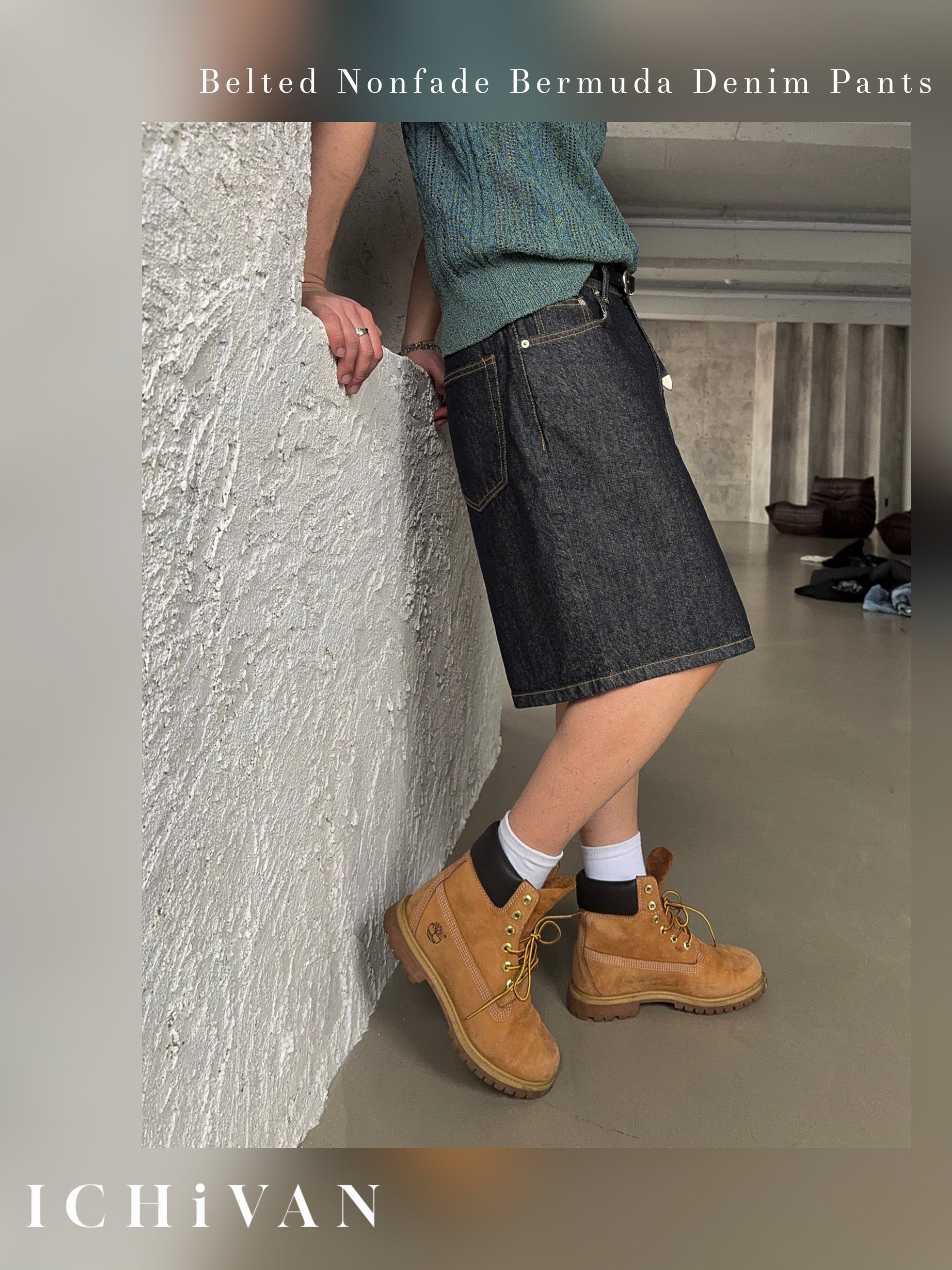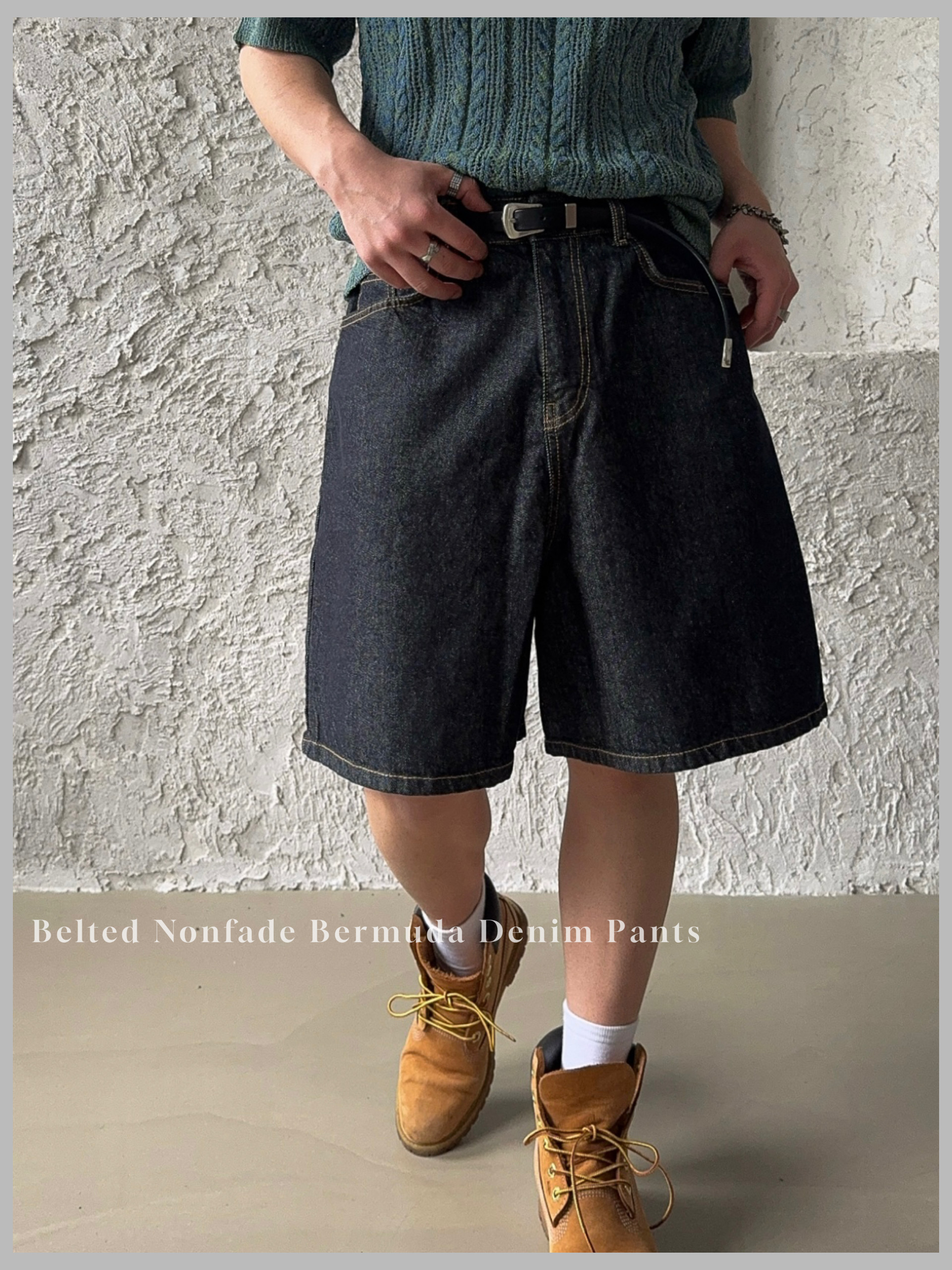 -이염 없는 논페이드 생지 데님으로 제작된 버뮤다 팬츠