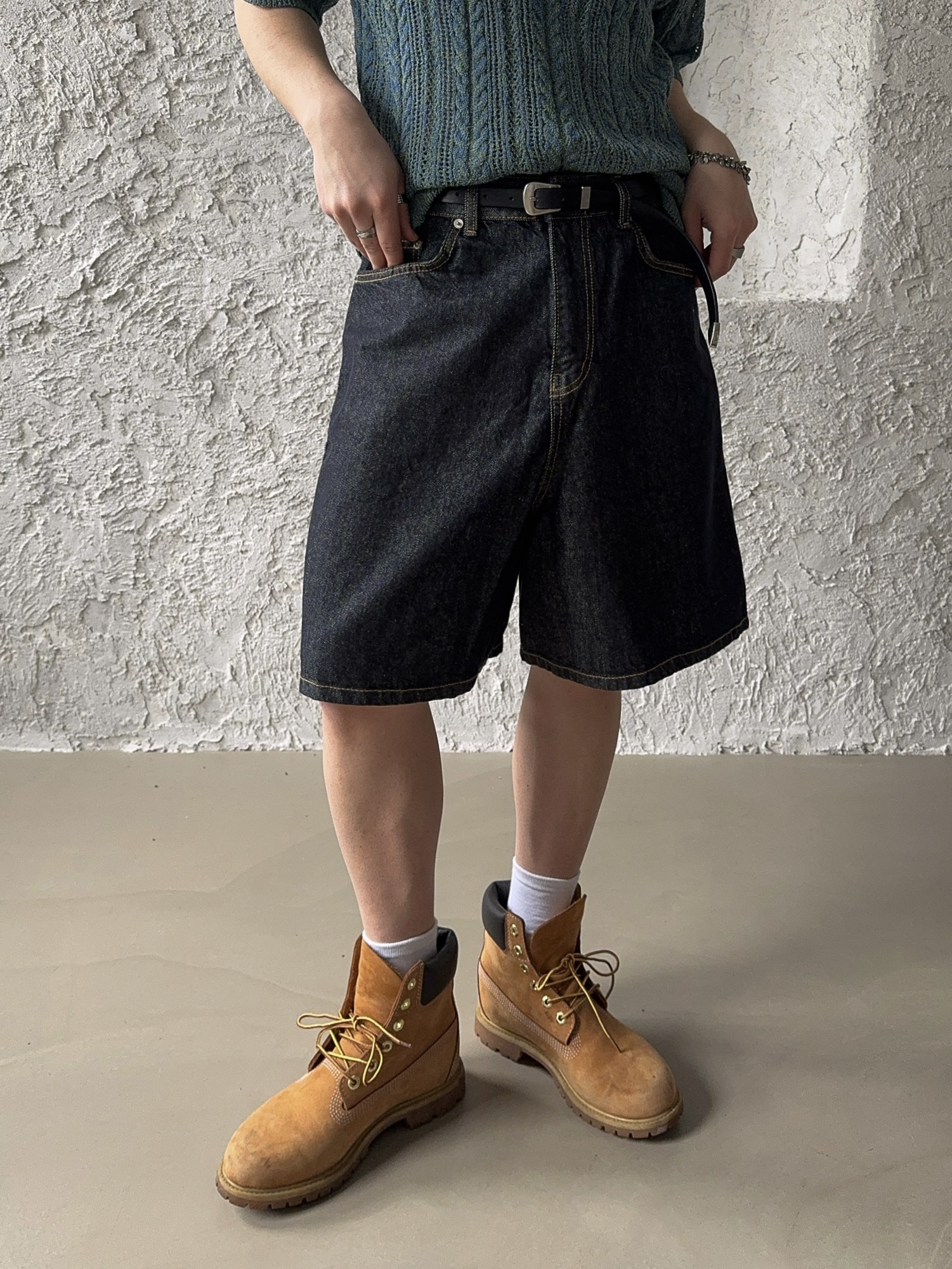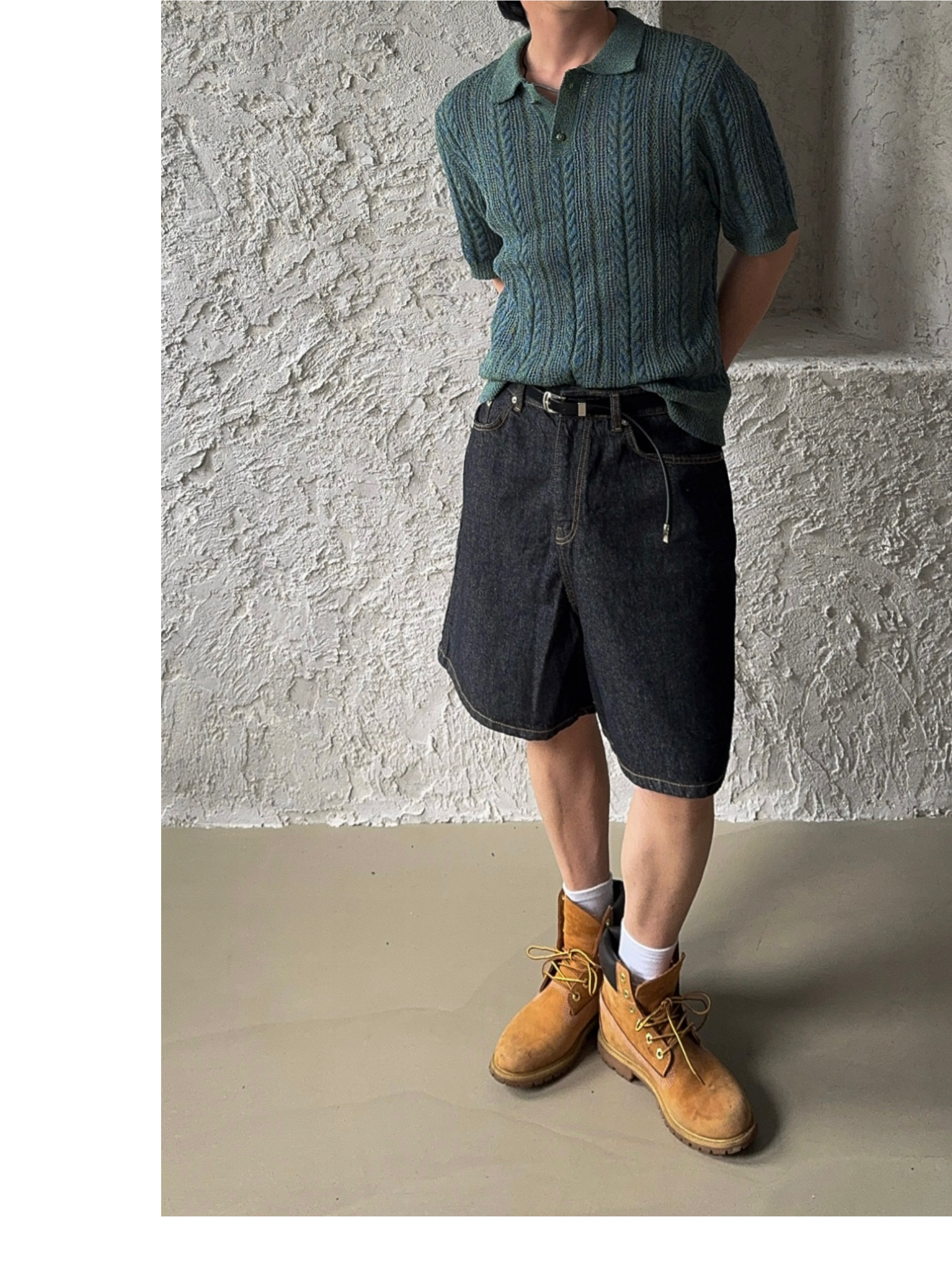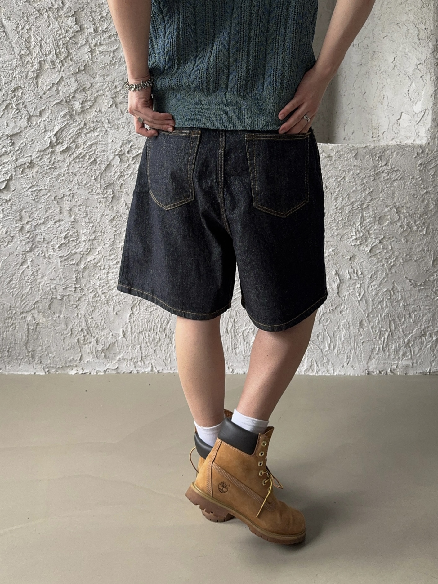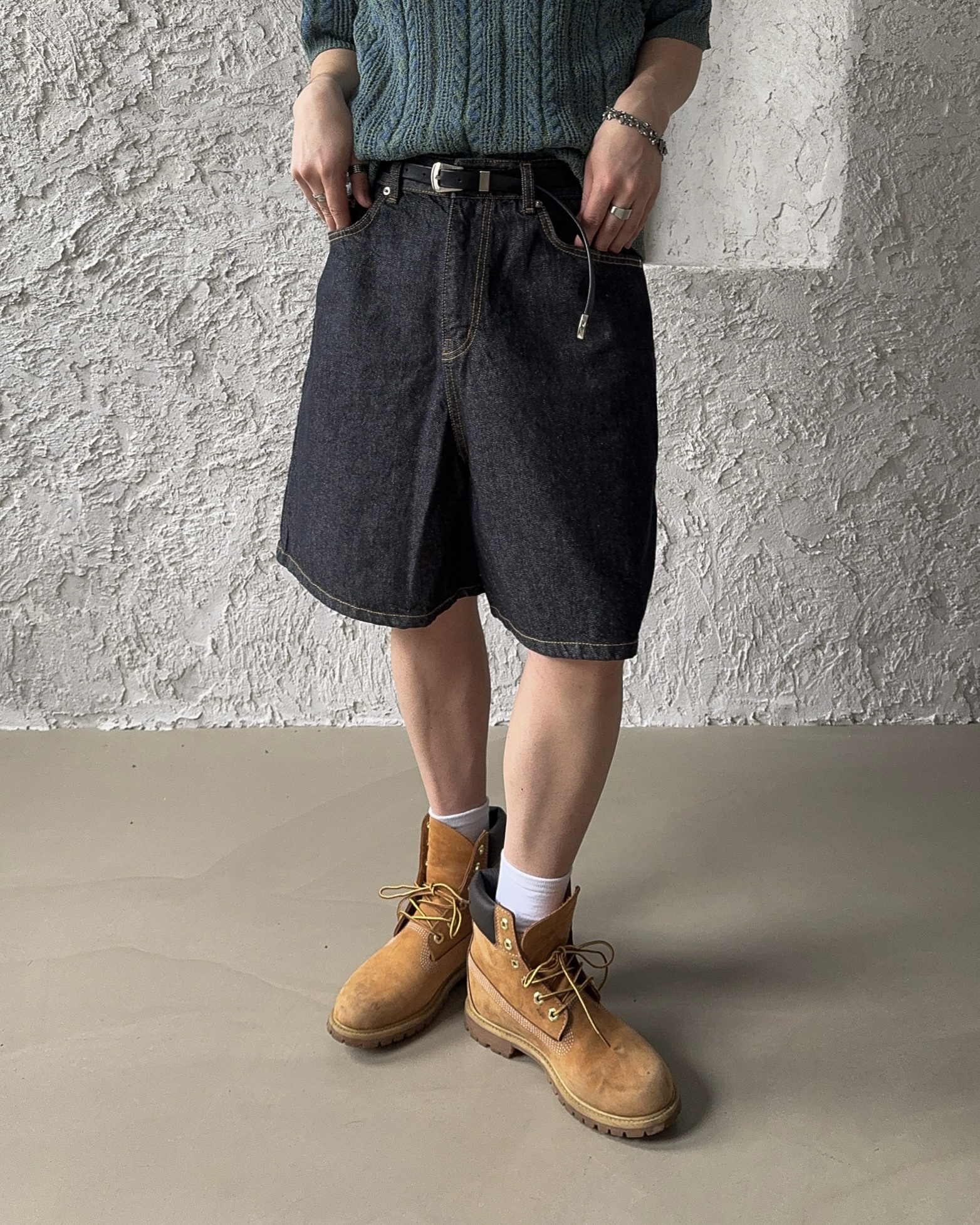 -이염 없는 논페이드 생지 데님으로 제작된 버뮤다 팬츠