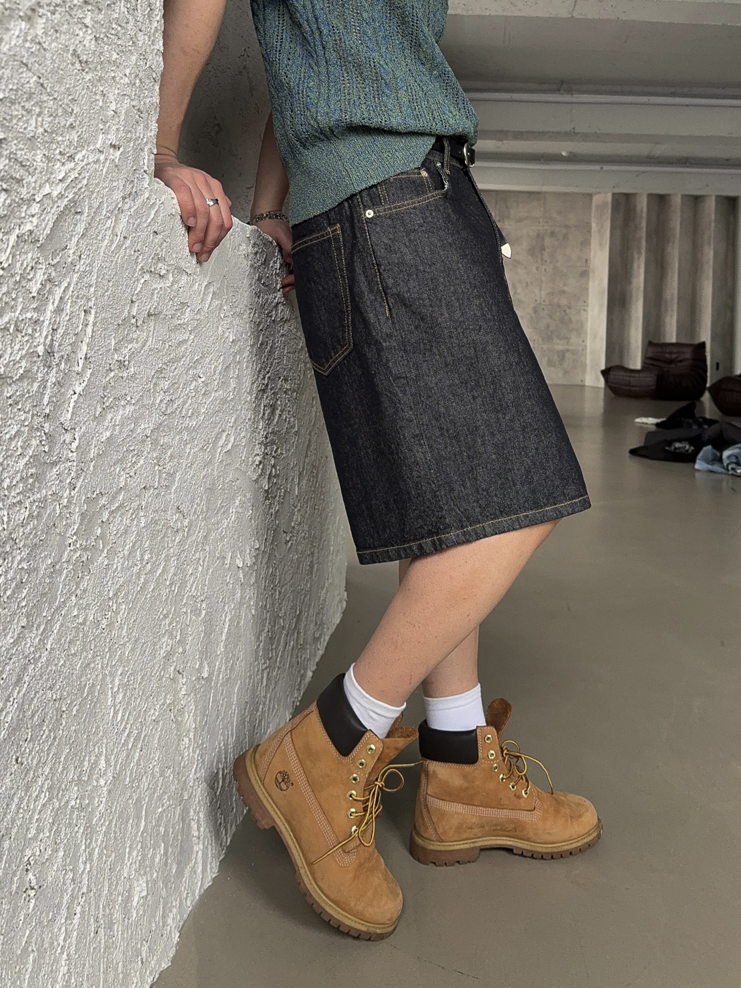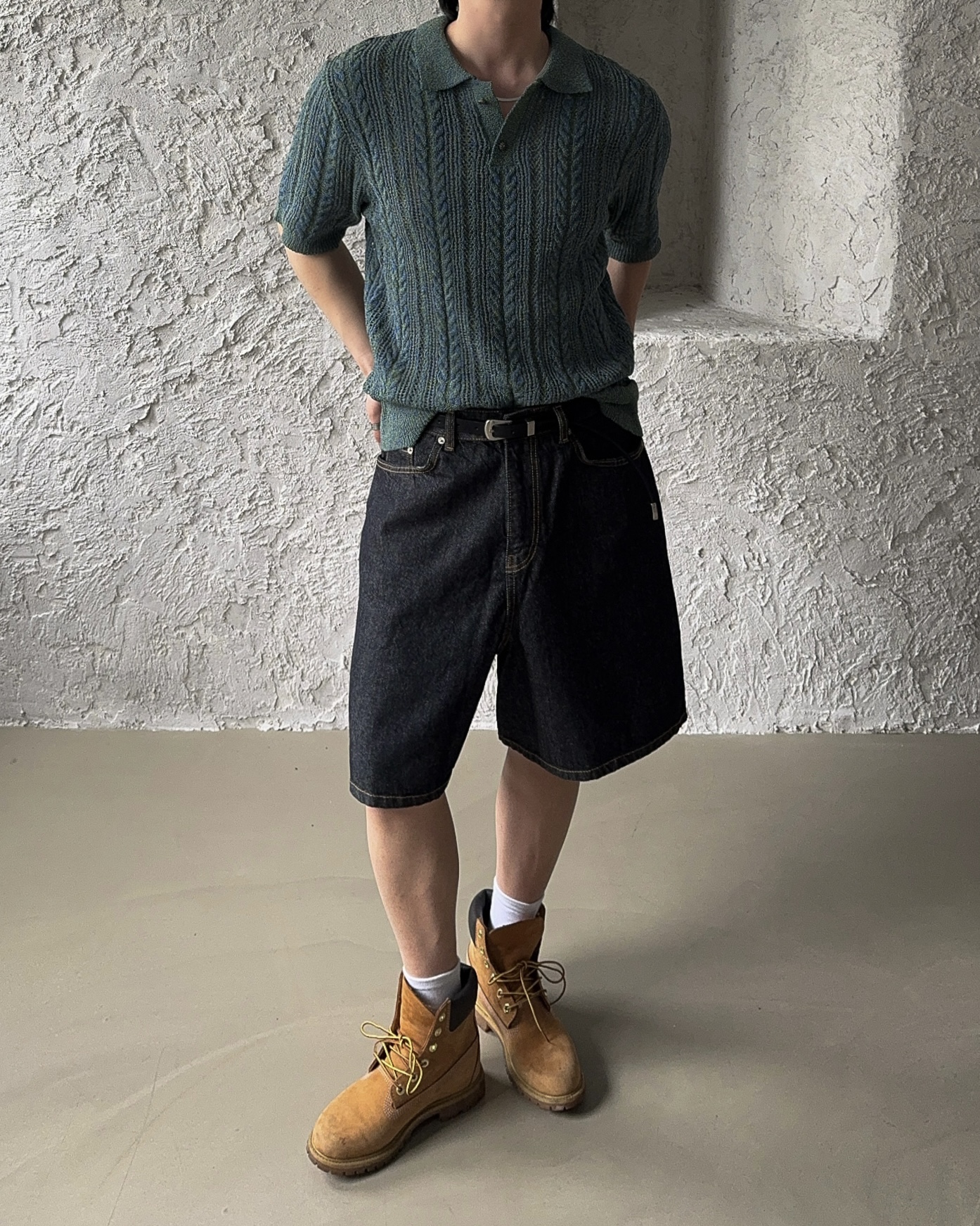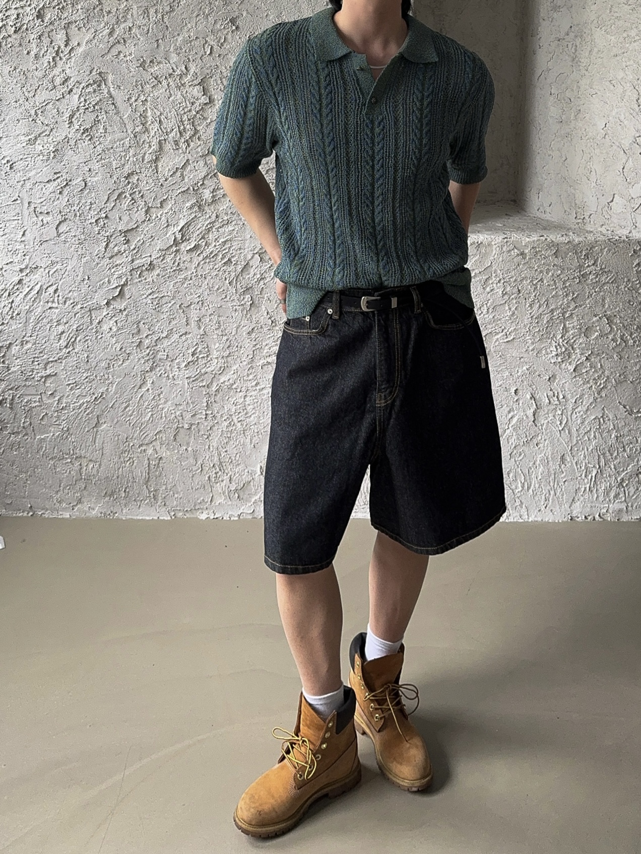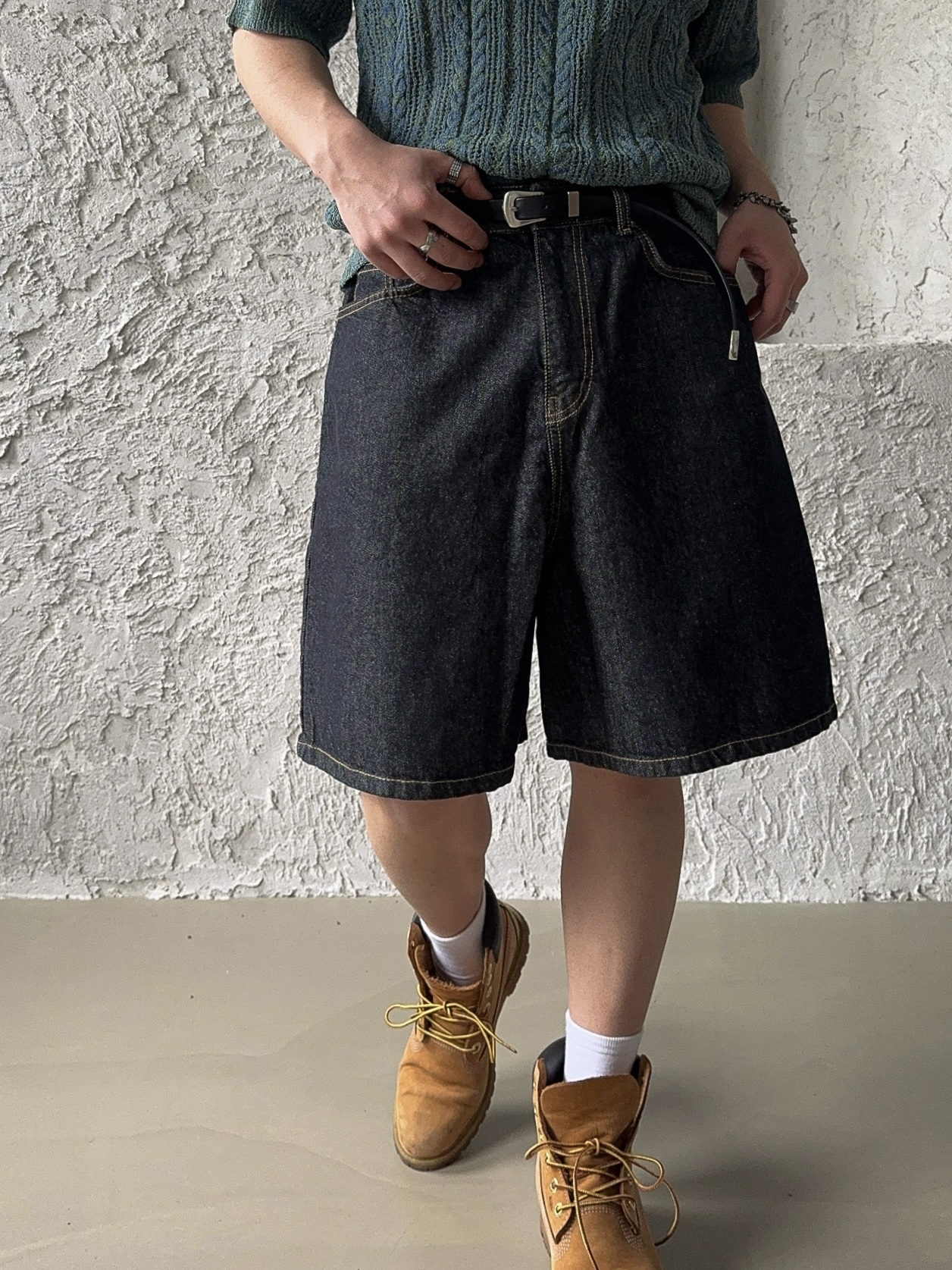 -이염 없는 논페이드 생지 데님으로 제작된 버뮤다 팬츠