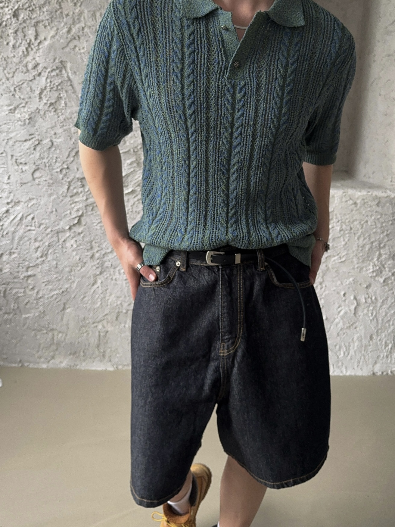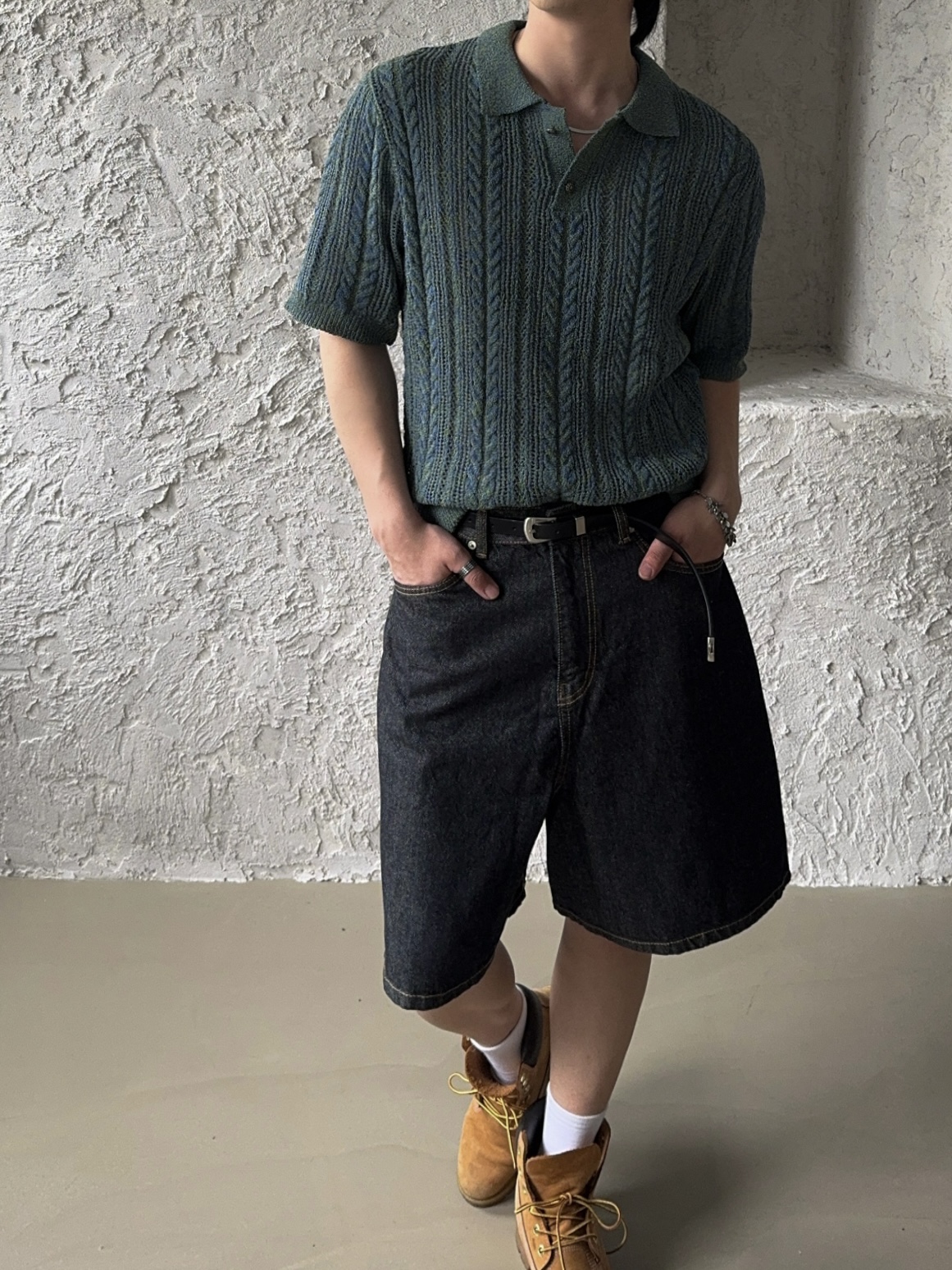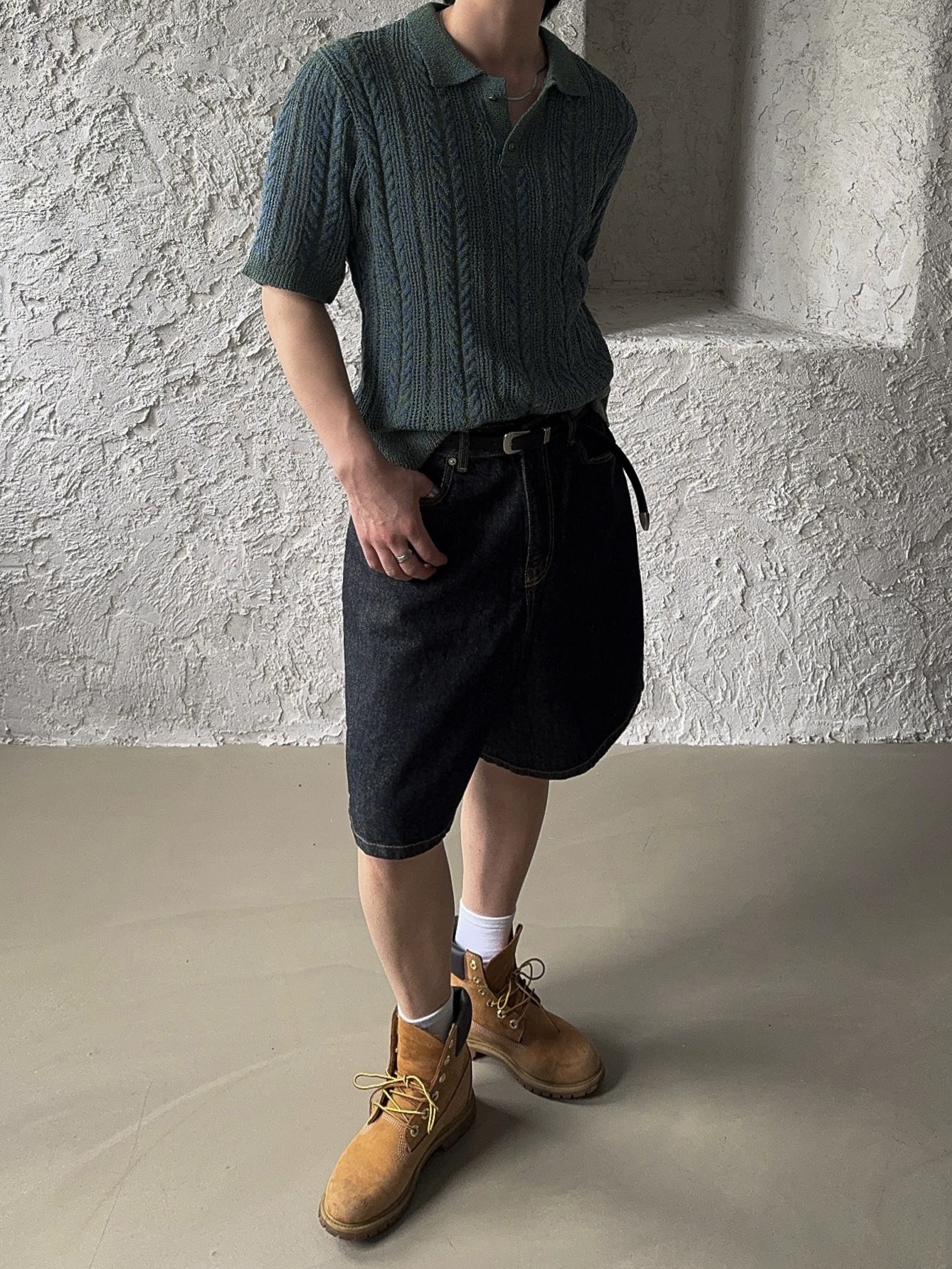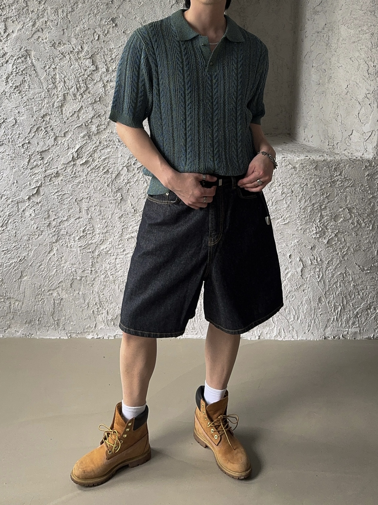 -이염 없는 논페이드 생지 데님으로 제작된 버뮤다 팬츠