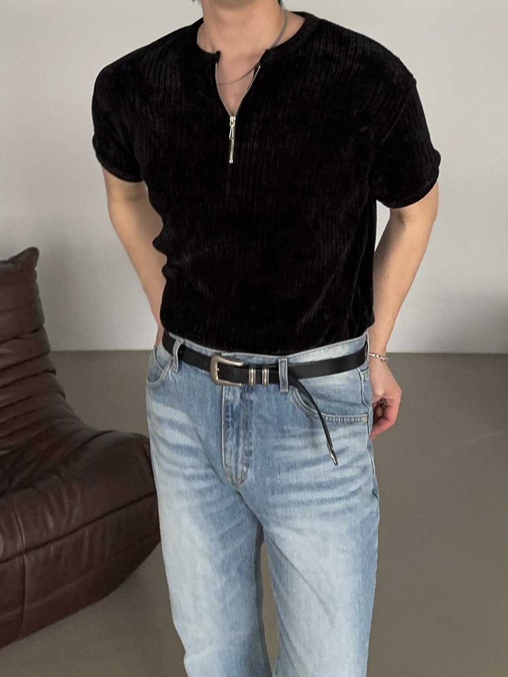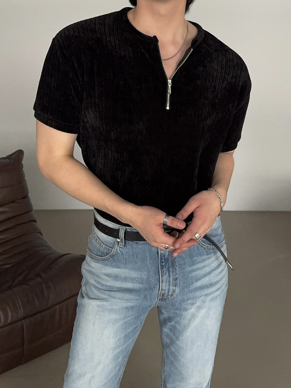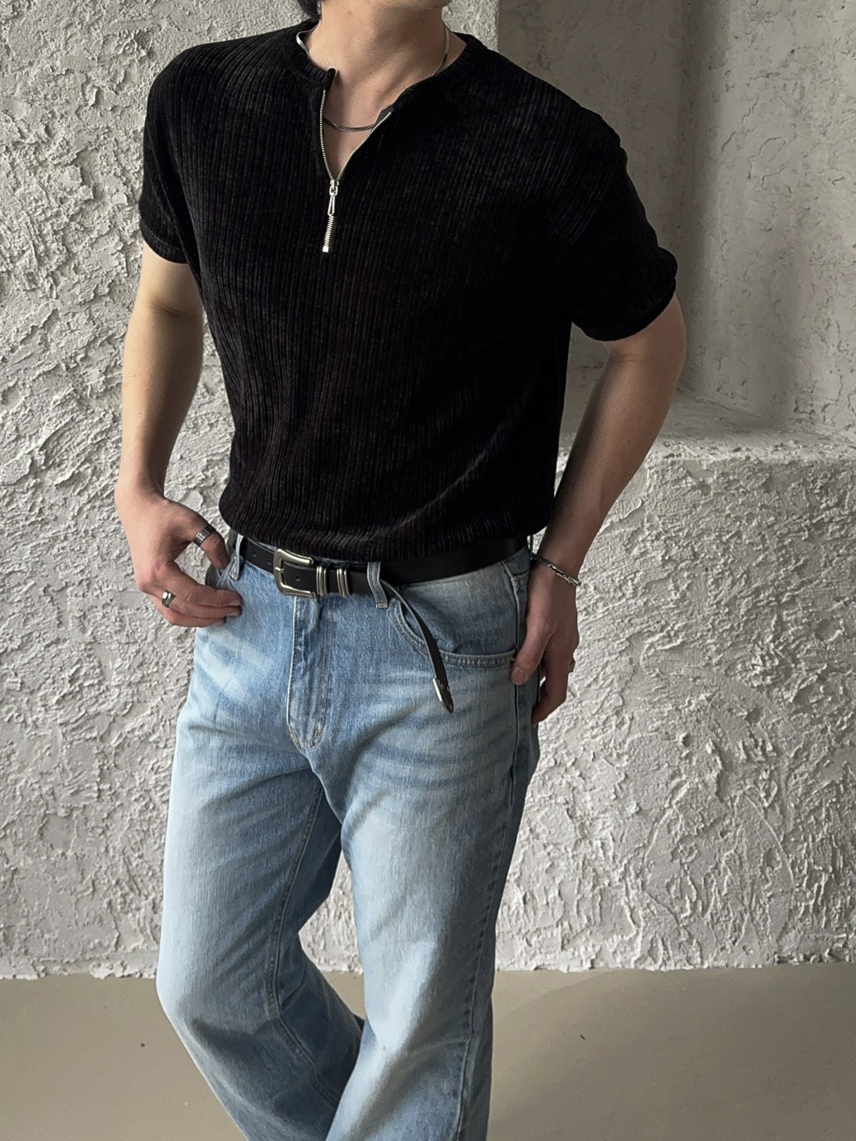 -데일리로 포인트로 착용하기 좋은 헨리넥 티셔츠